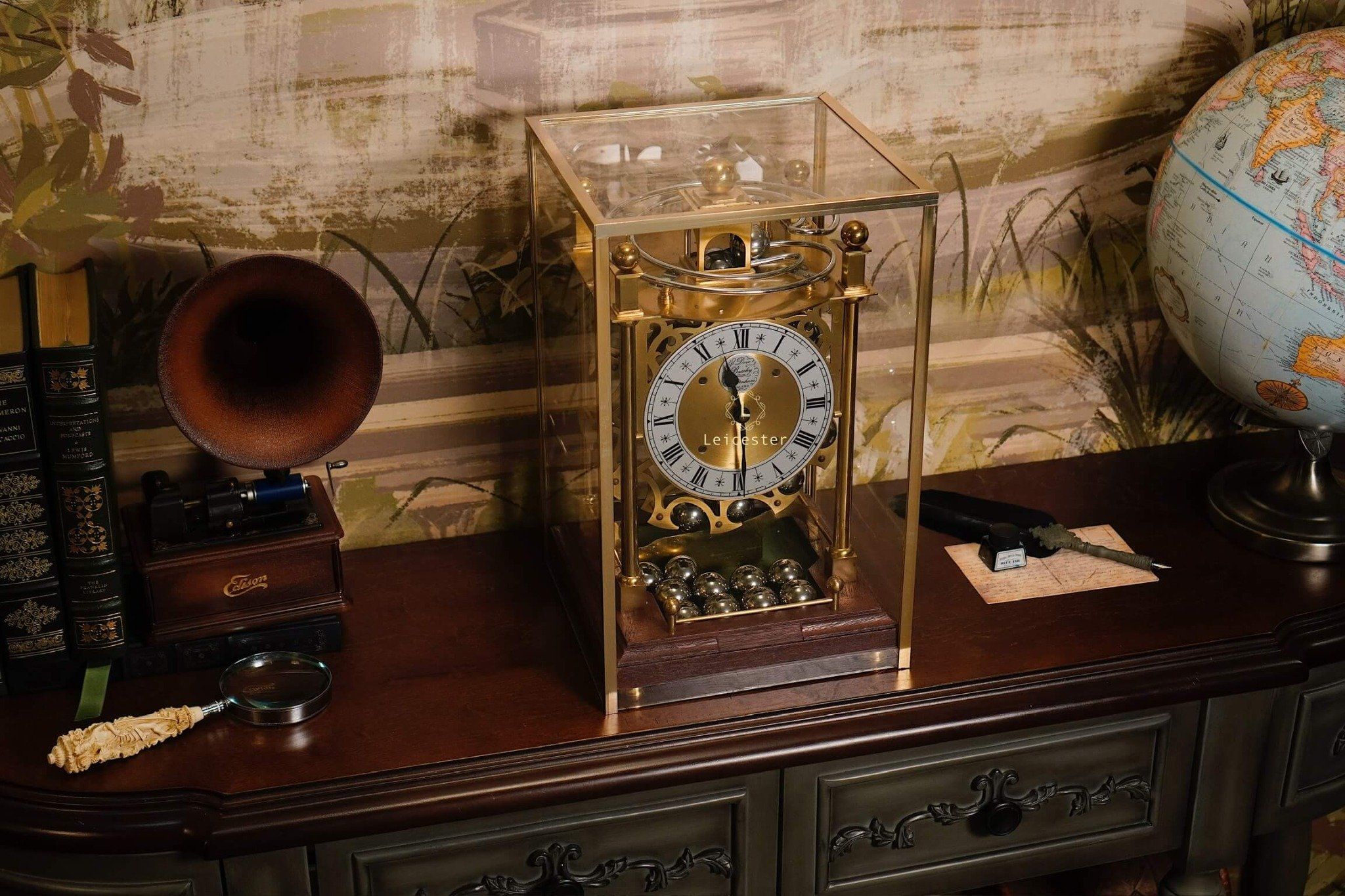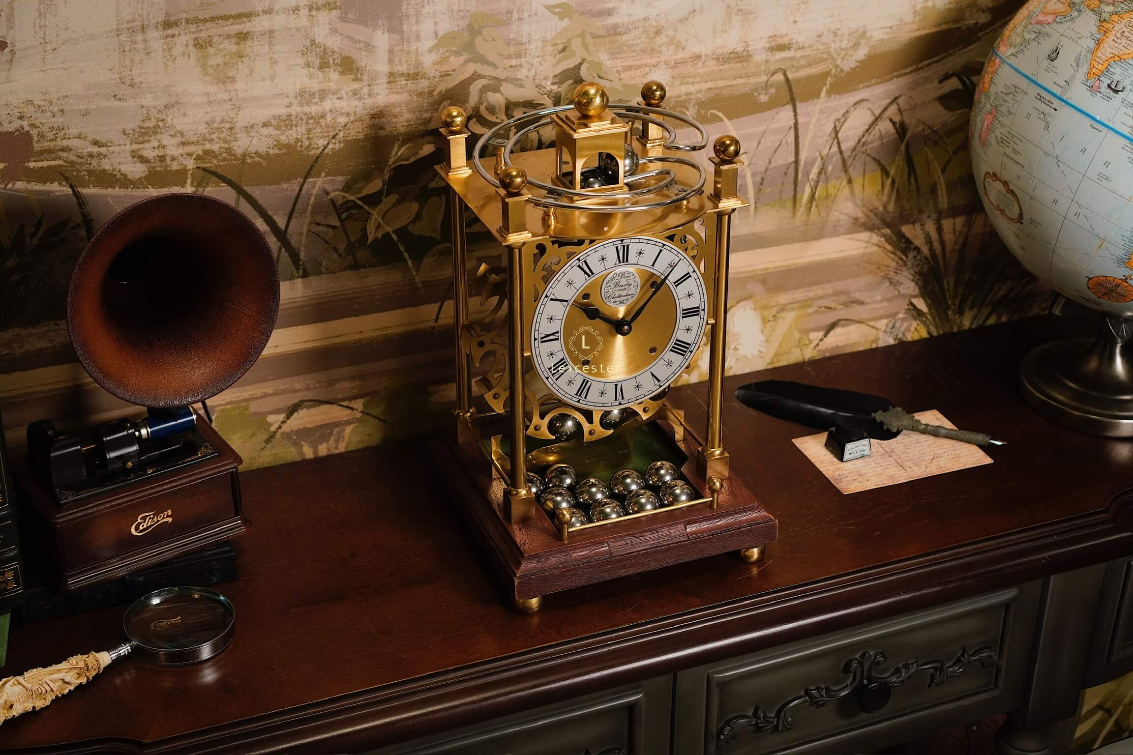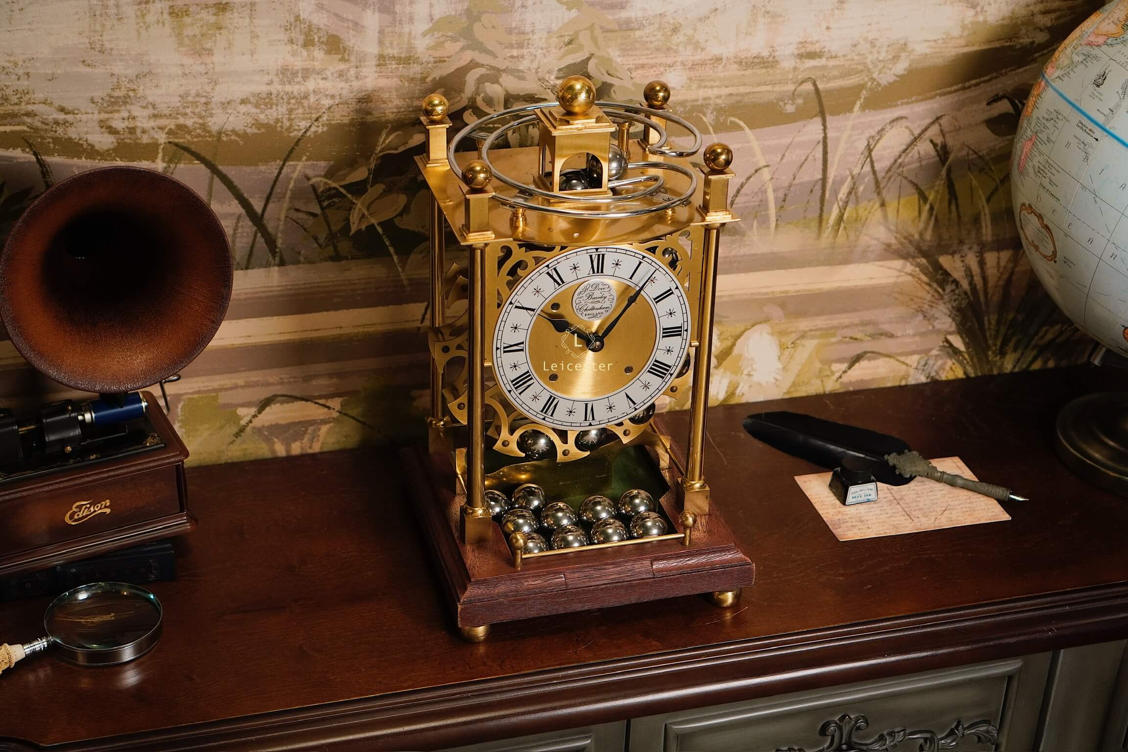 Không cần mặt số truyền thống, chiếc Rolling Ball Clock đo thời gian bằng sự di chuyển nhịp nhàng của các viên bi thép, được điều khiển bởi hệ thống bánh răng và lực trọng trường. Khung đồng vững chắc, ray dẫn tinh xảo và từng mối nối cơ khí được hoàn thiện thủ công vừa thể hiện kỹ nghệ chế tác bậc thầy, vừa gói trọn tinh thần “British engineering” – bền bỉ, tinh xảo và sang trọng vượt thời gian.
