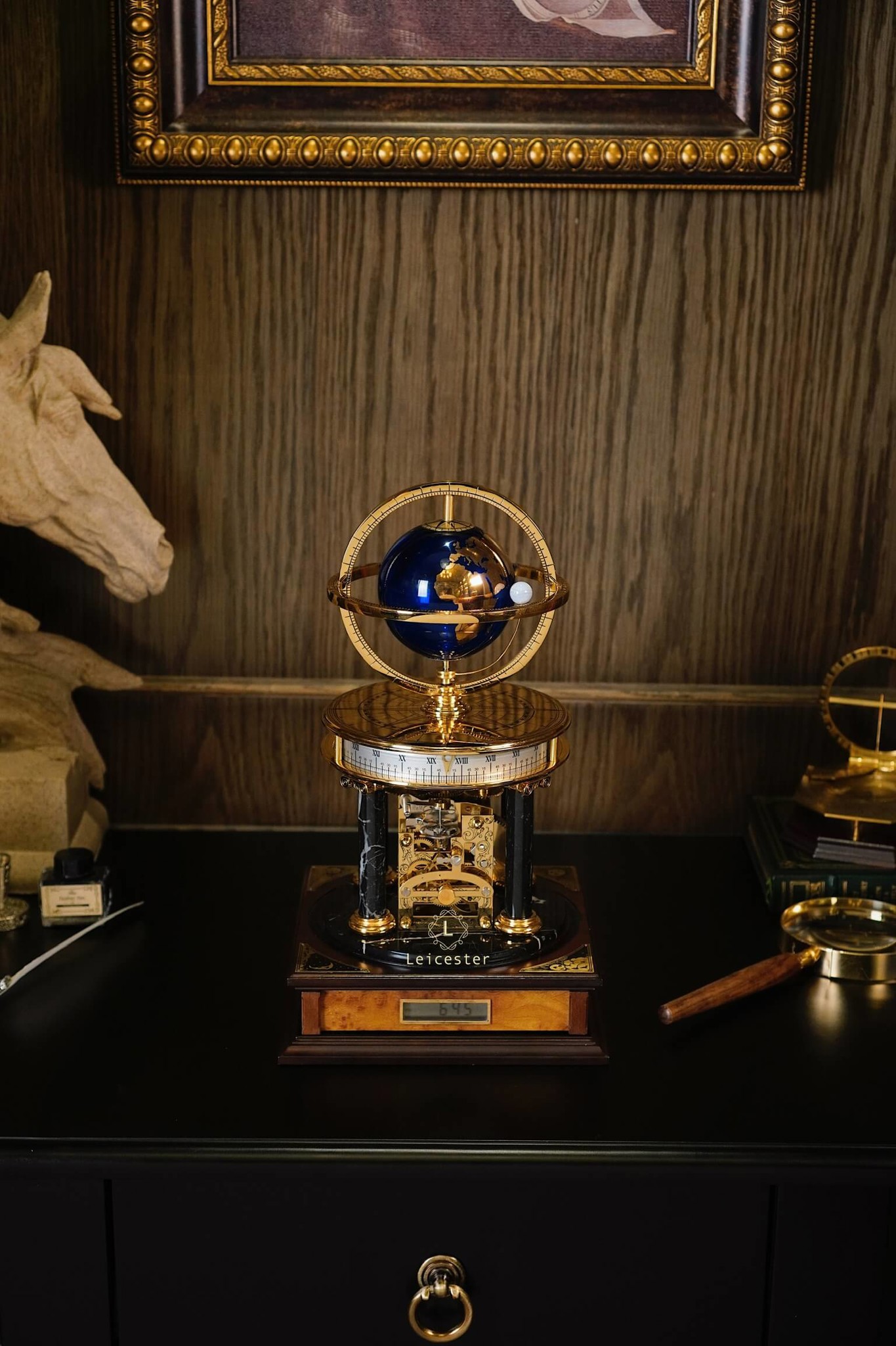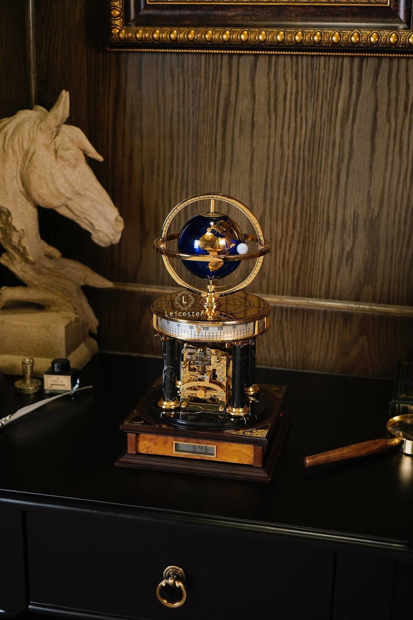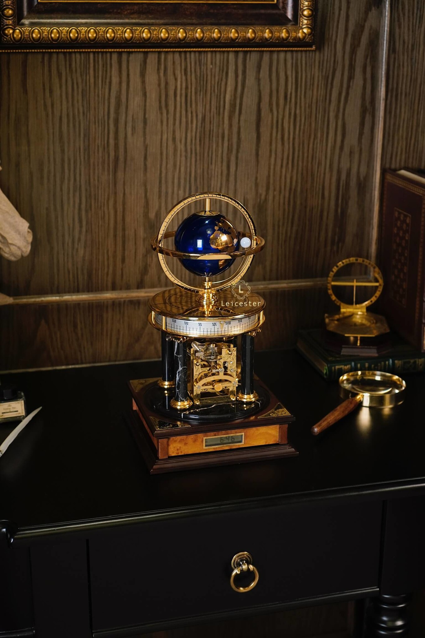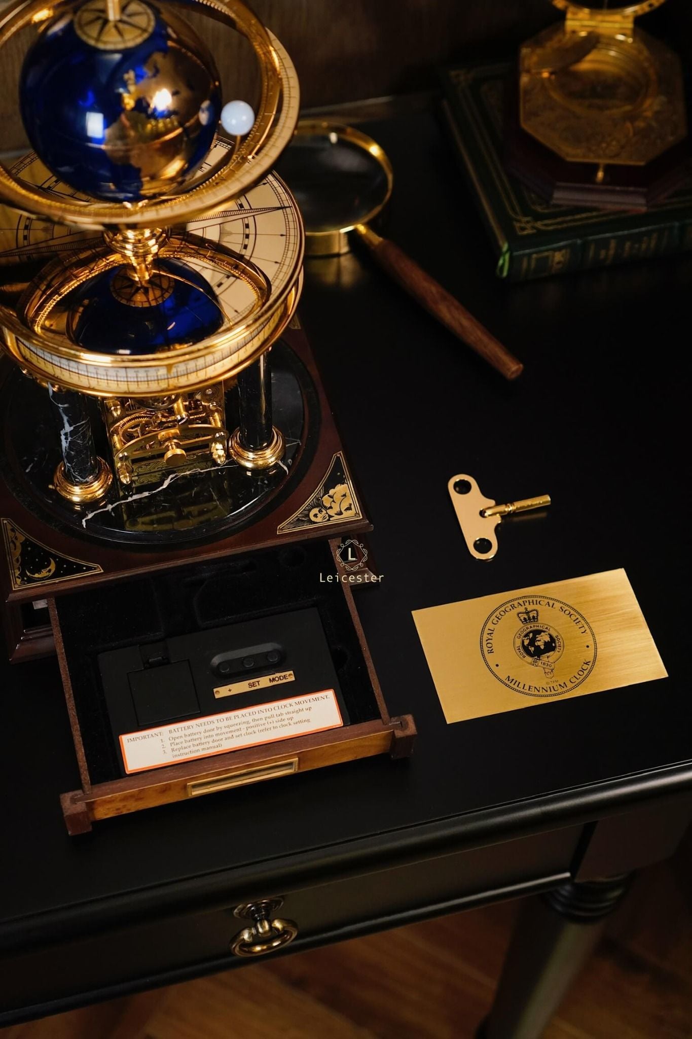 Chiếc Millennium Clock do Franklin Mint thiết kế và sản xuất dưới sự cấp phép của Royal Geographical Society (Hiệp hội Địa lý Hoàng gia Anh), nhằm kỷ niệm thiên niên kỷ mới. Lấy cảm hứng từ thiên văn học và địa lý, đồng hồ có thiết kế mái vòm độc đáo, với một quả địa cầu ở trung tâm và một vật thể nhỏ hơn tượng trưng cho Mặt Trăng. Sản phẩm được chế tác từ đồng thau mạ vàng, kính, gỗ và đá cẩm thạch, mang phong cách cổ điển châu Âu, toát lên vẻ sang trọng và tinh tế.