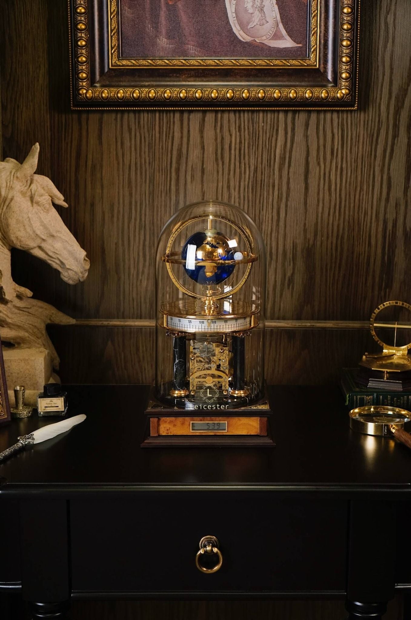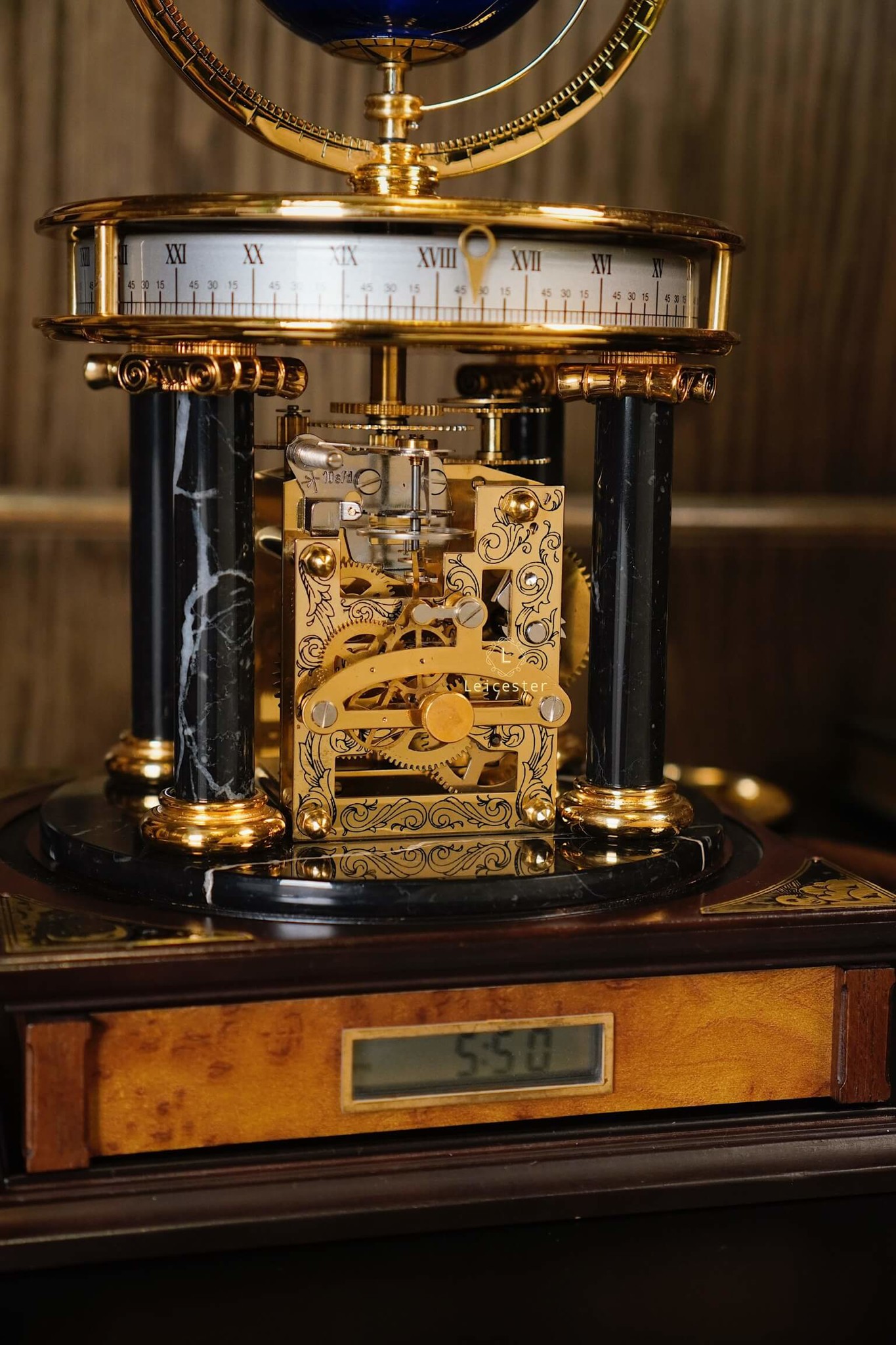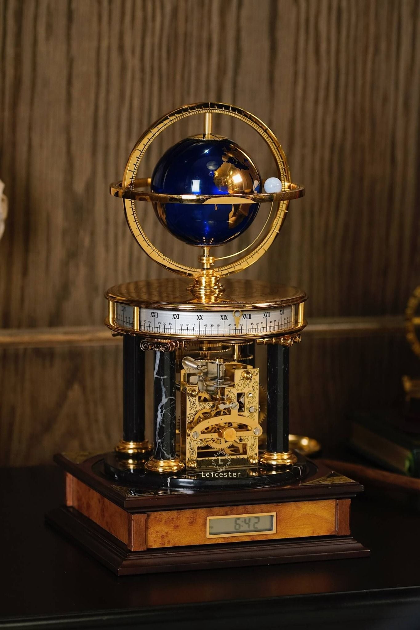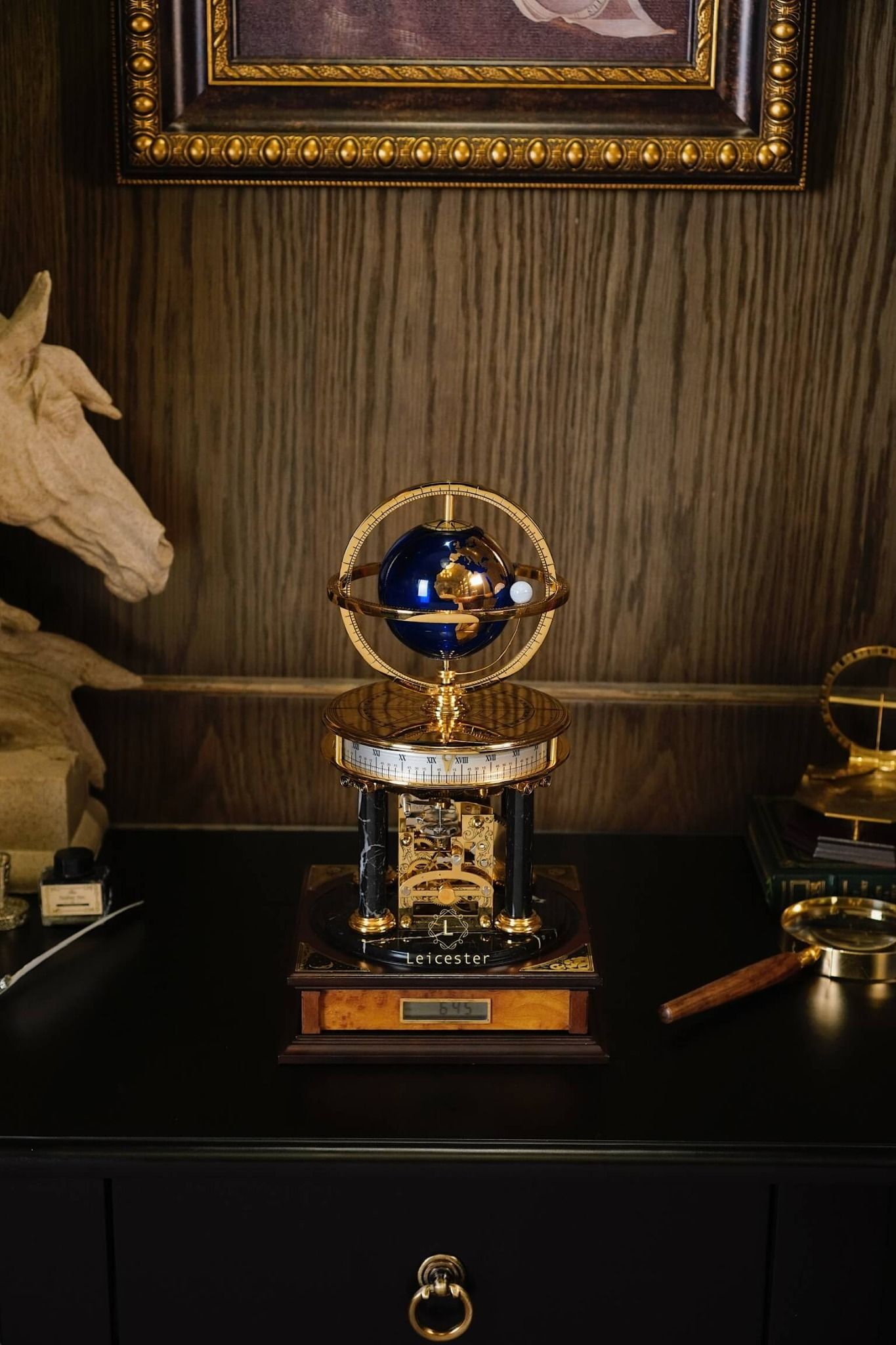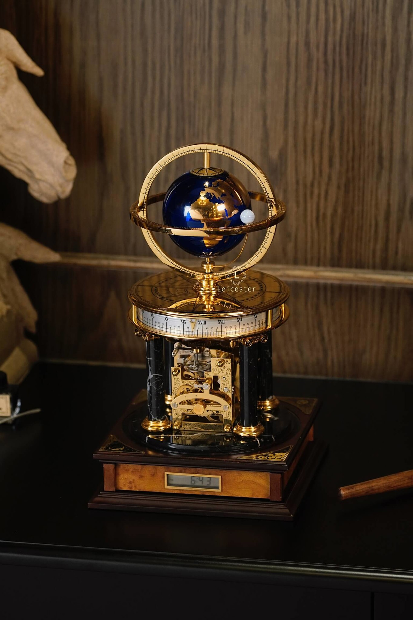 Chiếc Millennium Clock do Franklin Mint thiết kế và sản xuất dưới sự cấp phép của Royal Geographical Society (Hiệp hội Địa lý Hoàng gia Anh), nhằm kỷ niệm thiên niên kỷ mới. Lấy cảm hứng từ thiên văn học và địa lý, đồng hồ có thiết kế mái vòm độc đáo, với một quả địa cầu ở trung tâm và một vật thể nhỏ hơn tượng trưng cho Mặt Trăng. Sản phẩm được chế tác từ đồng thau mạ vàng, kính, gỗ và đá cẩm thạch, mang phong cách cổ điển châu Âu, toát lên vẻ sang trọng và tinh tế.