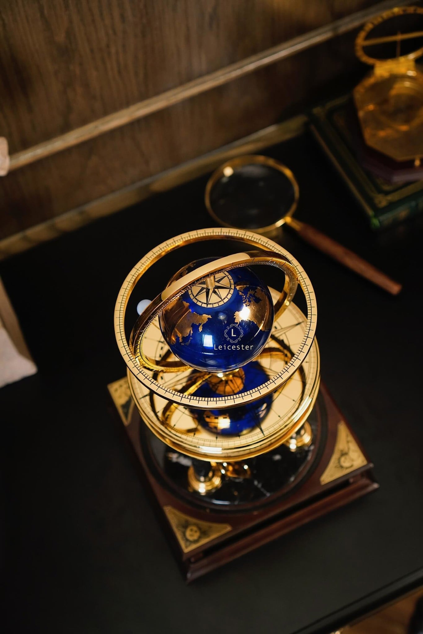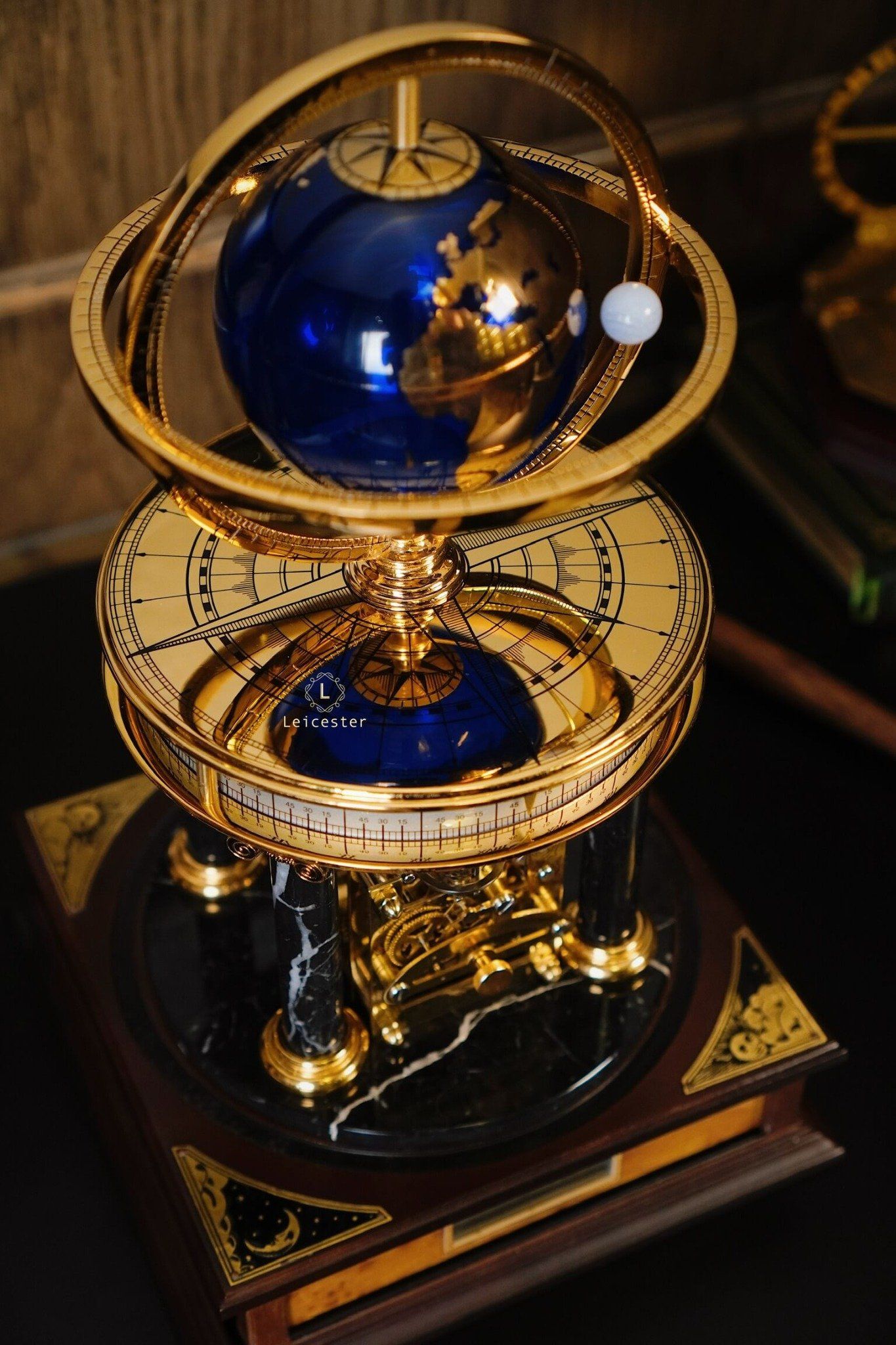 Chất liệu: Kính, đồng mạ vàng, plastic, gỗ, lapis, đá cẩm thạch