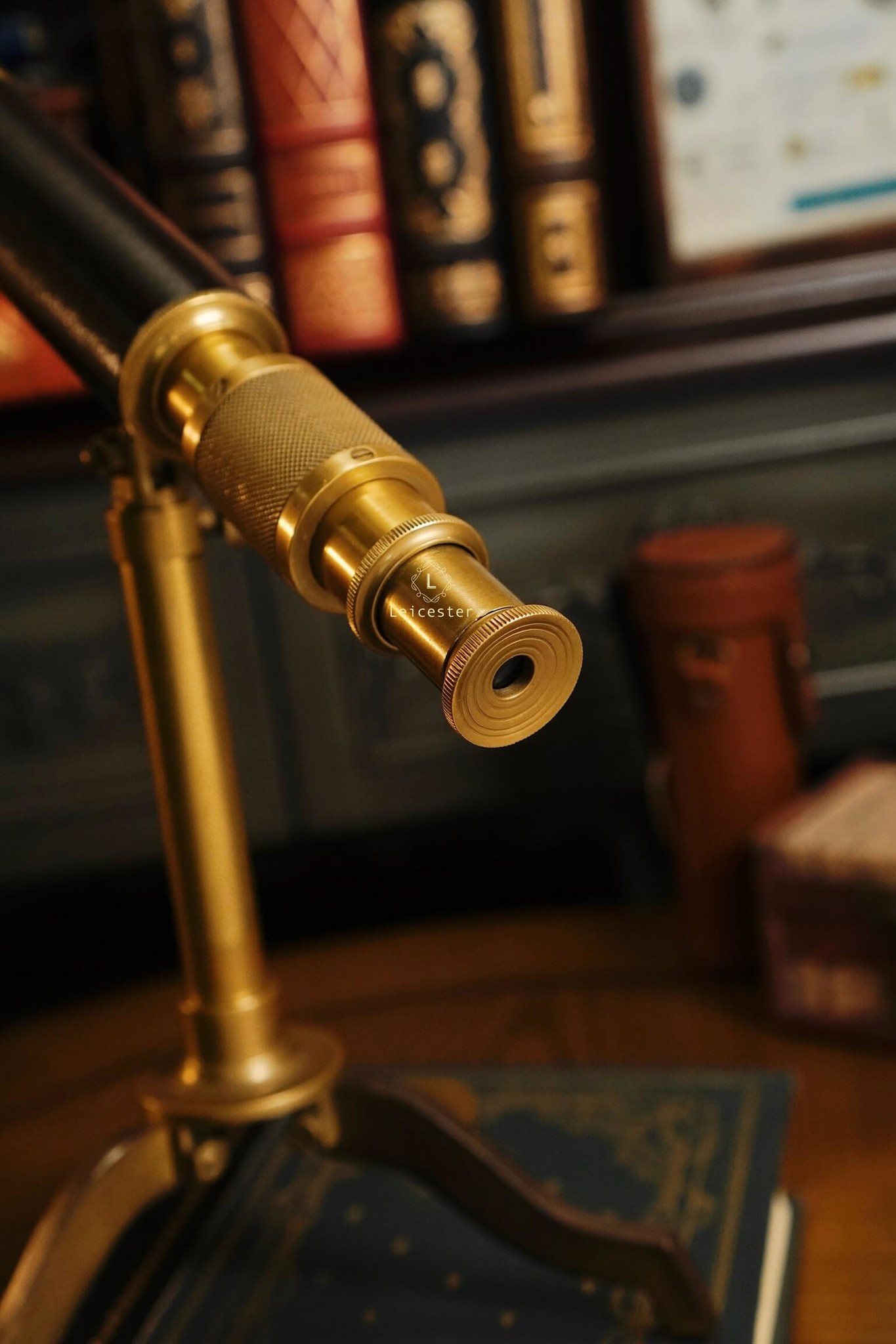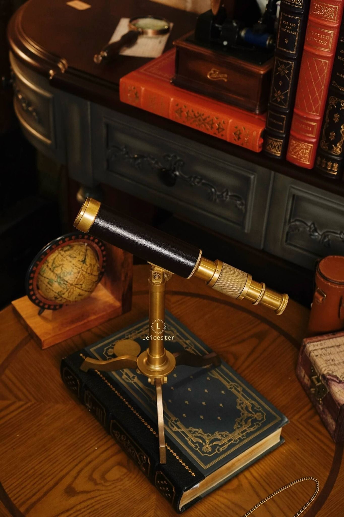 Là một chiếc kính viễn vọng cổ điển được bọc da có giá đỡ bằng đồng thau, dễ dàng tháo rời và sử dụng.