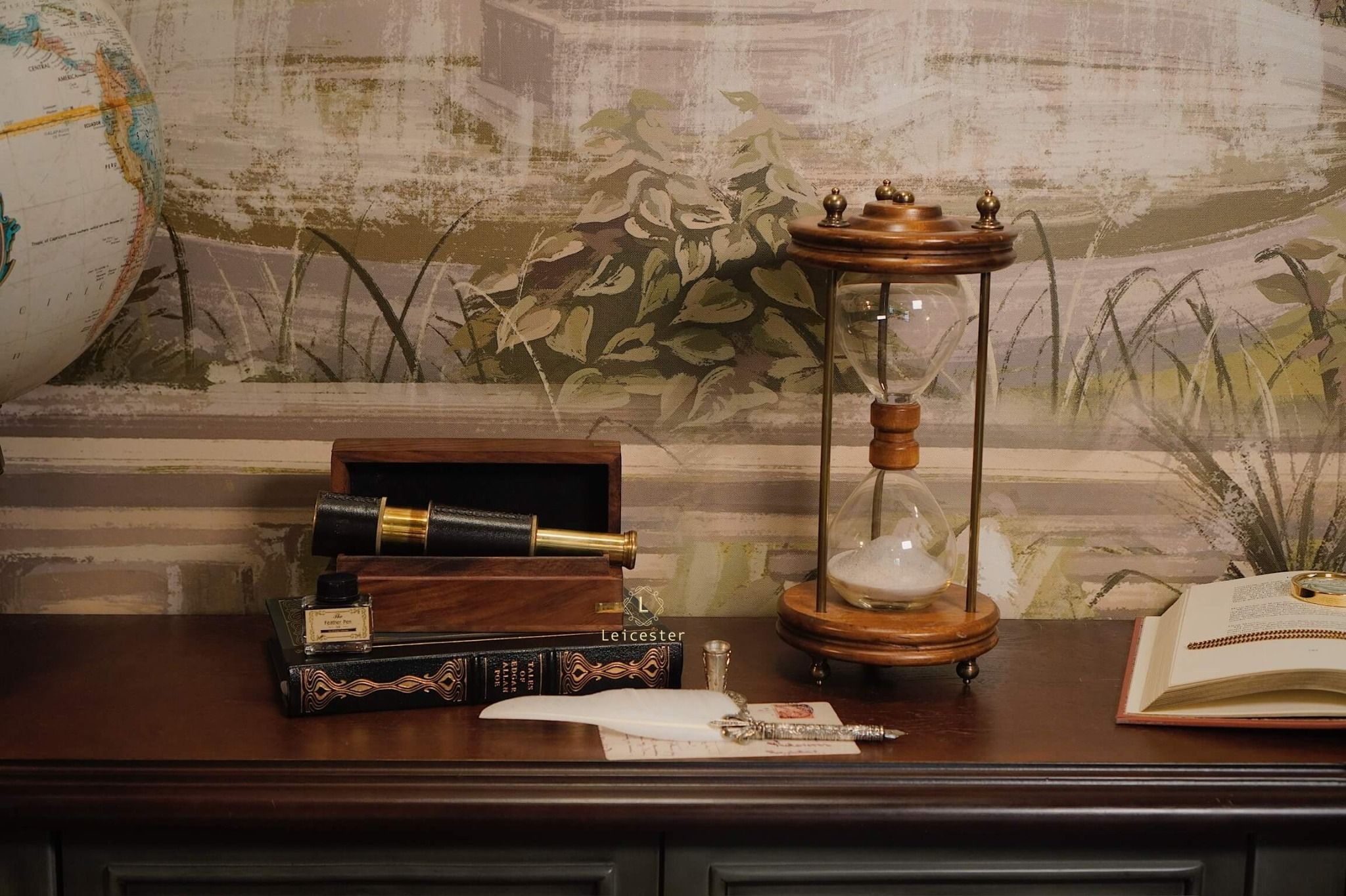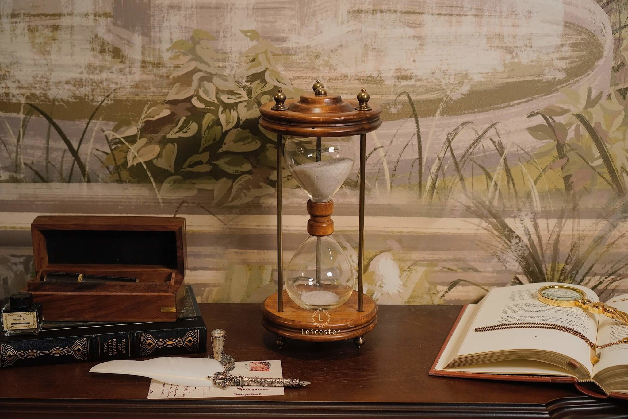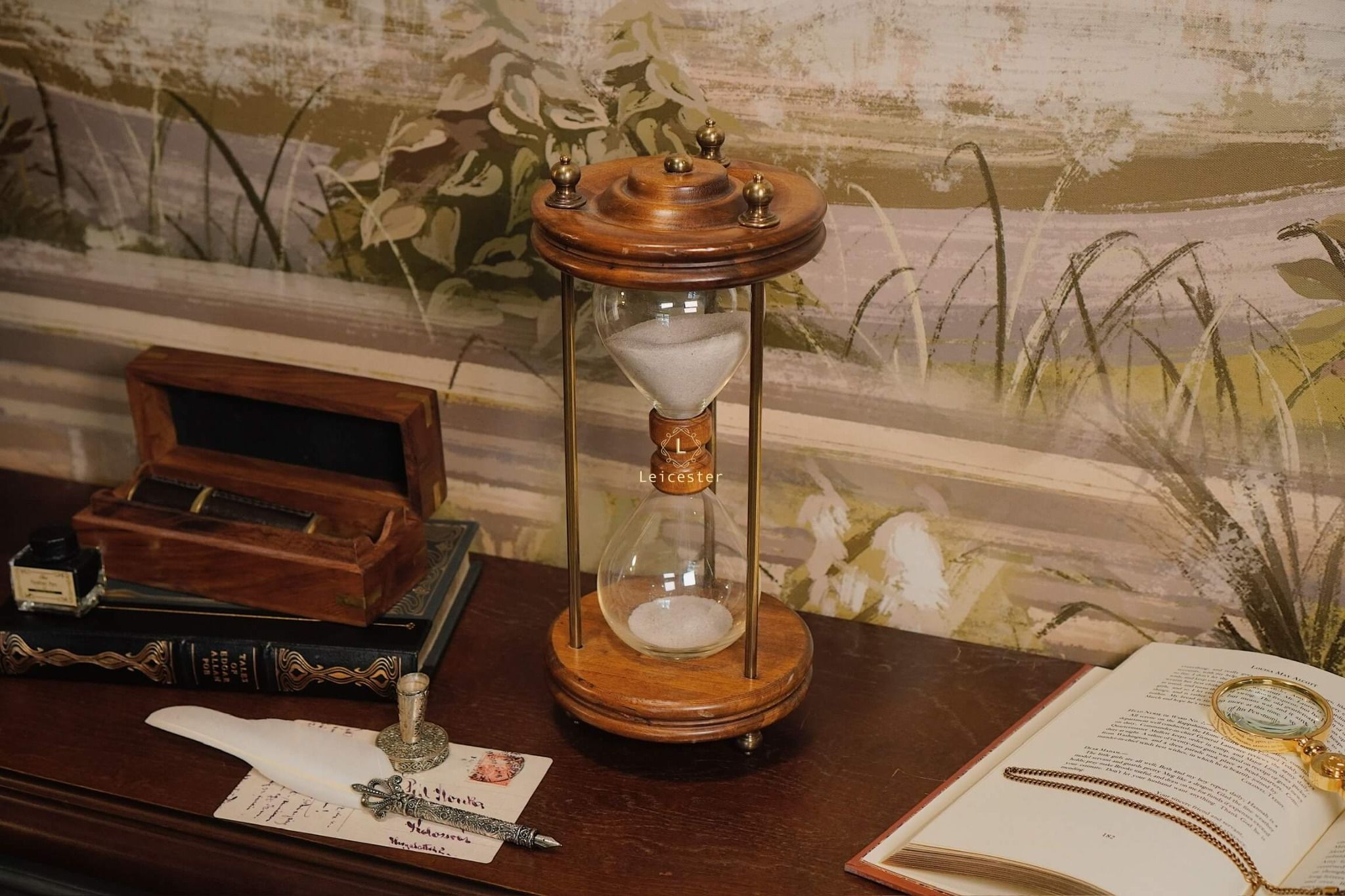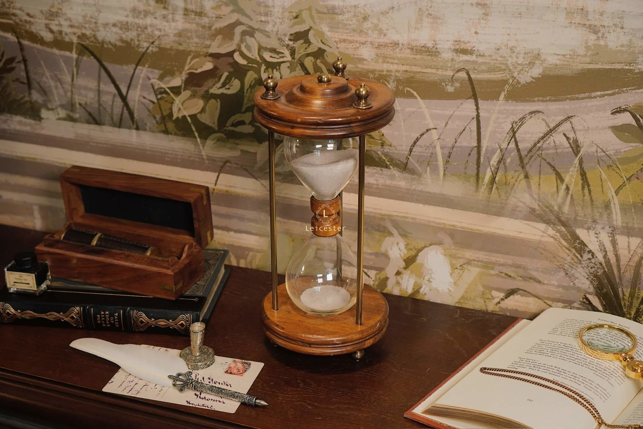 Chất liệu: Gỗ, kính, đồng, cát mịn
