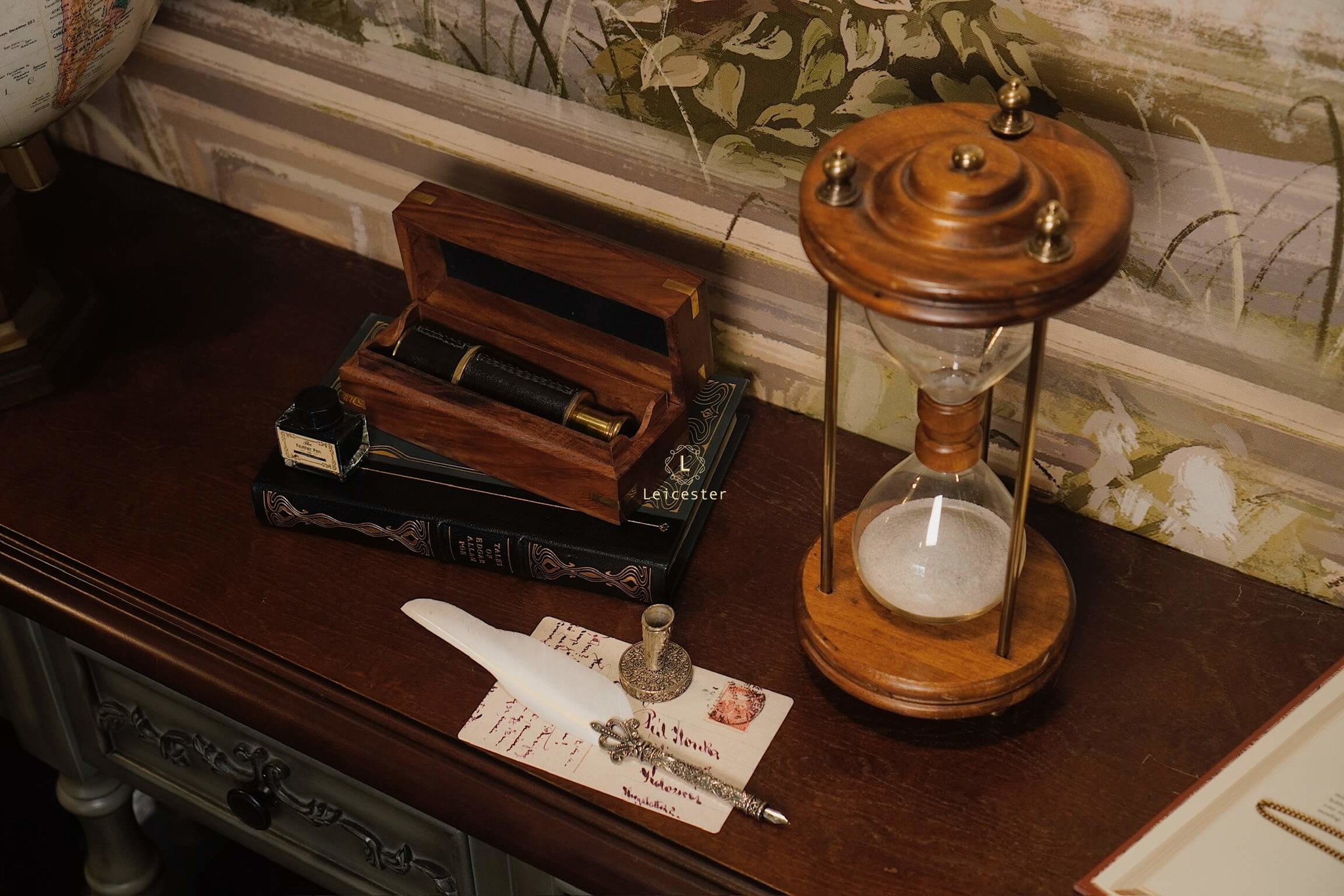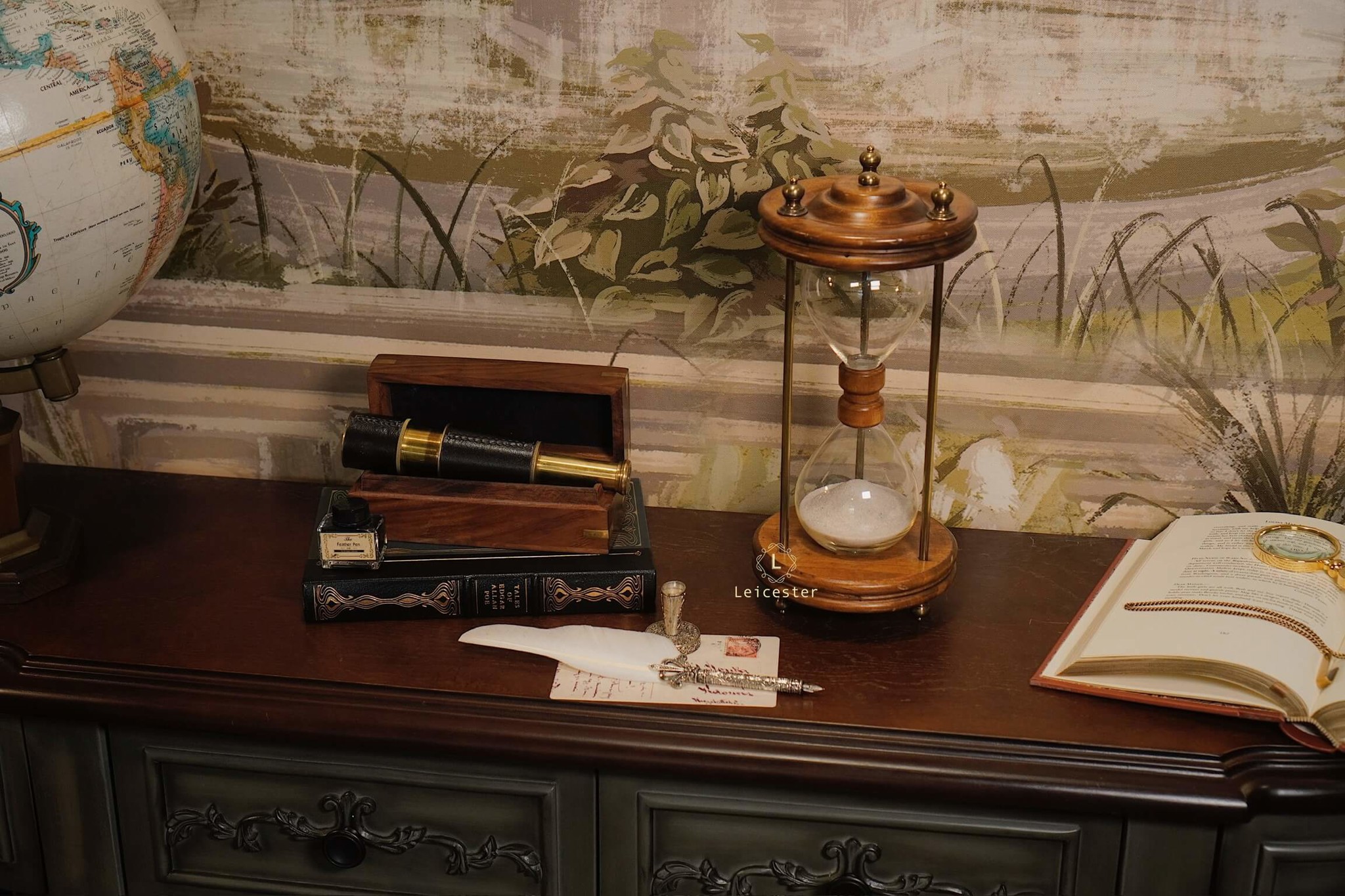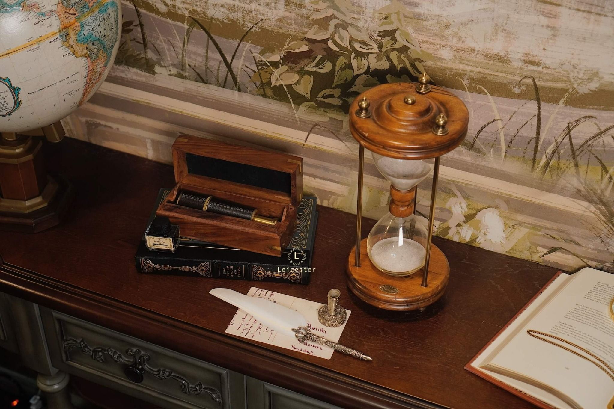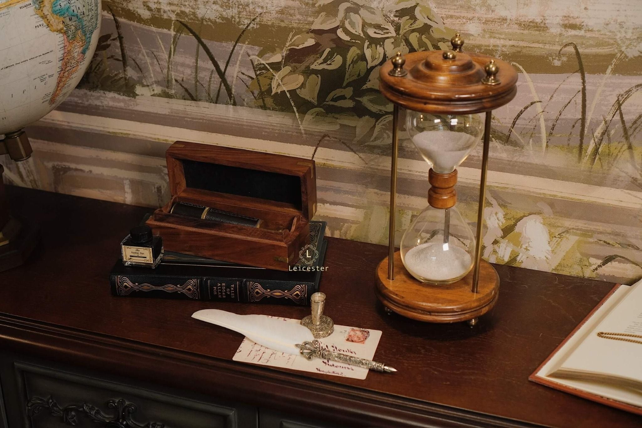 Chất liệu: Gỗ, kính, đồng, cát mịn