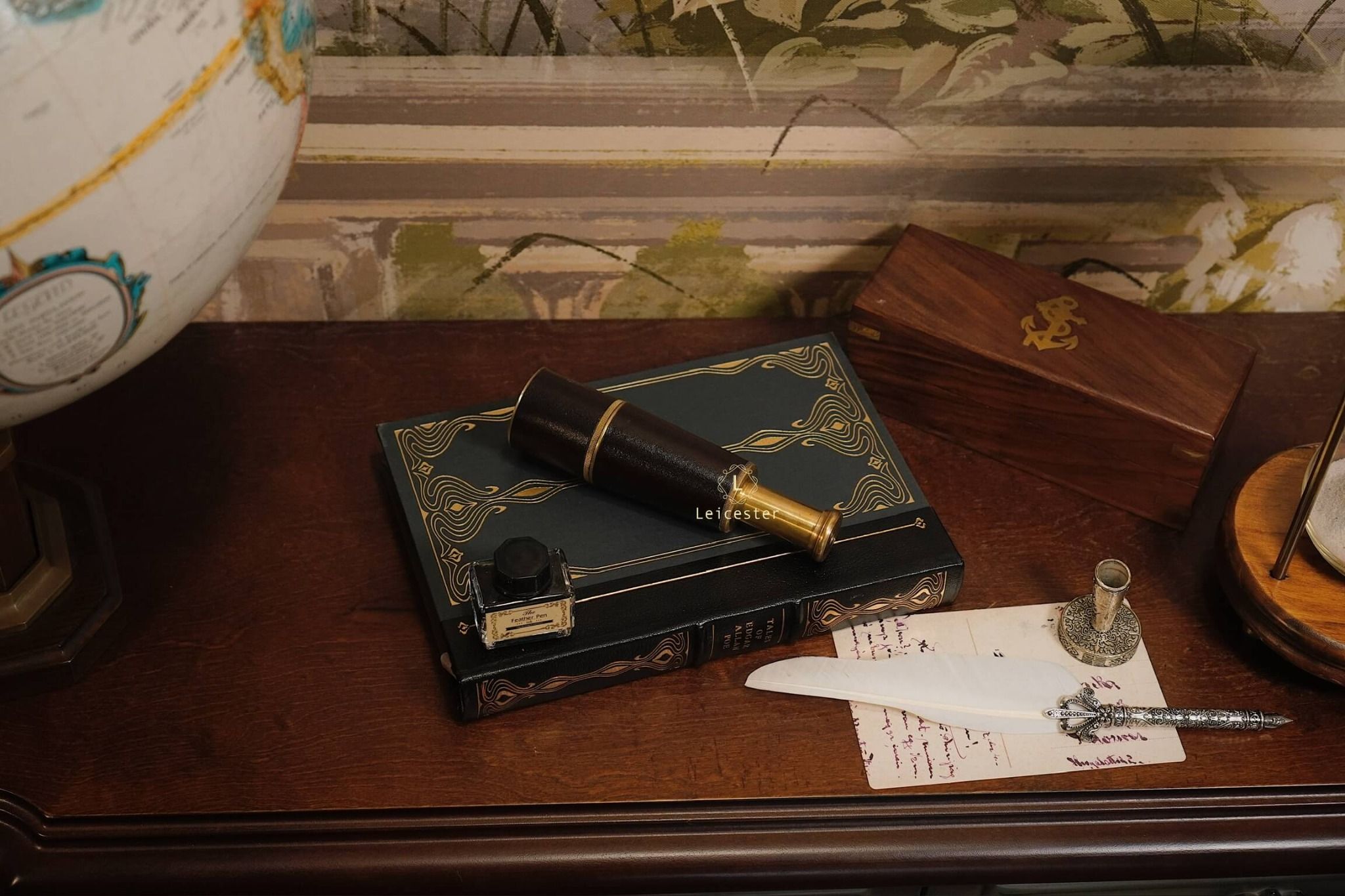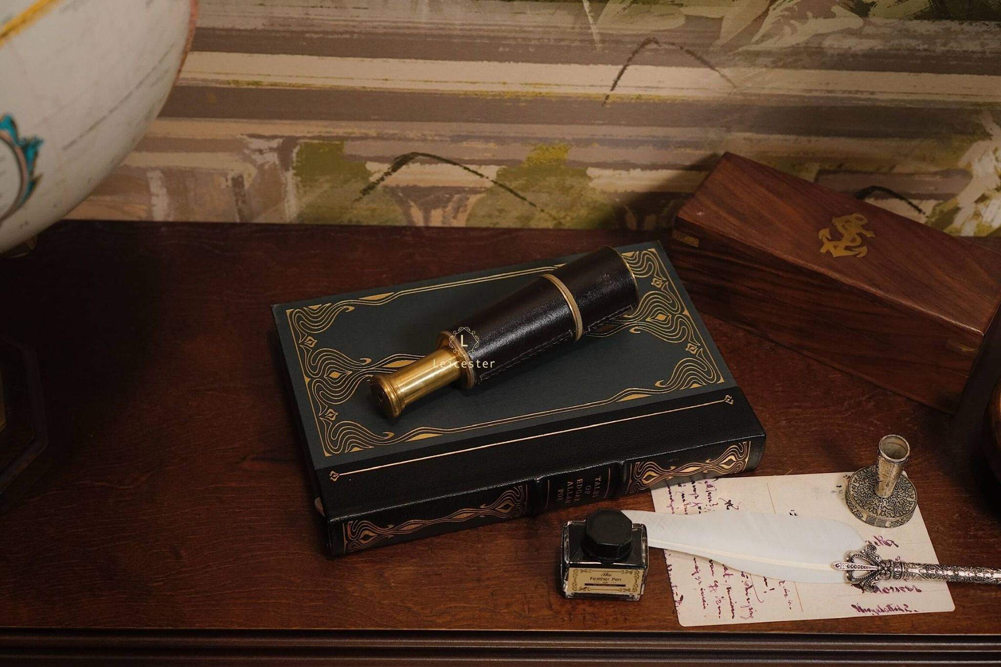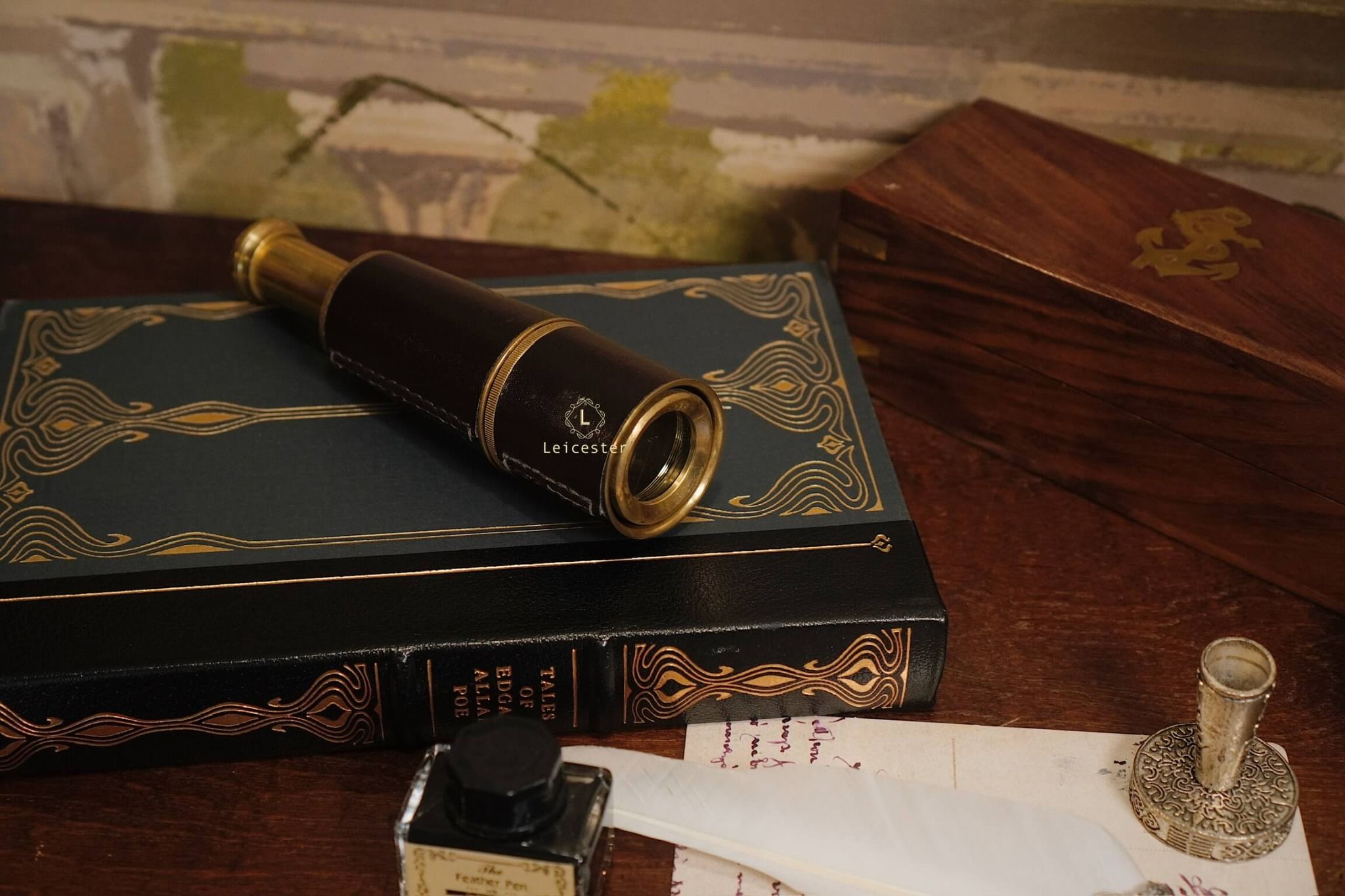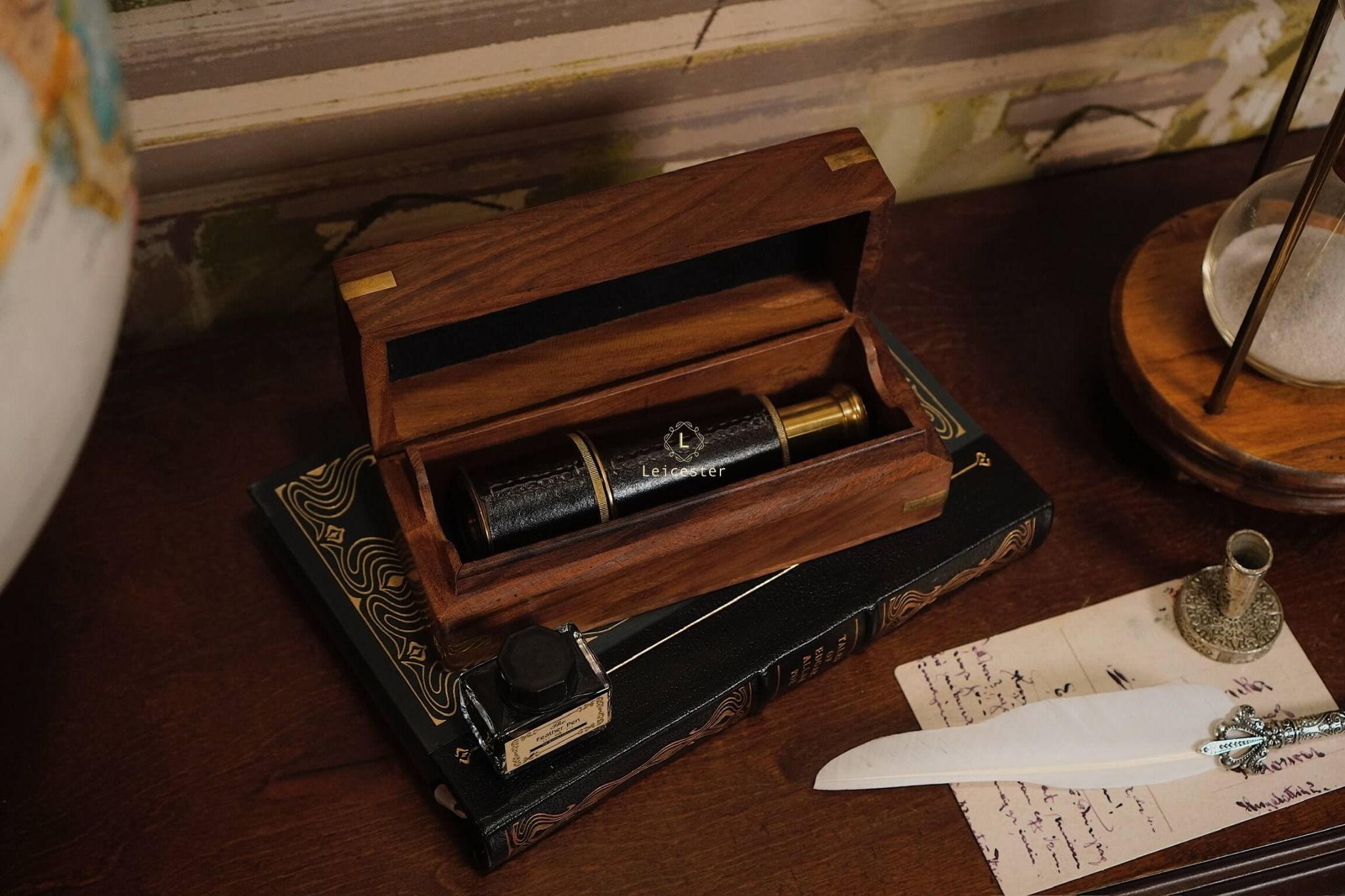Ống nhòm cướp biển mang phong cách Vintage, được chế tác bằng đồng thau bọc da chi tiết, có thấu kính lên đến 5X mang đến tầm nhìn lý tưởng với người dùng. Sản phẩm được đặt trang trọng trong hộp gỗ lót nhung cổ điển.