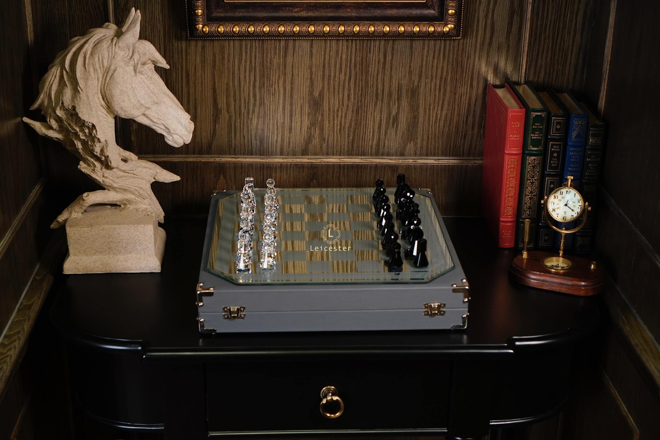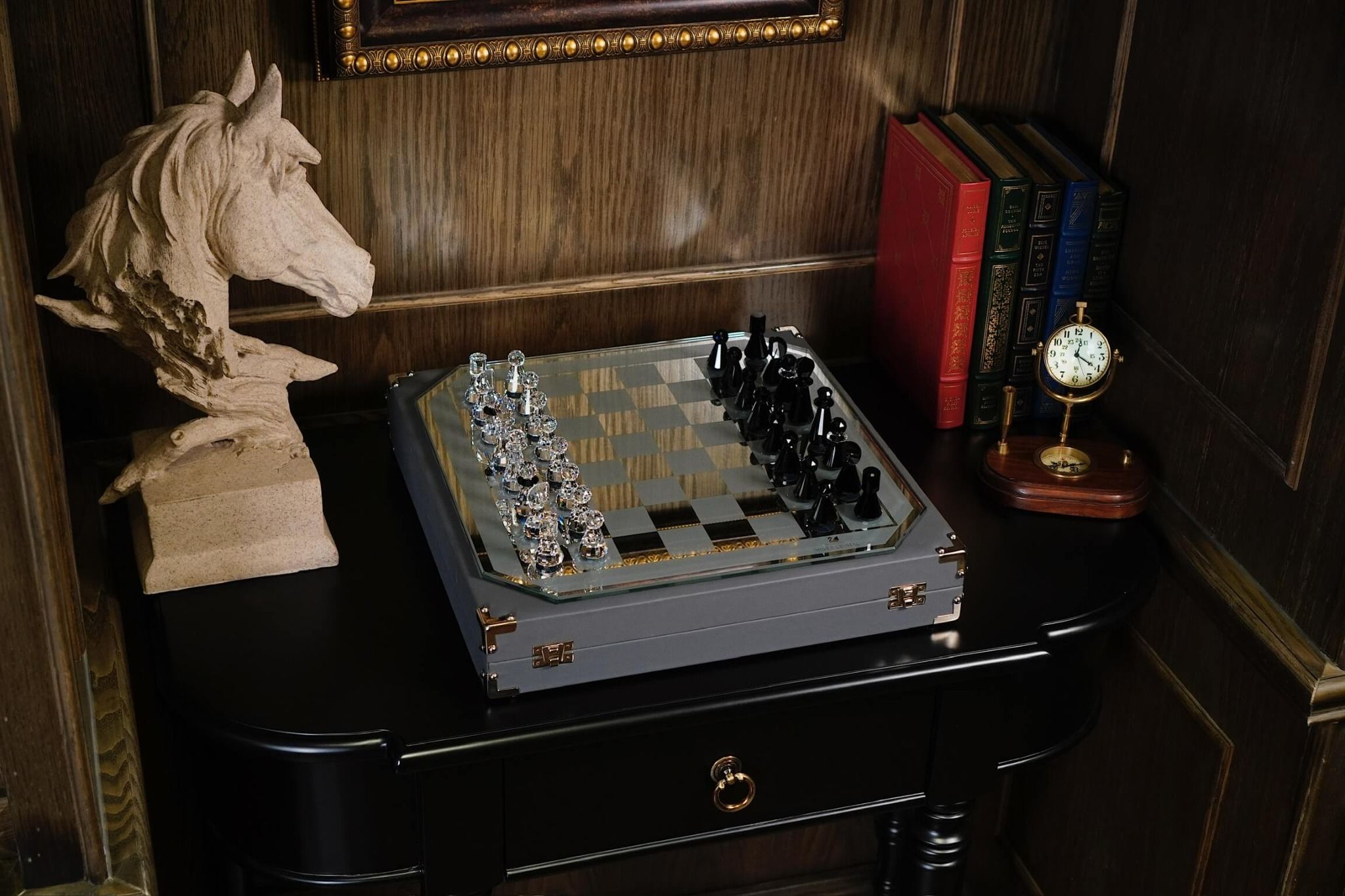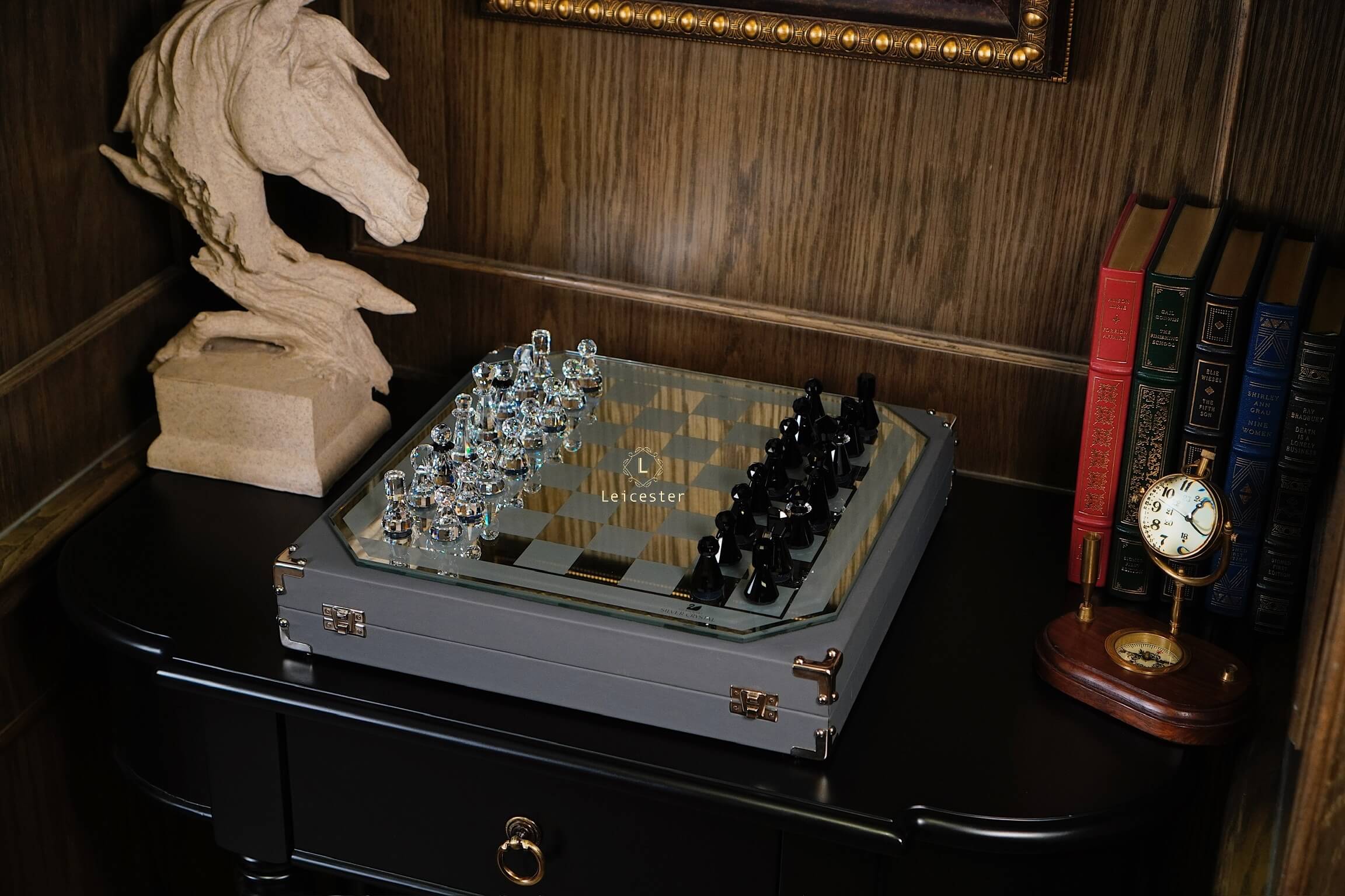 Bộ cờ vua tinh tế này được thiết kế bởi Max Schreck cho loạt phim “Trò chơi vương quyền”. Bàn cờ là kính tráng gương với các ô vuông được sơn và mặt sau được lot nhung. 32 quân cờ đều là pha lê Swarovski trong và đen và đều được đánh logo dưới đế. Bàn cờ cũng có biểu tượng thiên nga “Swarovski Silver Crystal”. Sản phẩm này được hãng giới thiệu vào năm 1984 và ngừng sản xuất vào năm 2007.