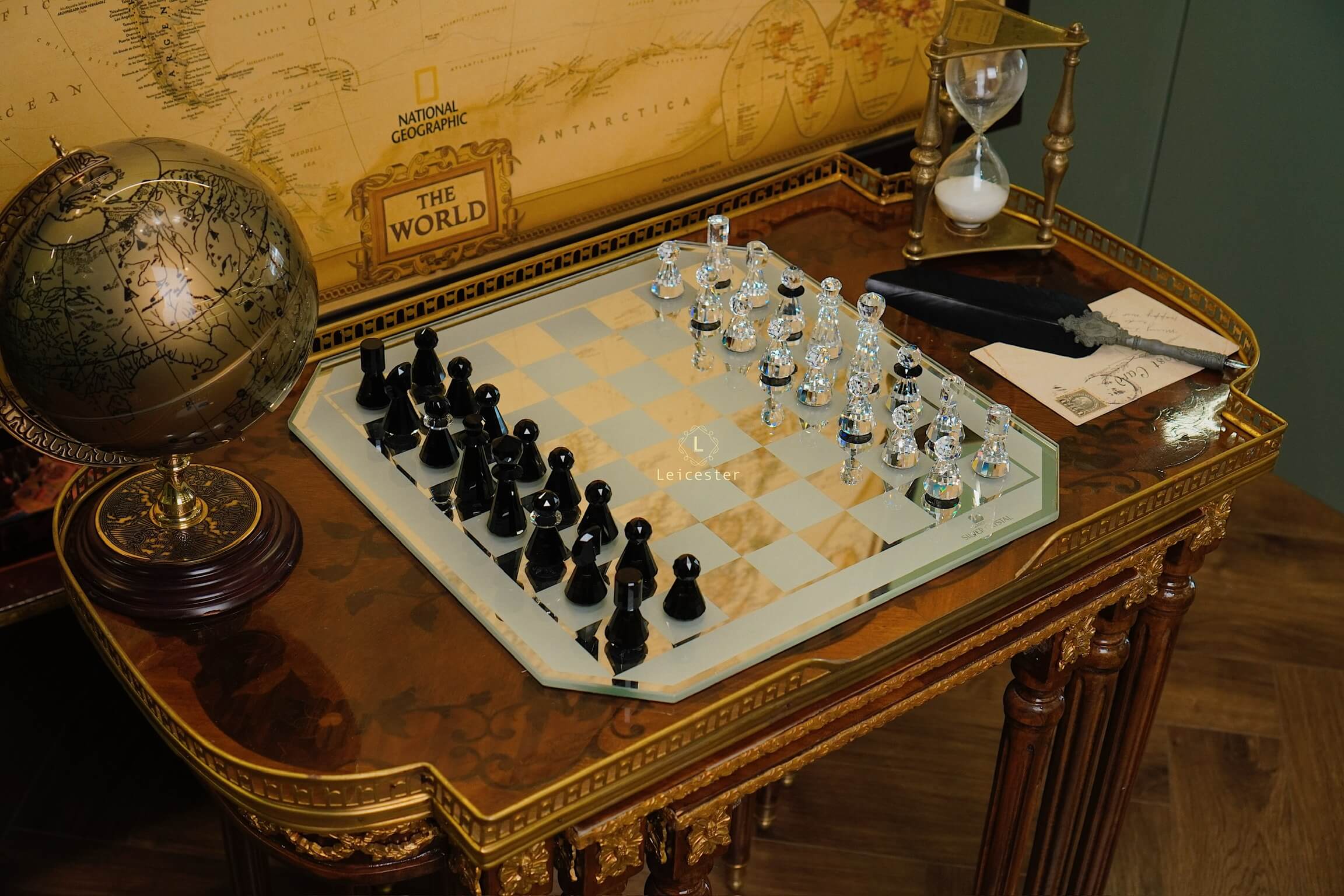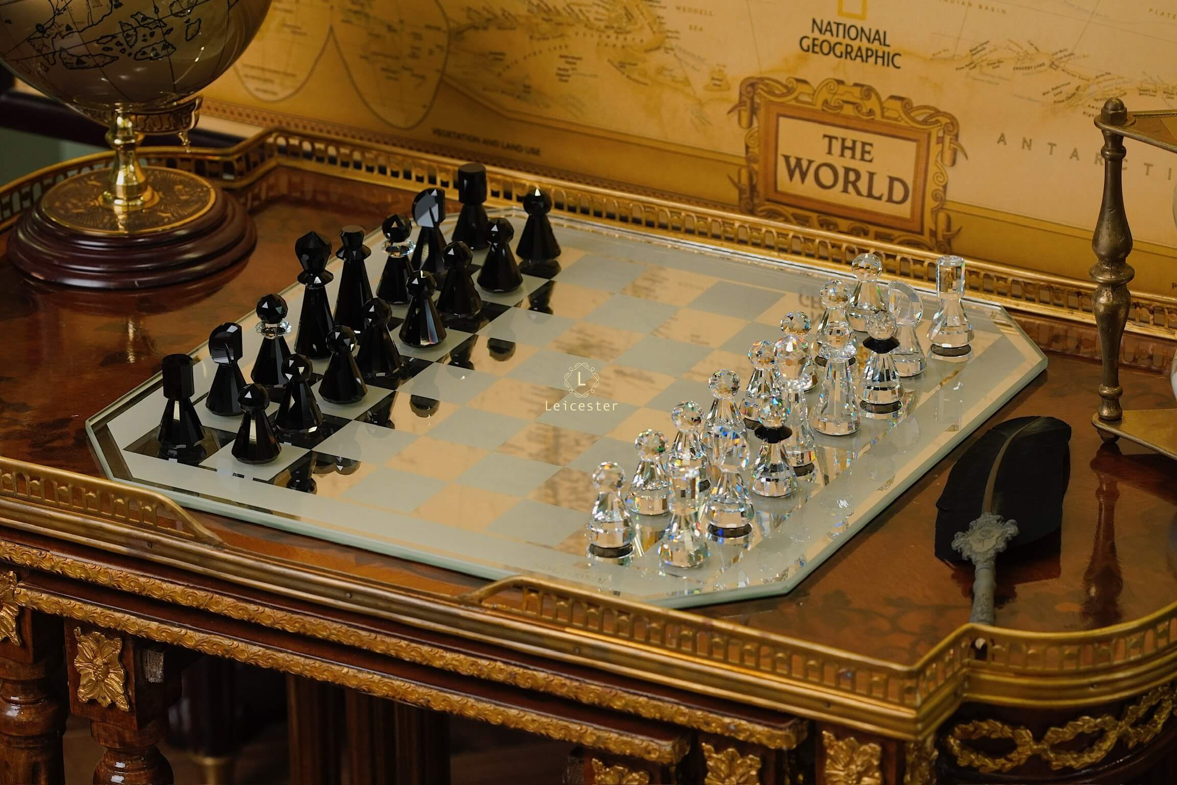 Bộ cờ vua tinh tế này được thiết kế bởi Max Schreck cho loạt phim “Trò chơi vương quyền”. Bàn cờ là kính tráng gương với các ô vuông được sơn và mặt sau được lot nhung. 32 quân cờ đều là pha lê Swarovski trong và đen và đều được đánh logo dưới đế. Bàn cờ cũng có biểu tượng thiên nga “Swarovski Silver Crystal”. Sản phẩm này được hãng giới thiệu vào năm 1984 và ngừng sản xuất vào năm 2007.