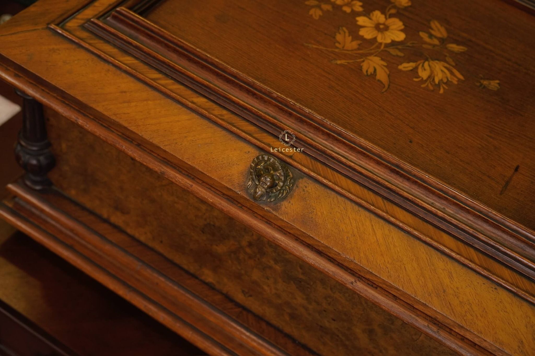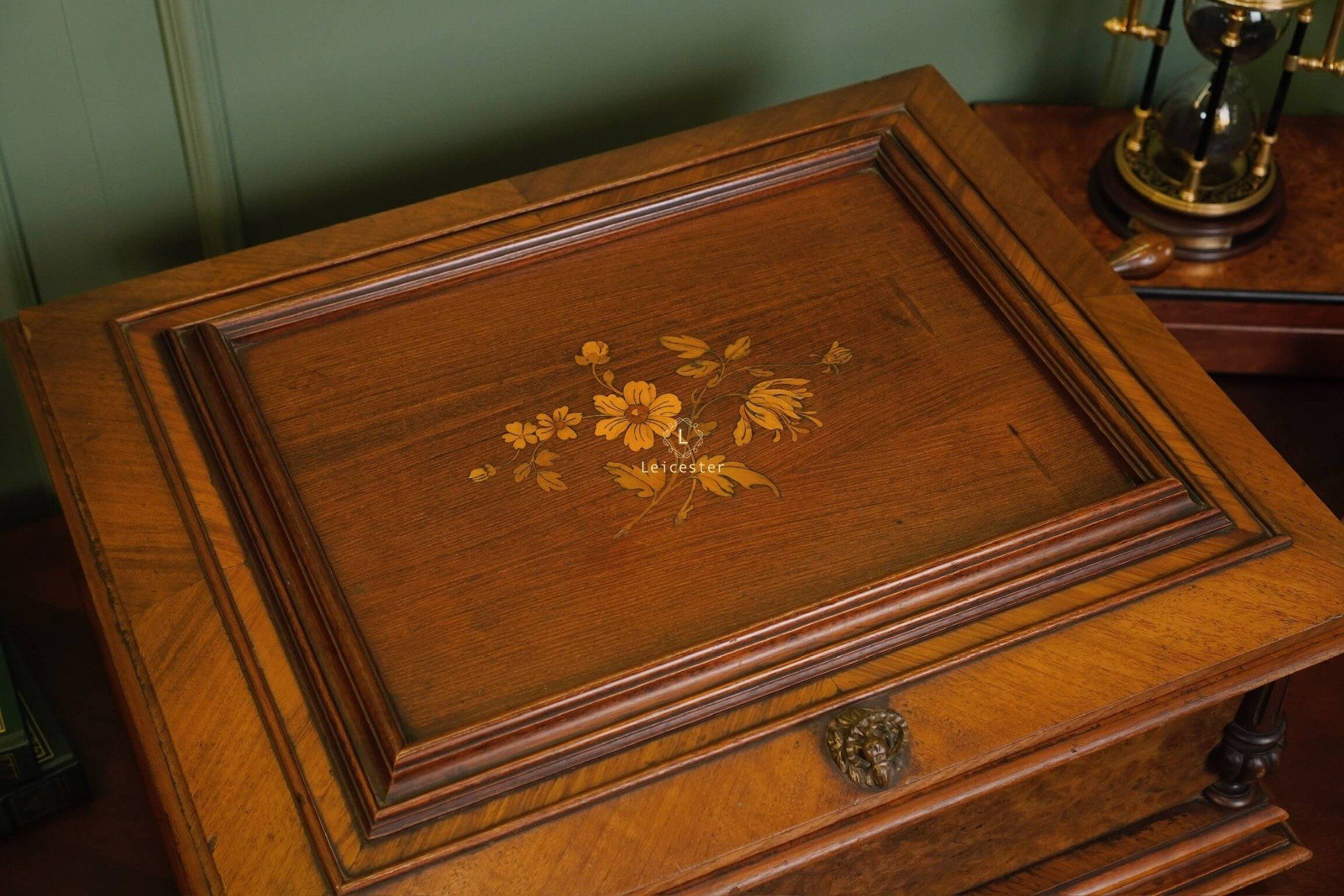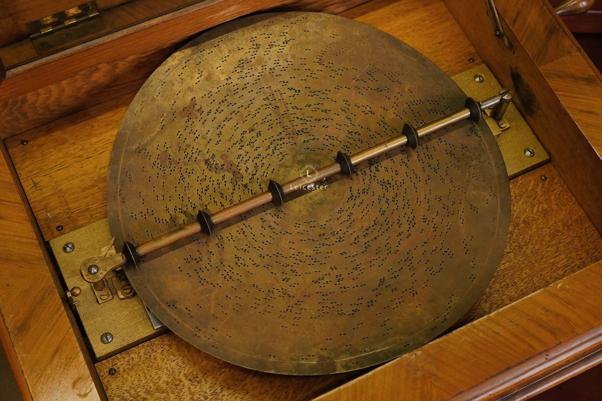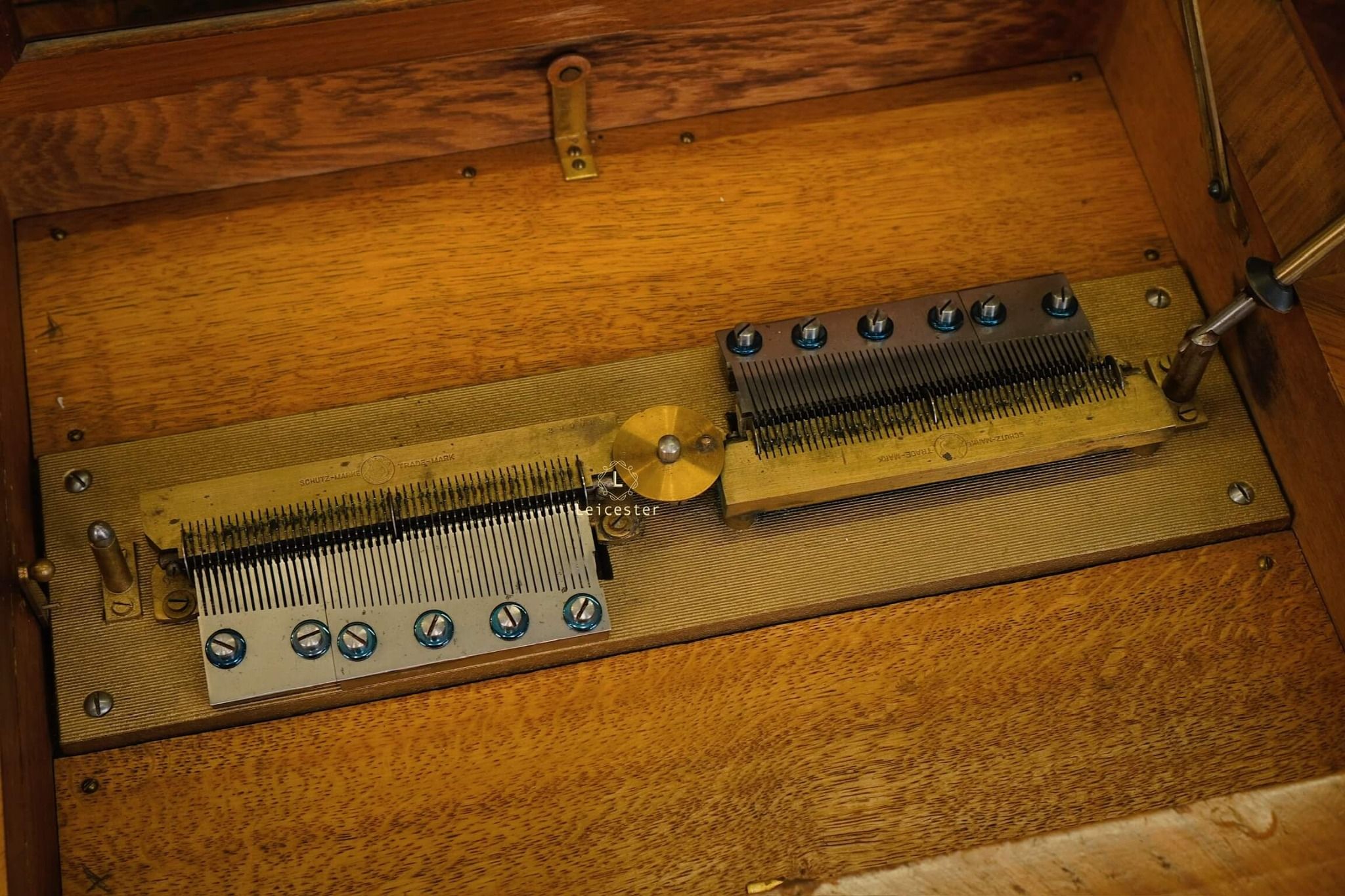 Một tuyệt phẩm kỹ nghệ cơ khí đến từ Leipzig, Đức - mang dấu ấn của sự đổi mới vào cuối thế kỷ 19. Với vẻ ngoài được thiết kế sang trọng bằng gỗ khảm cao cấp, tay cầm đồng thau chạm hình đầu thú và tấm tranh in nghệ thuật bên trong nắp toát nên sự tinh tế trong chế tác. Ngoài ra, bên trong chiếc máy cổ còn sở hữu hai lược âm độc lập và hệ thống bánh xe sao độc quyền của Paul Wendland (được cấp bằng sáng chế năm 1889), mang đến âm thanh hòa âm sâu lắng mà tinh khiết, chuẩn xác hiếm có.