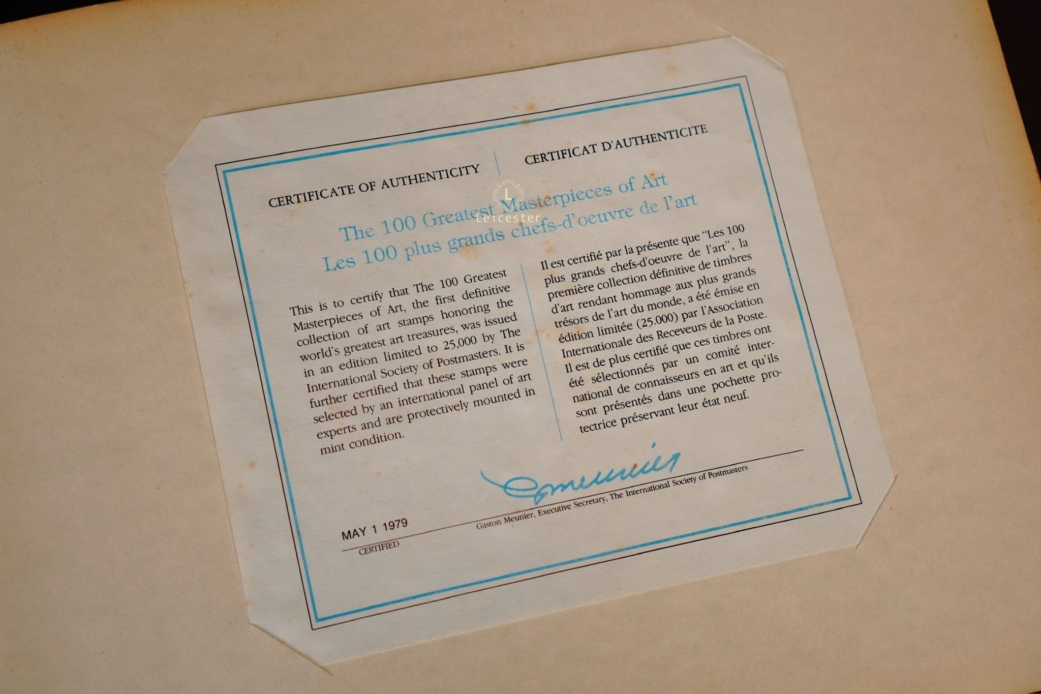 “The 100 Greatest Masterpieces of Art” là một ấn phẩm sưu tầm mang tính di sản, được biên soạn công phu và phát hành với số lượng giới hạn chỉ 25,000 bản, được phát hành ngày 1/5/1979 bởi những nhà xuất bản hàng đầu về nghệ thuật, Hiệp hội Bưu chính Quốc tế (ISP). Bộ sưu tập quy tụ 100 tác phẩm hội họa lừng danh nhất mọi thời đại, từ thời kỳ Phục Hưng đến nghệ thuật hiện đại, mỗi bức tranh đều được tái hiện bằng công nghệ in ấn cao cấp với độ sắc nét, trung thực đến từng chi tiết.