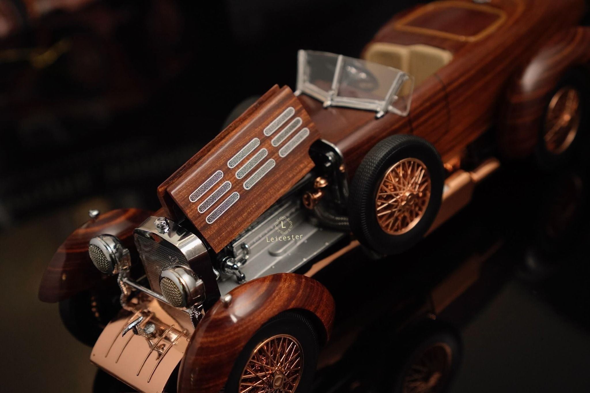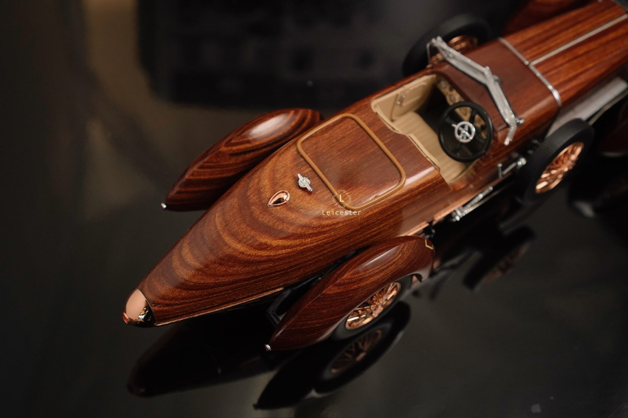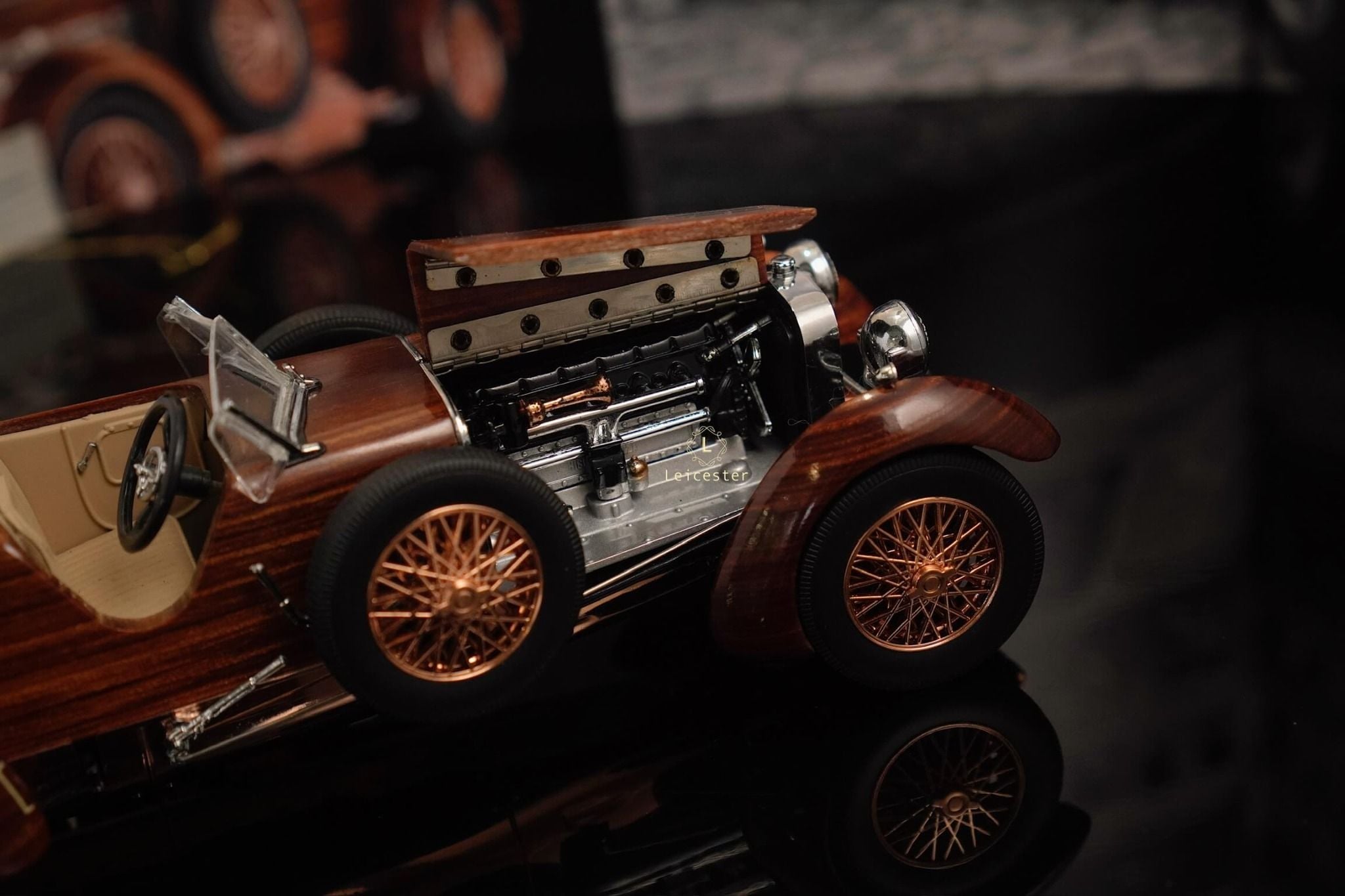 Tất nhiên, sự tái tạo đáng chú ý này được trang bị một loạt các tính năng vận hành. Vô-lăng và bánh xe thực sự quay và mui xe mở ra để lộ bản sao ngoạn mục của động cơ sáu xi-lanh thẳng hàng Hispano-Suiza nổi tiếng.