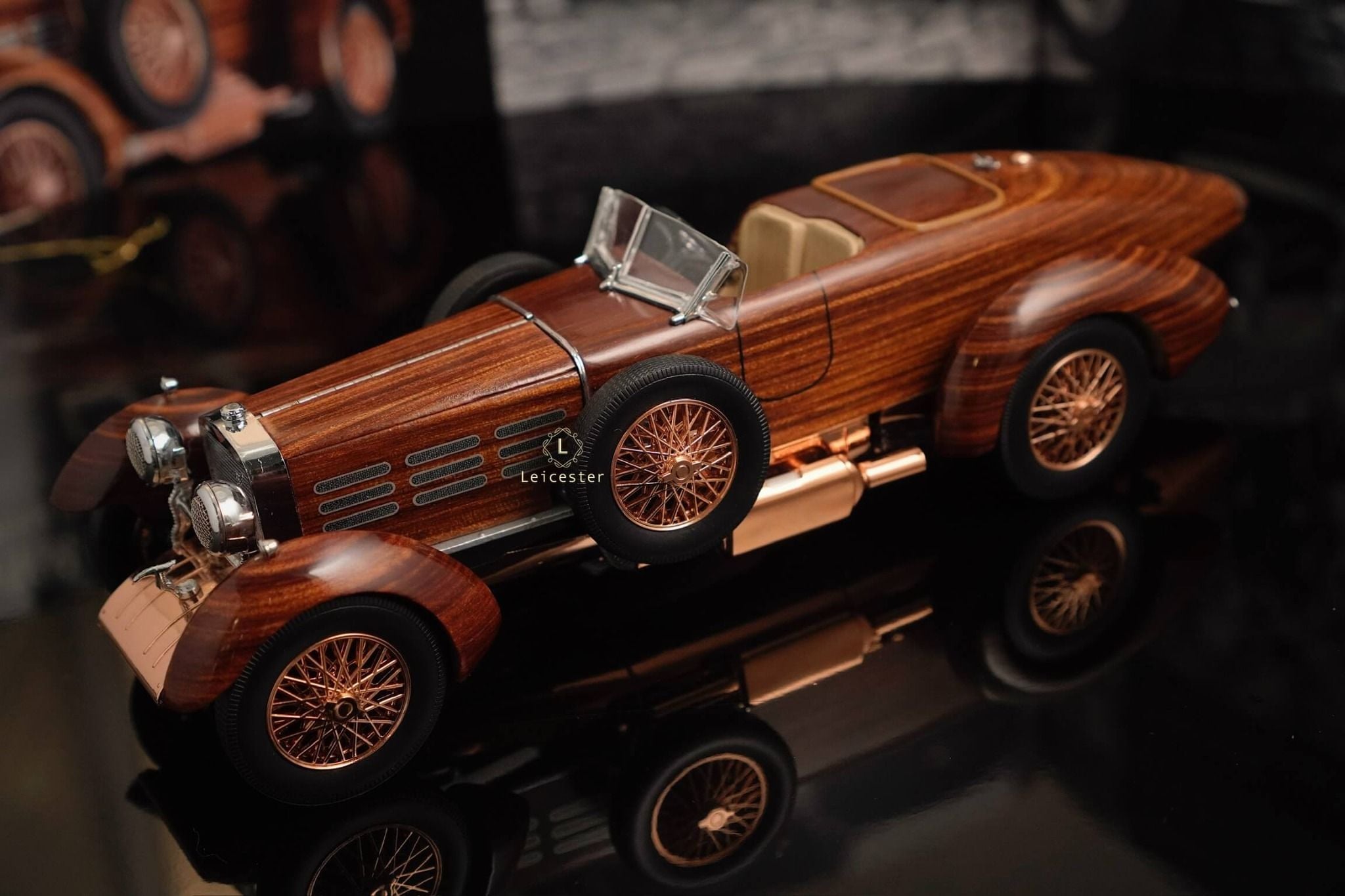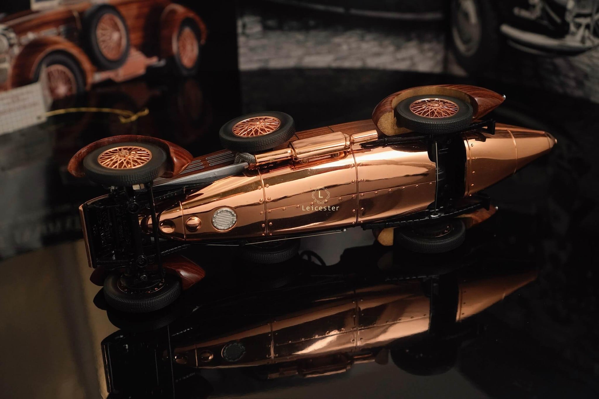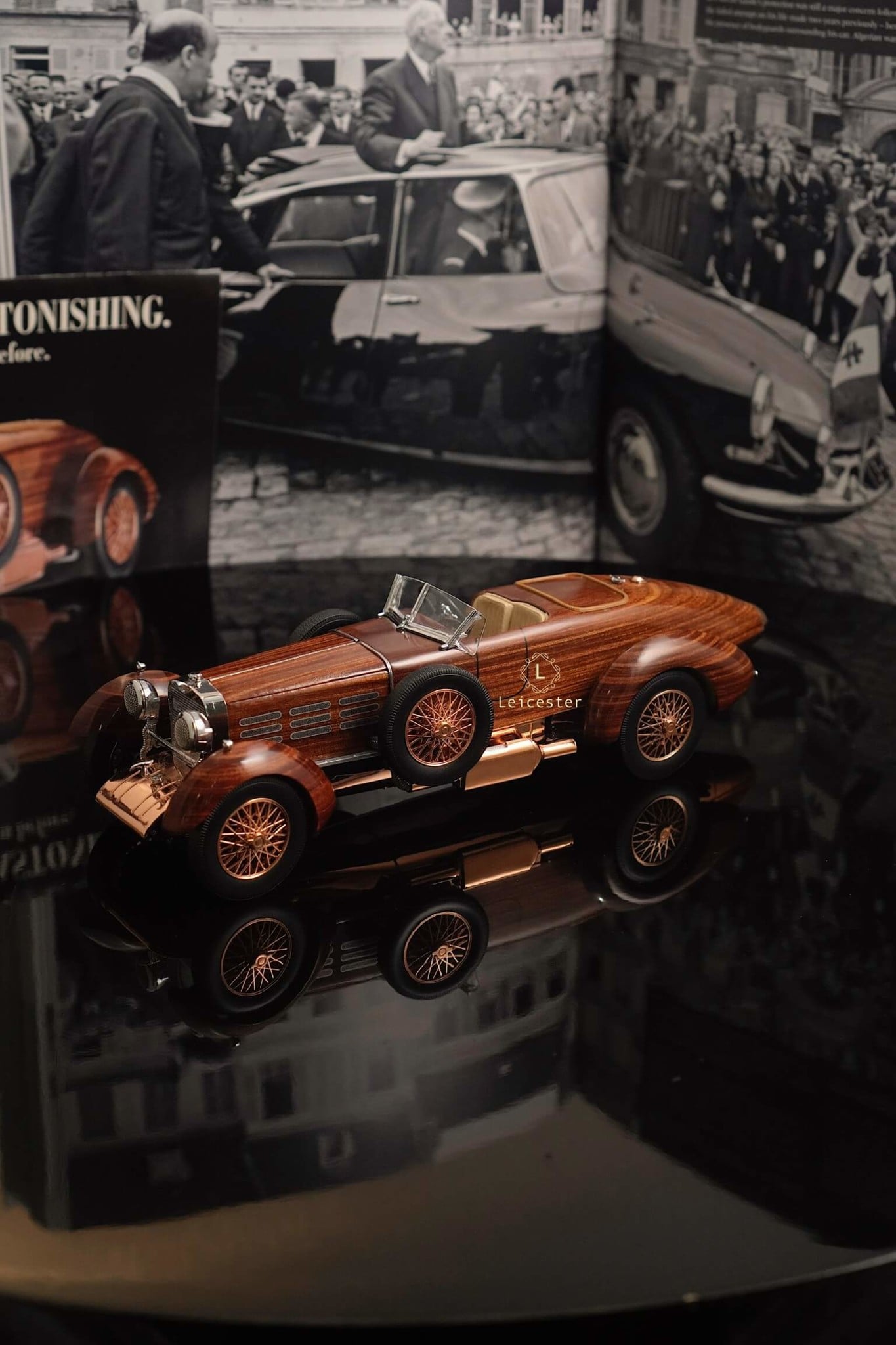 Tất nhiên, sự tái tạo đáng chú ý này được trang bị một loạt các tính năng vận hành. Vô-lăng và bánh xe thực sự quay và mui xe mở ra để lộ bản sao ngoạn mục của động cơ sáu xi-lanh thẳng hàng Hispano-Suiza nổi tiếng.
