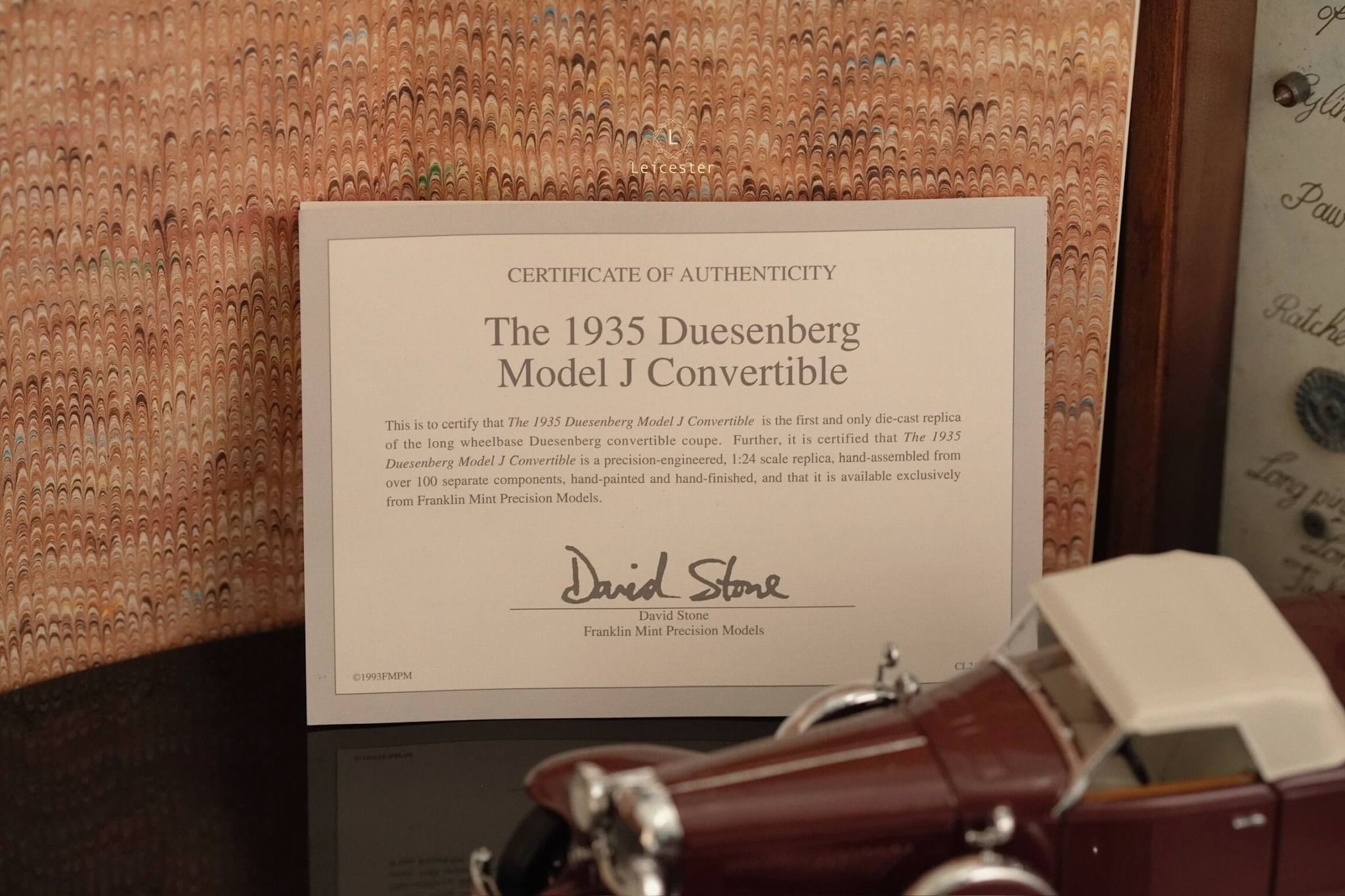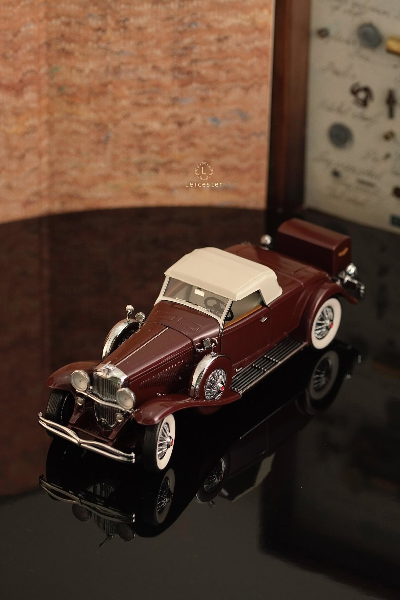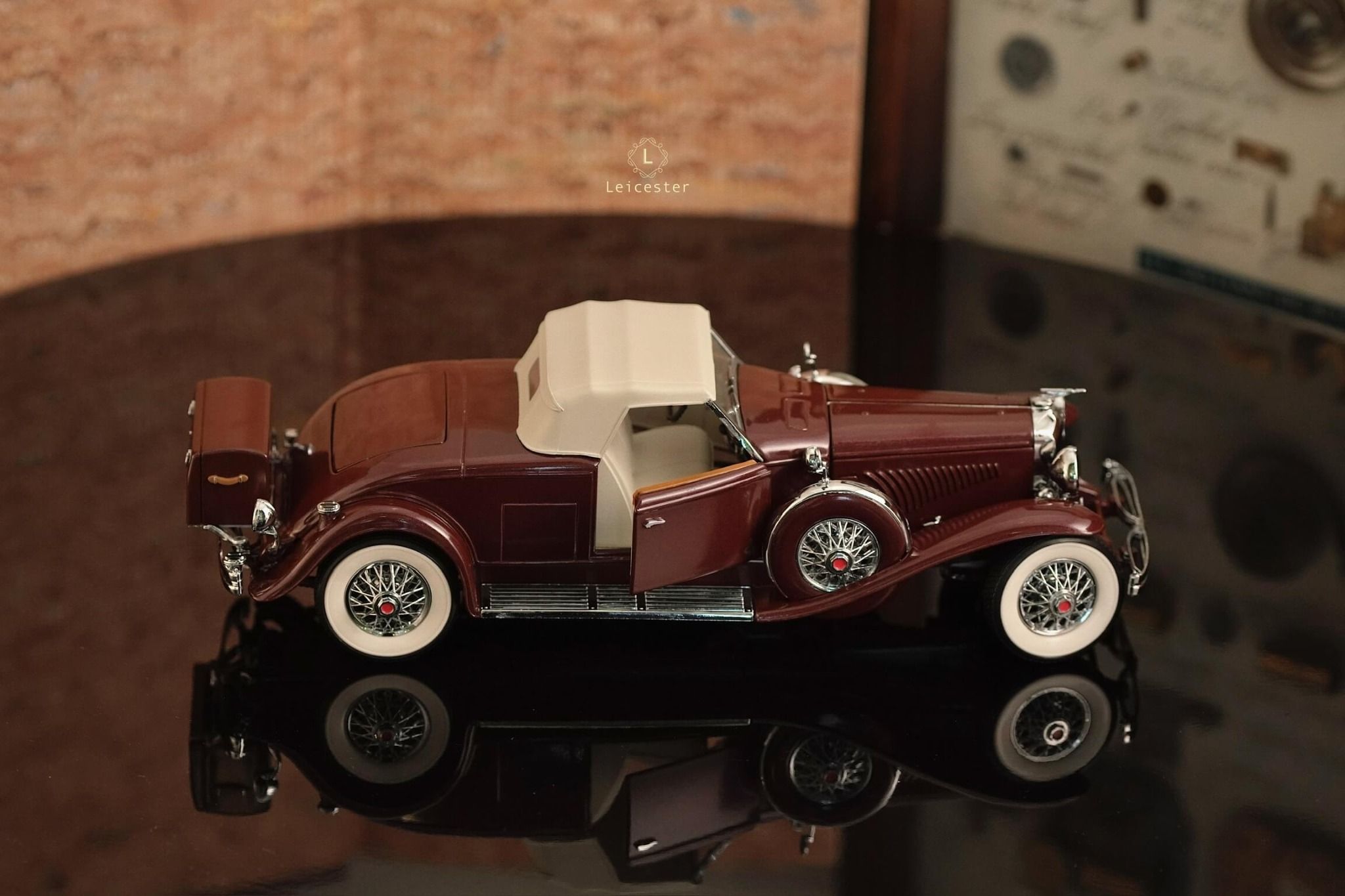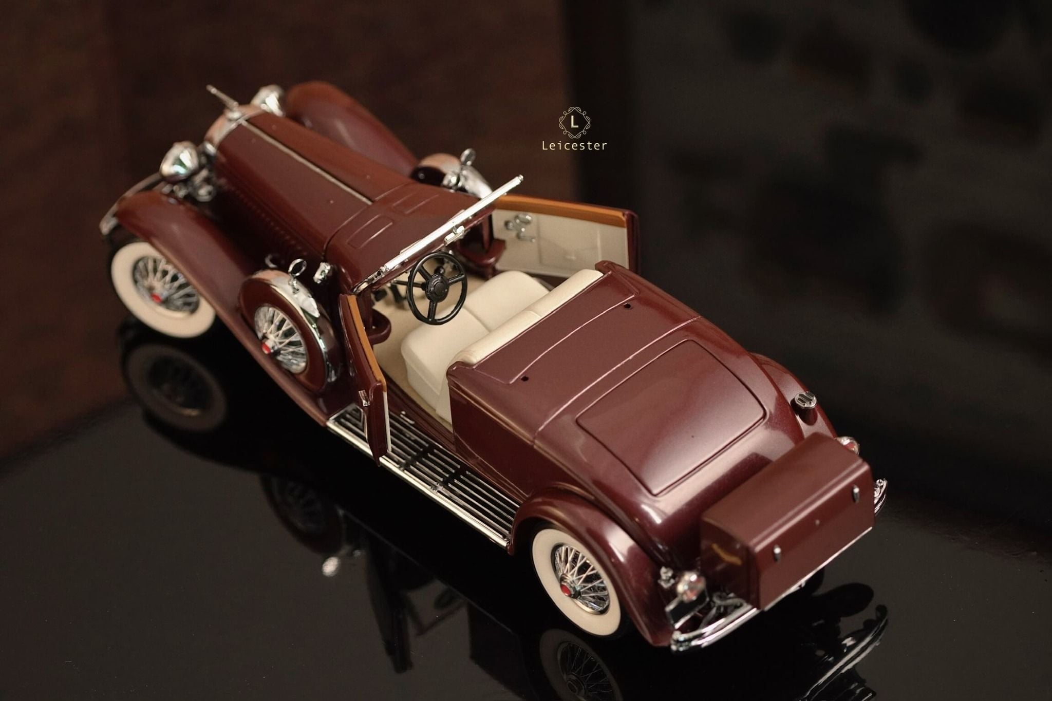 Duesenberg Model J được tái tạo lại trong một bản sao với tỷ lệ 1:24 được chế tác, lắp ráp thủ công từ hơn 100 thành phần riêng biệt từ bộ máy ấn tượng dưới mui xe đến các chi tiết như ghế ngồi và lốp xe.
