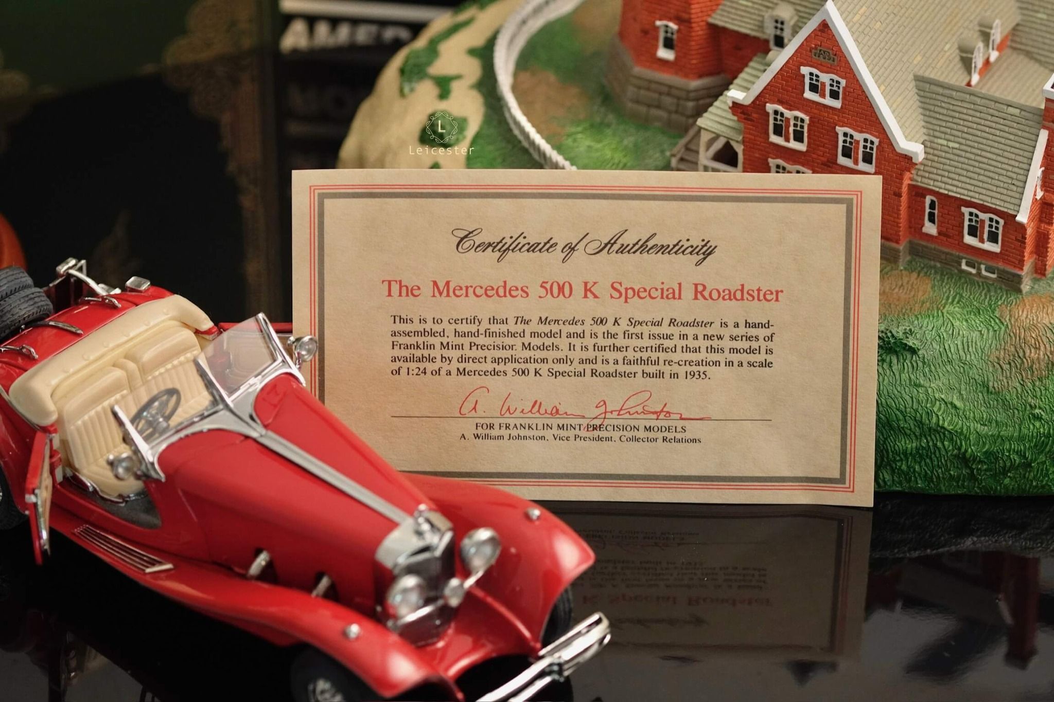 Chiếc Mercedes 500K Special Roadster đã được Franklin Mint tái hiện lại theo tỷ lệ 1:24 với thiết kế chính xác đến từng chi tiết, lắp ráp, sơn, đánh bóng và hoàn thiện thủ công từ nhiều bộ phận riêng biệt.