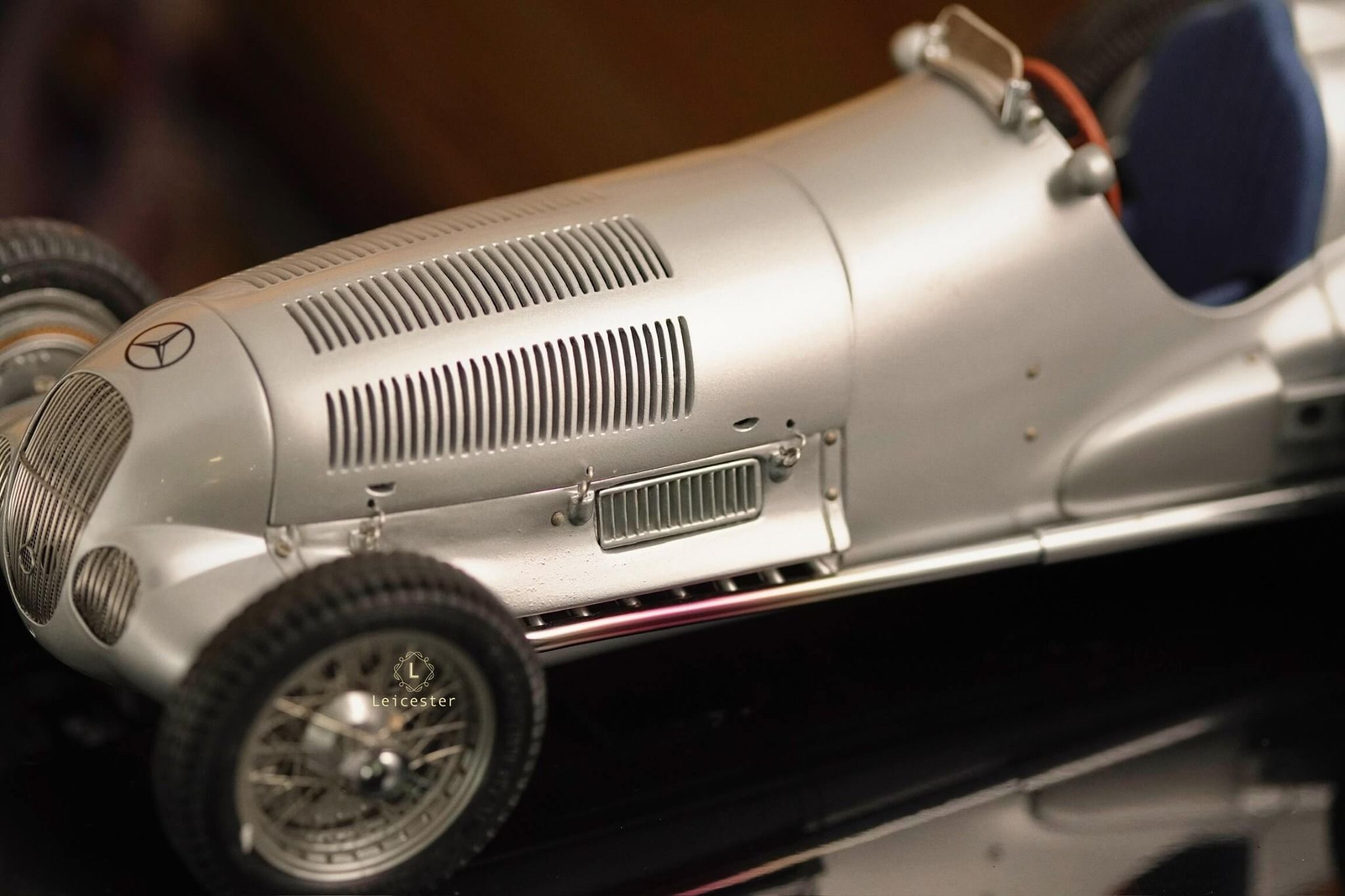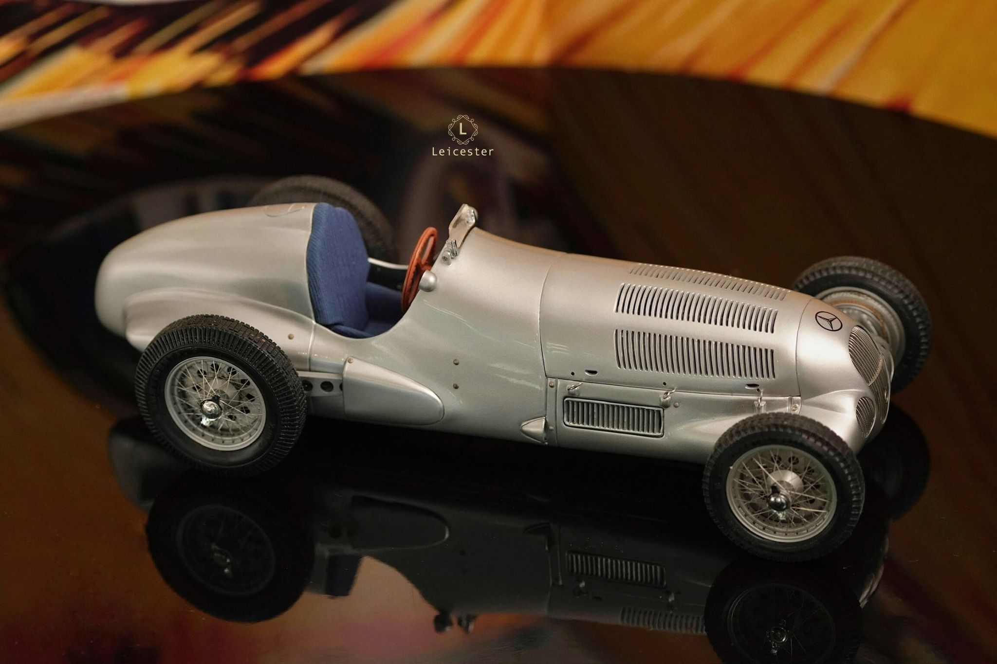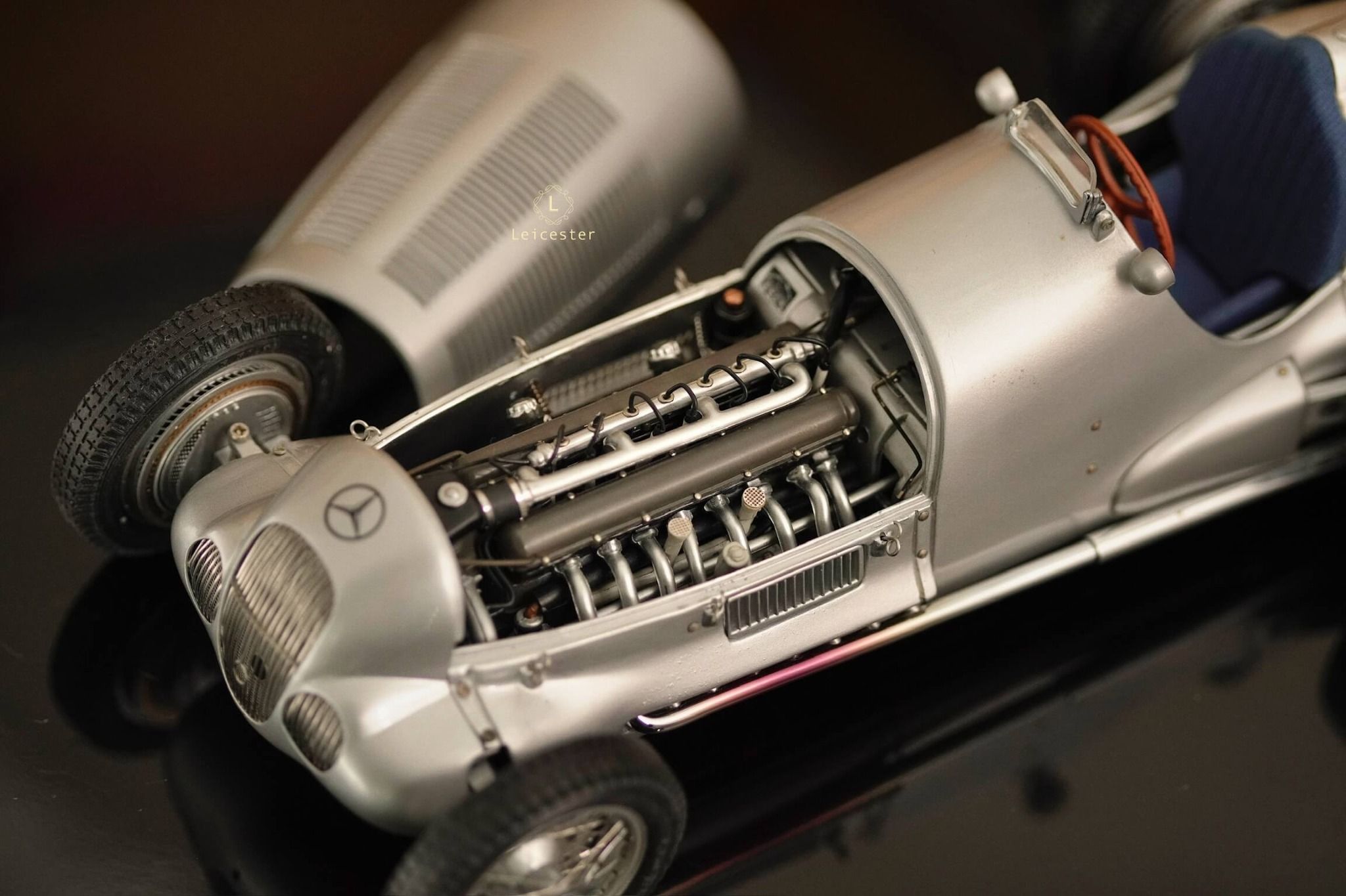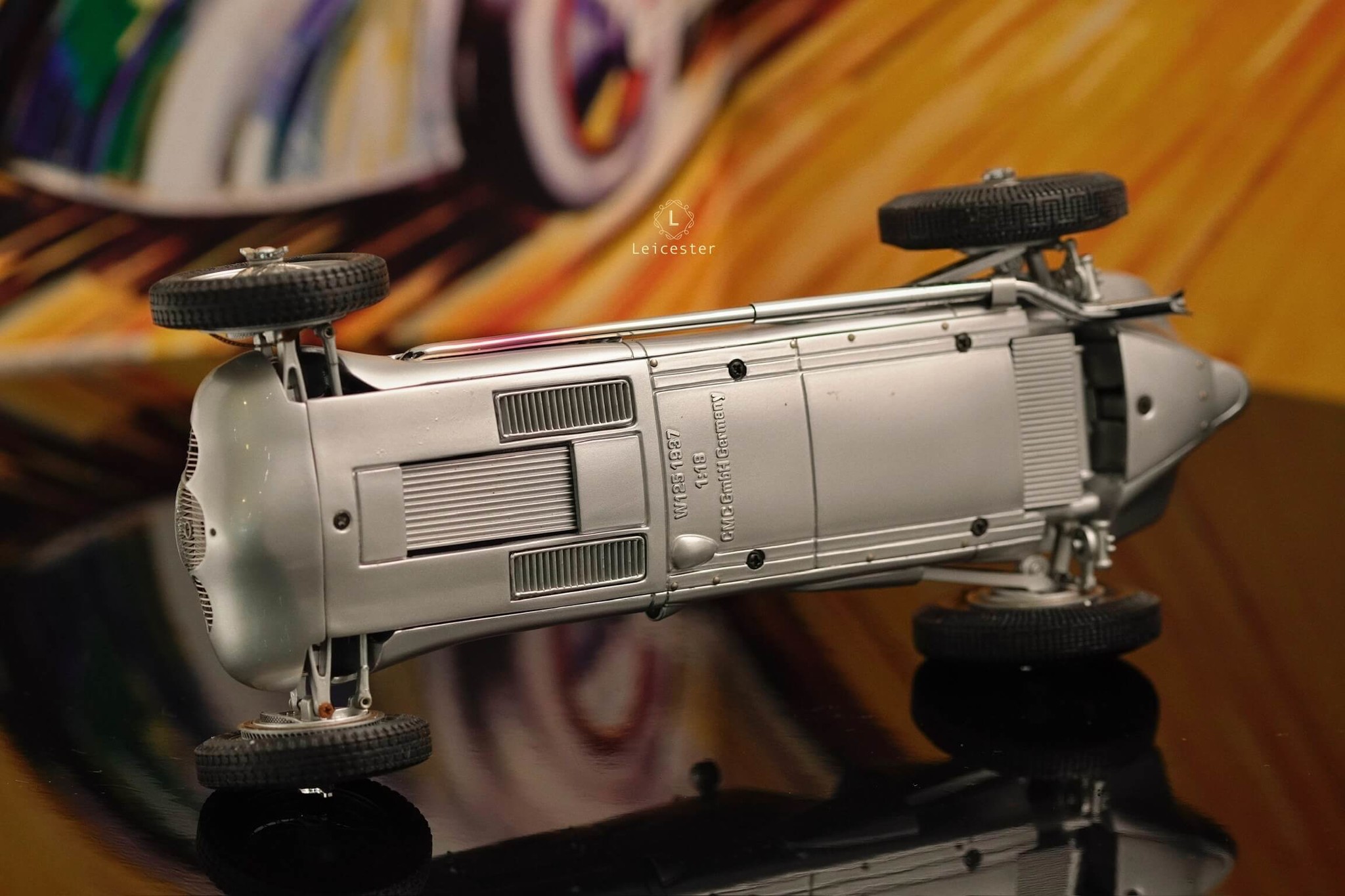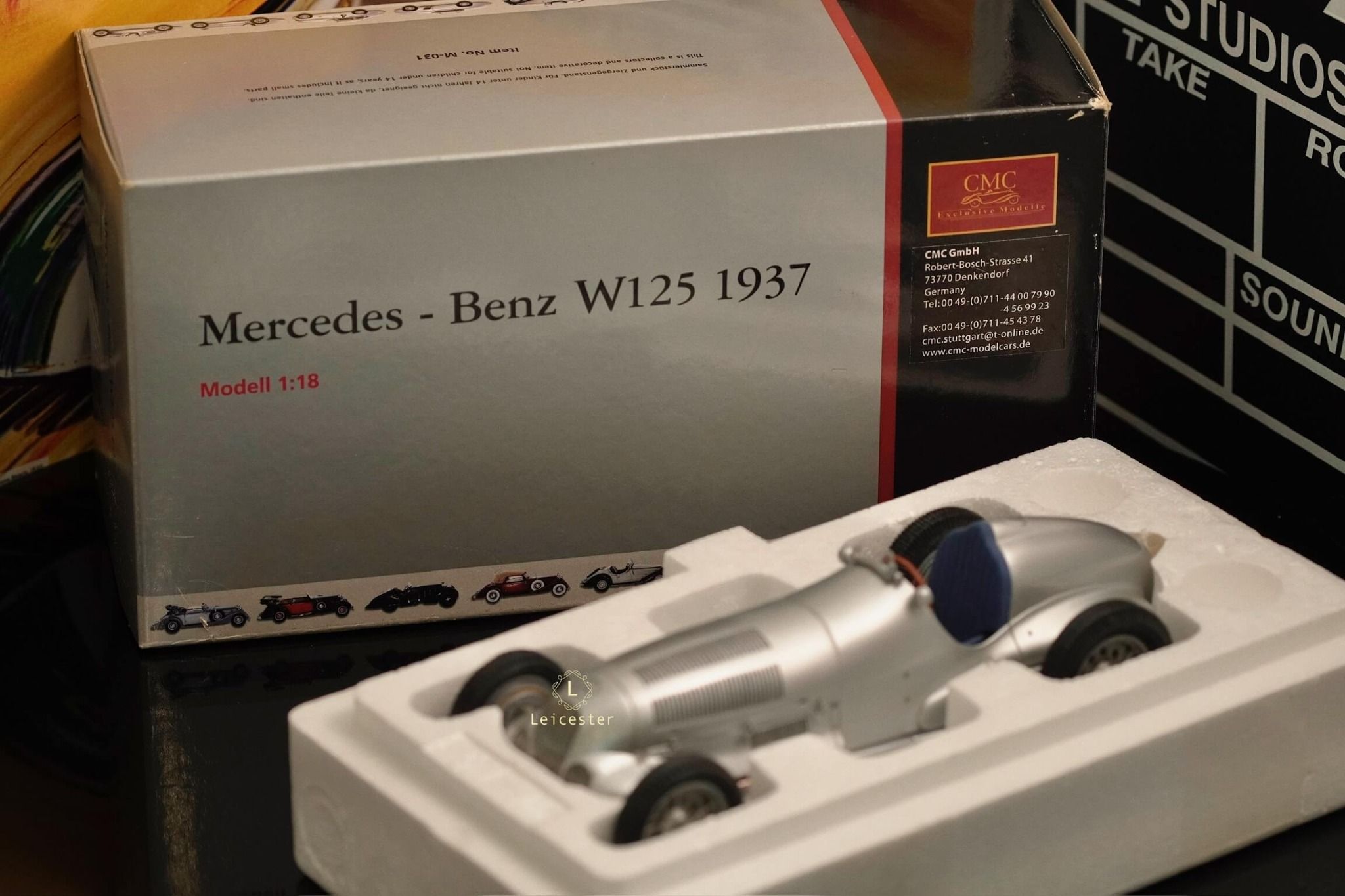 Mercedes-Benz W125, được CMC GmbH tái tạo lại trong một bản sao tỷ lệ 1:18 được chế tác, lắp ráp thủ công từ nhiều thành phần riêng biệt từ bộ máy ấn tượng dưới mui xe đến các chi tiết căm và lốp xe.
