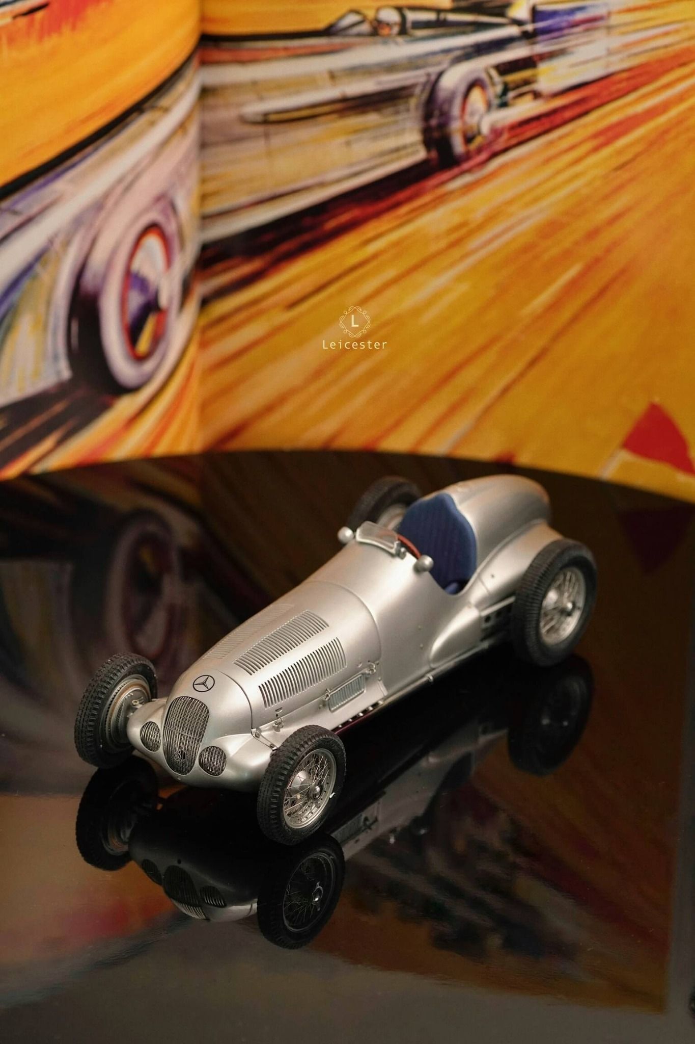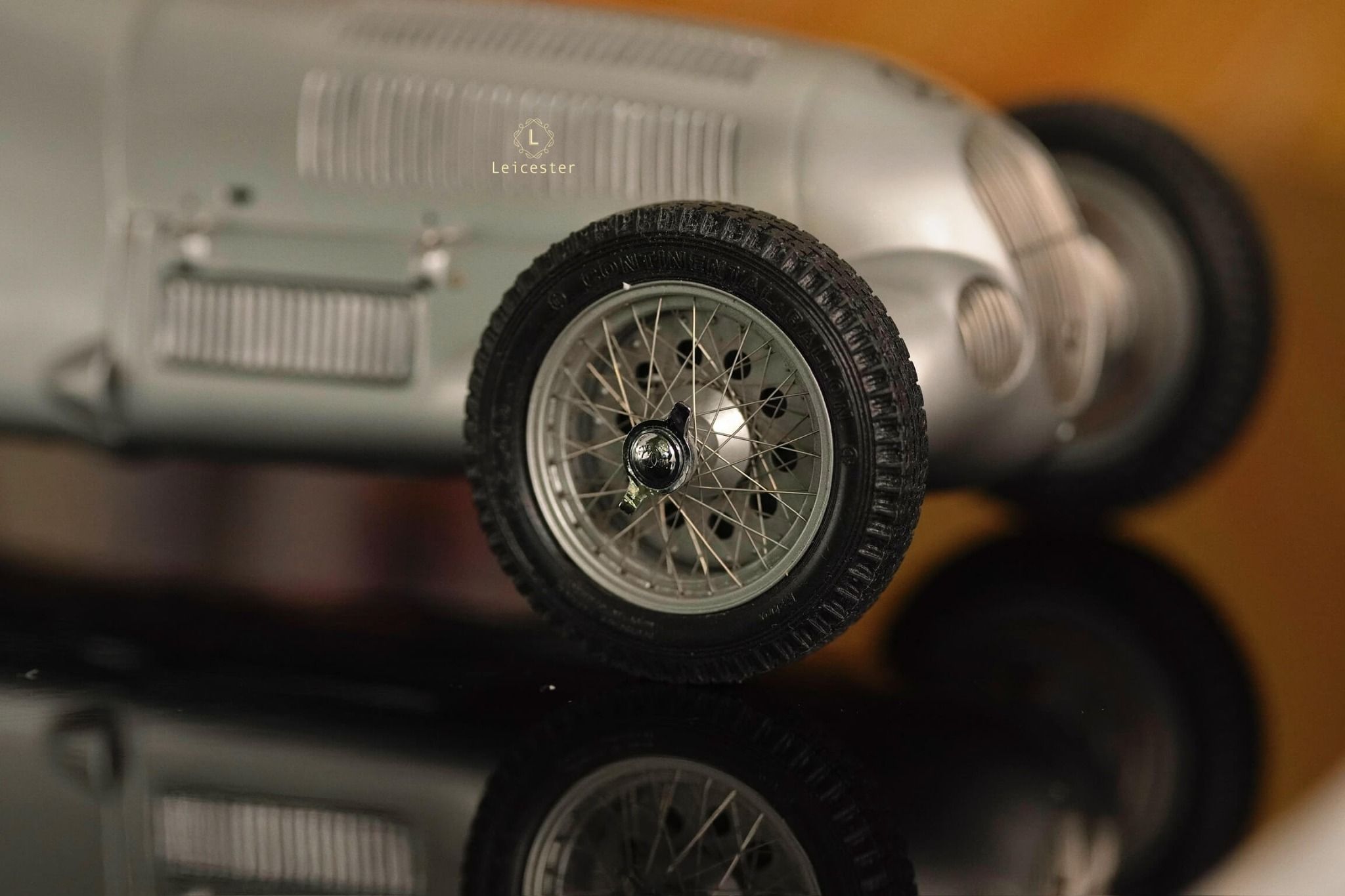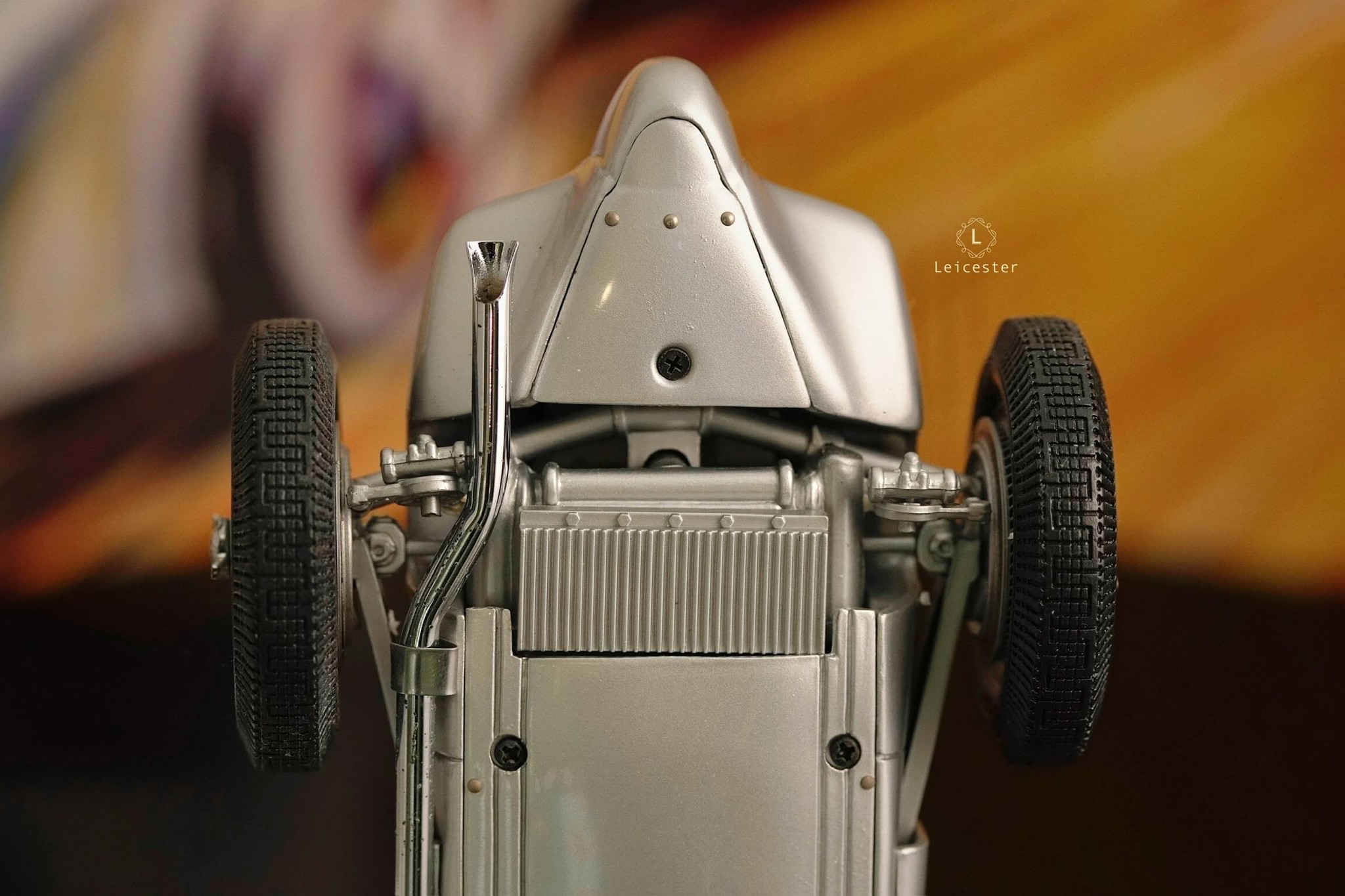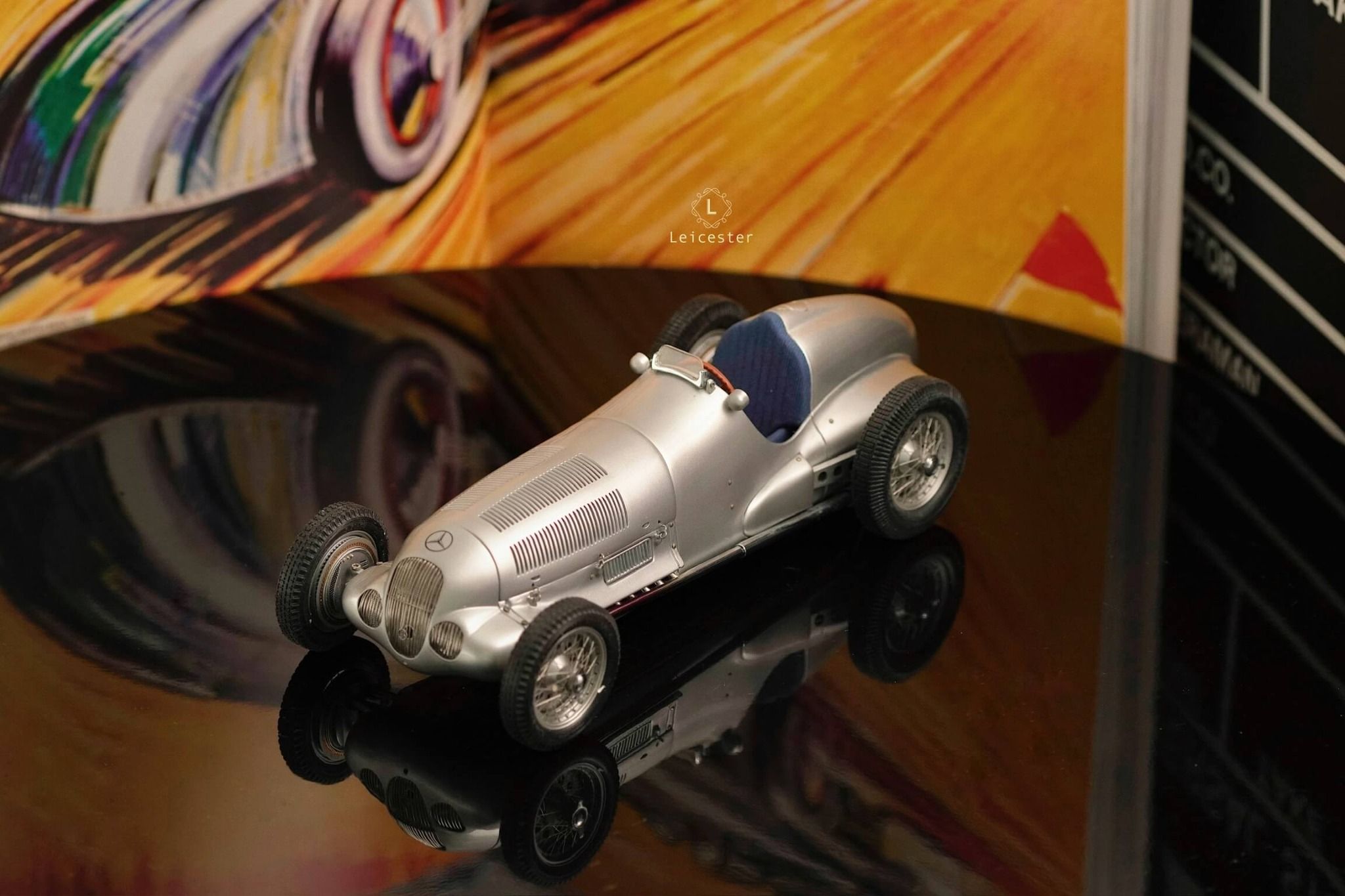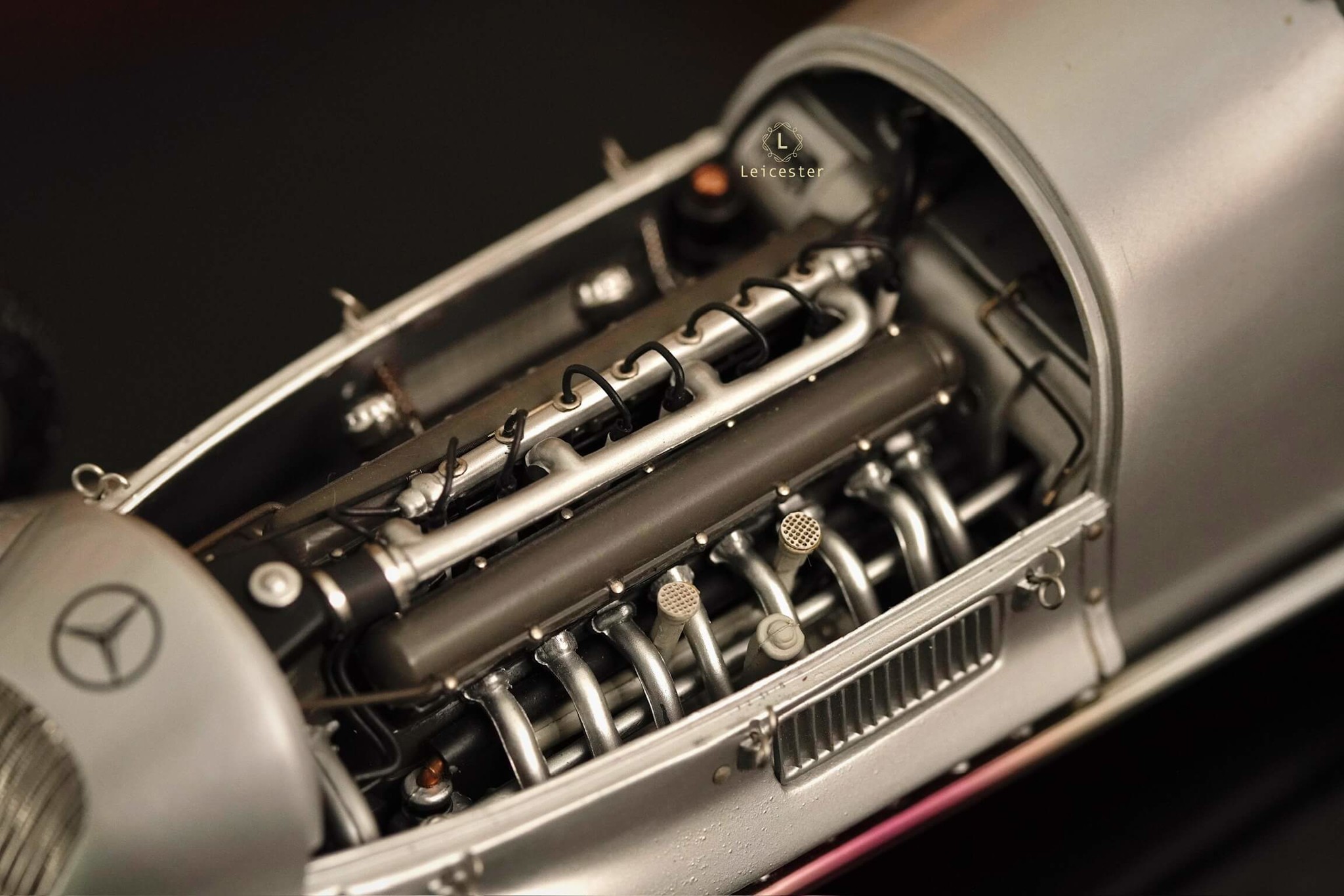 Mercedes-Benz W125, được CMC GmbH tái tạo lại trong một bản sao tỷ lệ 1:18 được chế tác, lắp ráp thủ công từ nhiều thành phần riêng biệt từ bộ máy ấn tượng dưới mui xe đến các chi tiết căm và lốp xe.