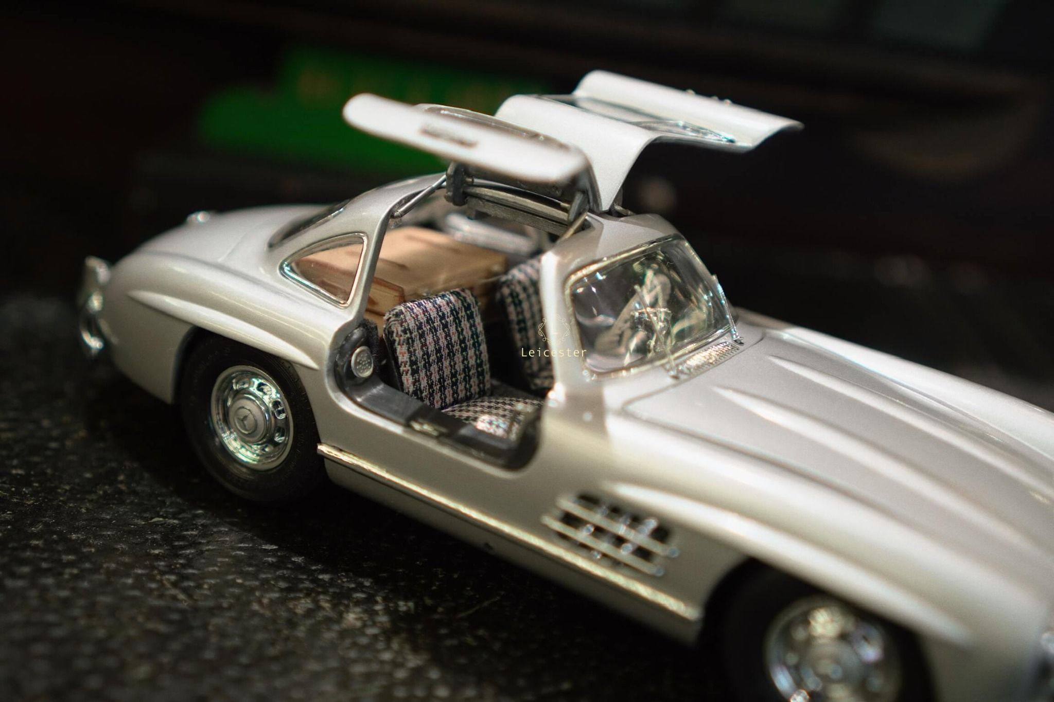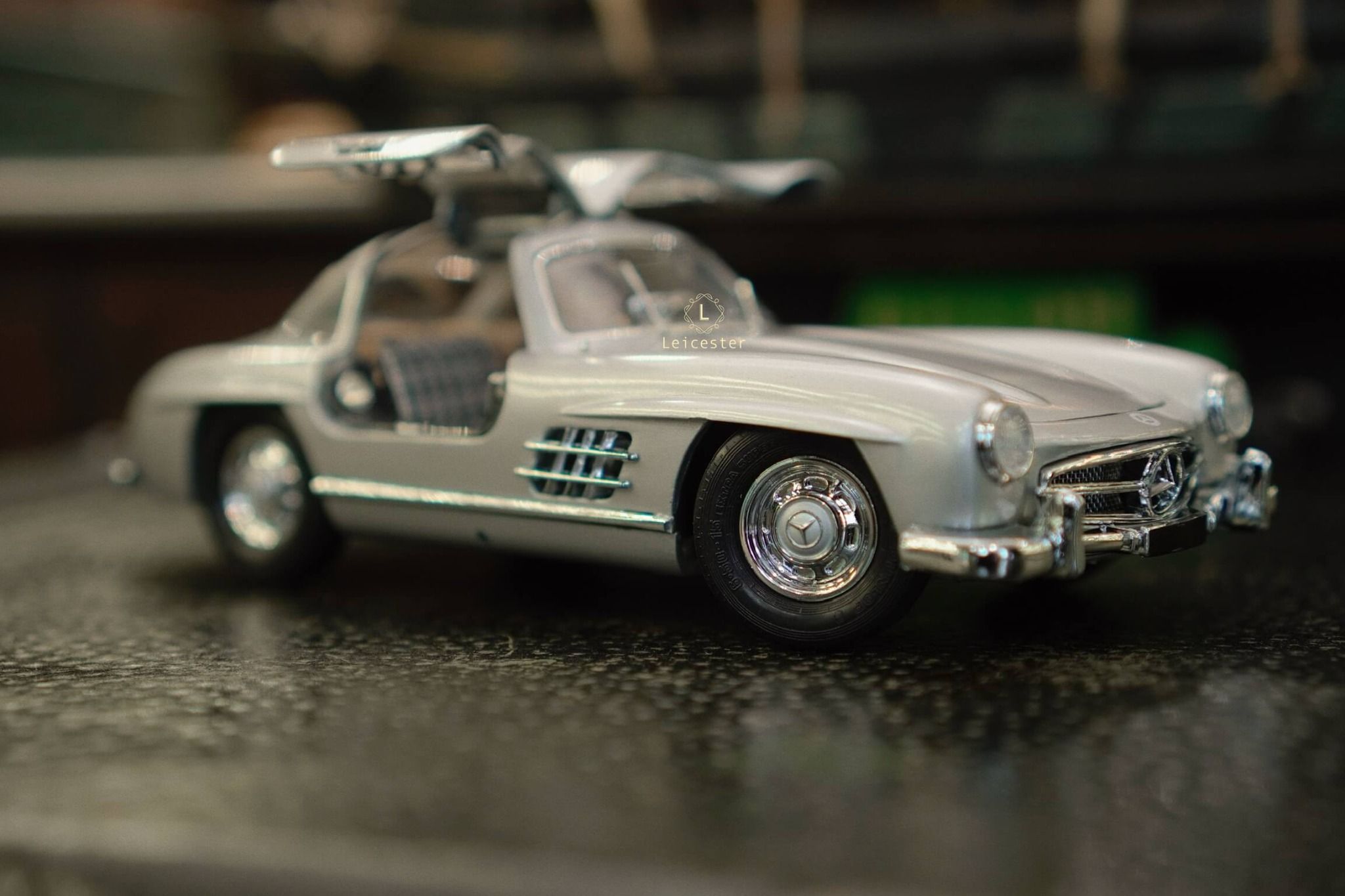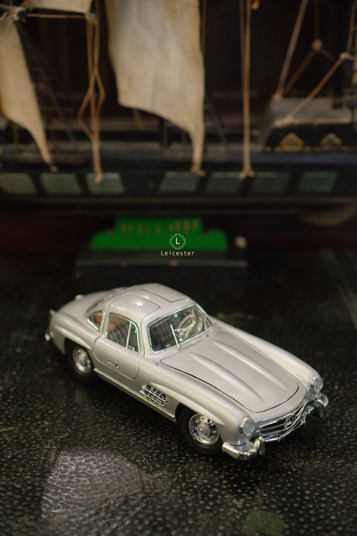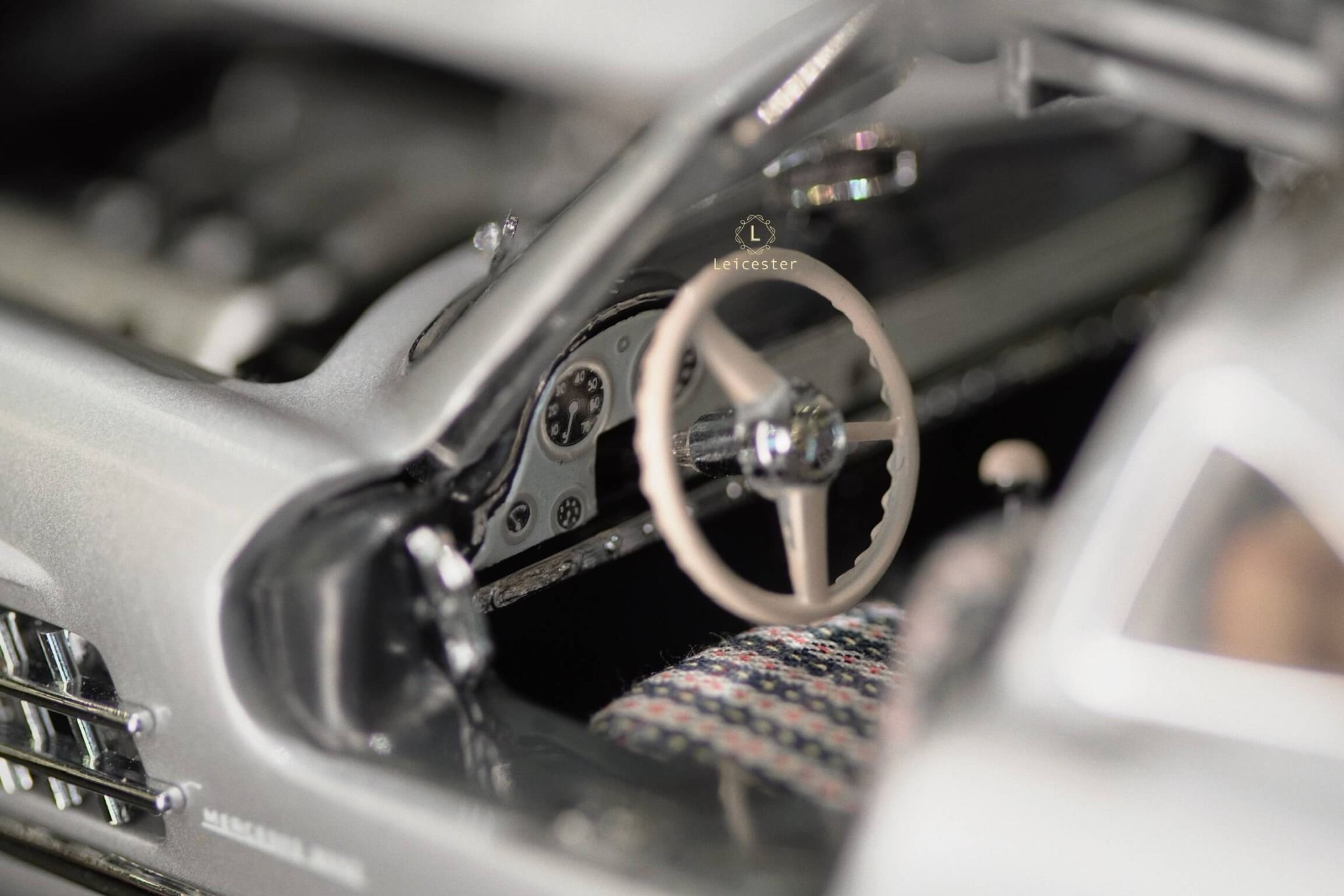 Chiếc Gullwing được săn đón này được tái tạo lại trong một bản sao tỷ lệ 1:24 được thiết kế chính xác, lắp ráp bằng tay từ hơn 150 thành phần riêng biệt từ lớp sơn thể thao hoàn thiện đến động cơ, cánh cửa độc đáo cho đến nội thất sang trọng, hành lý cũng được trang bị tùy chỉnh trong cốp xe.