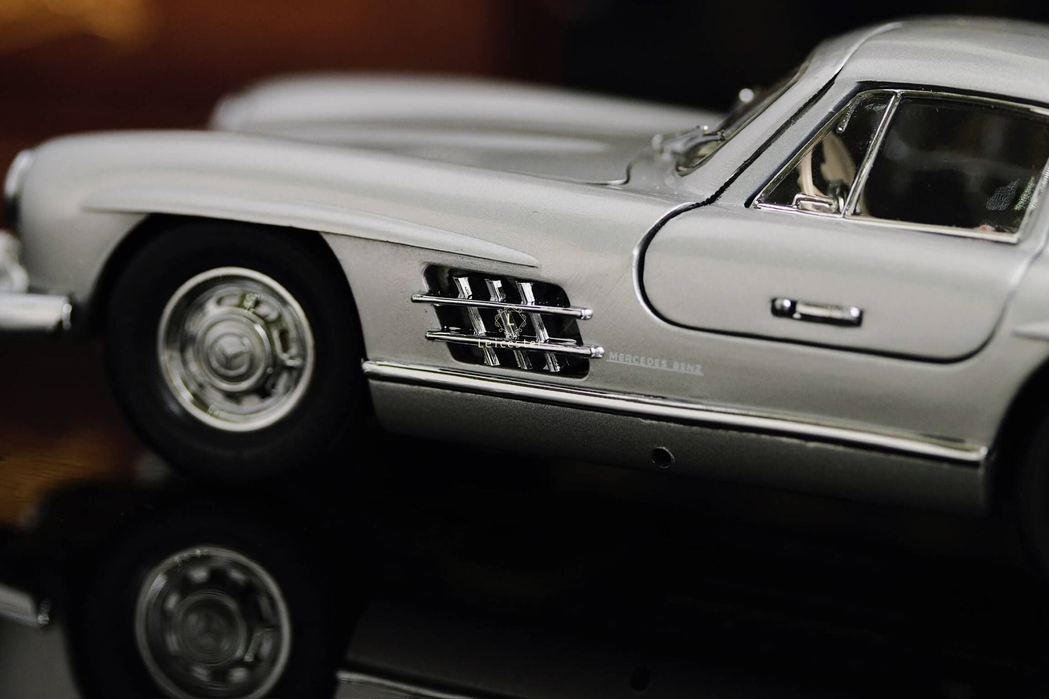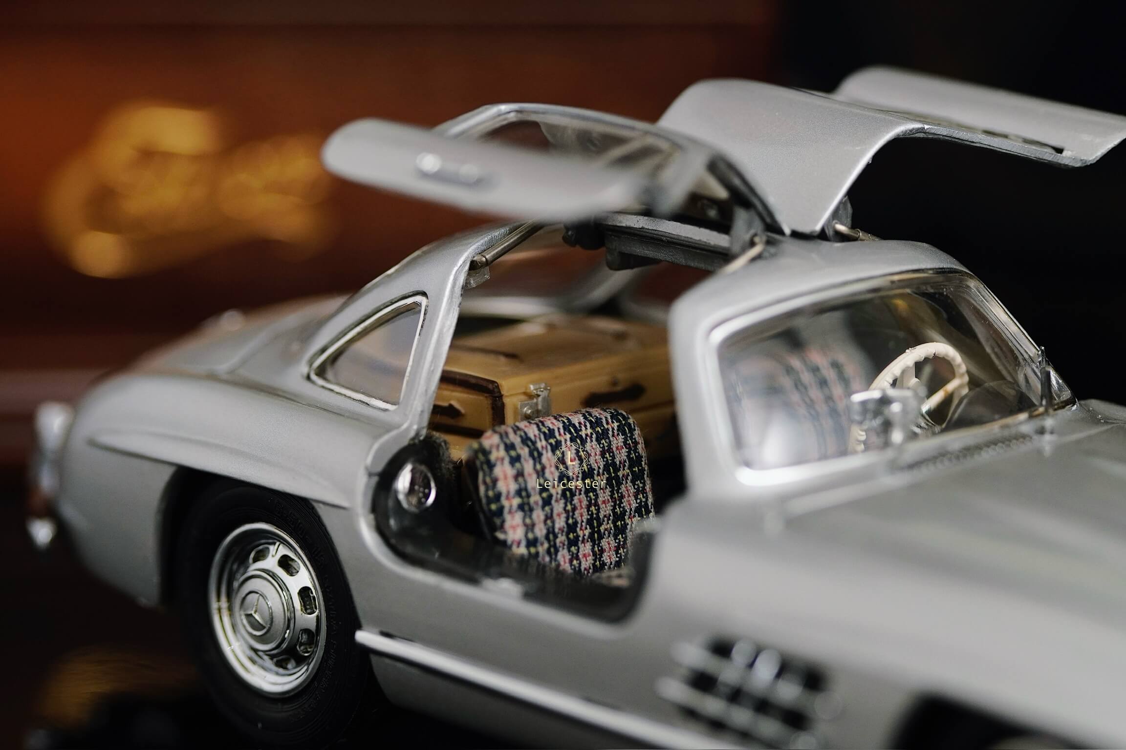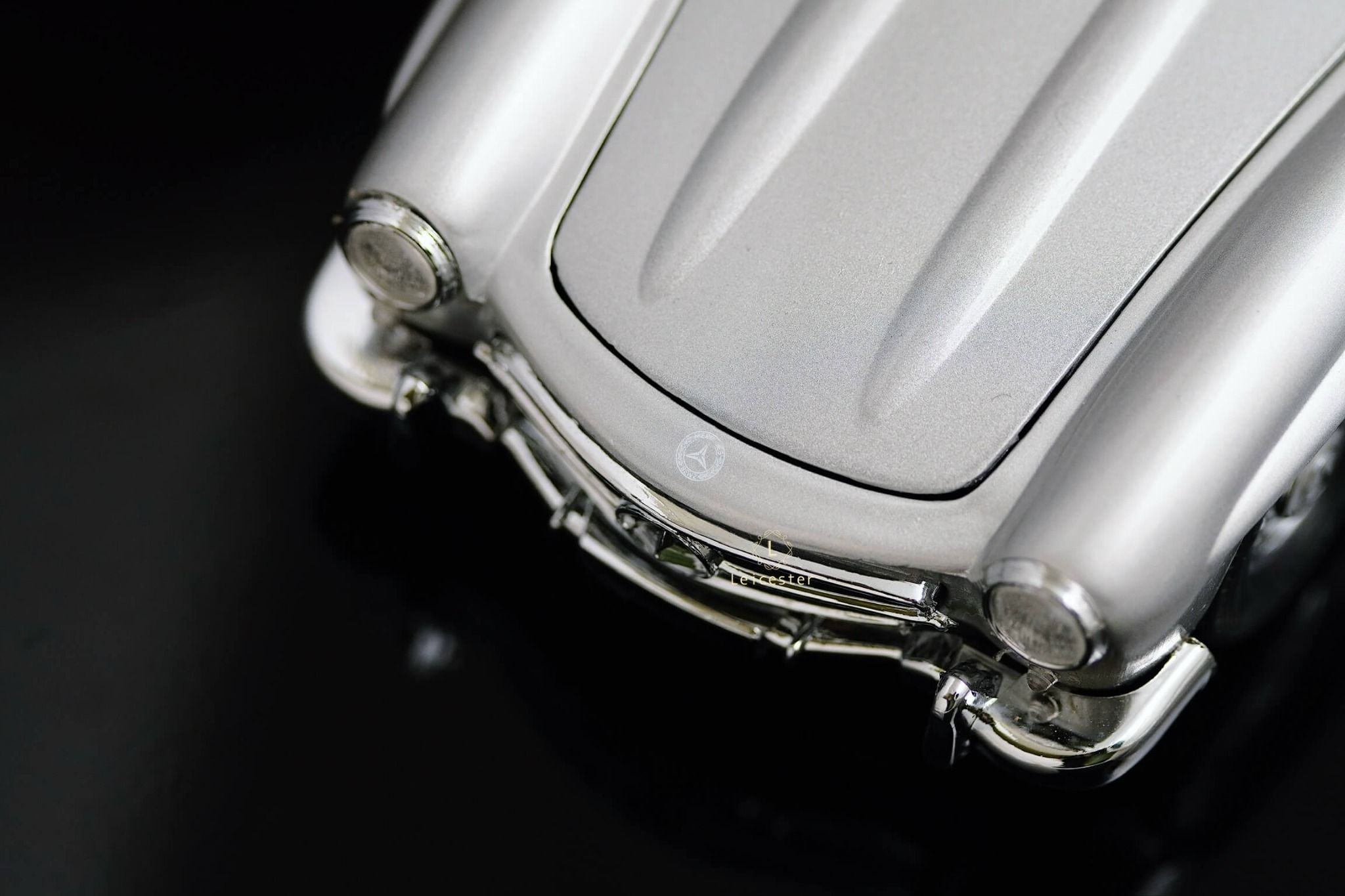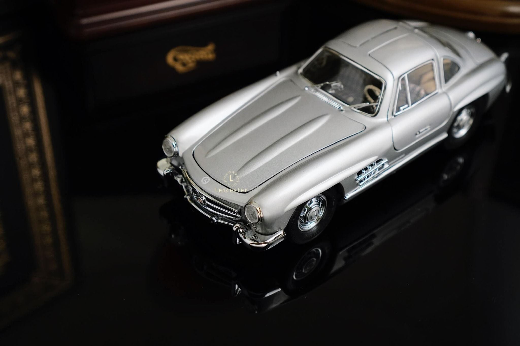 Chiếc Gullwing được săn đón này được tái tạo lại trong một bản sao tỷ lệ 1:24 được thiết kế chính xác, lắp ráp bằng tay từ hơn 150 thành phần riêng biệt từ lớp sơn thể thao hoàn thiện đến động cơ, cánh cửa độc đáo cho đến nội thất sang trọng, hành lý cũng được trang bị tùy chỉnh trong cốp xe.