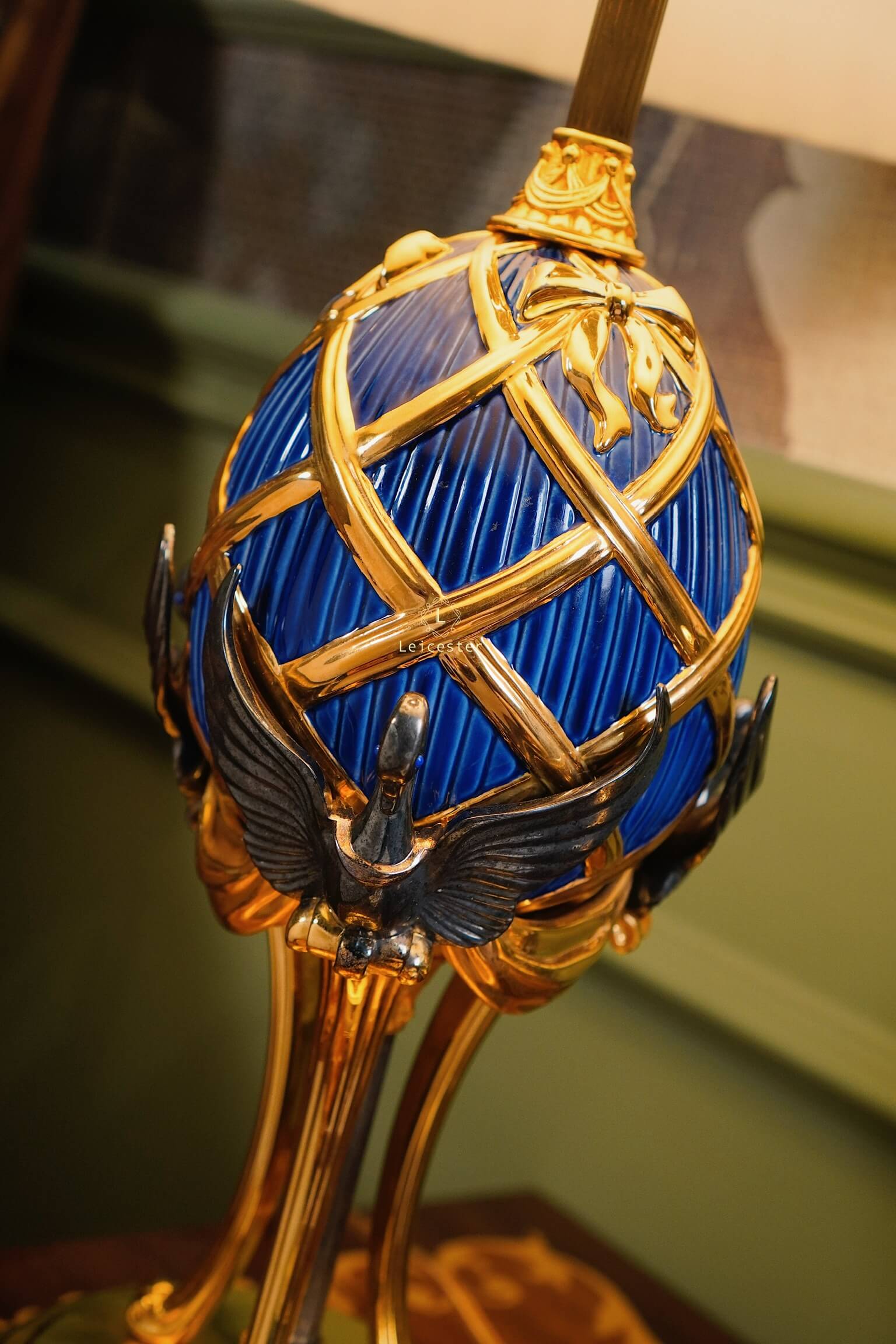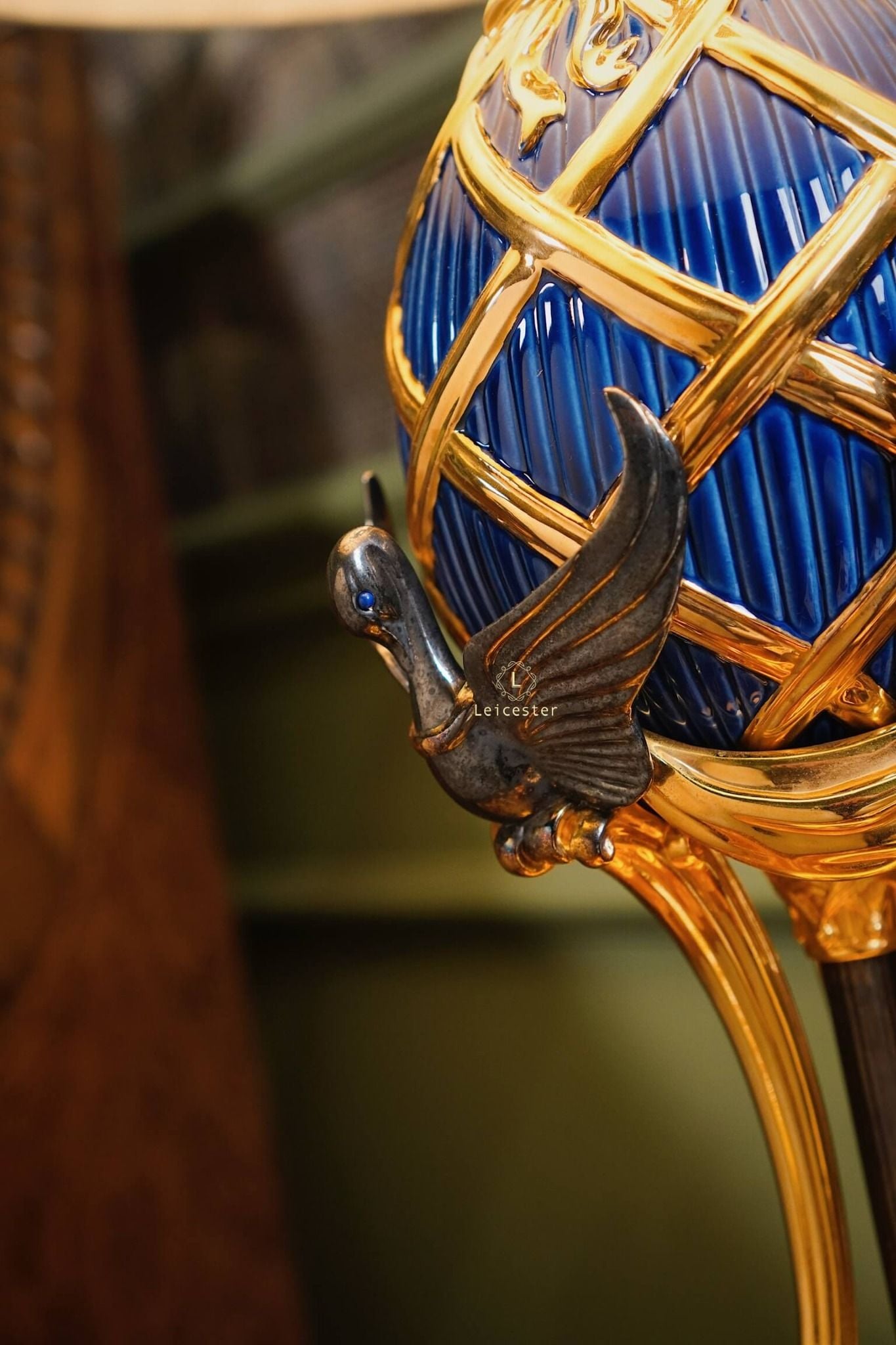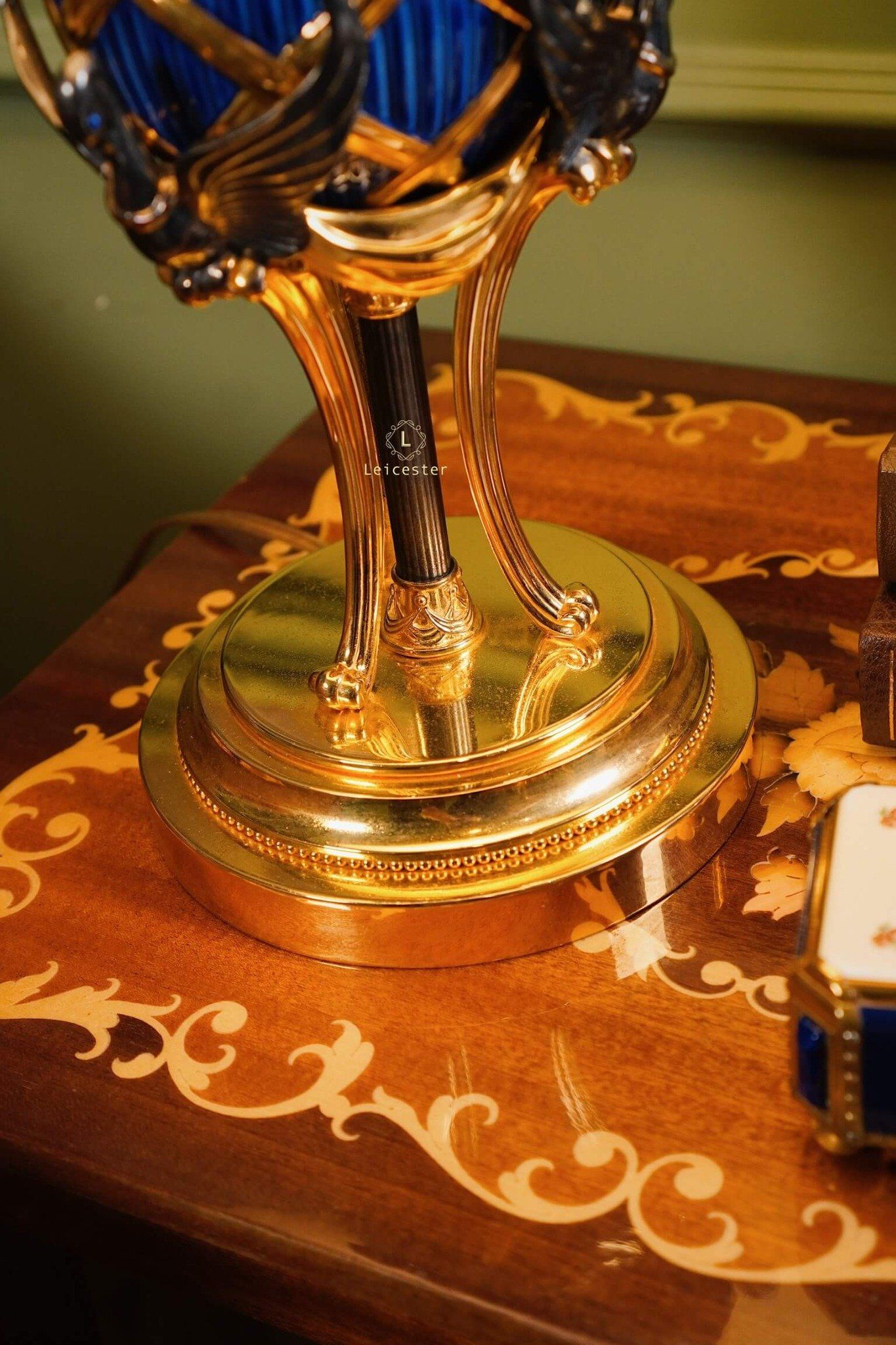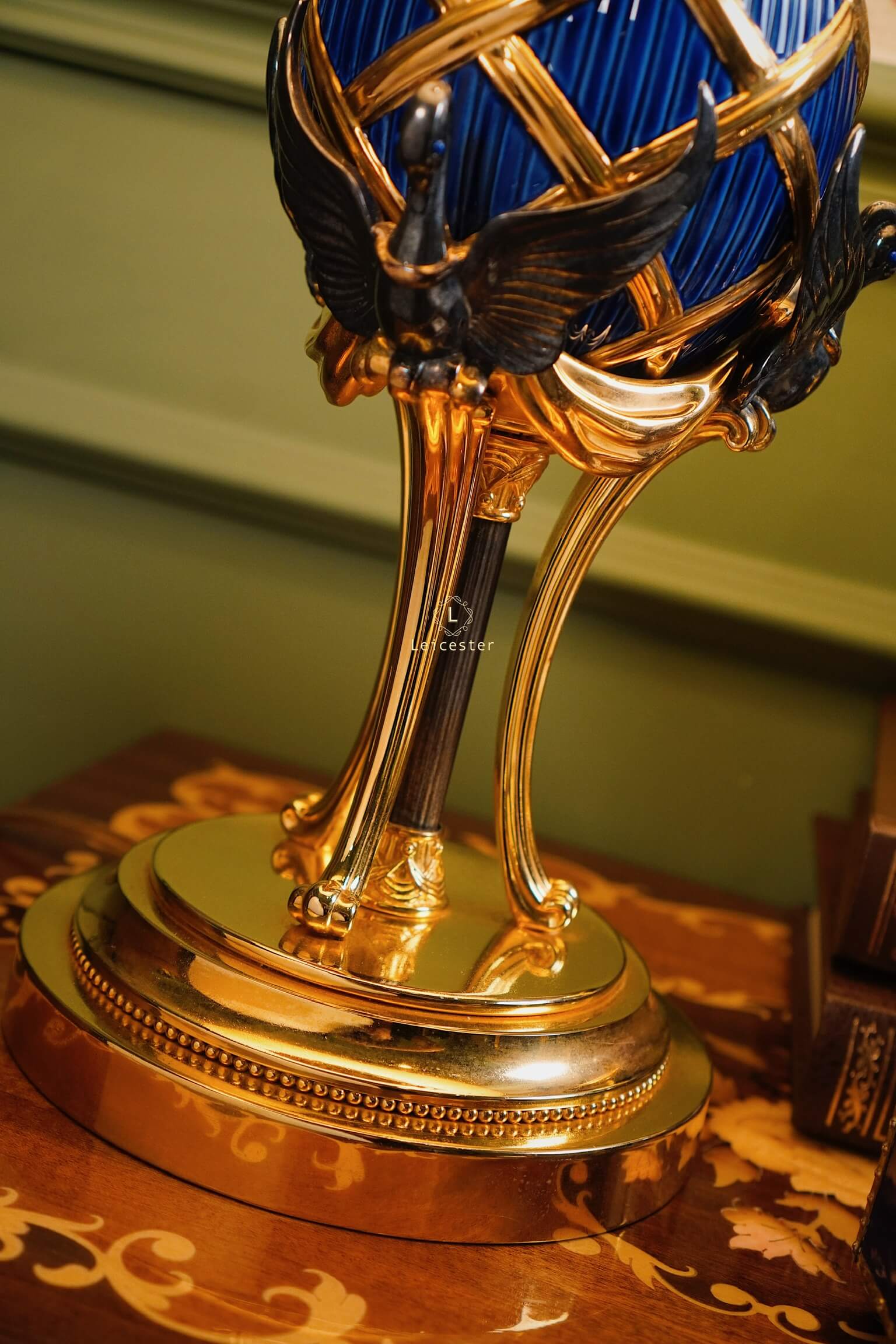 Lấy cảm hứng từ những quả trứng Imperial Egg trứ danh của House of Fabergé™, mẫu đèn Fabergé Imperial Egg Lamp được Franklin Mint chế tác độc quyền từ fine porcelain cao cấp, phủ men xanh cobalt sâu hút và hoàn thiện bằng các chi tiết mạ vàng tinh xảo. Đây là một trong những thiết kế nổi bật nhất của dòng Fabergé sưu tầm, tái hiện trọn vẹn tinh thần nghệ thuật trang sức hoàng gia trên phiên bản đèn decor sang trọng.