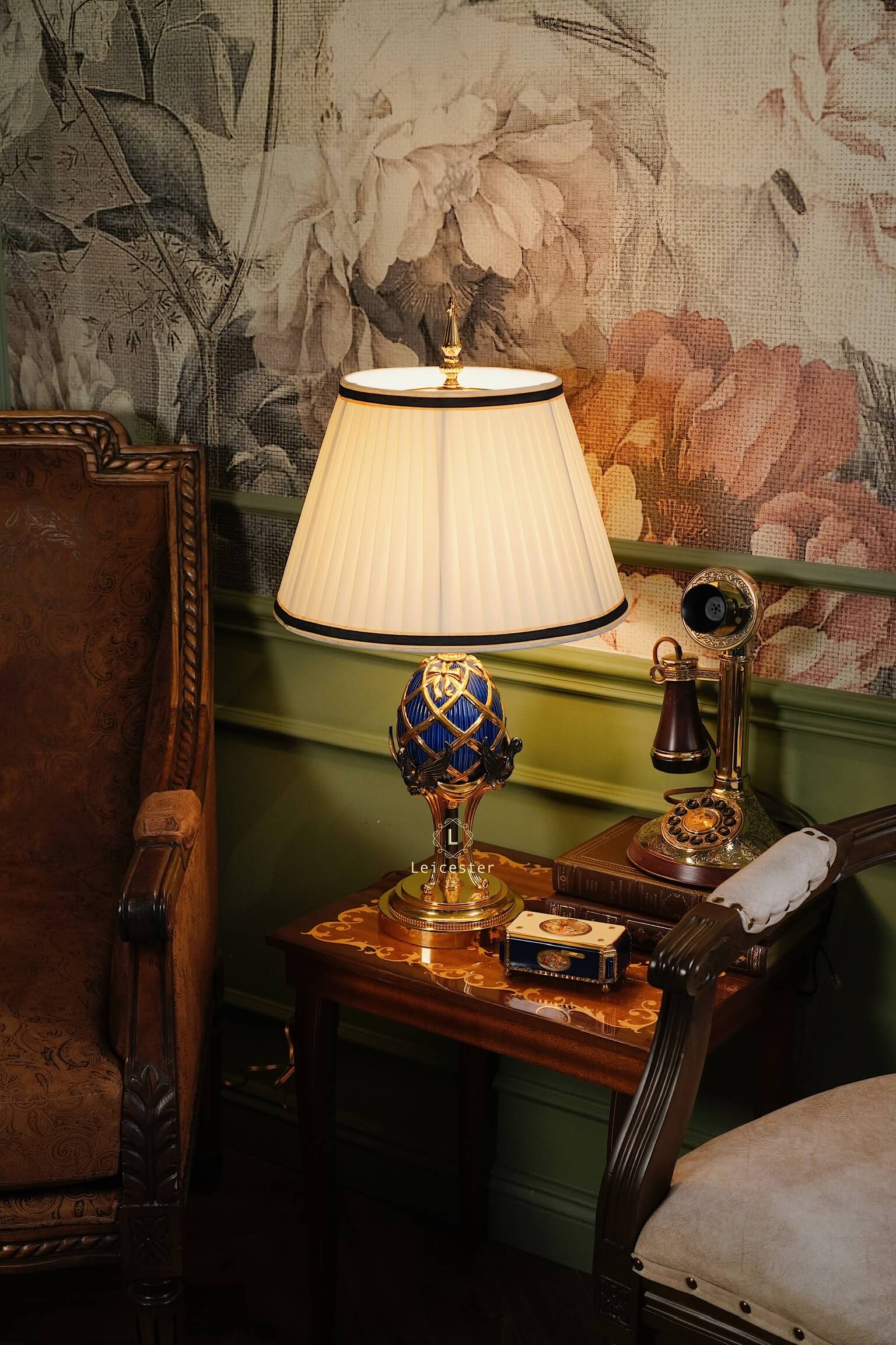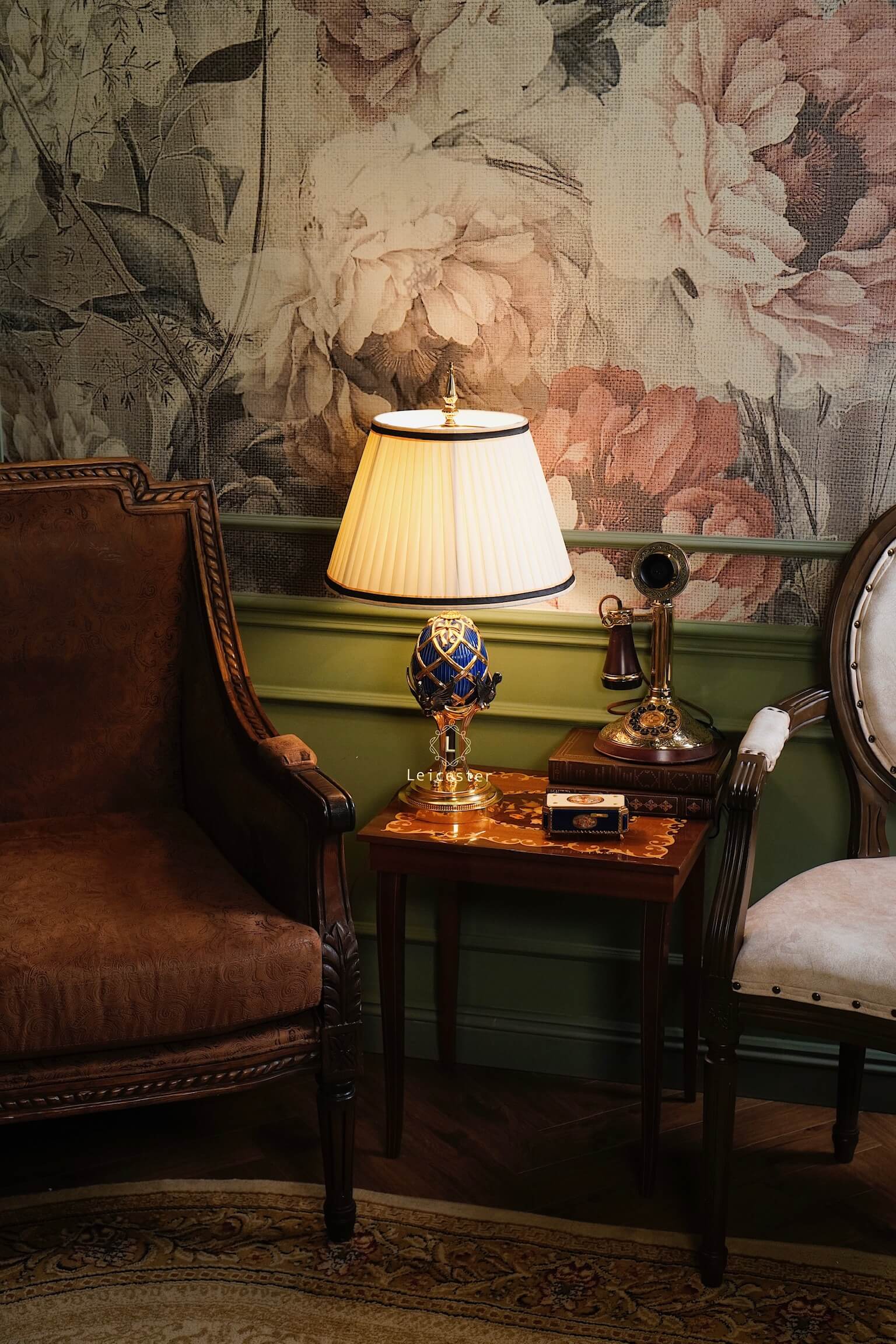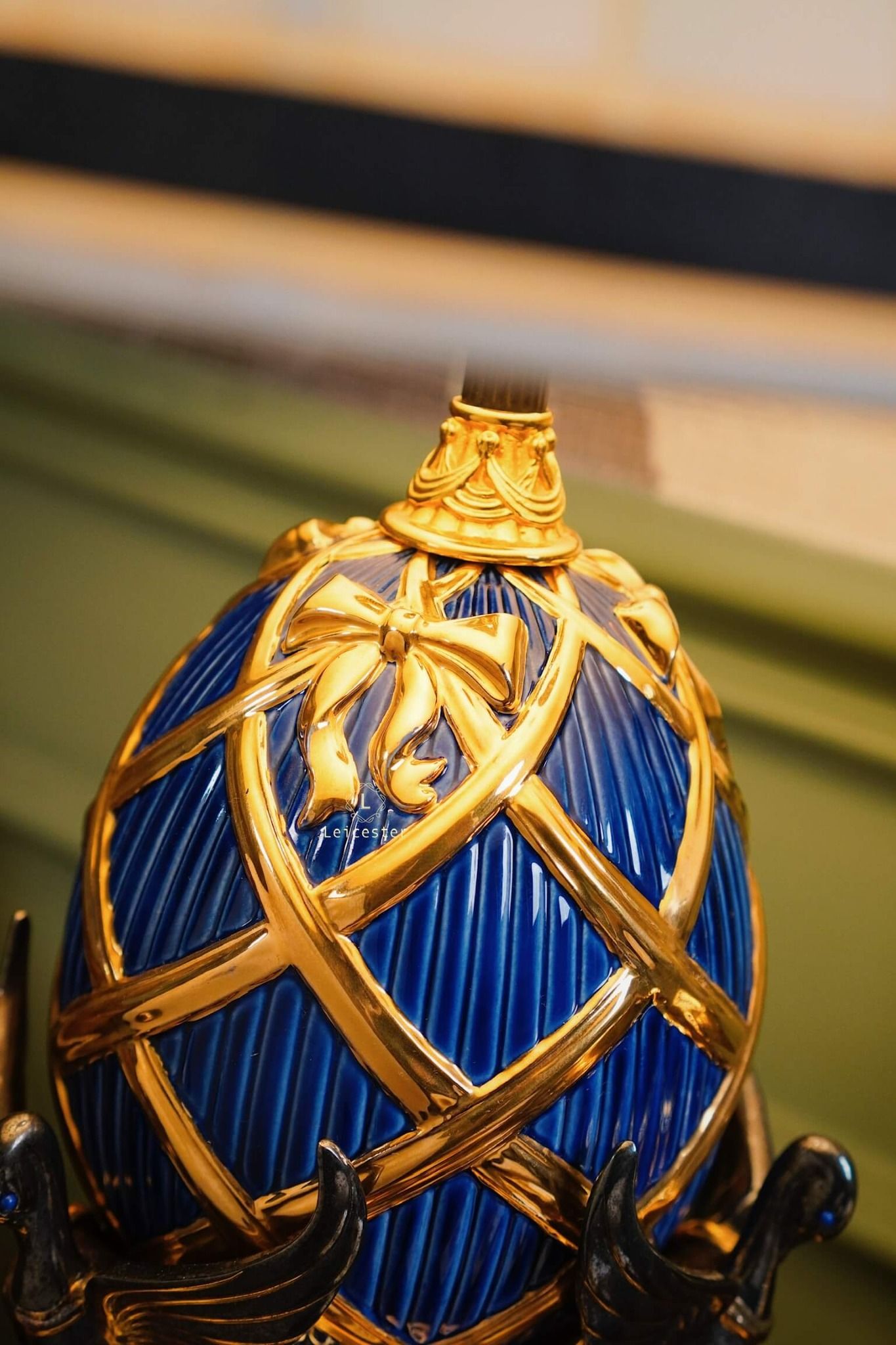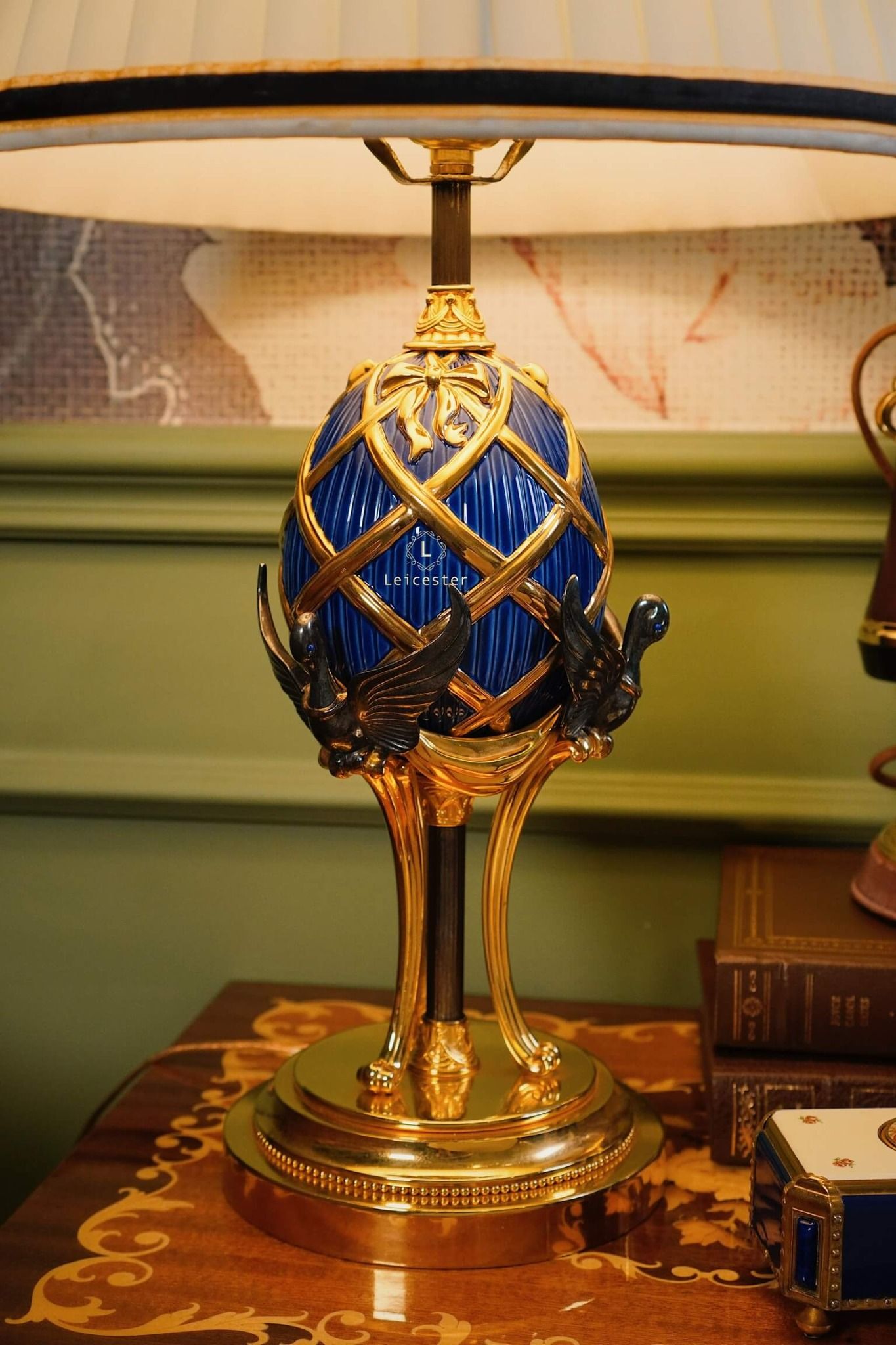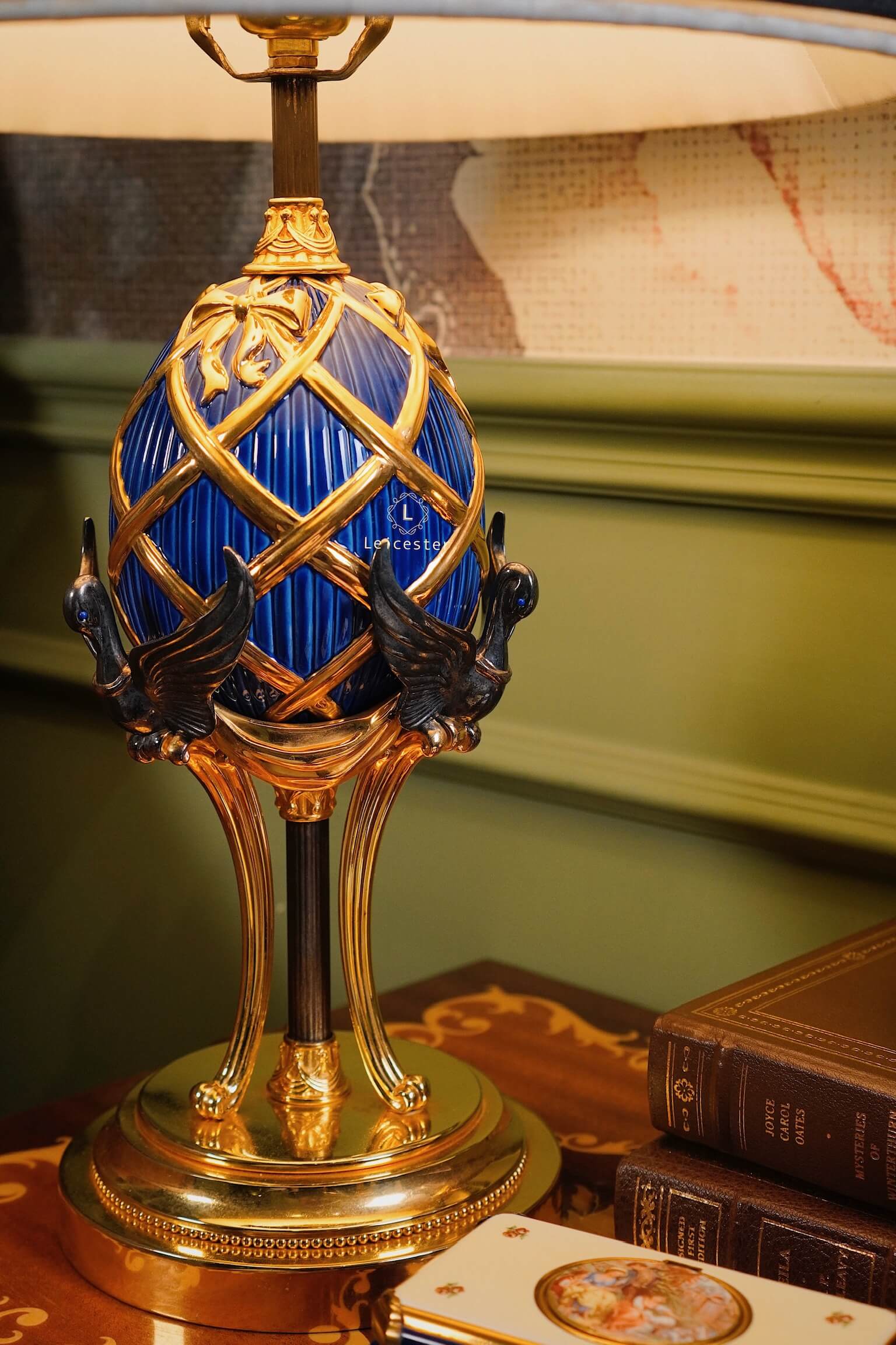 Lấy cảm hứng từ những quả trứng Imperial Egg trứ danh của House of Fabergé™, mẫu đèn Fabergé Imperial Egg Lamp được Franklin Mint chế tác độc quyền từ fine porcelain cao cấp, phủ men xanh cobalt sâu hút và hoàn thiện bằng các chi tiết mạ vàng tinh xảo. Đây là một trong những thiết kế nổi bật nhất của dòng Fabergé sưu tầm, tái hiện trọn vẹn tinh thần nghệ thuật trang sức hoàng gia trên phiên bản đèn decor sang trọng.