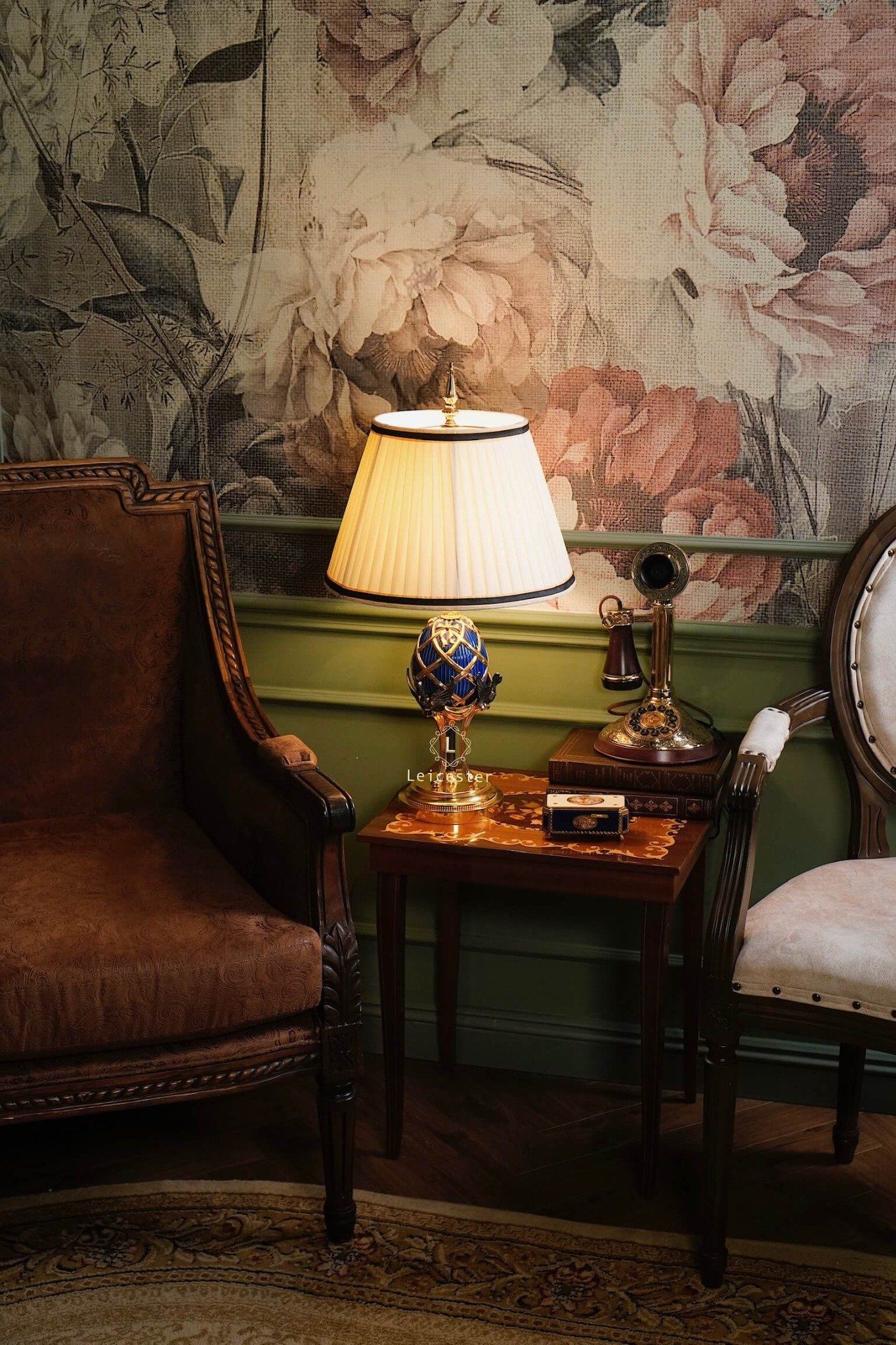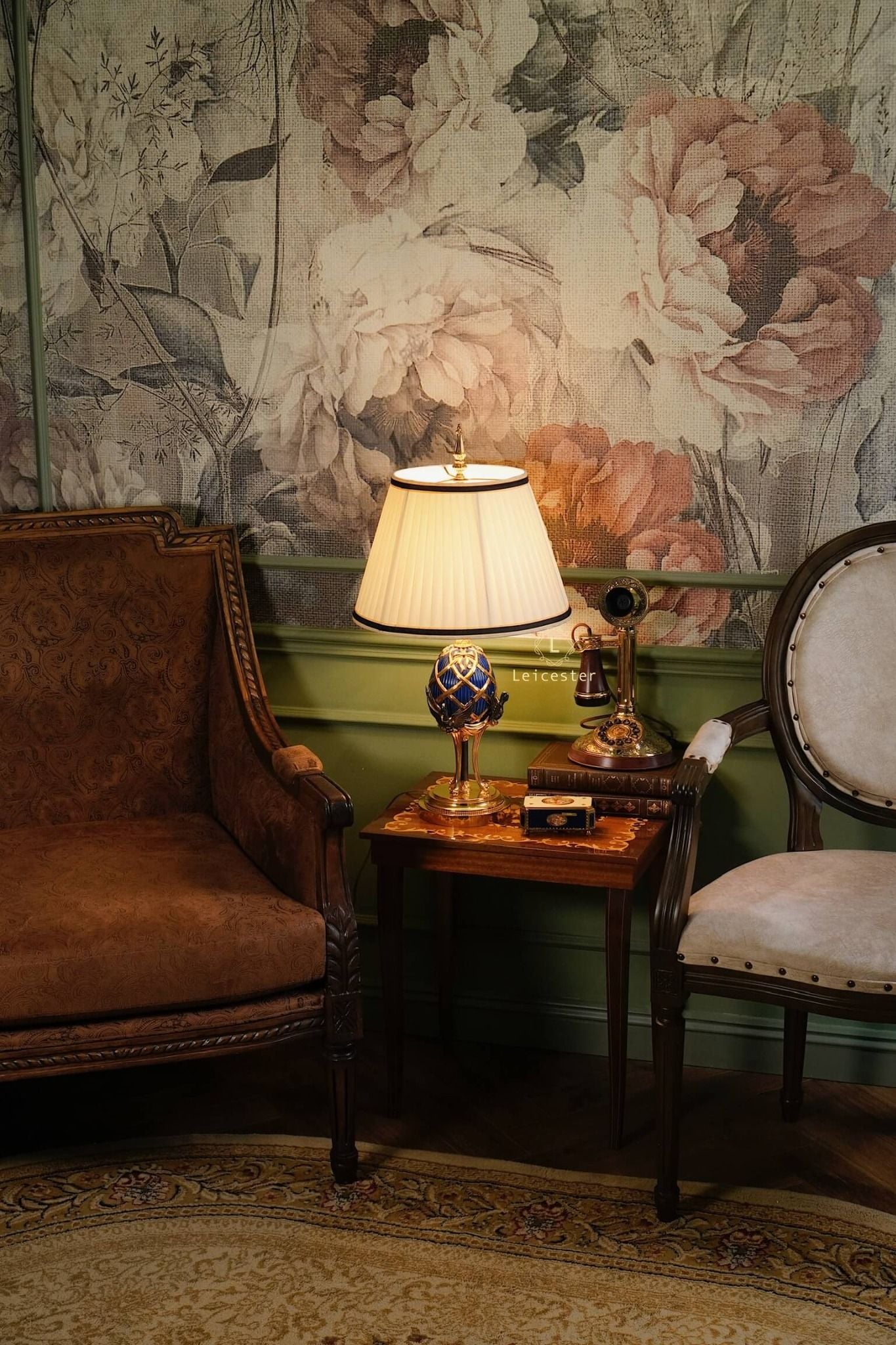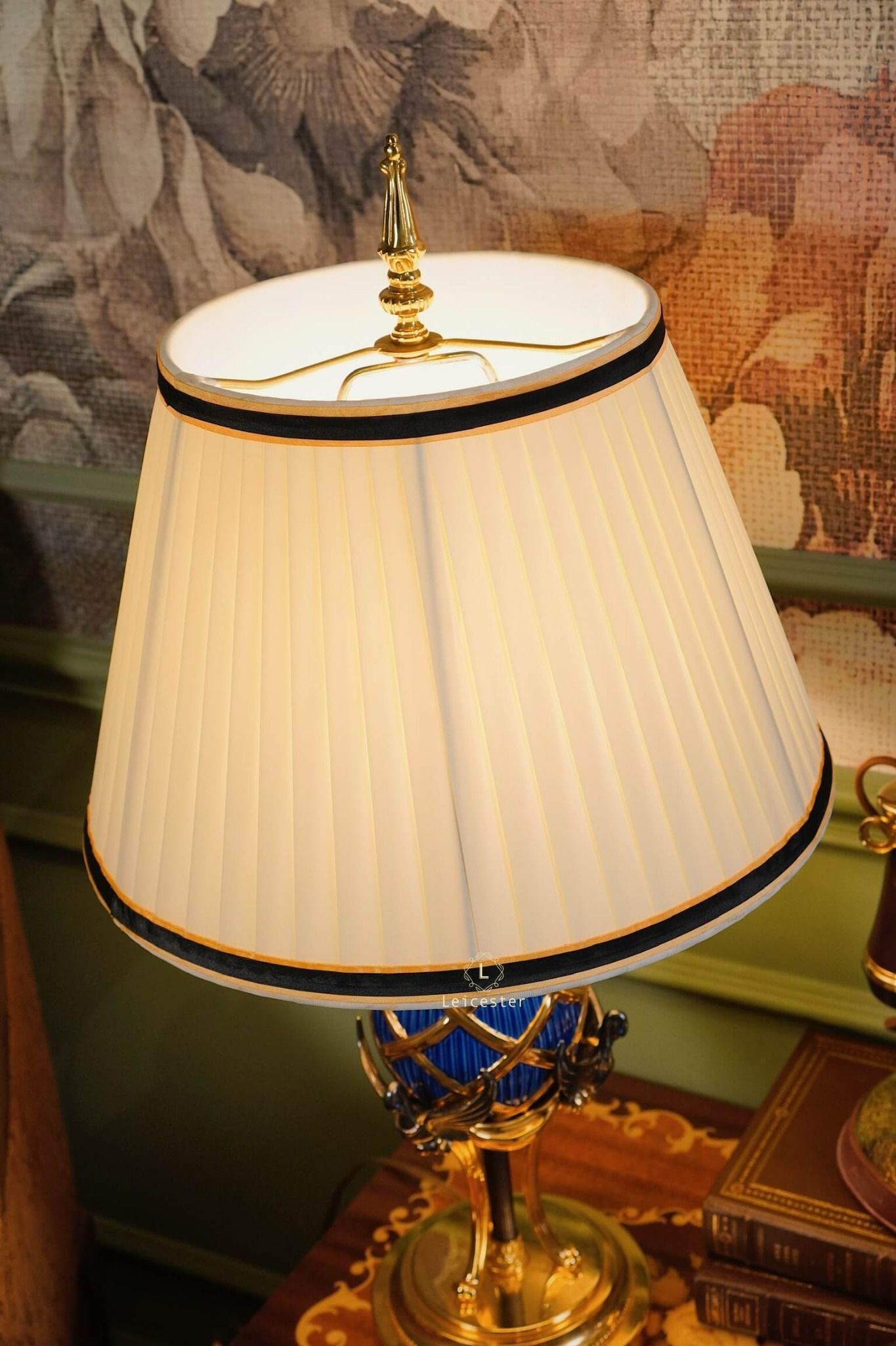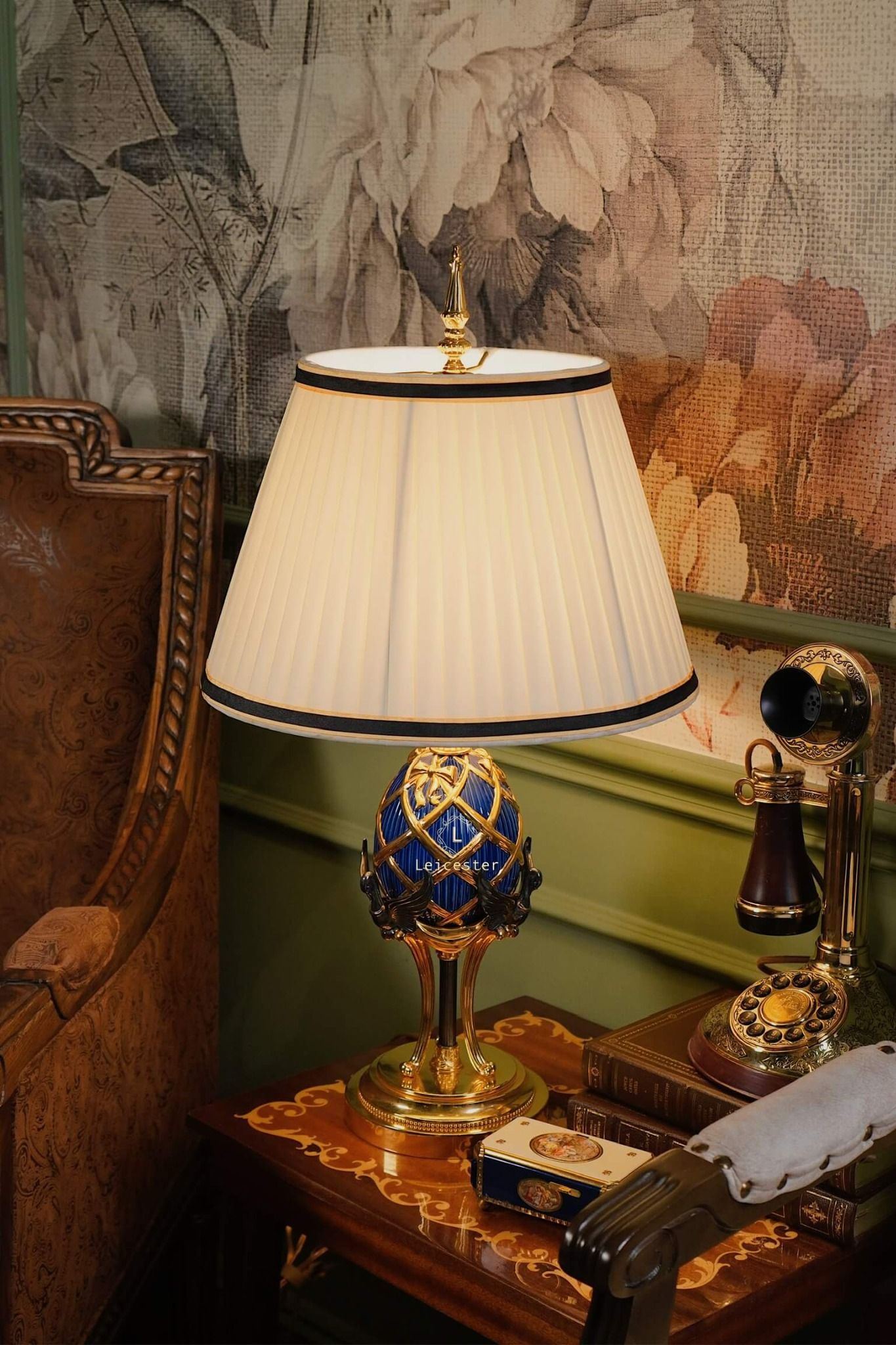 Lấy cảm hứng từ những quả trứng Imperial Egg trứ danh của House of Fabergé™, mẫu đèn Fabergé Imperial Egg Lamp được Franklin Mint chế tác độc quyền từ fine porcelain cao cấp, phủ men xanh cobalt sâu hút và hoàn thiện bằng các chi tiết mạ vàng tinh xảo. Đây là một trong những thiết kế nổi bật nhất của dòng Fabergé sưu tầm, tái hiện trọn vẹn tinh thần nghệ thuật trang sức hoàng gia trên phiên bản đèn decor sang trọng.