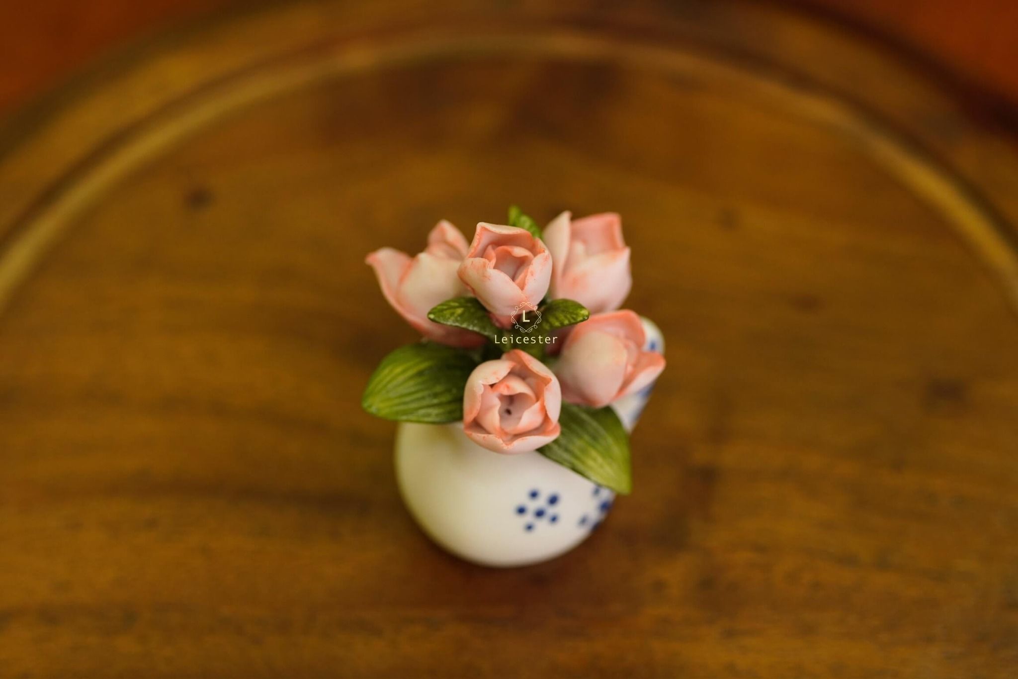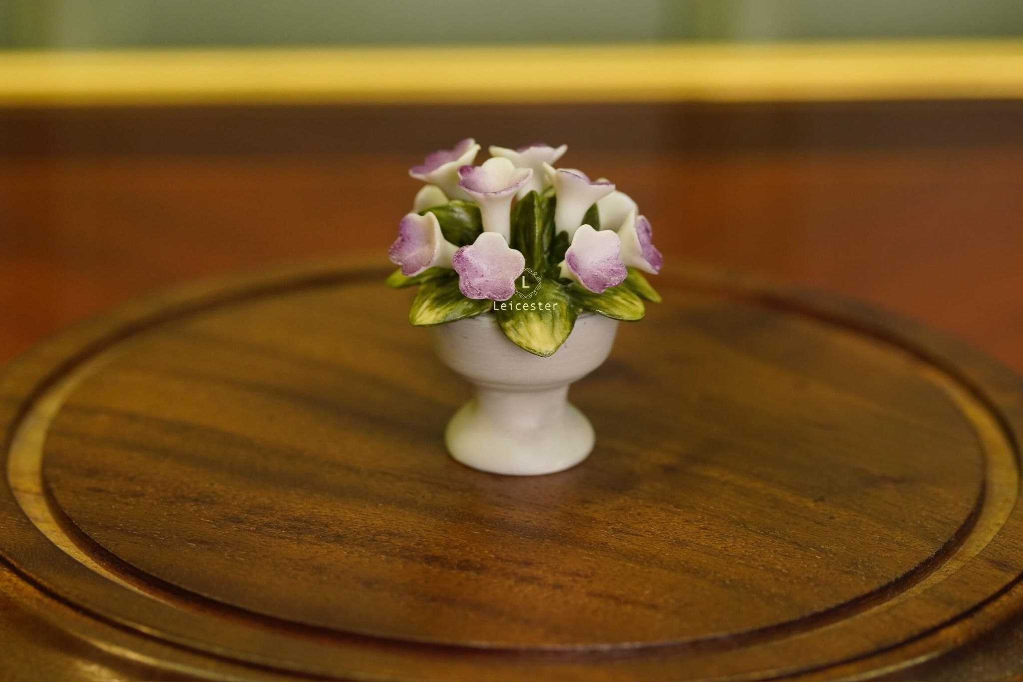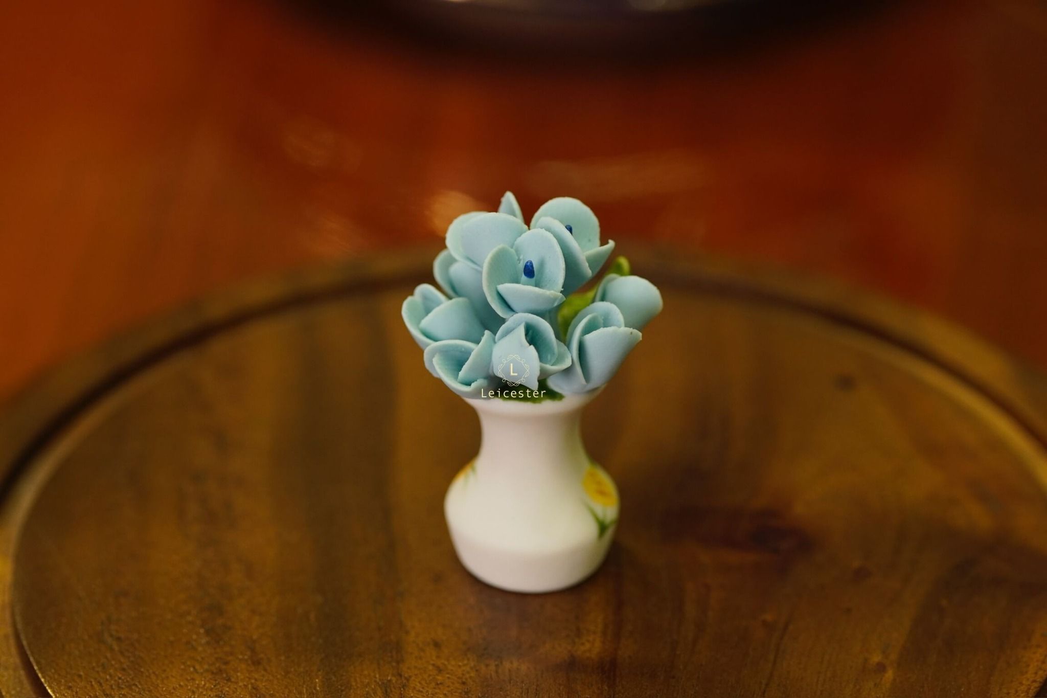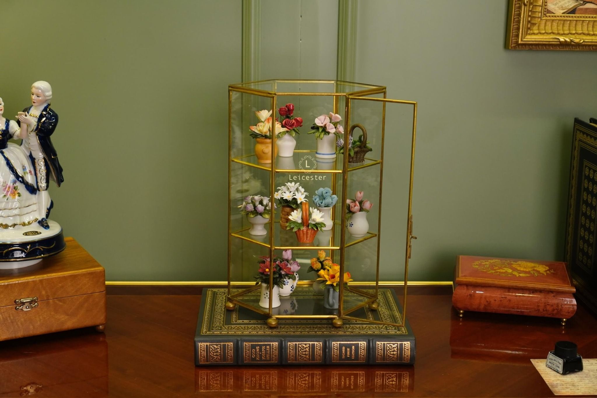Bộ sưu tập gồm 13 mô hình hoa sứ thủ công, đại diện cho 12 tháng trong năm, được chế tác bằng gốm sứ cao cấp, nhuộm màu thủ công và tạo hình mềm mại đến từng cánh hoa. Từ giỏ hoa thủ công đến những chiếc bình mini, mỗi mẫu đều mang sắc thái riêng biệt, như một lát cắt tinh tế của bốn mùa. Tất cả được trưng bày trong một tủ kính 6 cạnh viền đồng ánh kim, tạo nên bố cục trang nhã và thanh lịch như một góc triển lãm thu nhỏ giữa đời sống hiện đại.