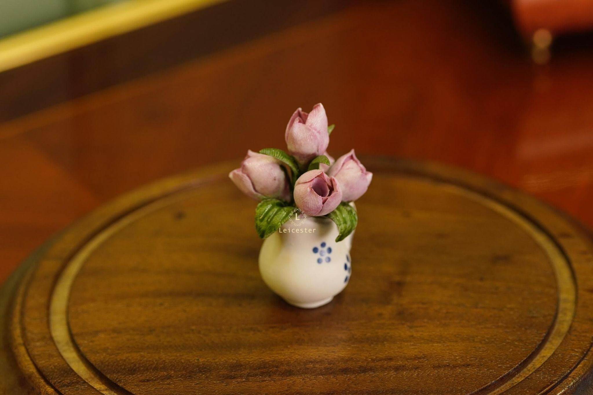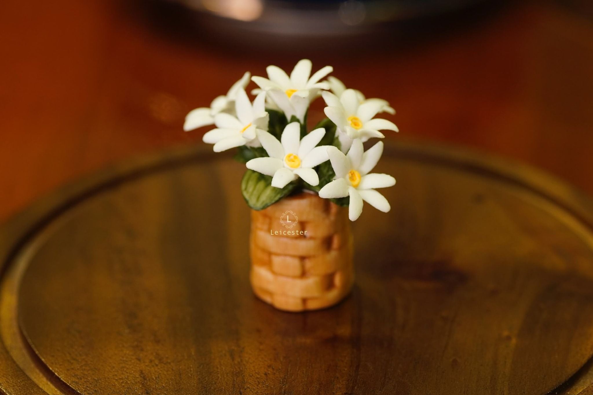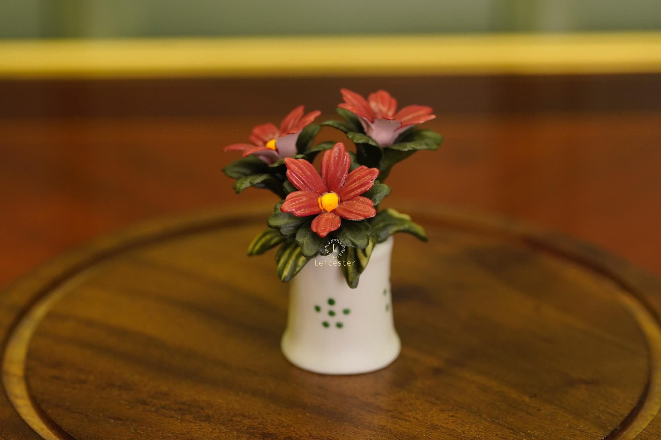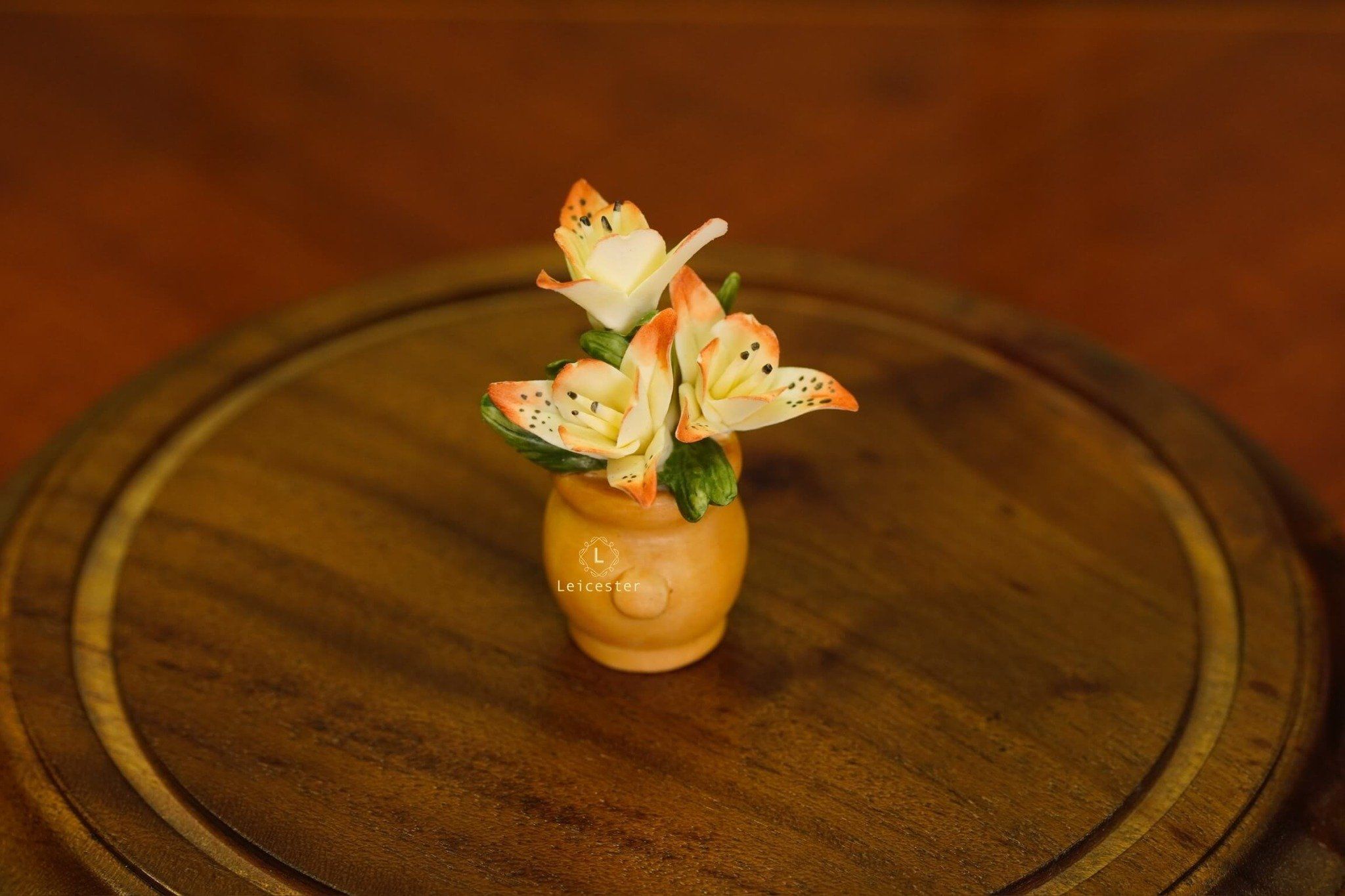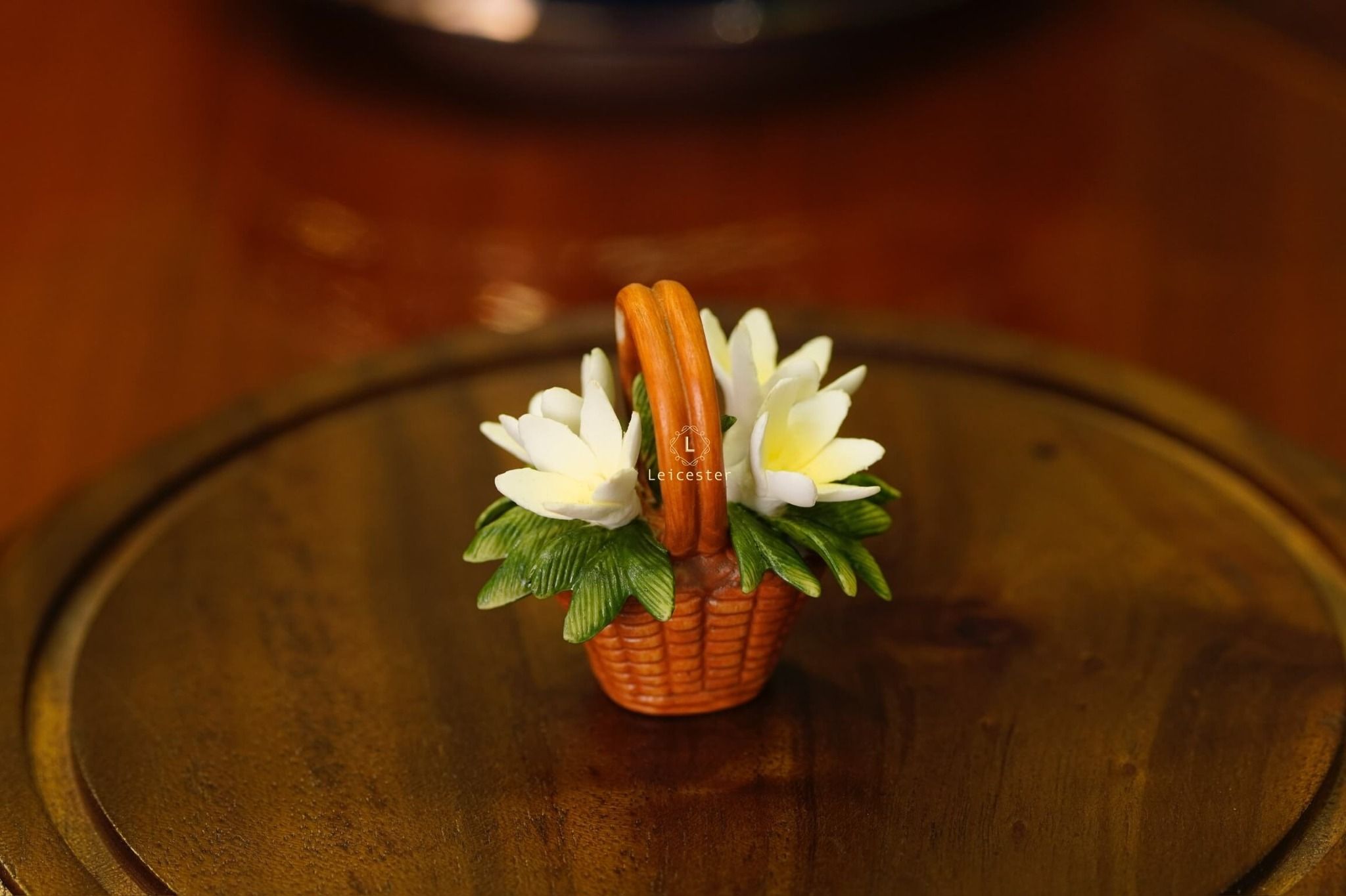 Bộ sưu tập gồm 13 mô hình hoa sứ thủ công, đại diện cho 12 tháng trong năm, được chế tác bằng gốm sứ cao cấp, nhuộm màu thủ công và tạo hình mềm mại đến từng cánh hoa. Từ giỏ hoa thủ công đến những chiếc bình mini, mỗi mẫu đều mang sắc thái riêng biệt, như một lát cắt tinh tế của bốn mùa. Tất cả được trưng bày trong một tủ kính 6 cạnh viền đồng ánh kim, tạo nên bố cục trang nhã và thanh lịch như một góc triển lãm thu nhỏ giữa đời sống hiện đại.