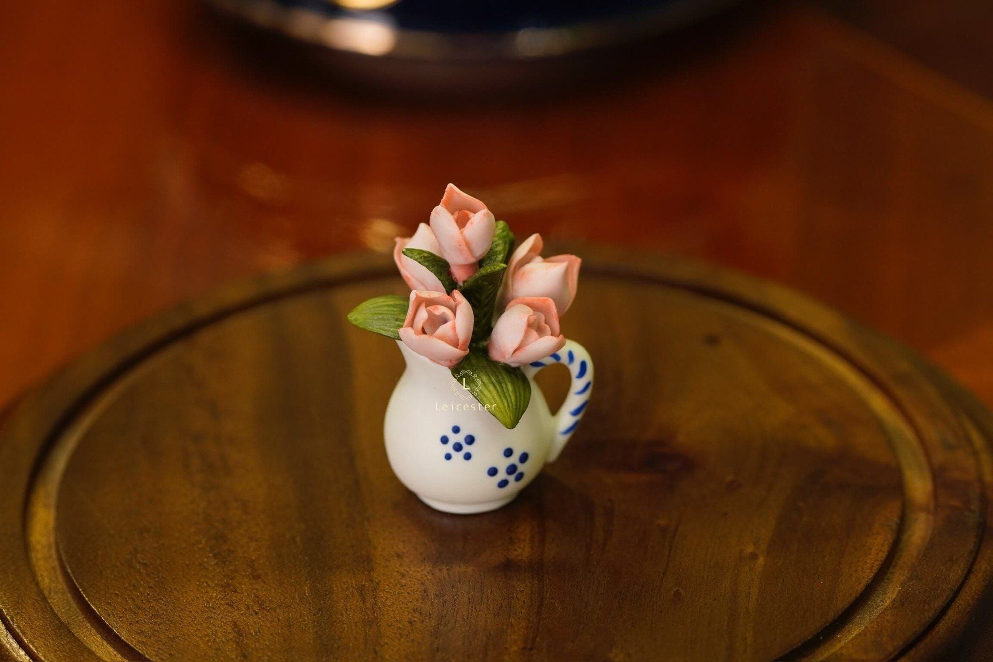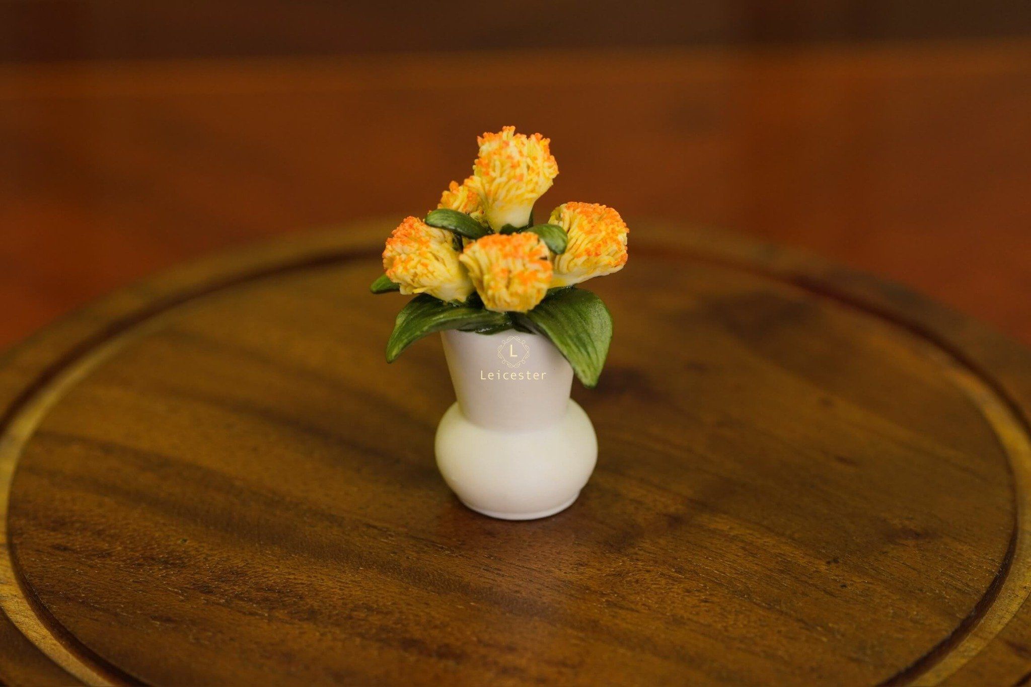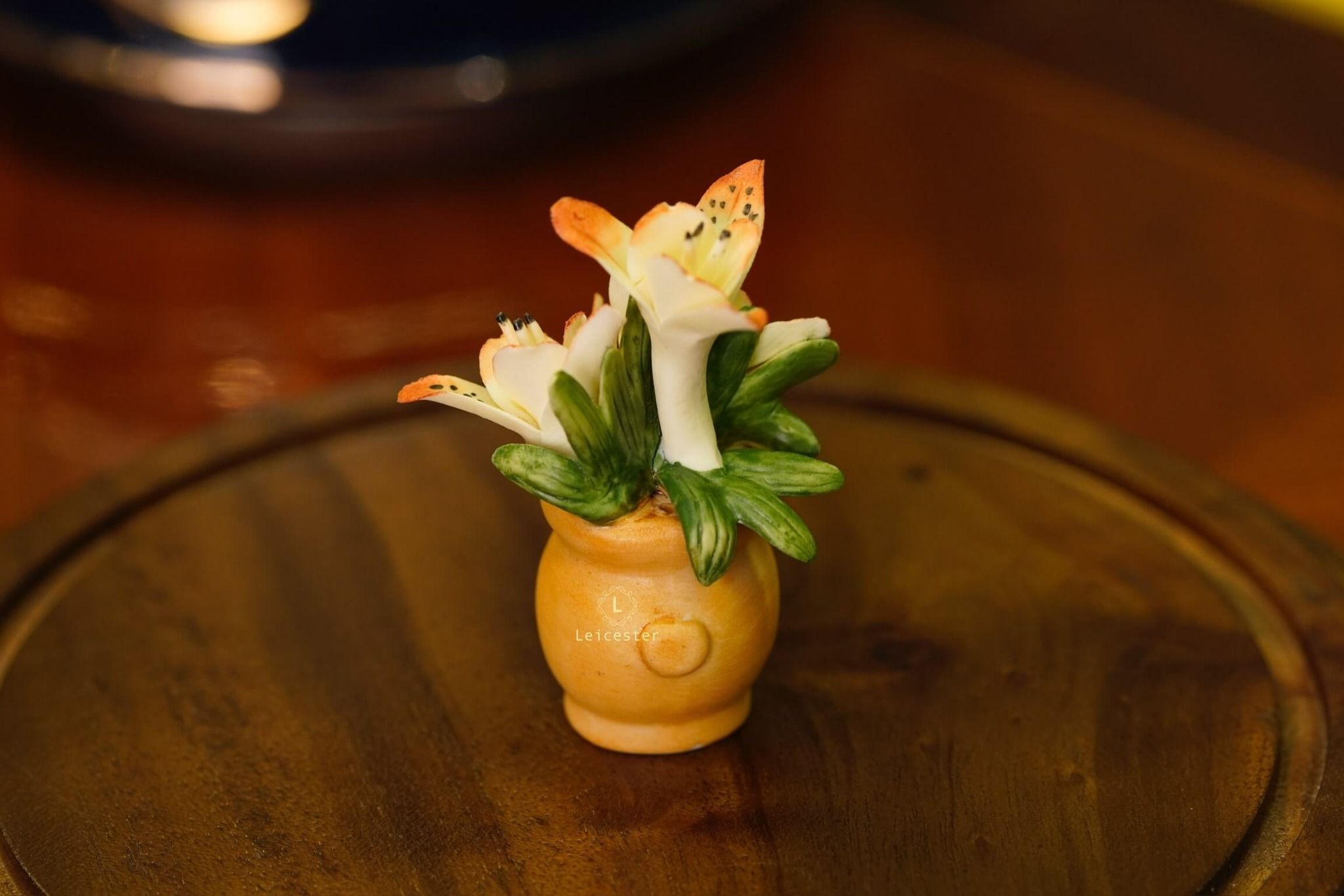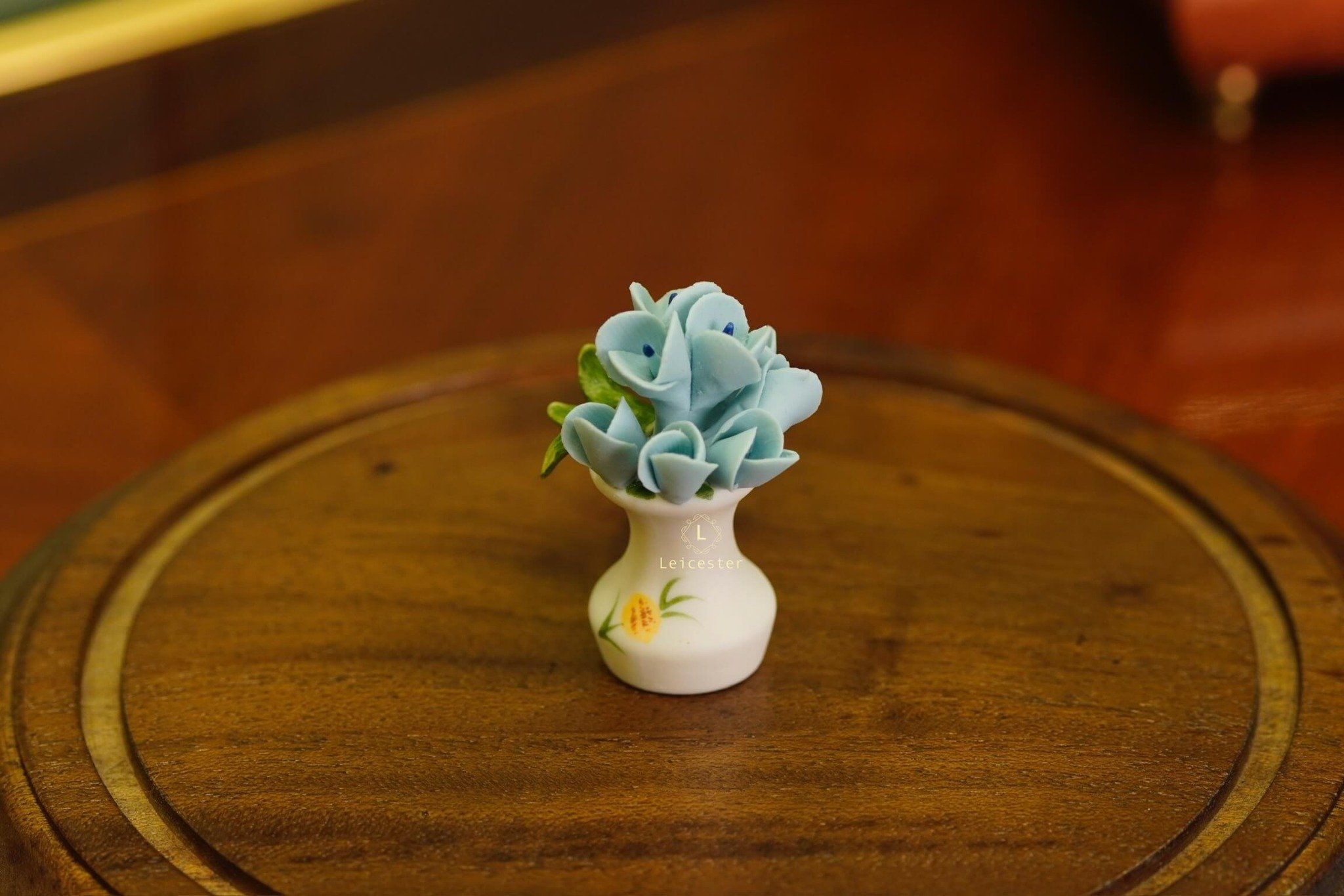 Bộ sưu tập gồm 13 mô hình hoa sứ thủ công, đại diện cho 12 tháng trong năm, được chế tác bằng gốm sứ cao cấp, nhuộm màu thủ công và tạo hình mềm mại đến từng cánh hoa. Từ giỏ hoa thủ công đến những chiếc bình mini, mỗi mẫu đều mang sắc thái riêng biệt, như một lát cắt tinh tế của bốn mùa. Tất cả được trưng bày trong một tủ kính 6 cạnh viền đồng ánh kim, tạo nên bố cục trang nhã và thanh lịch như một góc triển lãm thu nhỏ giữa đời sống hiện đại.