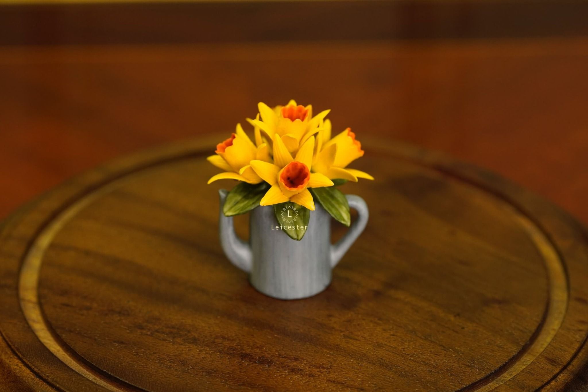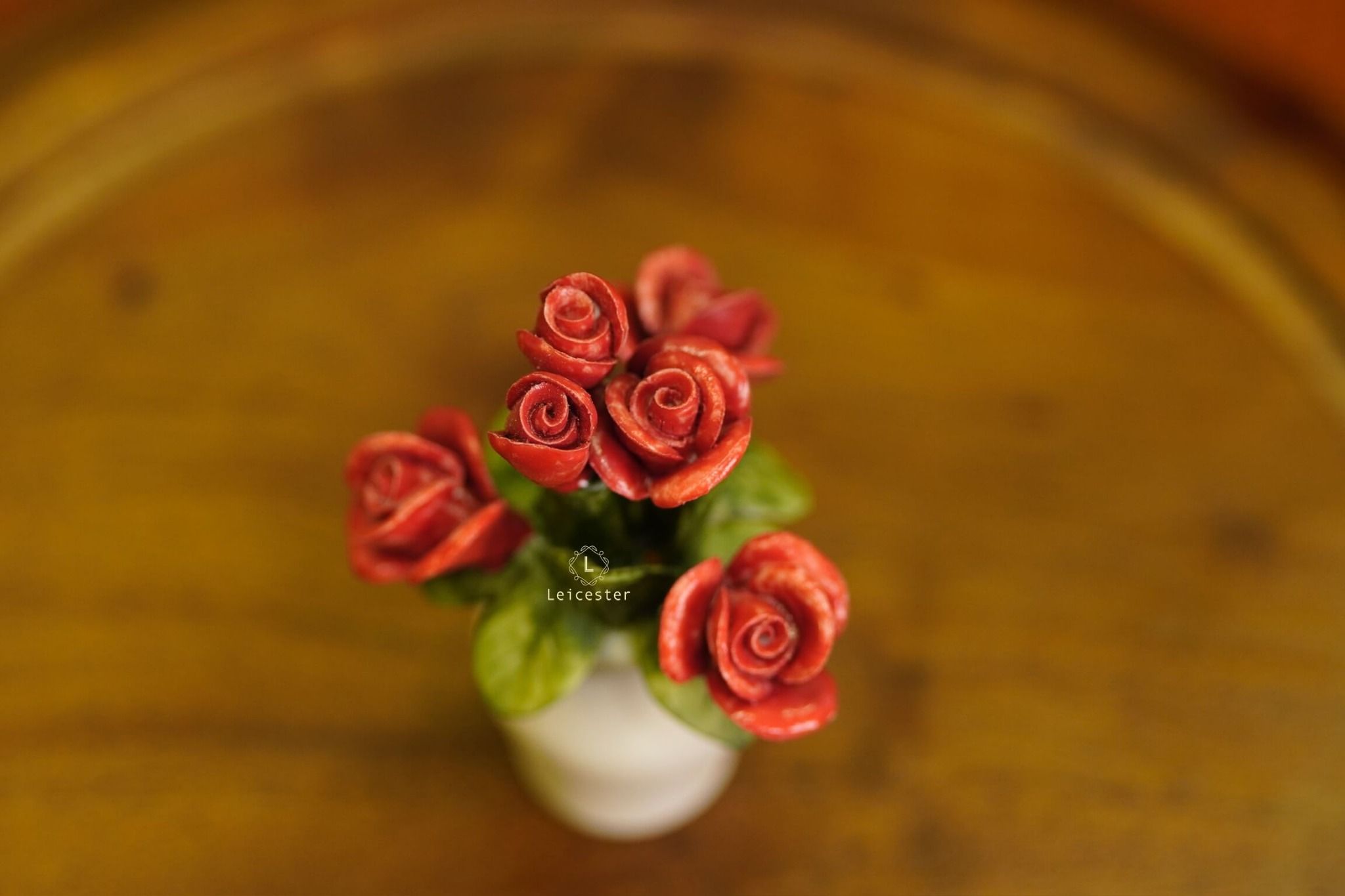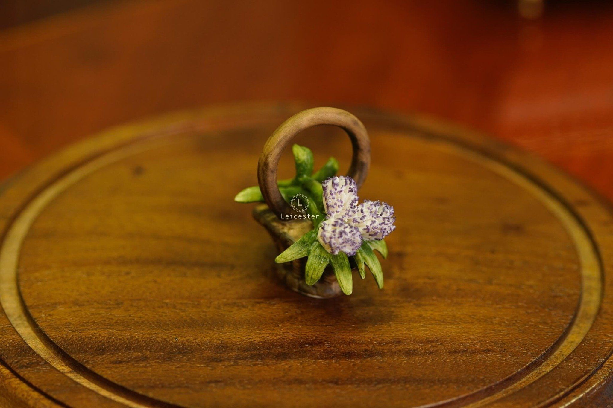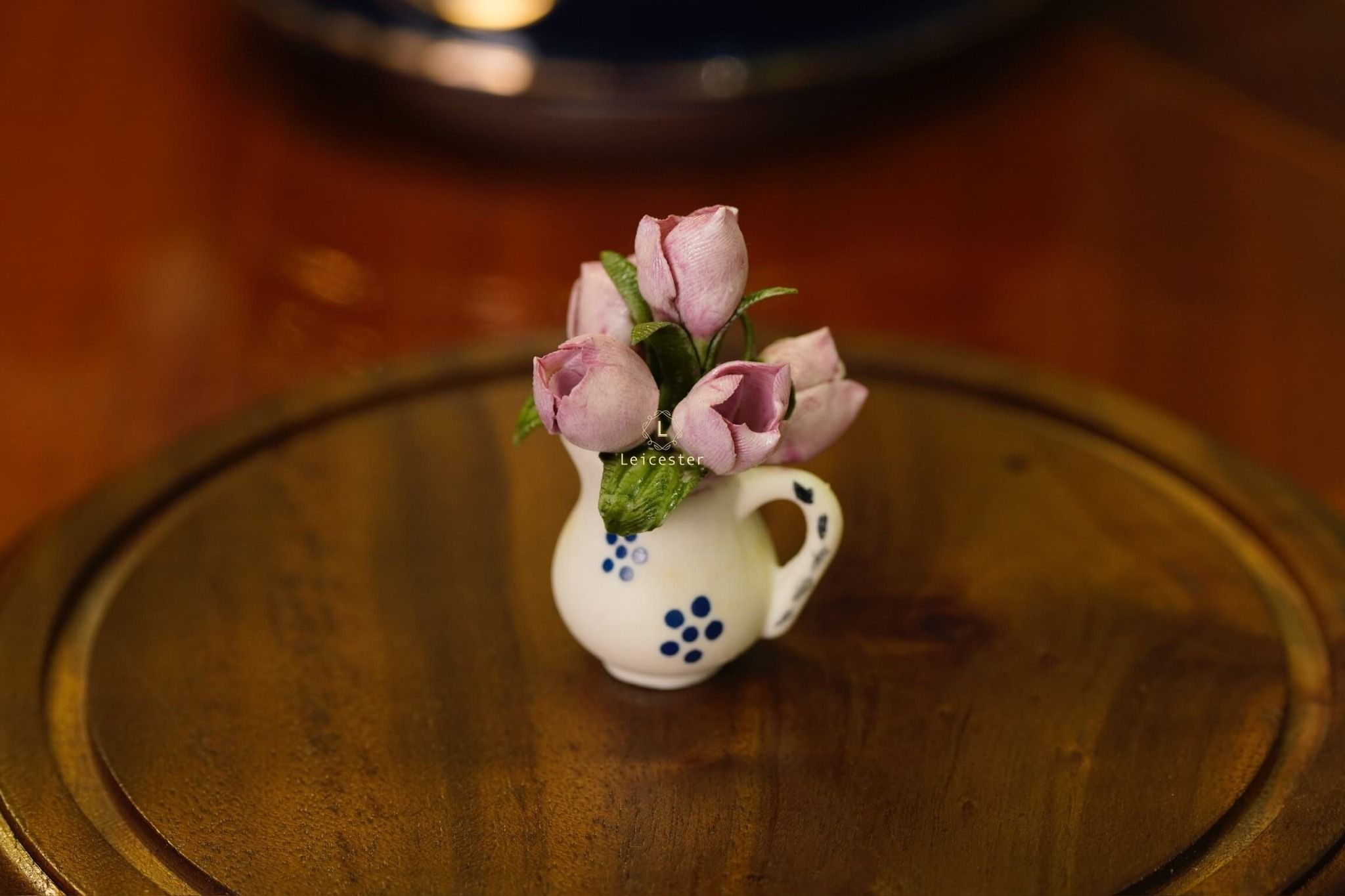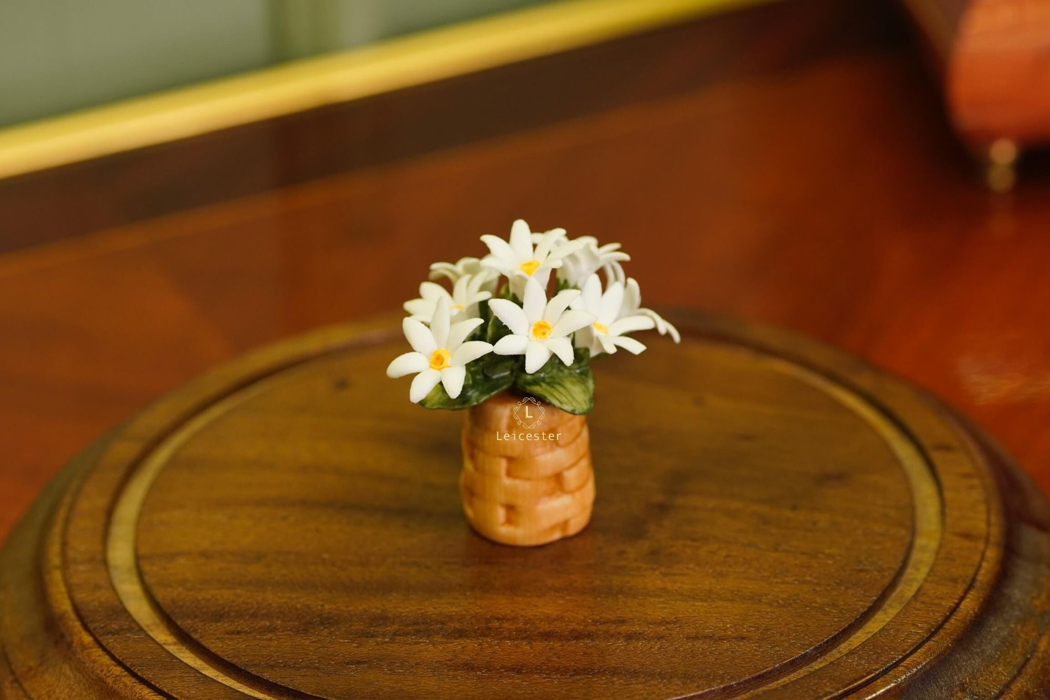 Bộ sưu tập gồm 13 mô hình hoa sứ thủ công, đại diện cho 12 tháng trong năm, được chế tác bằng gốm sứ cao cấp, nhuộm màu thủ công và tạo hình mềm mại đến từng cánh hoa. Từ giỏ hoa thủ công đến những chiếc bình mini, mỗi mẫu đều mang sắc thái riêng biệt, như một lát cắt tinh tế của bốn mùa. Tất cả được trưng bày trong một tủ kính 6 cạnh viền đồng ánh kim, tạo nên bố cục trang nhã và thanh lịch như một góc triển lãm thu nhỏ giữa đời sống hiện đại.
