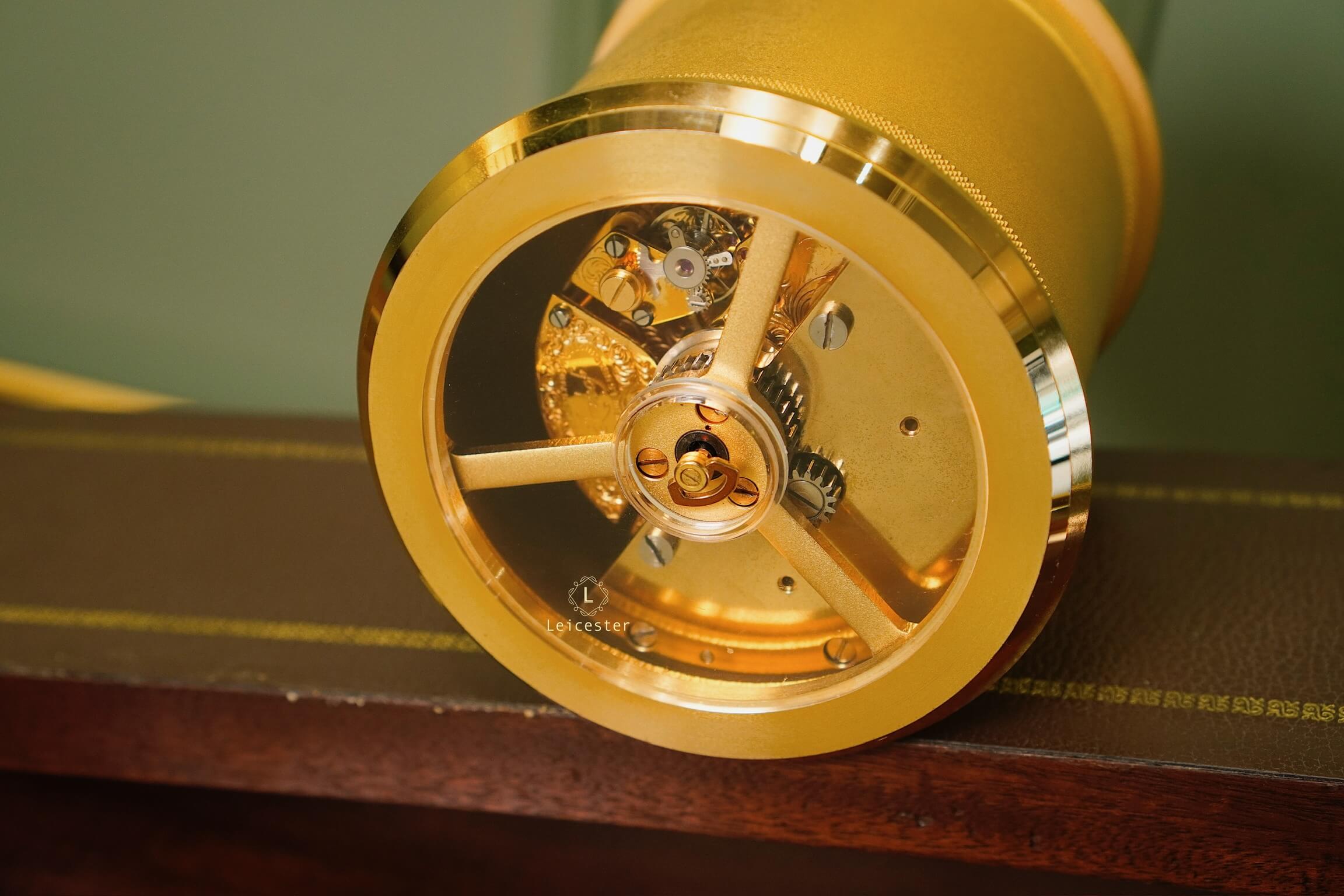 Đặc biệt, thay vì vận hành bằng quả lắc hay dây cót như đồng hồ thông thường, tuyệt tác cơ học này được thiết kế để cả khối đồng hồ tròn tự dịch chuyển trên mặt phẳng nghiêng nhờ trọng lực. Mỗi ngày, đồng hồ trượt một đoạn nhỏ theo vạch ngày trong tuần, vừa hiển thị thời gian chính xác vừa thể hiện nguyên lý cơ học độc đáo – minh chứng sống động cho sáng tạo đồng hồ Thụy Sĩ. Đây không chỉ là một chiếc đồng hồ báo giờ mà còn là câu chuyện về trí tuệ cơ học và nghệ thuật chế tác truyền thống.