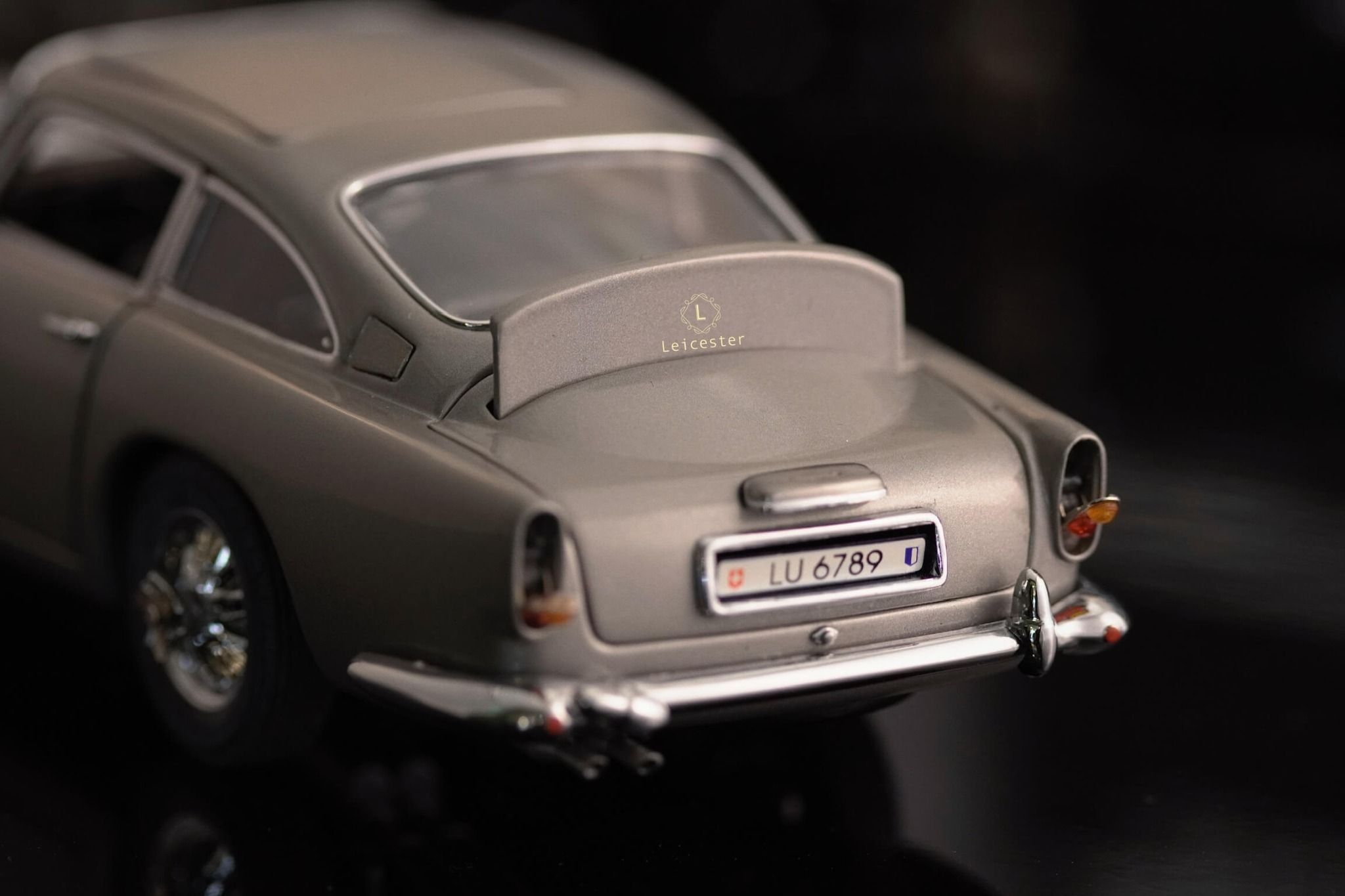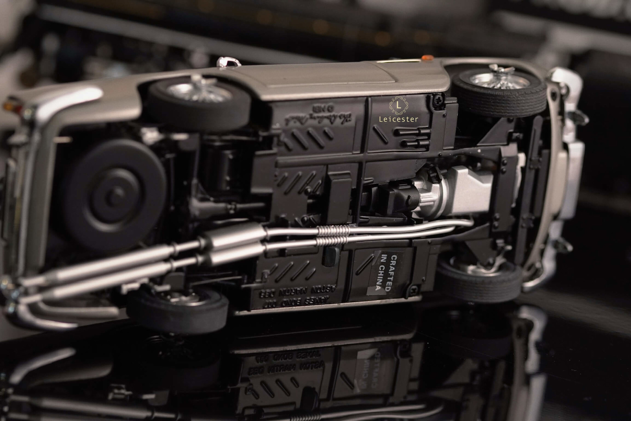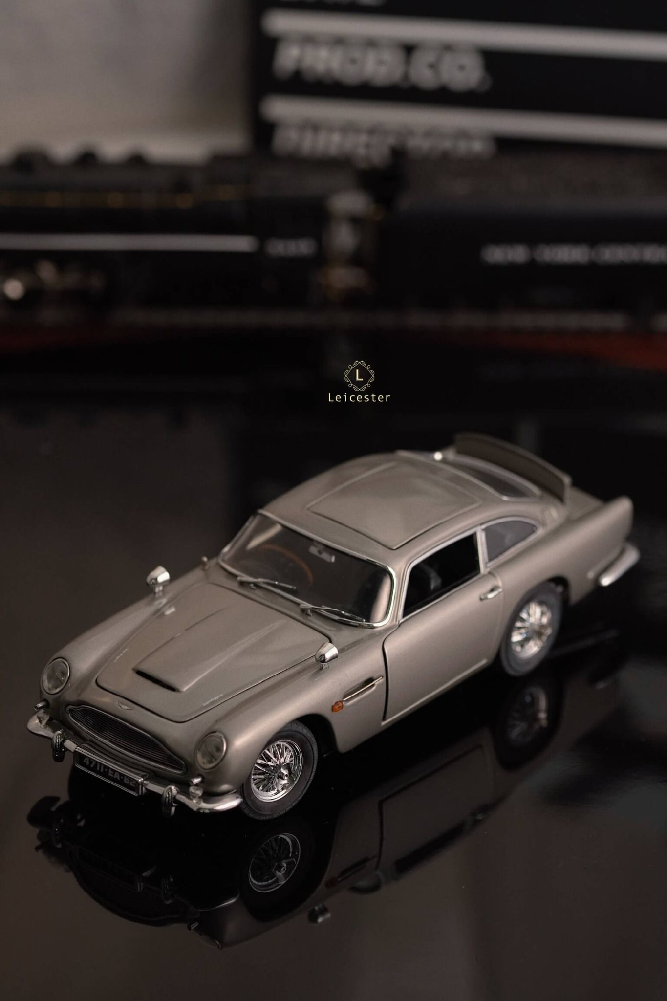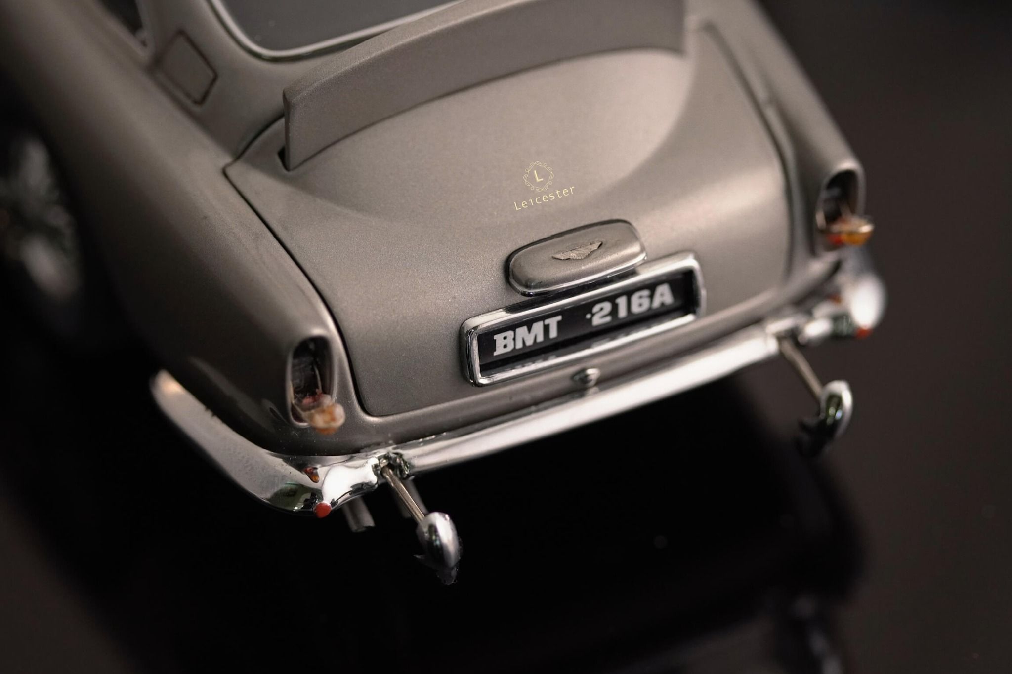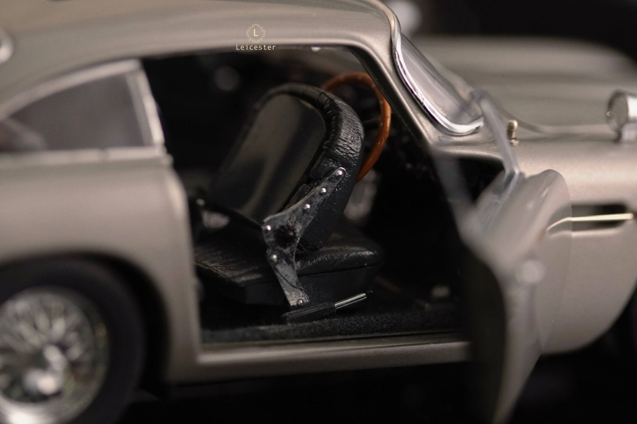 Chiếc xe Aston Martin DB5 màu Silver Birch với những tiện ích phức tạp như: biển số xe xoay, thiết bị cắt lốp xe được trang bị tại bánh xe, súng máy ẩn trong đèn xe trước, nơi xả dầu và đinh trong đèn xe sau, tấm chắn đạn cho kính sau và thậm chí là cả ghế phóng khẩn cấp cũng được tái tạo lại trong một bản sao tỷ lệ 1:24 được chế tác, lắp ráp và hoàn thiện bằng tay từ hơn 300 thành phần riêng biệt bởi Danbury Mint.