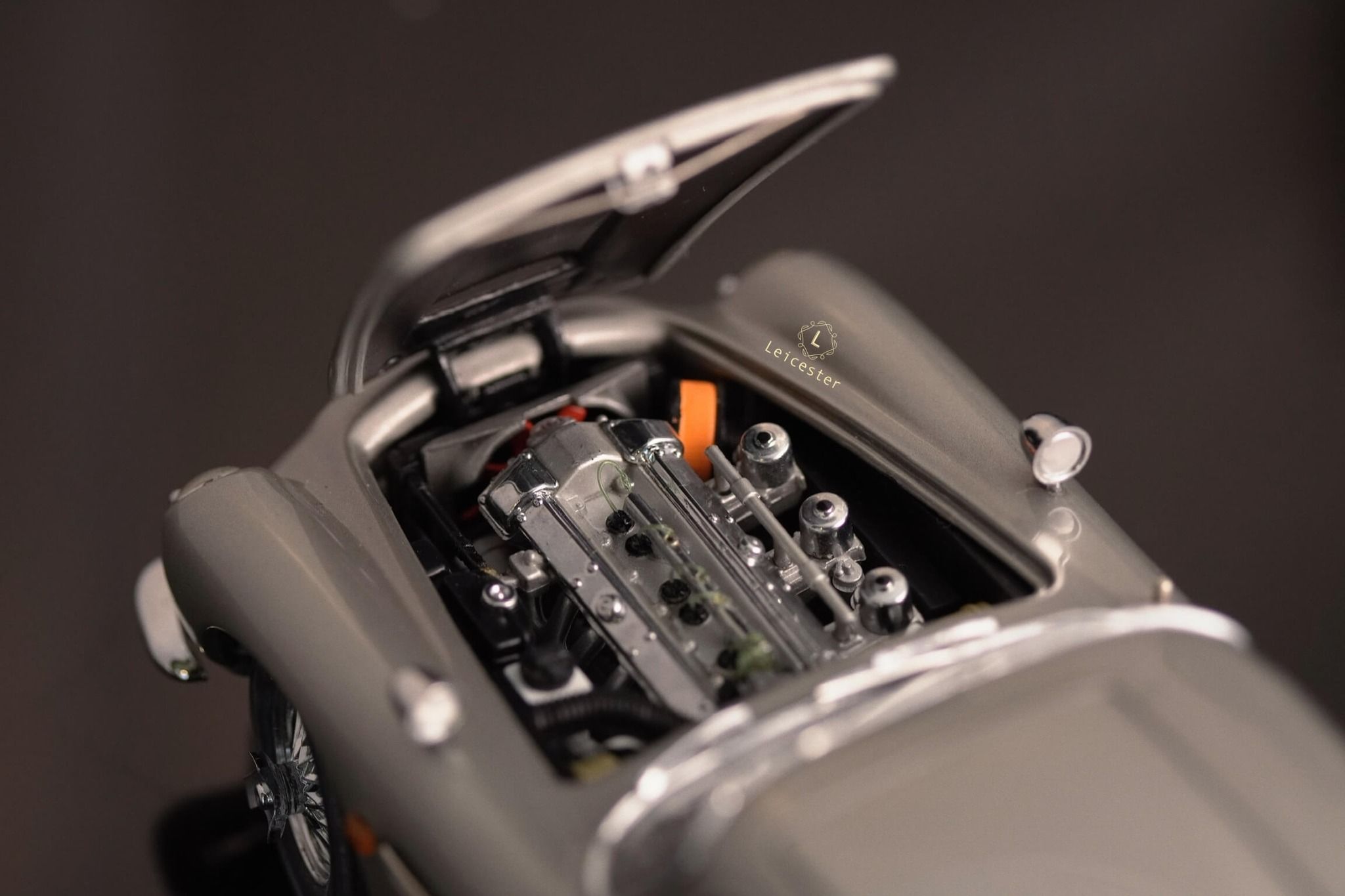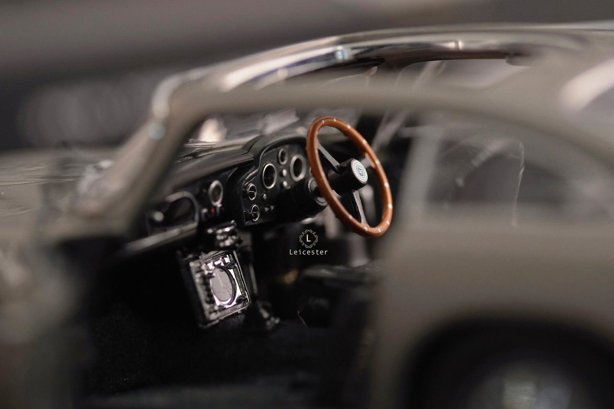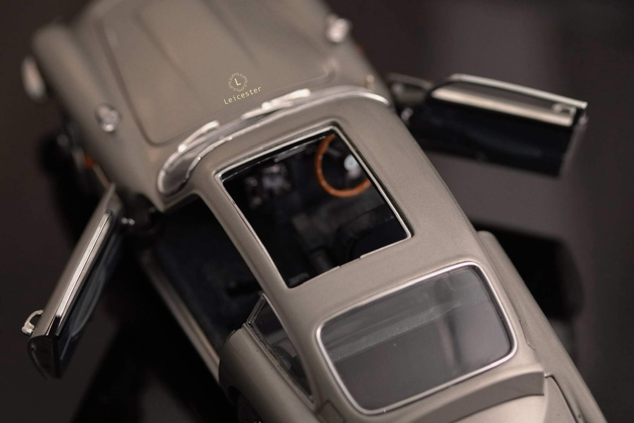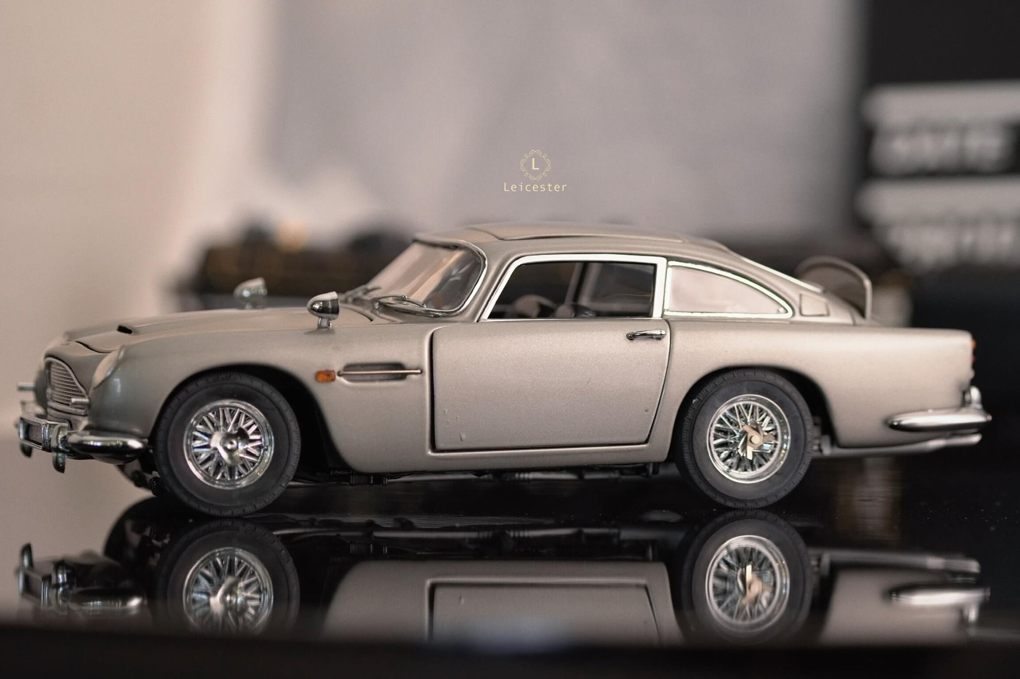 Chiếc xe Aston Martin DB5 màu Silver Birch với những tiện ích phức tạp như: biển số xe xoay, thiết bị cắt lốp xe được trang bị tại bánh xe, súng máy ẩn trong đèn xe trước, nơi xả dầu và đinh trong đèn xe sau, tấm chắn đạn cho kính sau và thậm chí là cả ghế phóng khẩn cấp cũng được tái tạo lại trong một bản sao tỷ lệ 1:24 được chế tác, lắp ráp và hoàn thiện bằng tay từ hơn 300 thành phần riêng biệt bởi Danbury Mint.