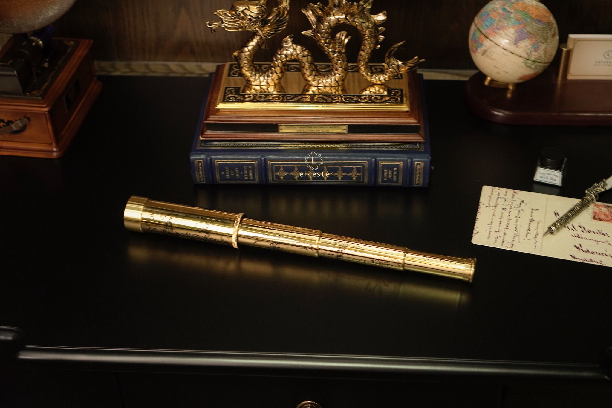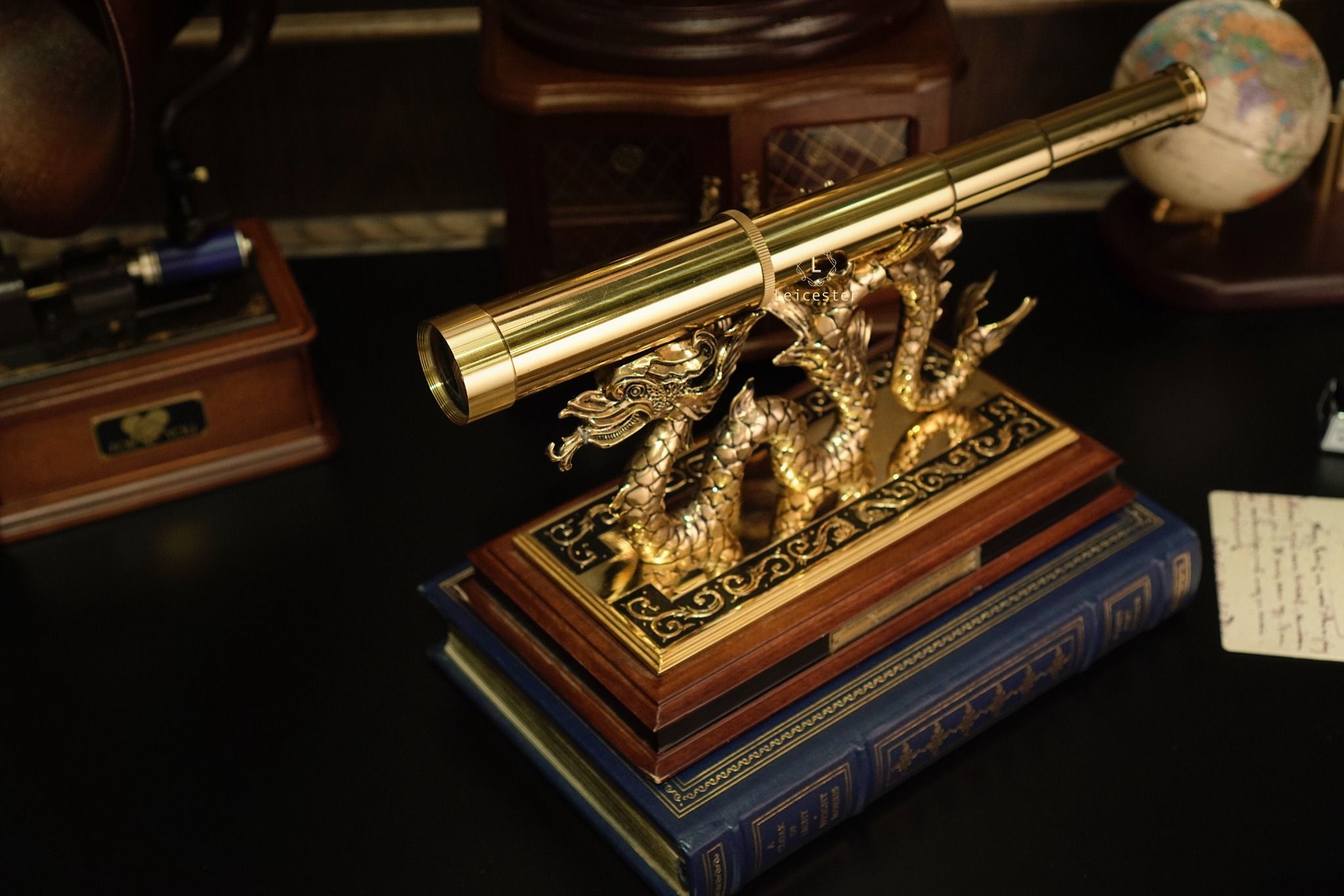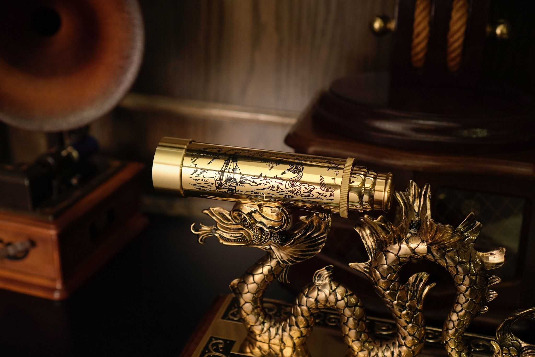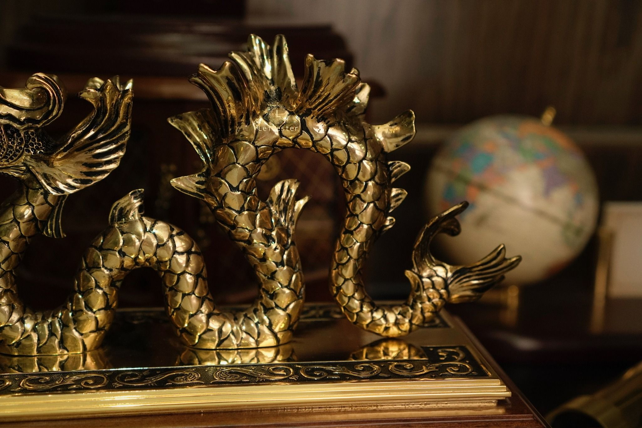Chất liệu: đồng thau mạ vàng 24k, đế gỗ