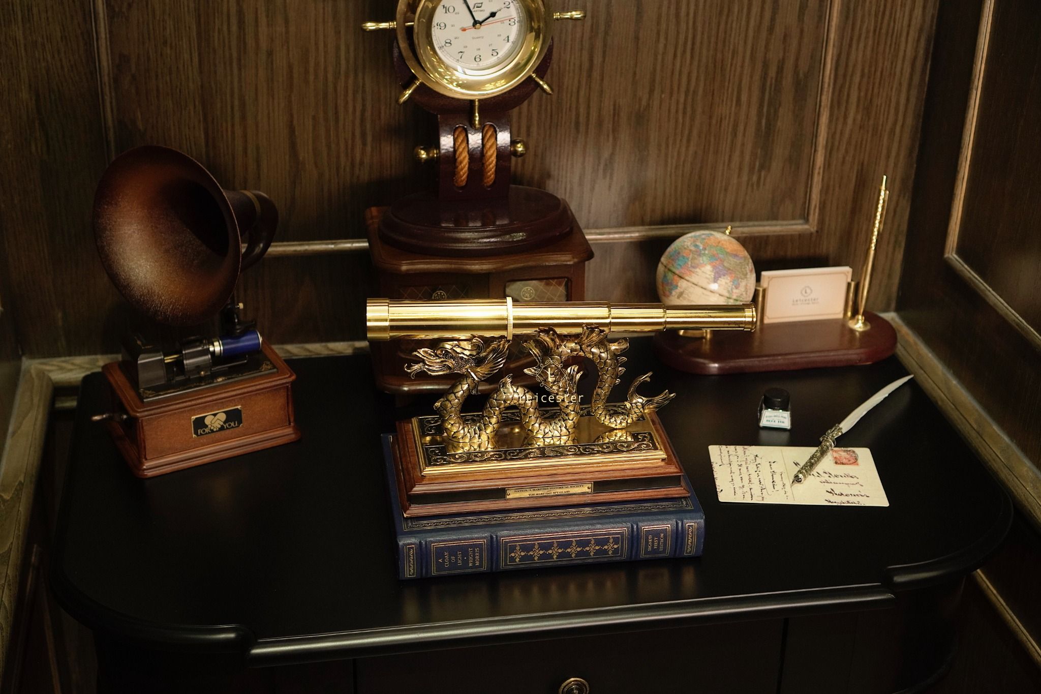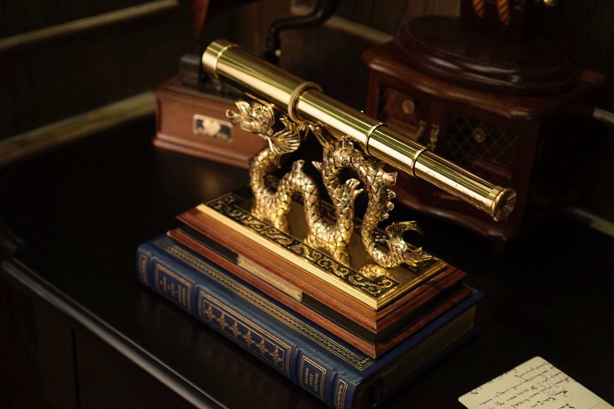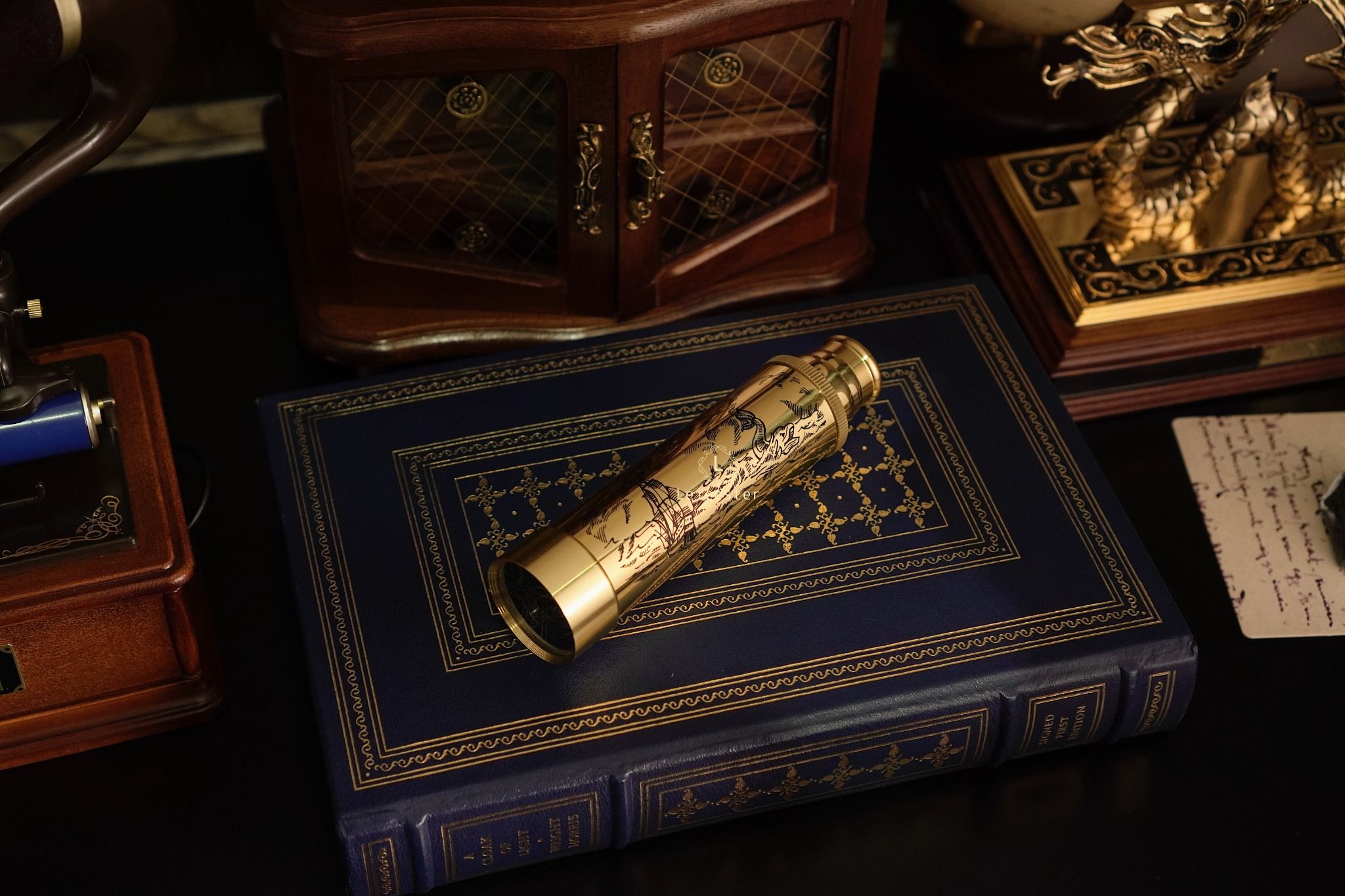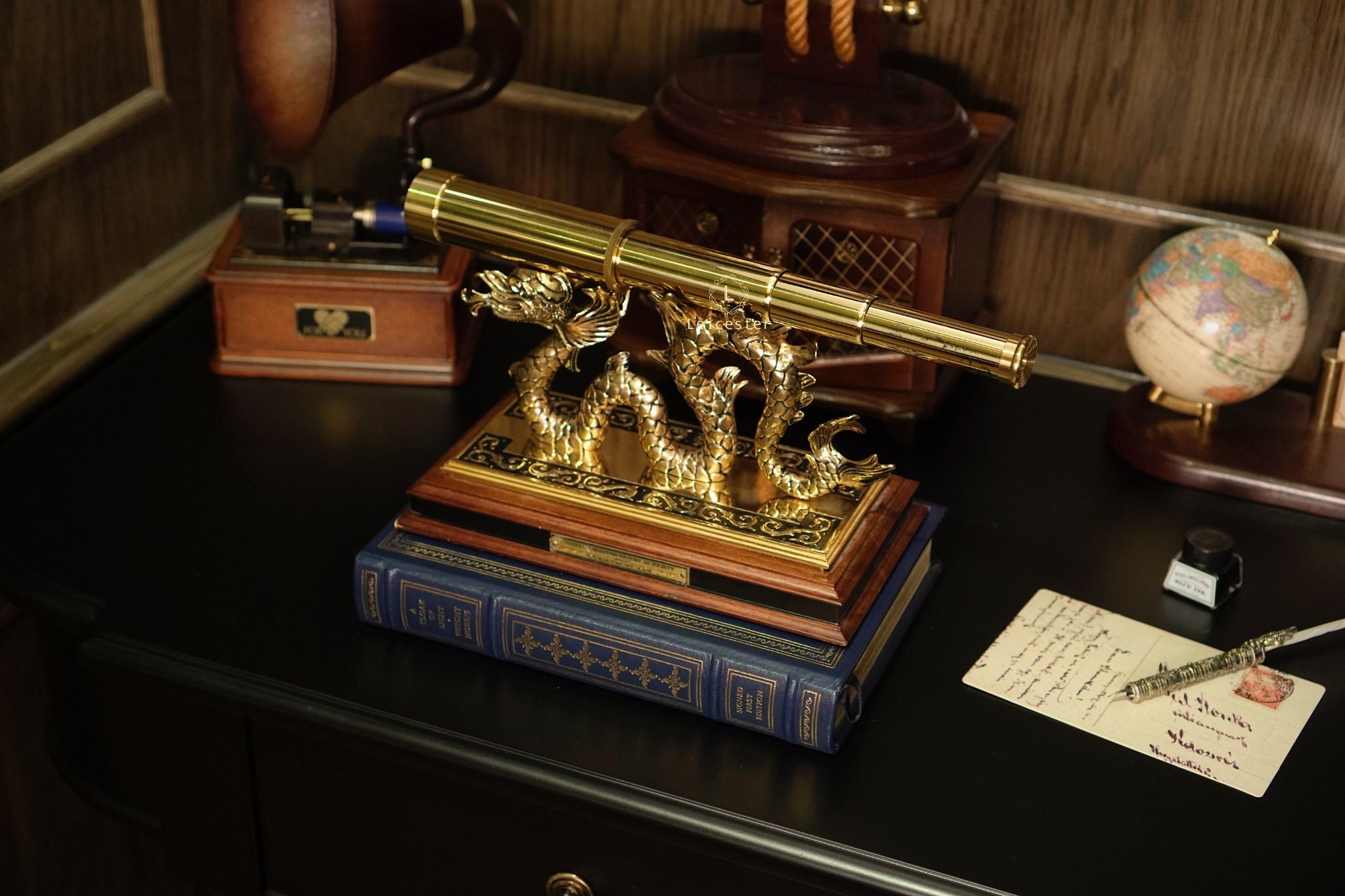 Chất liệu: đồng thau mạ vàng 24k, đế gỗ