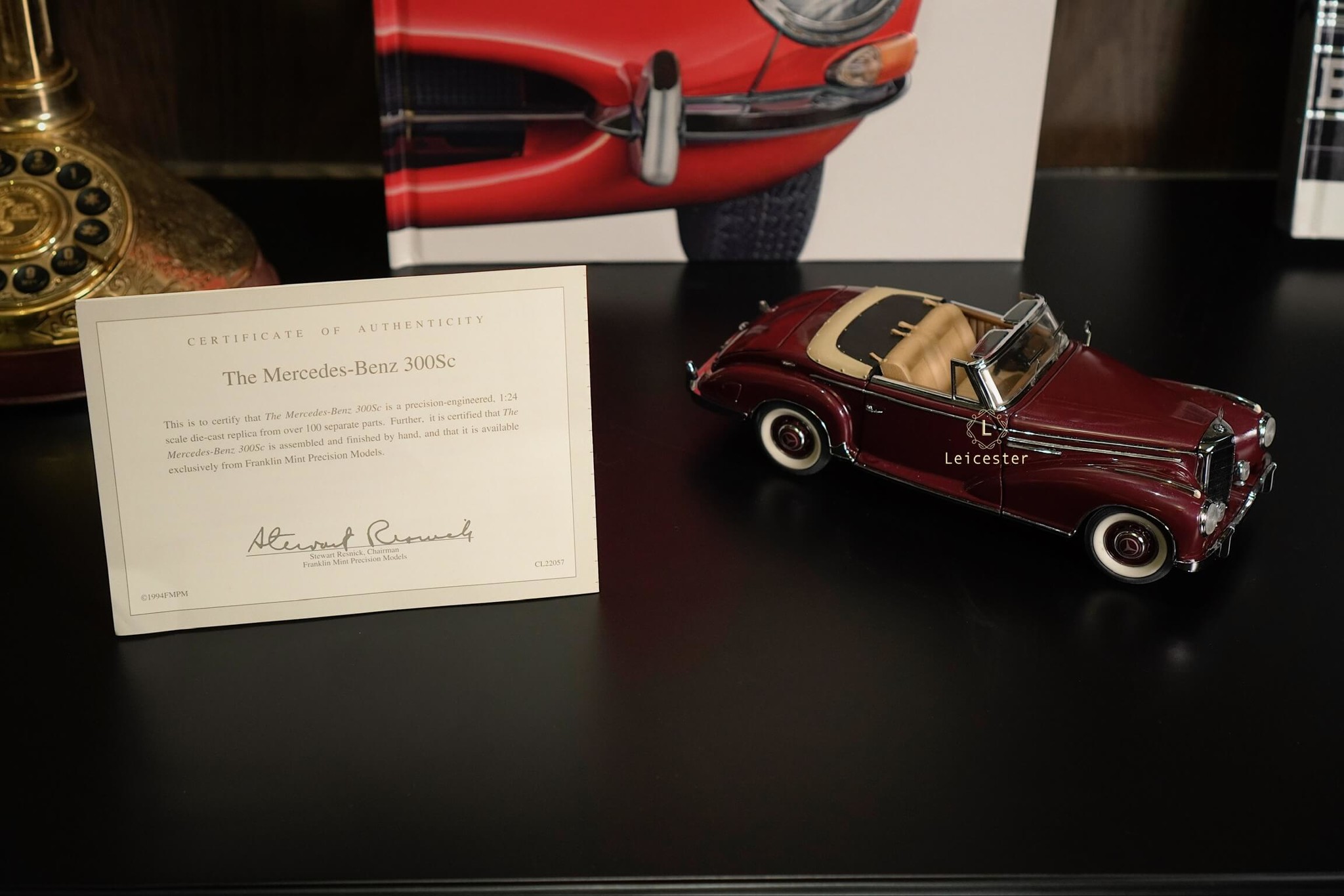 Mô hình đúc khuôn The Mercedes-Benz 300Sc được chứng nhận là bản sao đích thực của chiếc Mercedes-Benz 300Sc bởi Bảo tàng Mercedes-Benz. Franklin Mint đã thiết kế và lắp ráp thủ công từ hơn 100 bộ phận riêng biệt theo tỷ lệ 1:24, mọi chi tiết đều được tái tạo một cách chân thực, từ động cơ 2996cc phun xăng cho đến những đường nét uyển chuyển của thân xe mui trần.