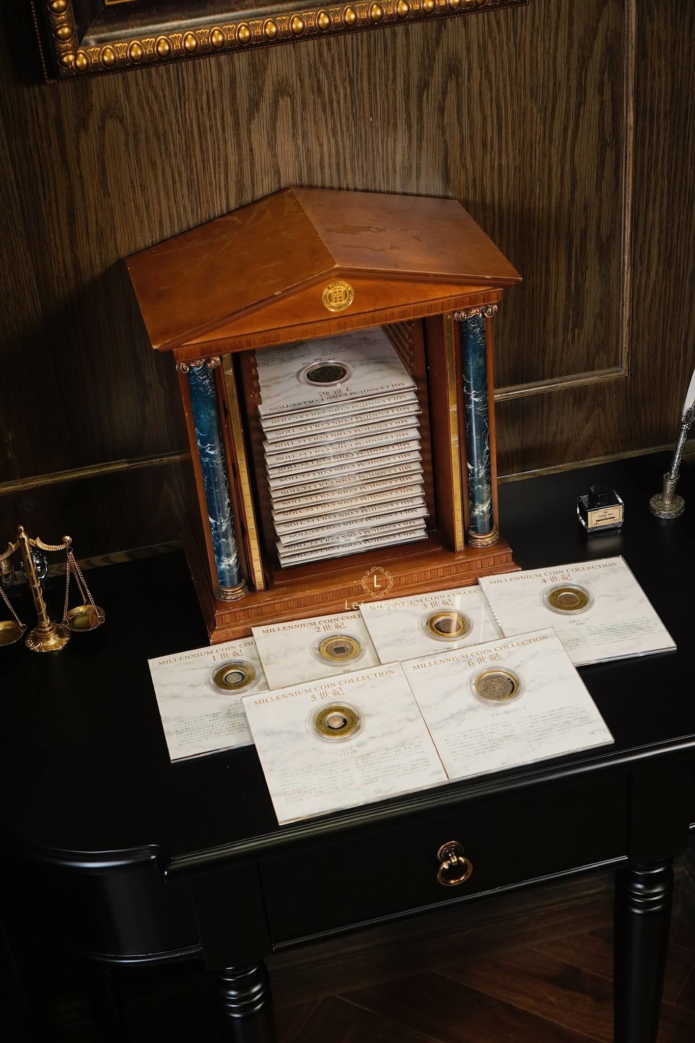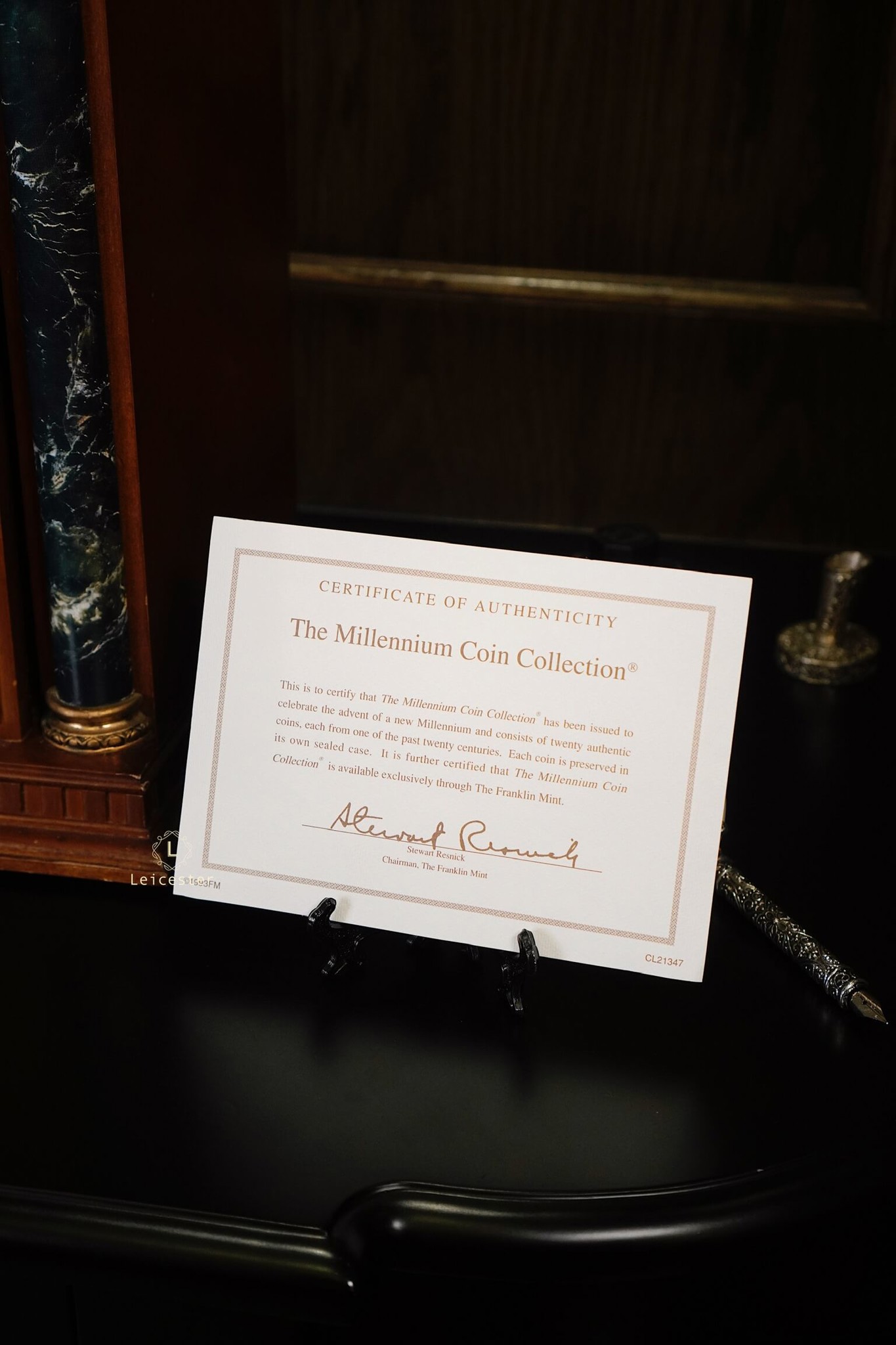 Được phát hành để chào mừng sự ra đời của một Thiên niên kỷ mới, The Millennium Coin collection gồm 20 đồng xu từ thế kỷ thứ I đến thế kỷ thứ XX. Mỗi một đồng xu được bảo quản trong một hộp kín kèm theo là thông tin của đồng xu vào thế kỷ đó và được đặt trong tủ gỗ mang phong cách Hy Lạp cổ đại.