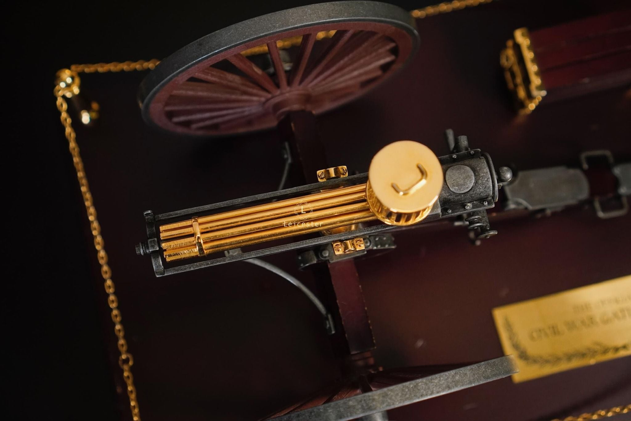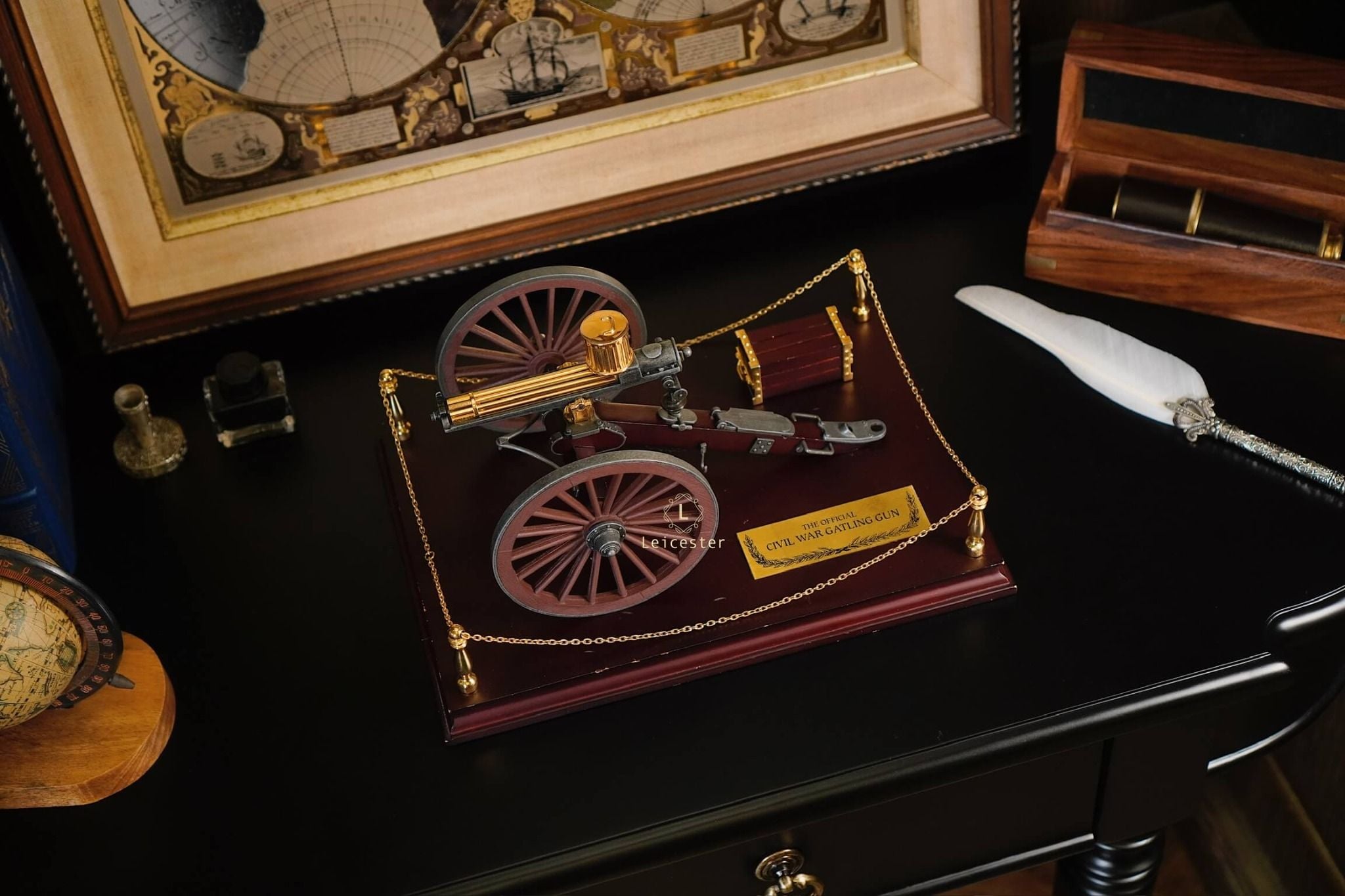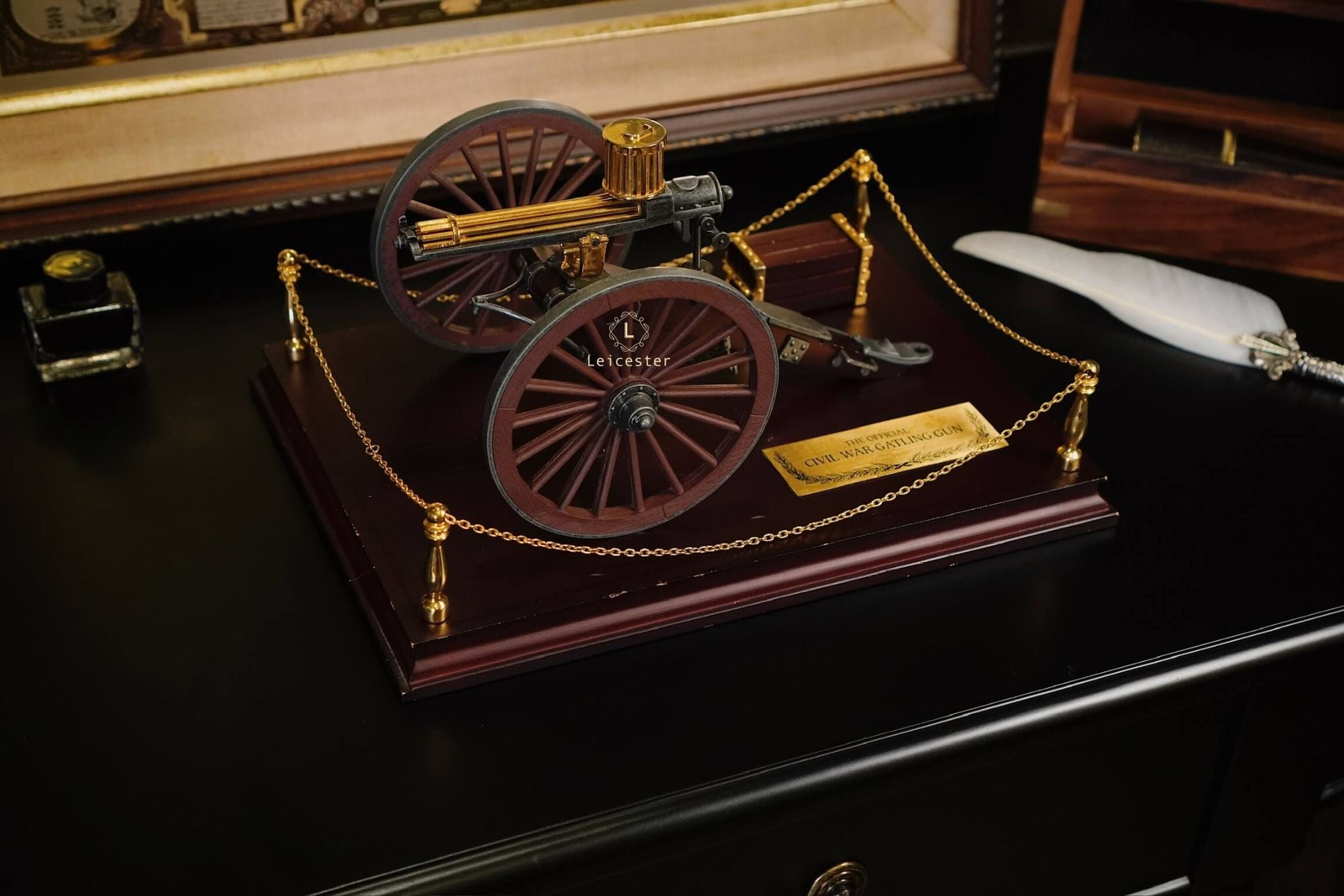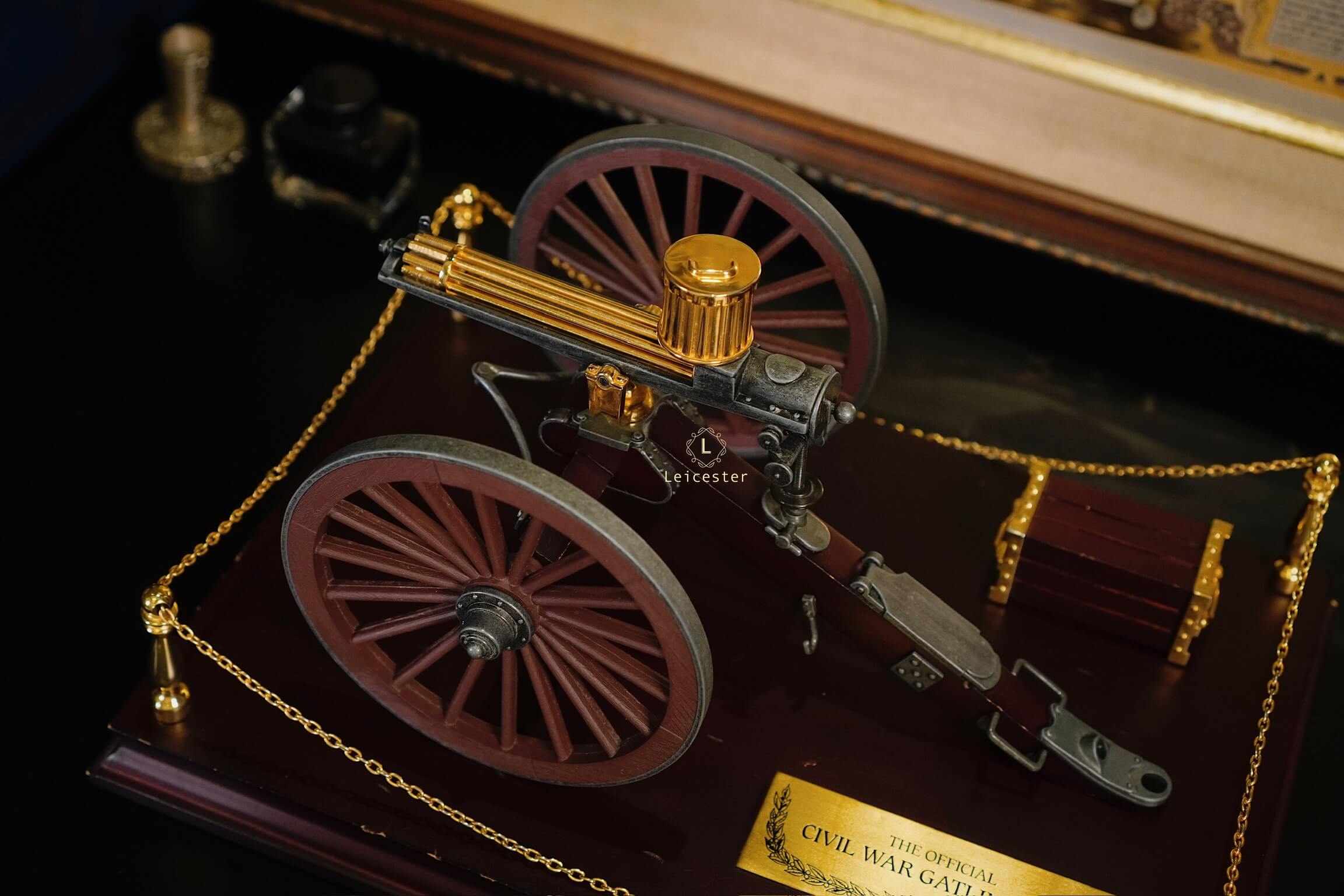 The Official Civil War Gatling Gun là một bản sao tuyệt đẹp được Thư viện và Bảo tàng Nội chiến xác thực, với độ chính xác đến từng chi tiết nhờ đôi bàn tay khéo léo của những người nghệ nhân tài giỏi trong Franklin Mint. Đây không chỉ là một tác phẩm trang trí mà còn là sự kết hợp giữa nghệ thuật và lịch sử, là minh chứng cho một phát minh tuyệt vời của Richard Jordan Gatling trong thời chiến.