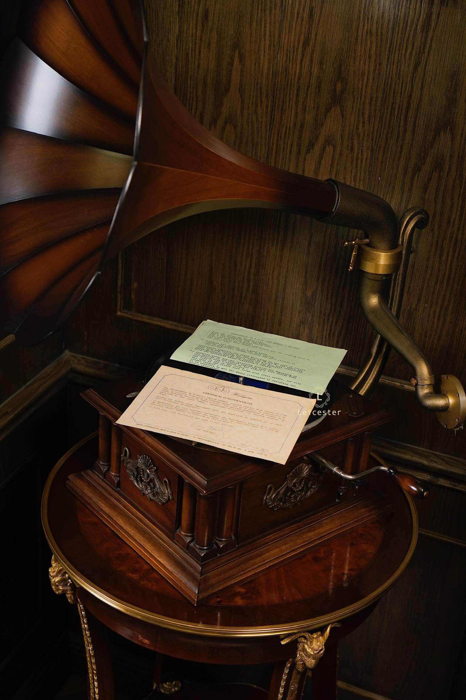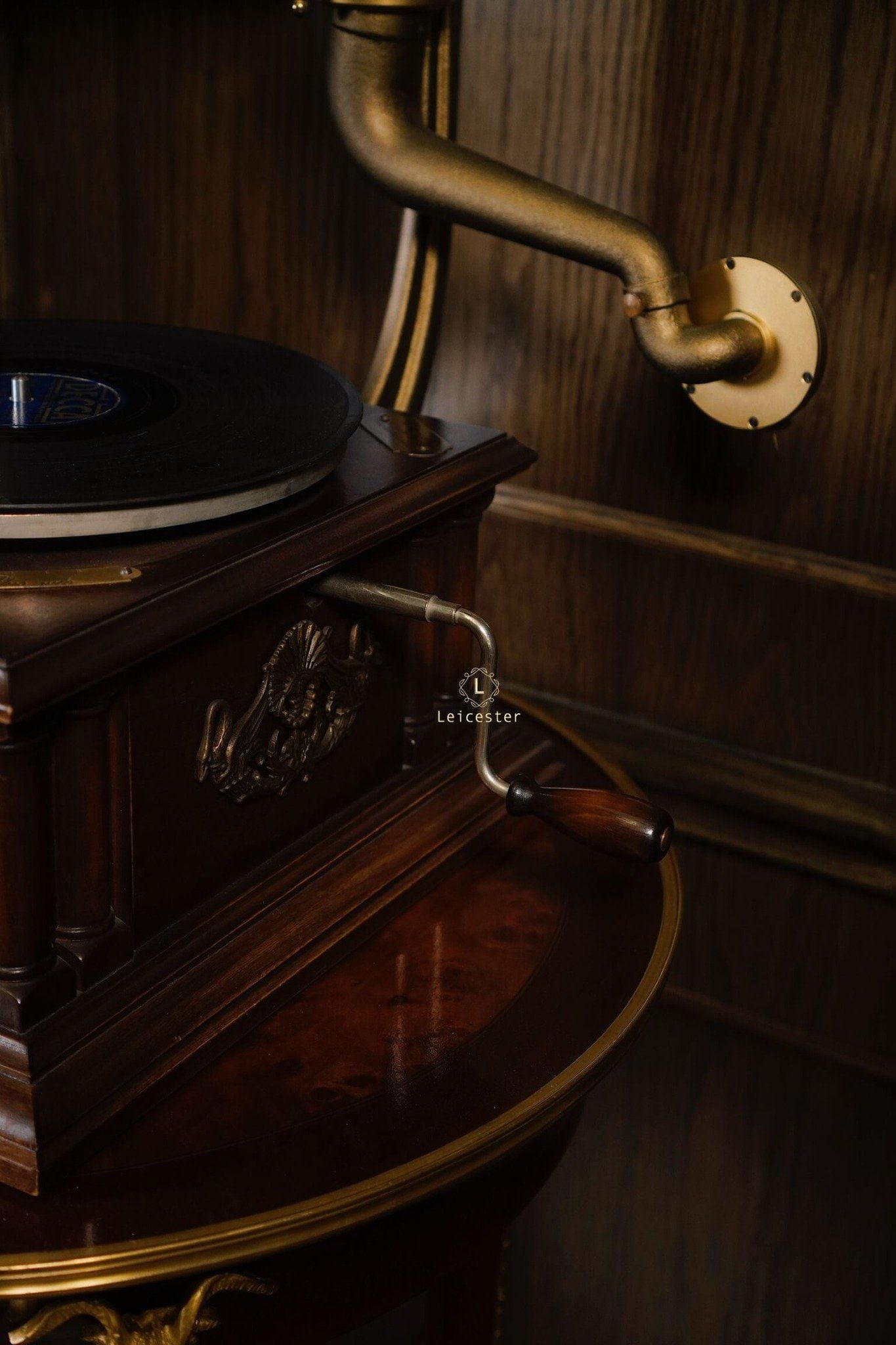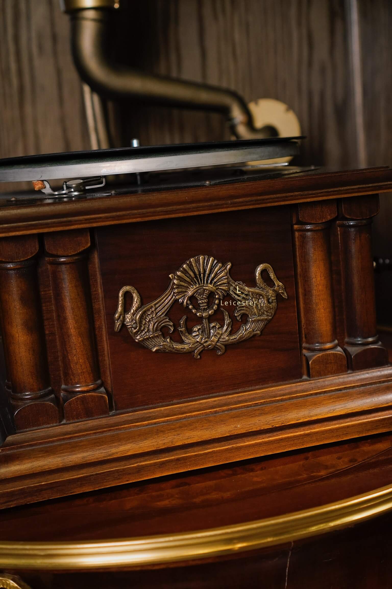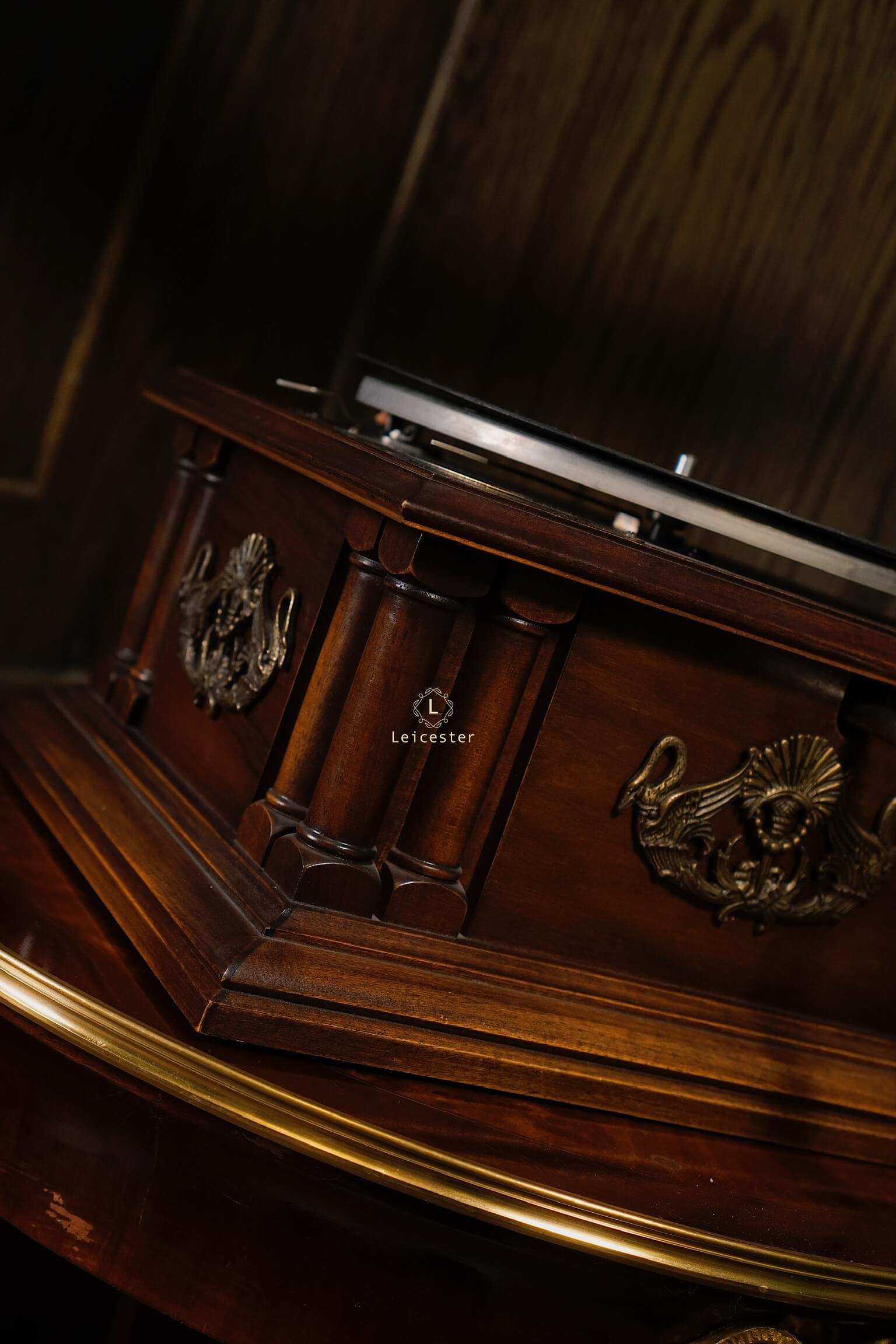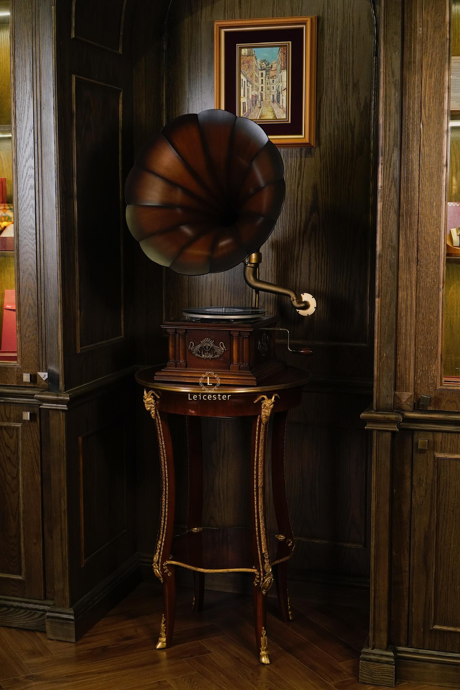 Tác phẩm cơ khí này mang dấu ấn di sản với thiết kế thủ công tinh xảo, loa kèn gỗ đặc trưng, họa tiết thiên nga chạm khắc tinh xảo, thân máy phủ bóng thủ công cùng các chi tiết được trau chuốt tỉ mỉ. Chỉ cần đặt tay quay, hạ mũi kim, tiếng nhạc sẽ vang lên, hòa cùng vòng đĩa quay chậm rãi, để từng phút giây thưởng thức trở thành trải nghiệm tinh tế và lưu giữ trọn vẹn nét đẹp cổ điển của thời đại vàng son.