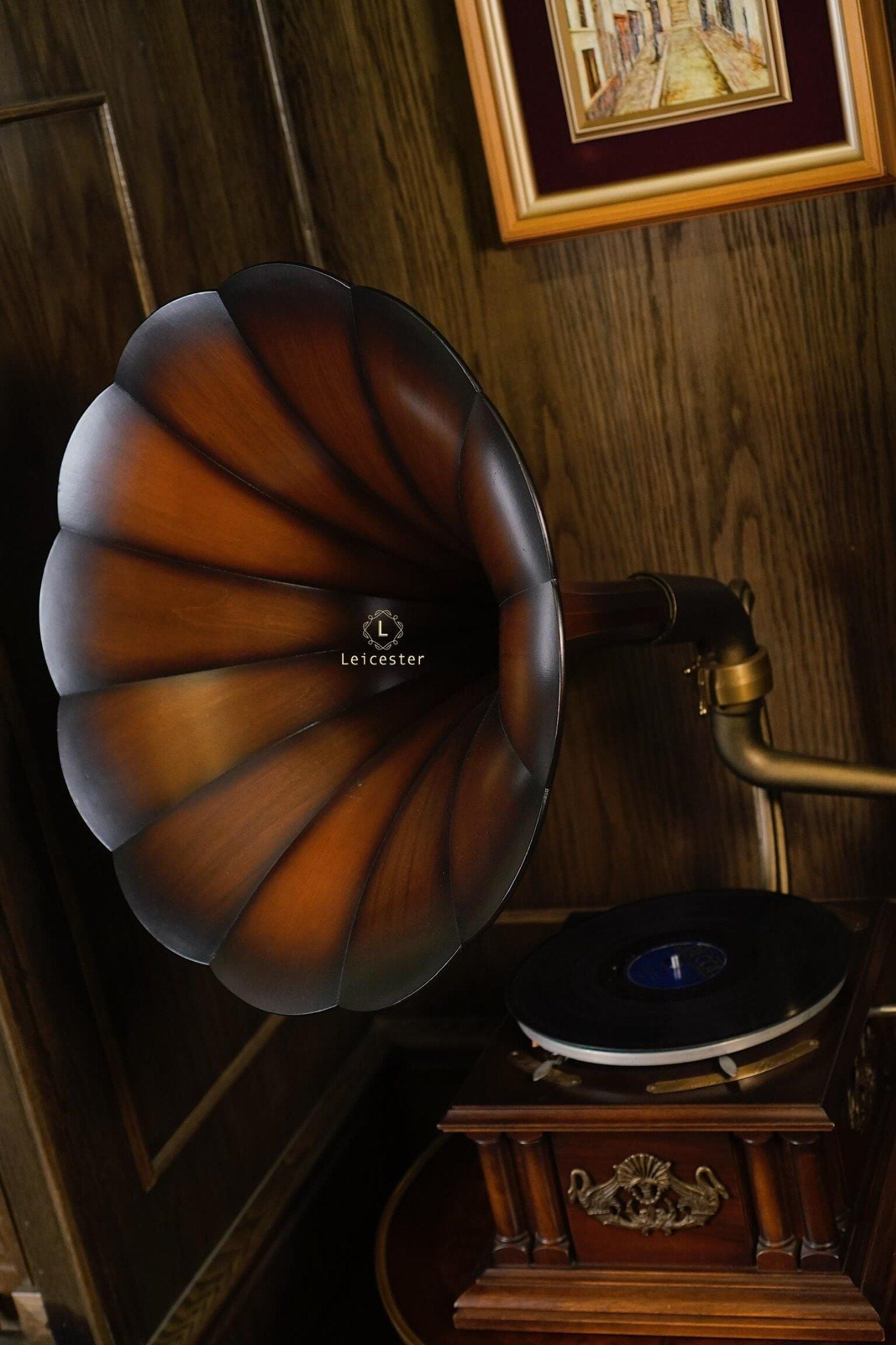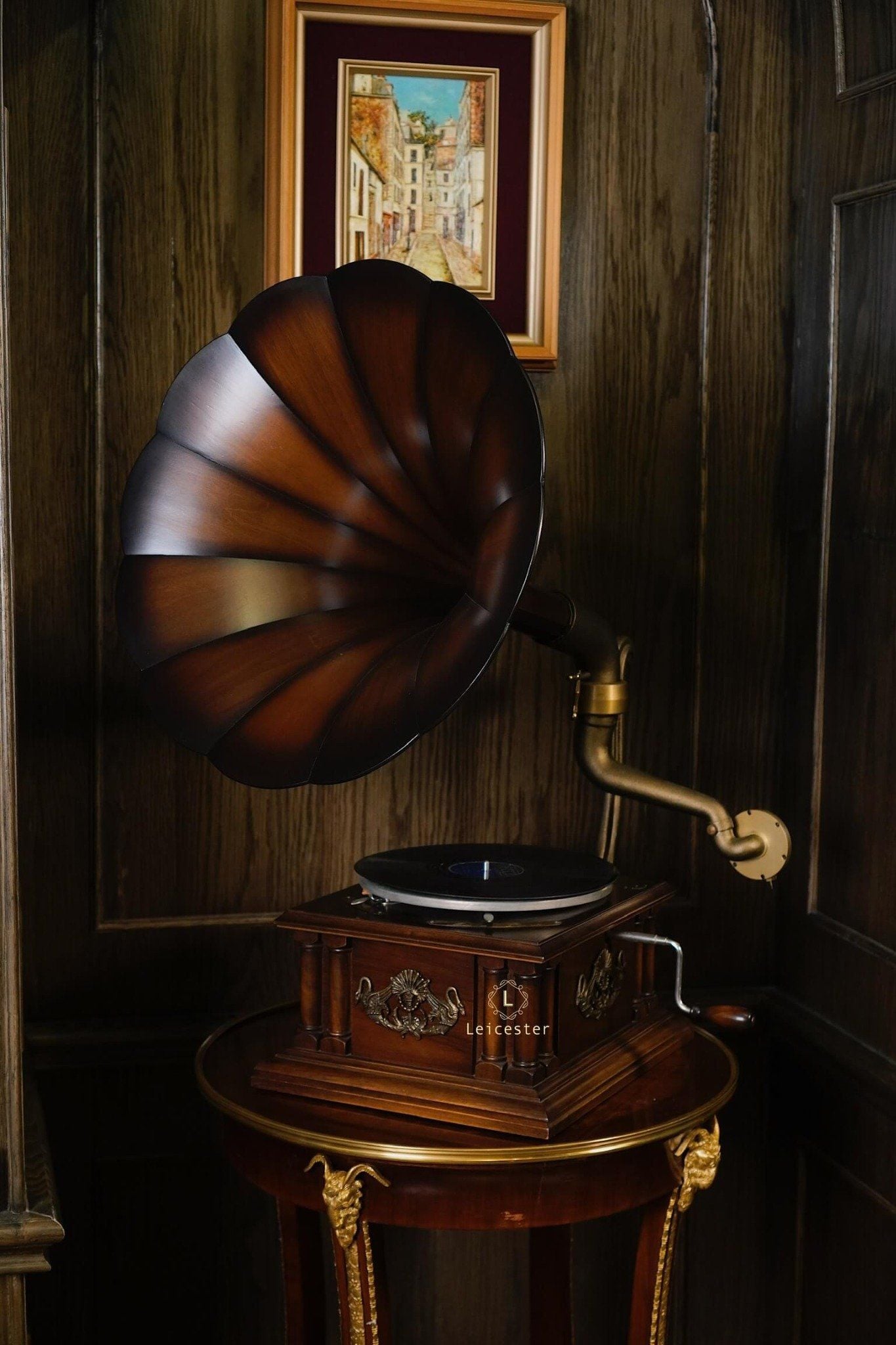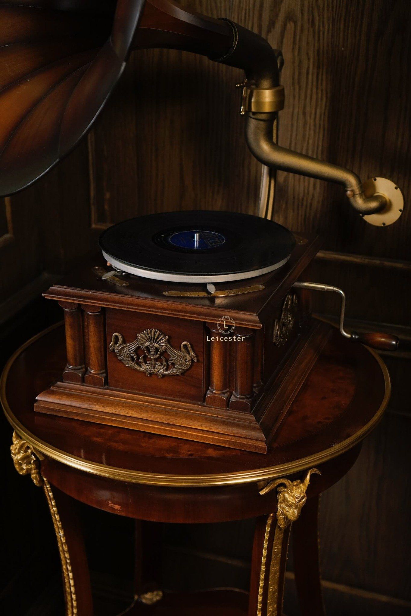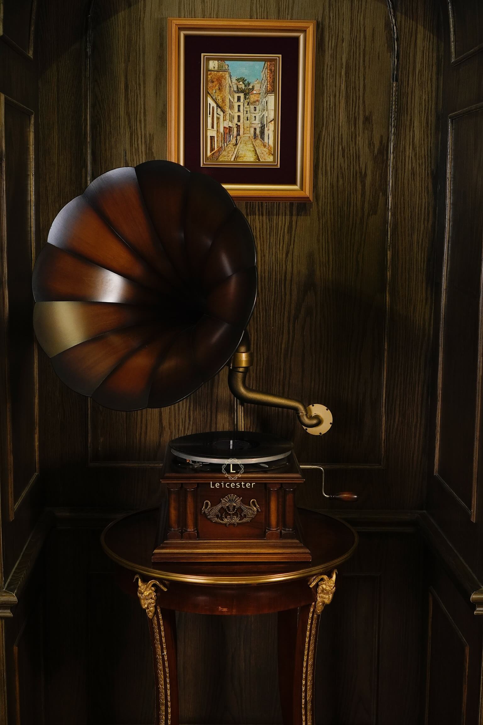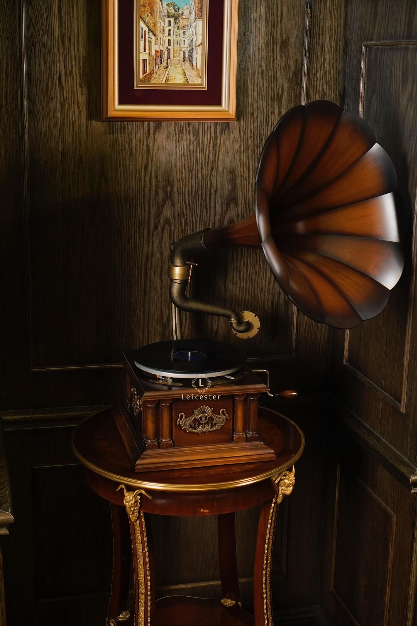 Tác phẩm cơ khí này mang dấu ấn di sản với thiết kế thủ công tinh xảo, loa kèn gỗ đặc trưng, họa tiết thiên nga chạm khắc tinh xảo, thân máy phủ bóng thủ công cùng các chi tiết được trau chuốt tỉ mỉ. Chỉ cần đặt tay quay, hạ mũi kim, tiếng nhạc sẽ vang lên, hòa cùng vòng đĩa quay chậm rãi, để từng phút giây thưởng thức trở thành trải nghiệm tinh tế và lưu giữ trọn vẹn nét đẹp cổ điển của thời đại vàng son.