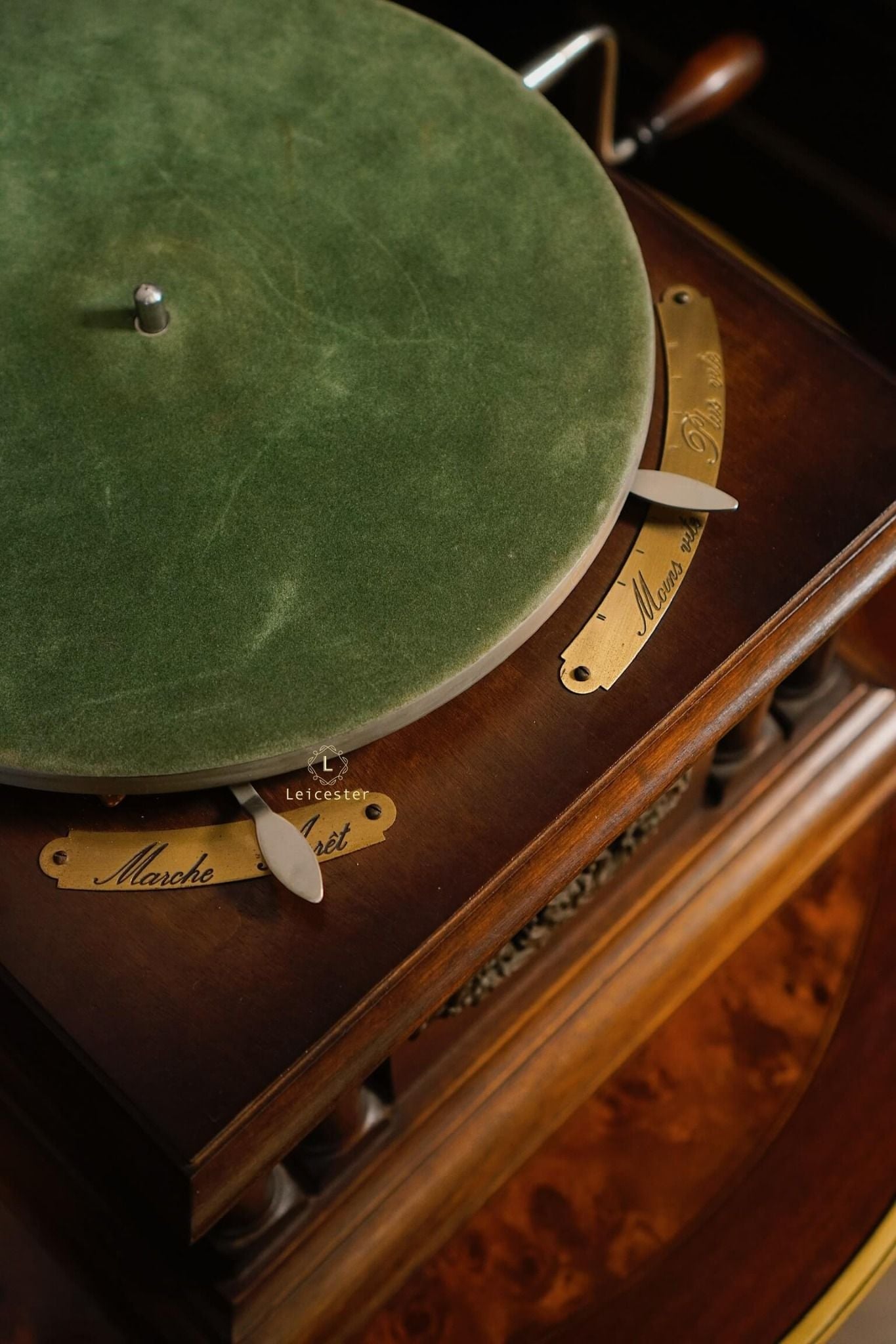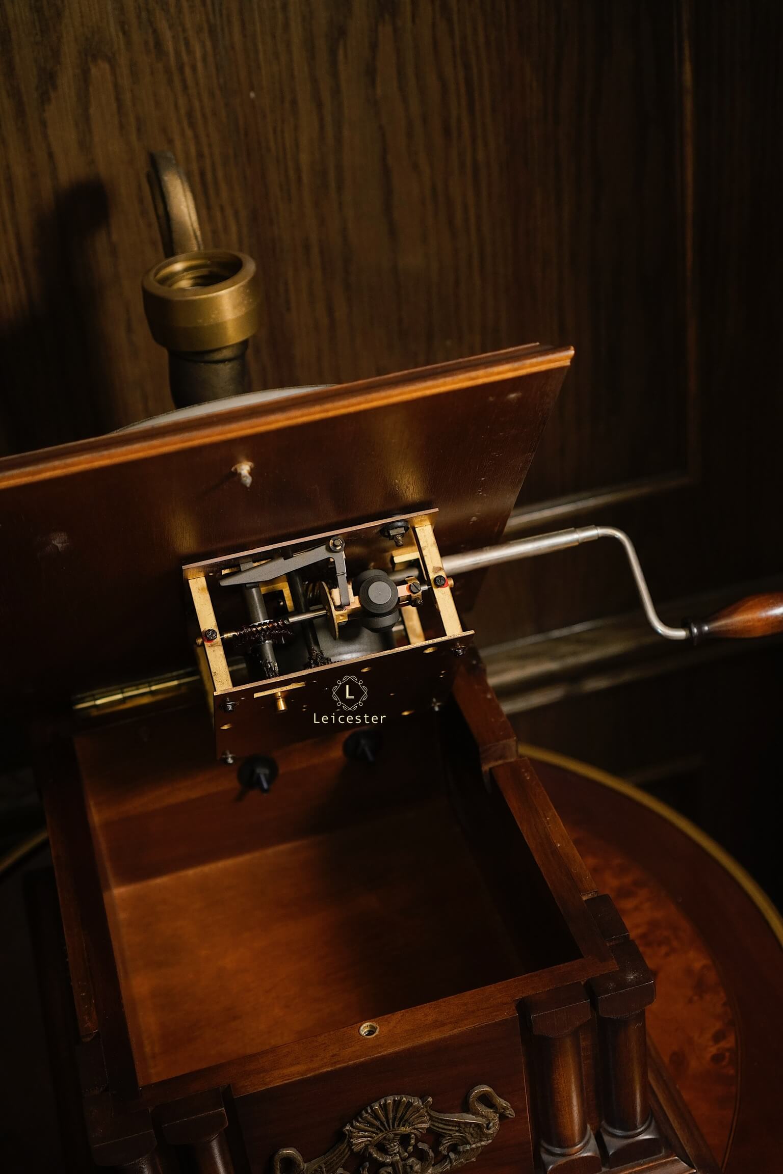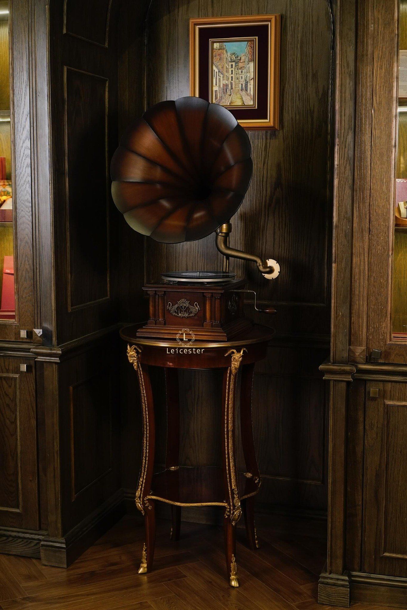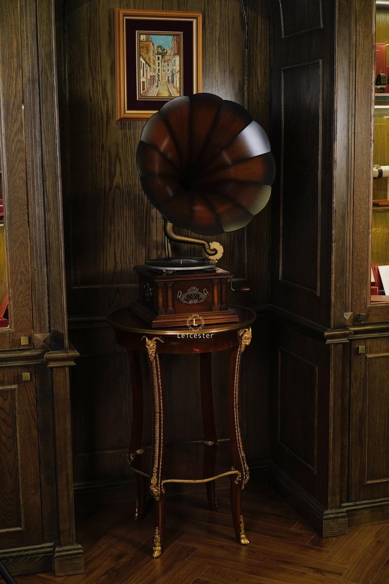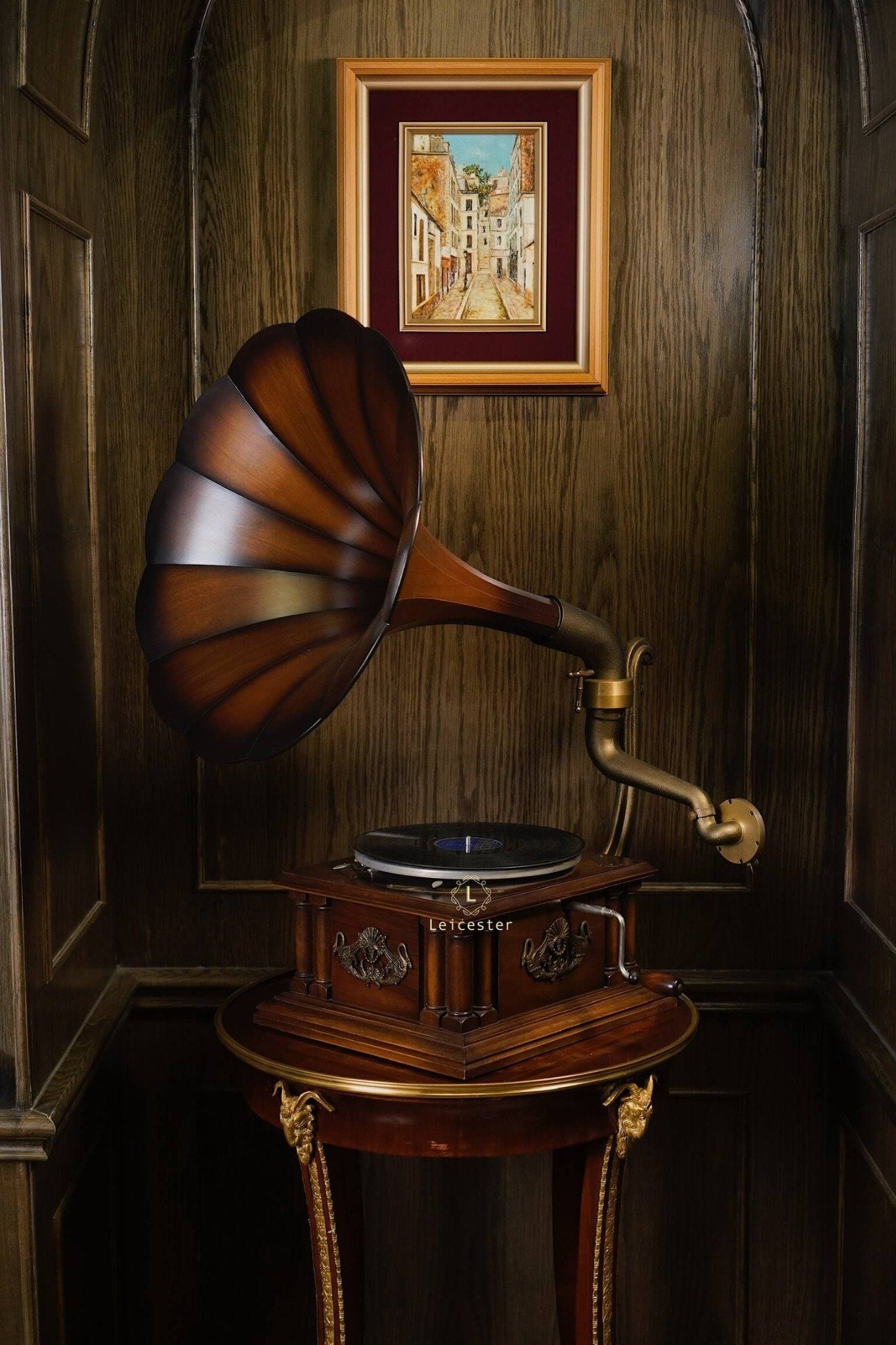Tác phẩm cơ khí này mang dấu ấn di sản với thiết kế thủ công tinh xảo, loa kèn gỗ đặc trưng, họa tiết thiên nga chạm khắc tinh xảo, thân máy phủ bóng thủ công cùng các chi tiết được trau chuốt tỉ mỉ. Chỉ cần đặt tay quay, hạ mũi kim, tiếng nhạc sẽ vang lên, hòa cùng vòng đĩa quay chậm rãi, để từng phút giây thưởng thức trở thành trải nghiệm tinh tế và lưu giữ trọn vẹn nét đẹp cổ điển của thời đại vàng son.