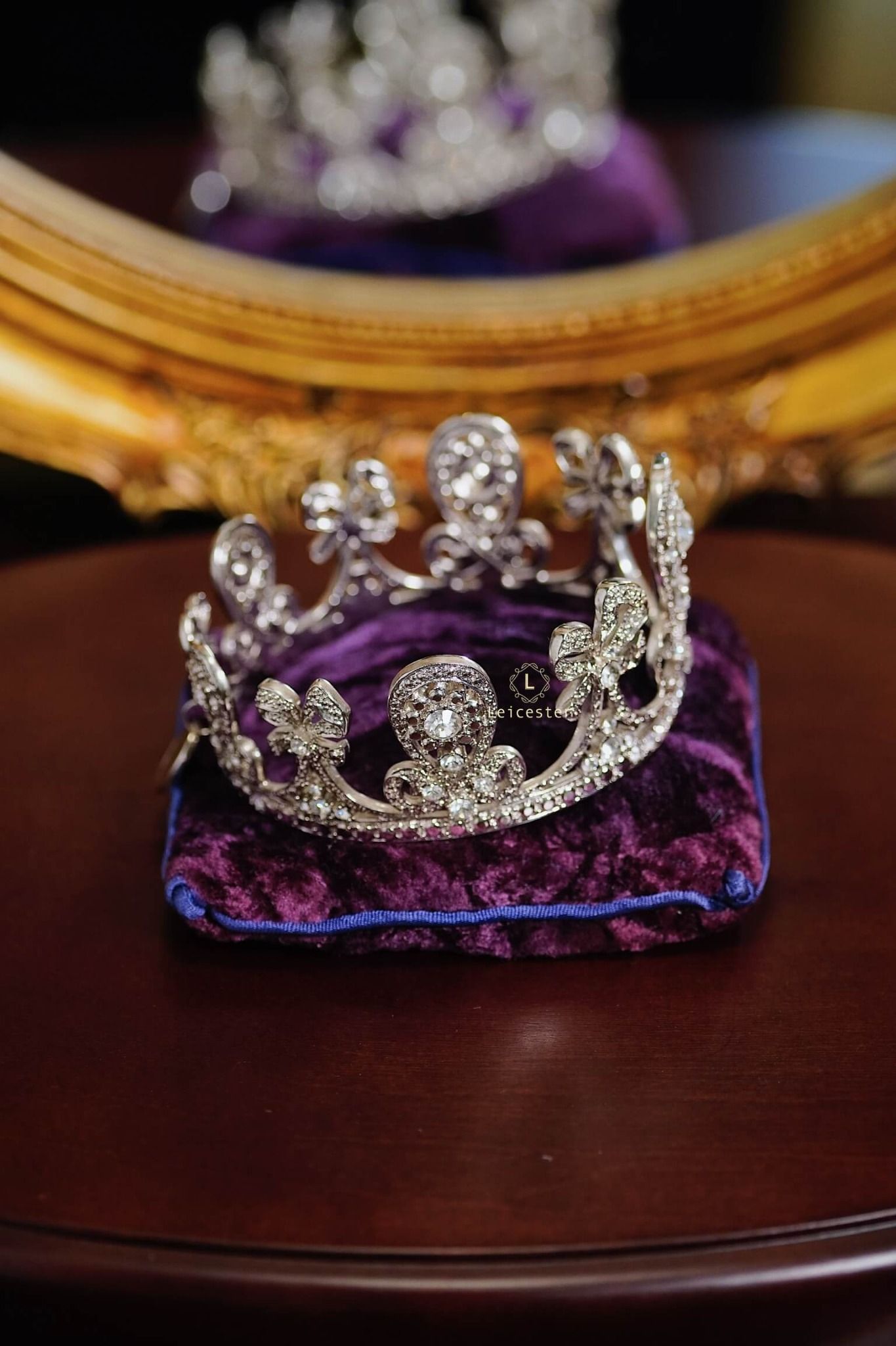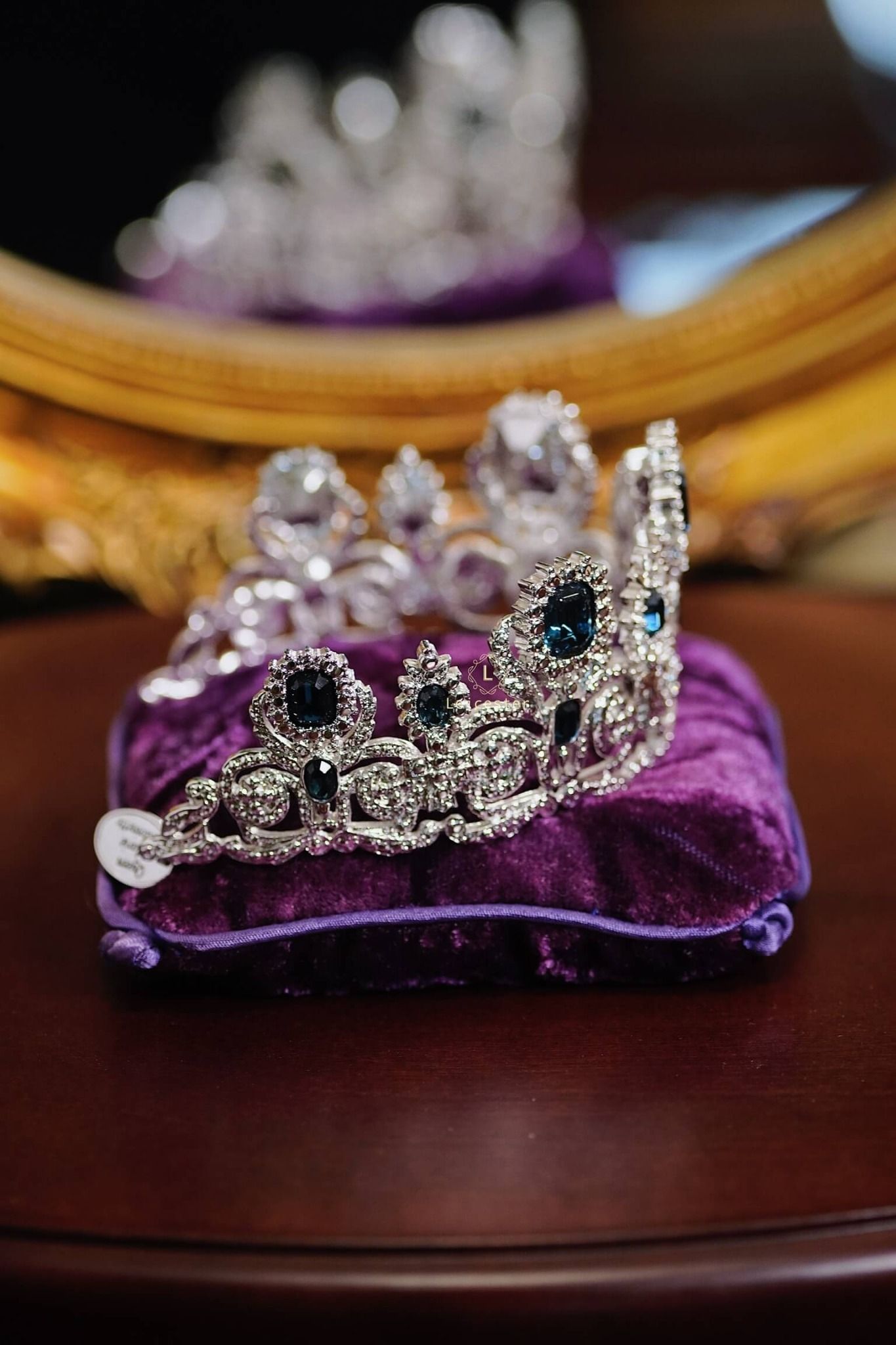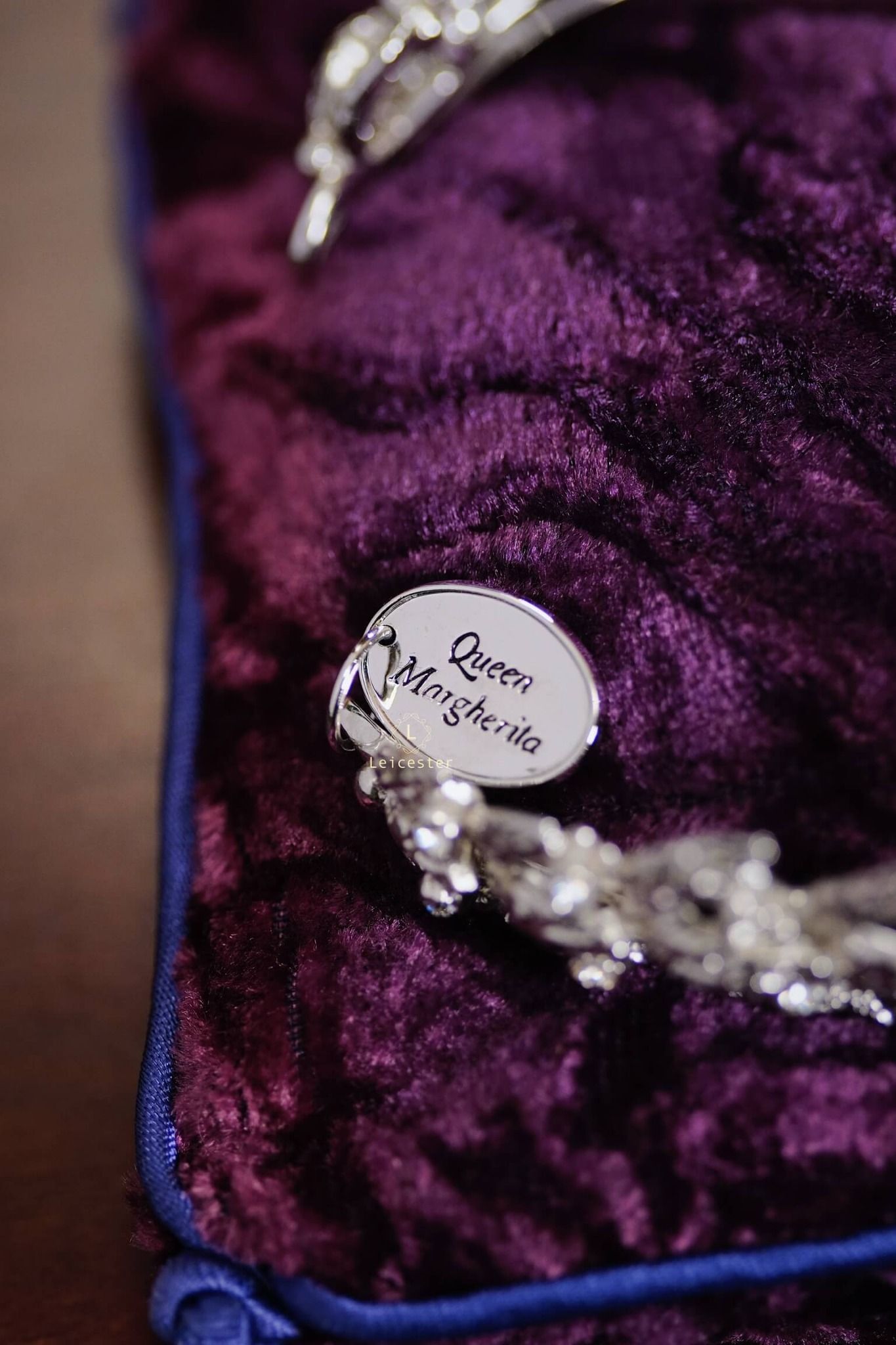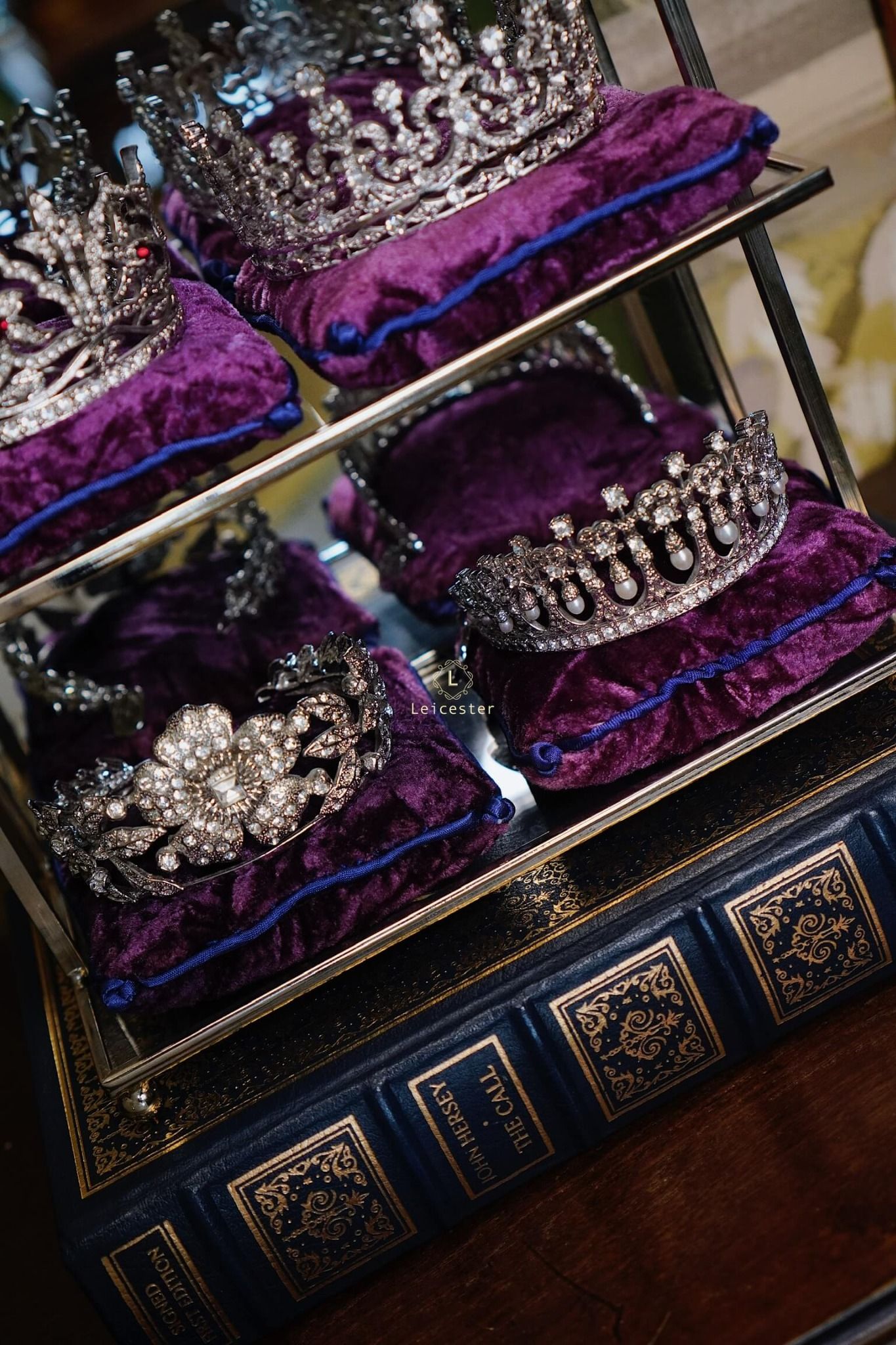 Tác phẩm được trưng bày trên kệ kính sang trọng, mỗi vương miện đặt trên gối nhung tím hoàng gia kèm tag tên riêng của từng công chúa – tái hiện không khí của một phòng trưng bày bảo vật hoàng gia thật sự. Từng đường cong tinh xảo, chi tiết chạm khắc sáng bạc và pha lê long lanh đều được hoàn thiện thủ công tỉ mỉ, khiến ánh sáng phản chiếu như một dải ngân hà thu nhỏ, mang lại cảm giác vừa cổ điển vừa vĩnh cửu.