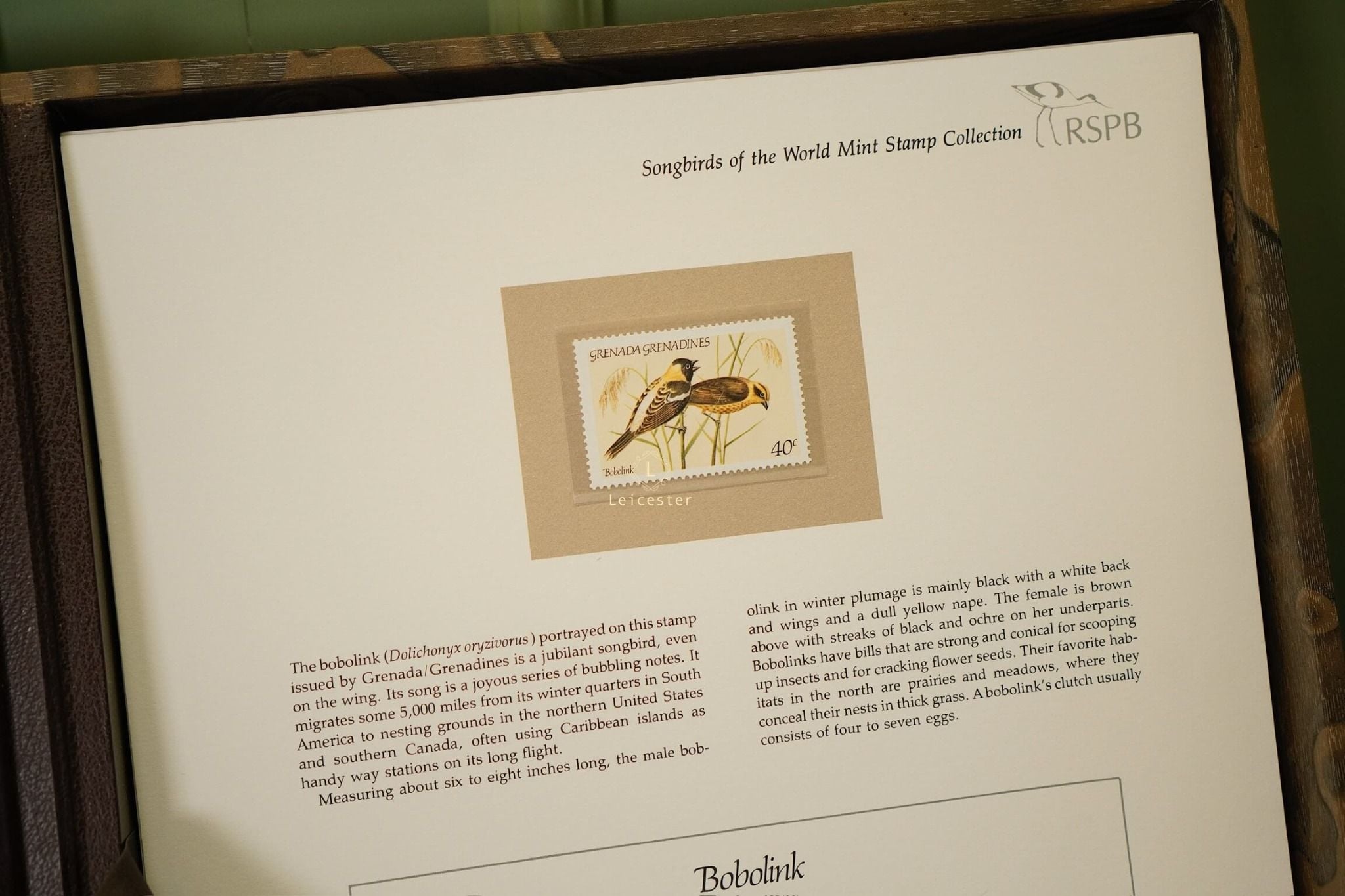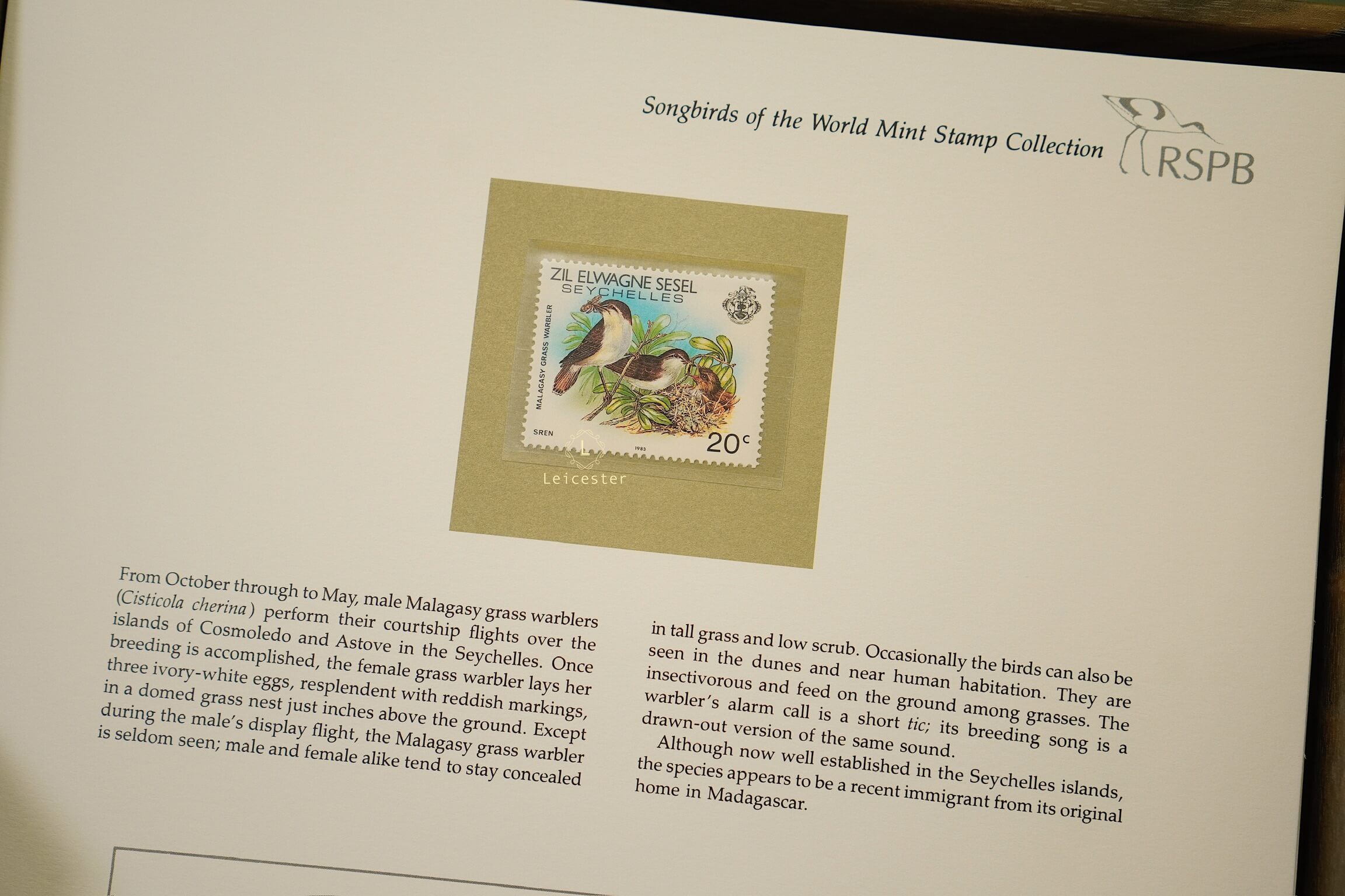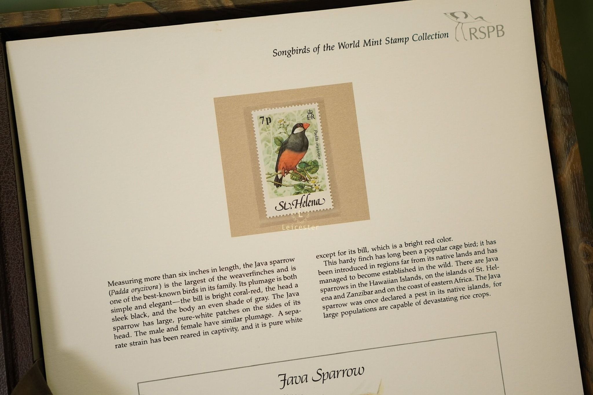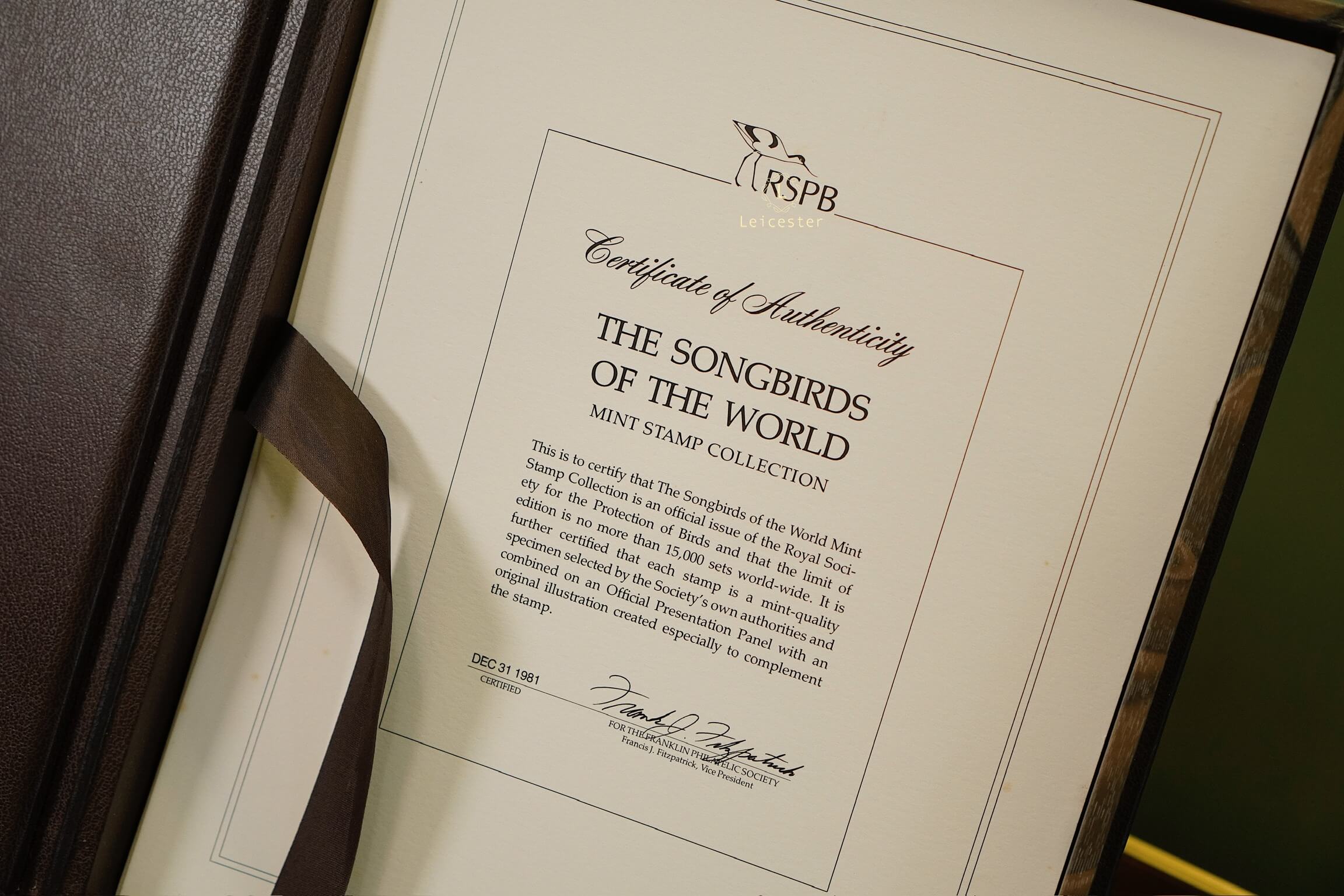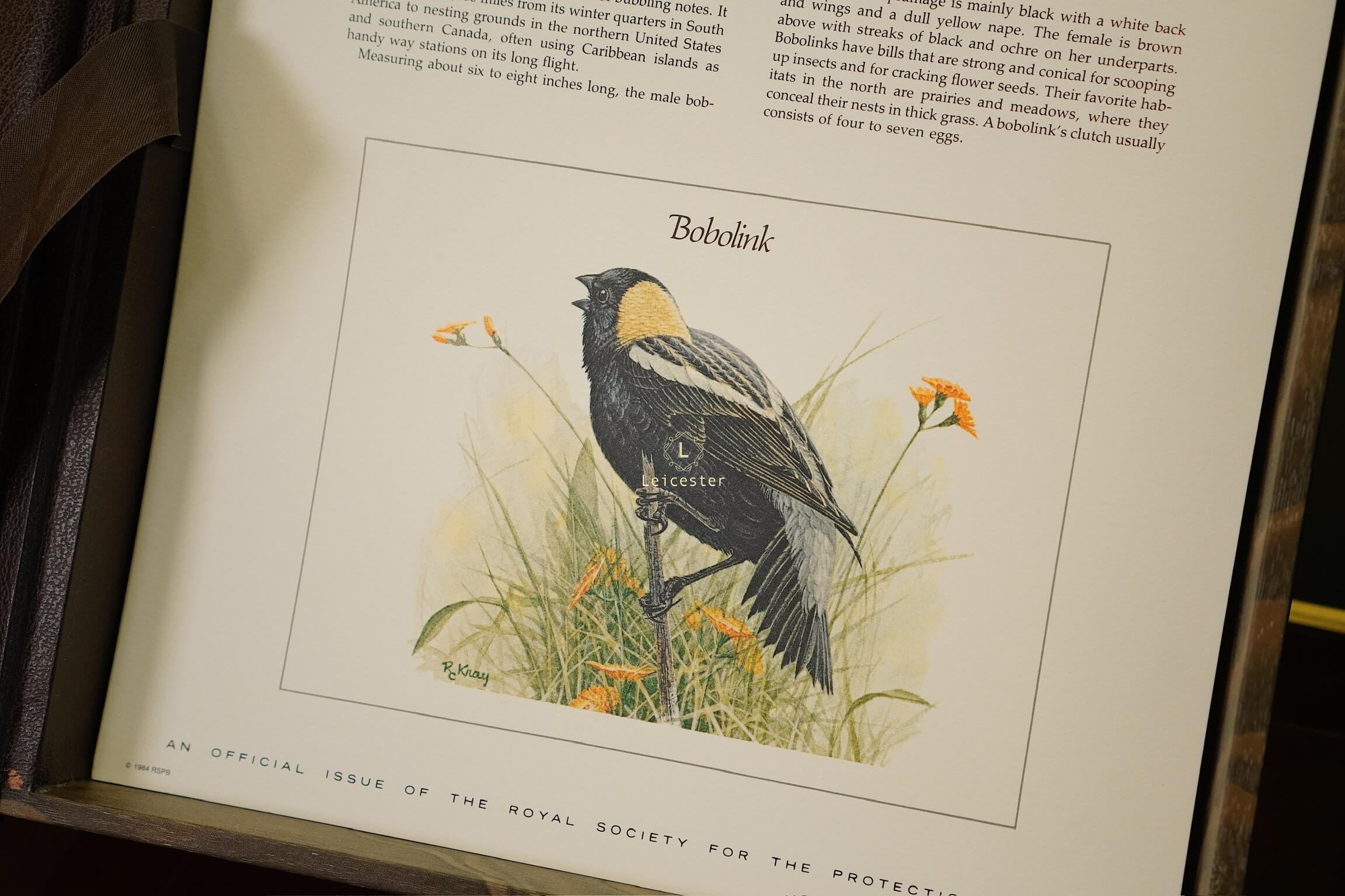 The Songbirds of the World – Mint Stamp Collection được phát hành năm 1981 bởi The Franklin Philatelic Society, dưới sự bảo trợ của Royal Society for the Protection of Birds (RSPB) – tổ chức bảo tồn thiên nhiên danh tiếng thành lập từ năm 1889 tại Anh. Với số lượng giới hạn chỉ 15.000 bộ trên toàn cầu và kèm chứng nhận xác thực phát hành ngày 31/12/1981, bộ sưu tập mang giá trị sưu tầm đặc biệt, vừa thể hiện tính lịch sử, vừa khẳng định uy tín của đơn vị phát hành.