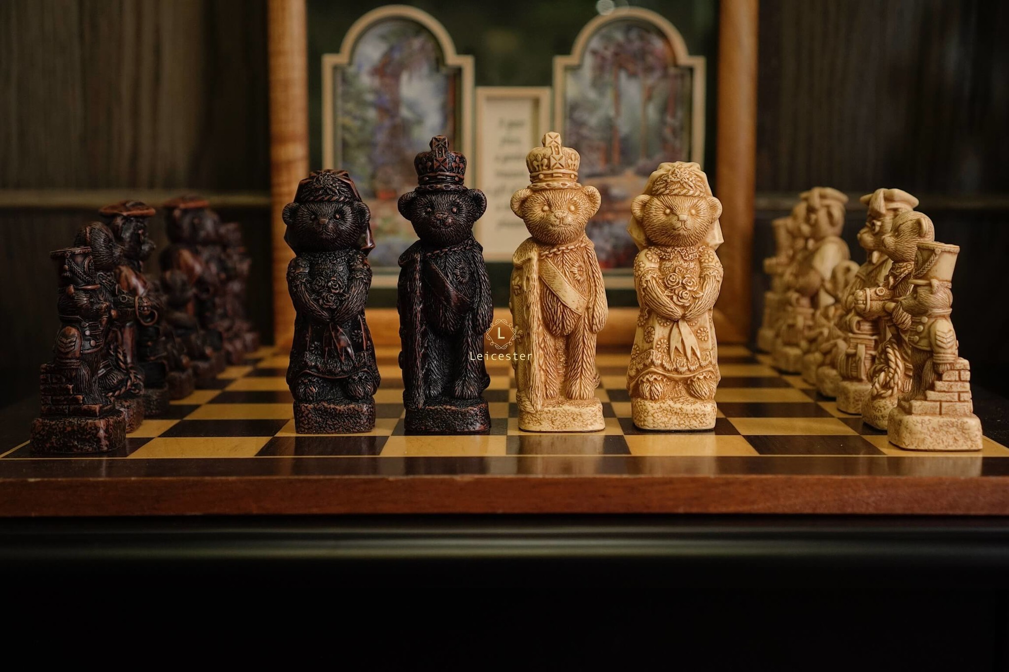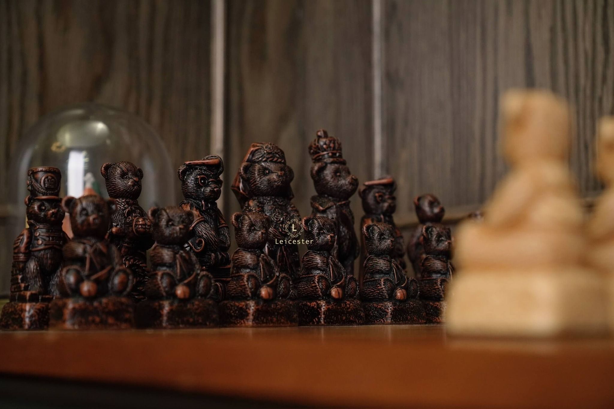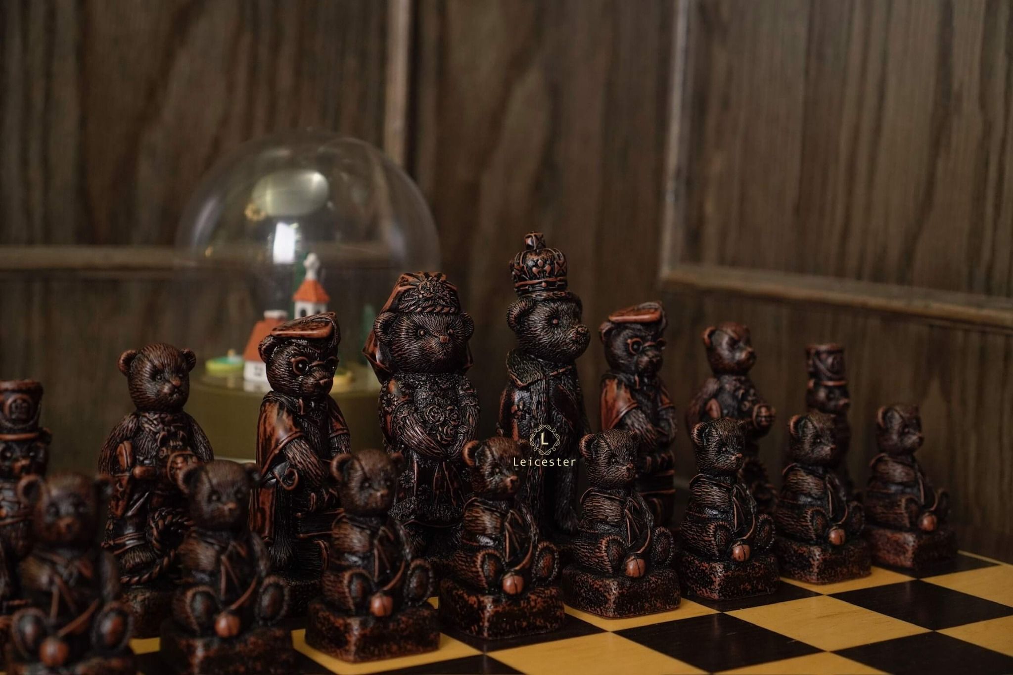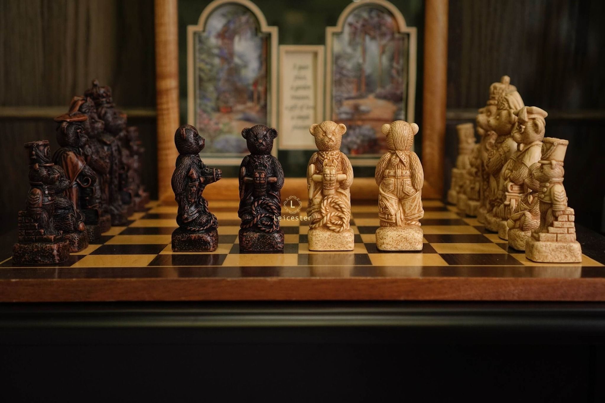 Bộ cờ vua Teddy Bear được Nhà SAC mô tả lại nguồn gốc của chú gấu bông có liên quan đến Cựu Tổng Thống Mỹ Thứ 26, Theodore Roosevelt, người đã từ chối bắn một chú gấu nhỏ trong chuyến đi săn ở Mississippi. Kể từ đó, “Teddy Bear” đầu tiên bằng vải nhung màu nâu được ra đời bởi nhà sản xuất đồ chơi Morris Michtom. Chú gấu bông đã trở thành món đồ chơi được yêu thích và là vật phẩm sưu tầm. Đây cũng là chủ đề để những người nghệ nhân lành nghề của SAC tạo ra bộ cờ độc đáo này.