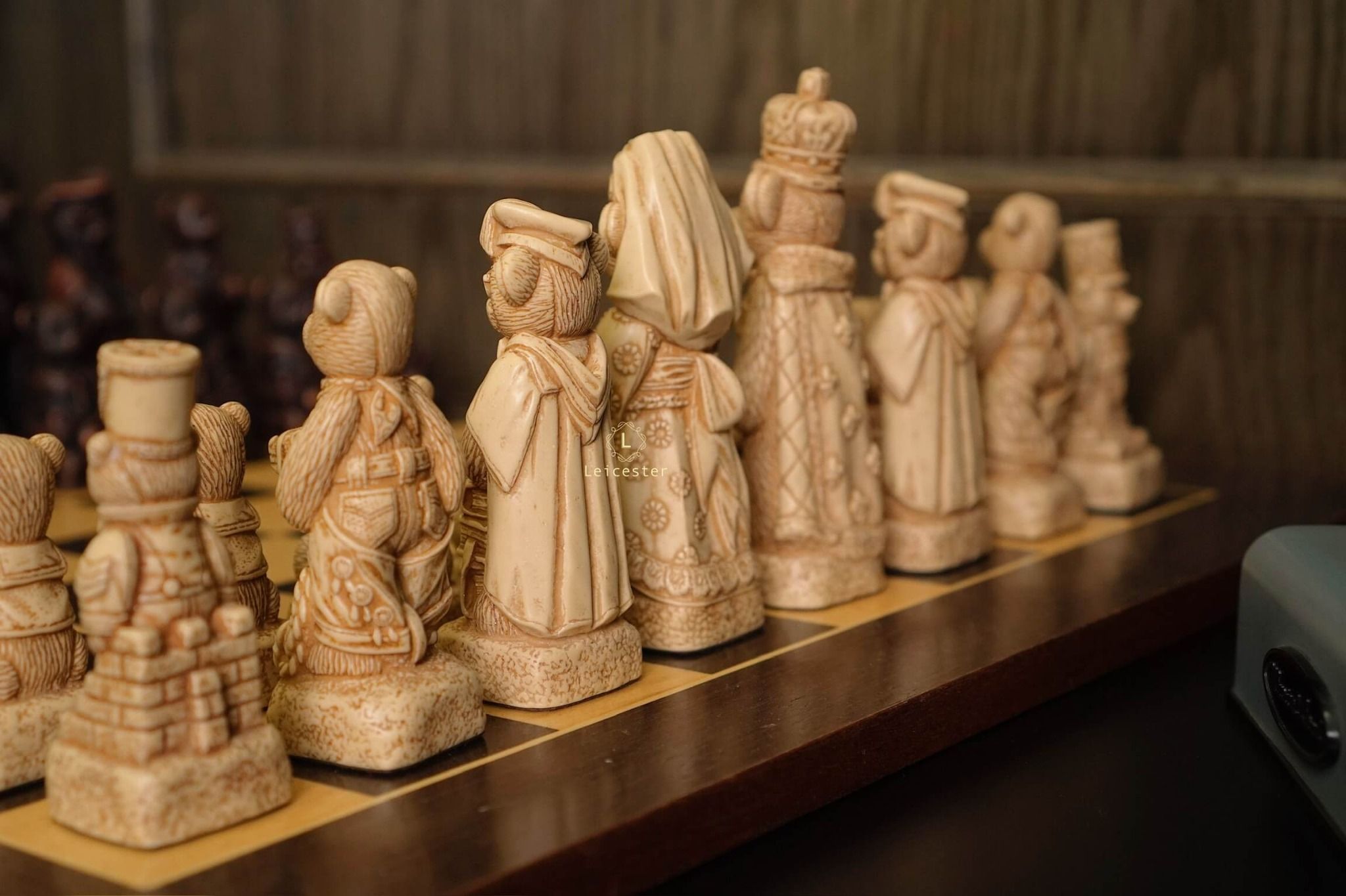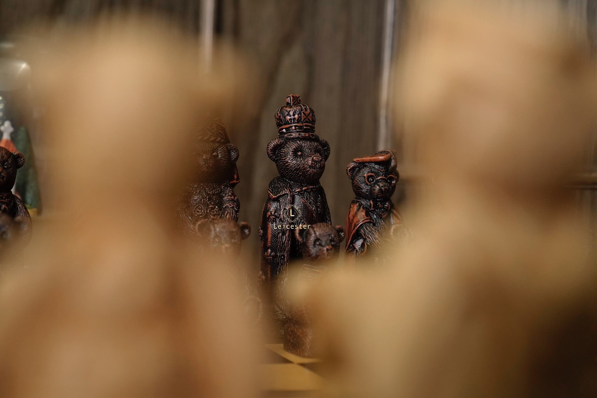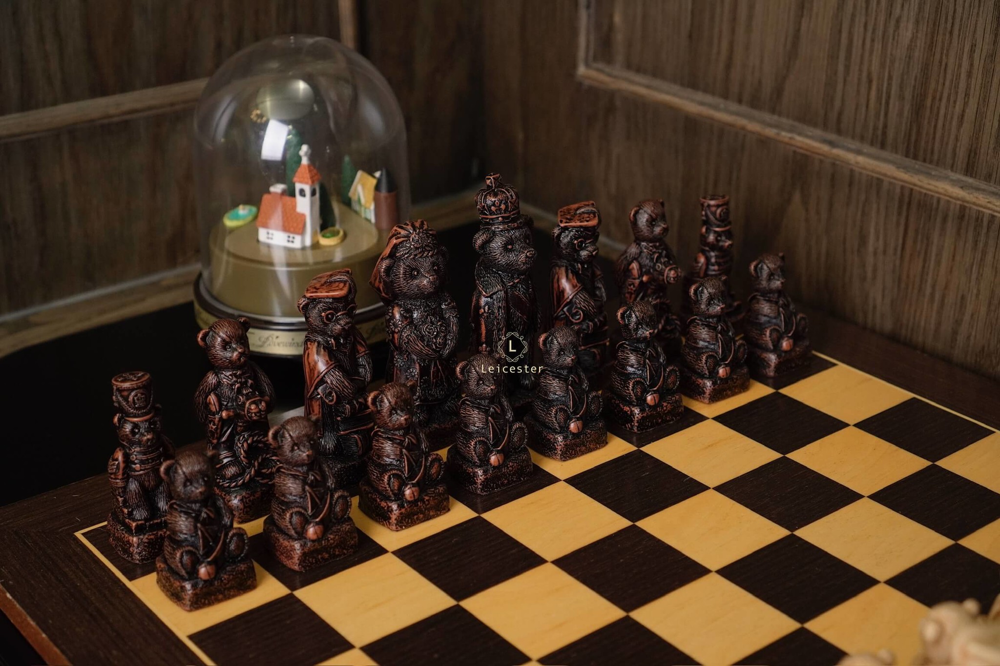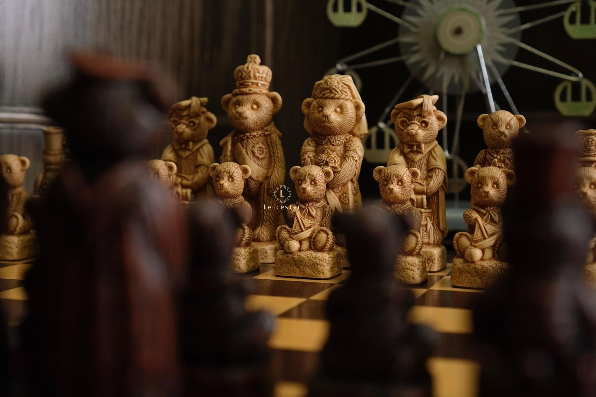 Bộ cờ vua Teddy Bear được Nhà SAC mô tả lại nguồn gốc của chú gấu bông có liên quan đến Cựu Tổng Thống Mỹ Thứ 26, Theodore Roosevelt, người đã từ chối bắn một chú gấu nhỏ trong chuyến đi săn ở Mississippi. Kể từ đó, “Teddy Bear” đầu tiên bằng vải nhung màu nâu được ra đời bởi nhà sản xuất đồ chơi Morris Michtom. Chú gấu bông đã trở thành món đồ chơi được yêu thích và là vật phẩm sưu tầm. Đây cũng là chủ đề để những người nghệ nhân lành nghề của SAC tạo ra bộ cờ độc đáo này.