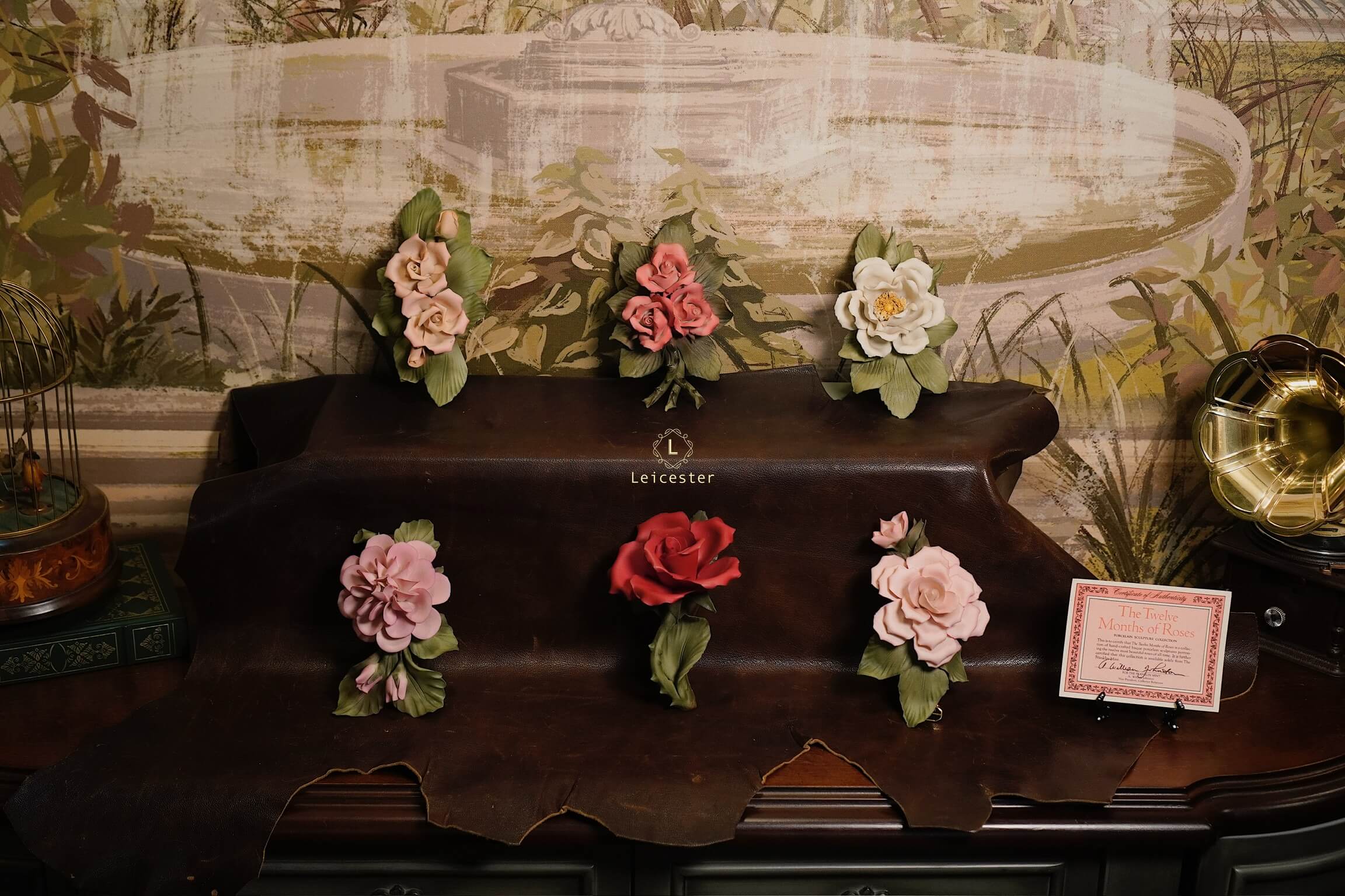 Một tuyển tập tinh xảo gồm sáu tác phẩm điêu khắc hoa hồng bằng sứ Capodimonte trong bộ sưu tập nổi tiếng The Twelve Months of Rose, mỗi bông tượng trưng cho một tháng trong năm. Được chế tác thủ công bởi các nghệ nhân Ý theo truyền thống Capodimonte nổi tiếng, từng cánh hoa, từng chiếc lá đều được tạo hình tỉ mỉ và tô màu tự nhiên, mang lại vẻ sống động như hoa thật. Bộ sưu tập được Franklin Mint phát hành độc quyền vào thập niên 1980, đi kèm giấy chứng nhận tính chính hãng và các thẻ mô tả riêng cho từng loài hoa. Với sự kết hợp giữa nghệ thuật châu Âu và tính sưu tầm cao cấp, “The Twelve Months of Roses” không chỉ là một bộ tượng trang trí sang trọng mà còn là biểu tượng của vẻ đẹp vĩnh hằng của hoa hồng qua bốn mùa trong năm.