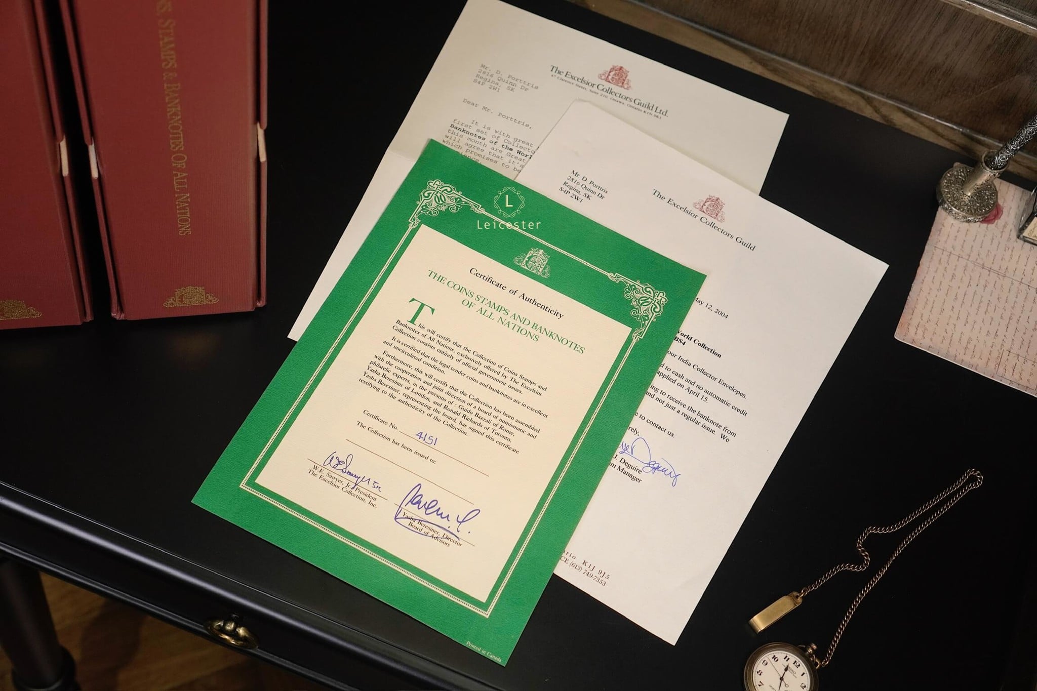 Certificate có kèm theo chữ ký của Chủ tịch The Excelsior Collectors Guild và Giám đốc Hội đồng Cố vấn.