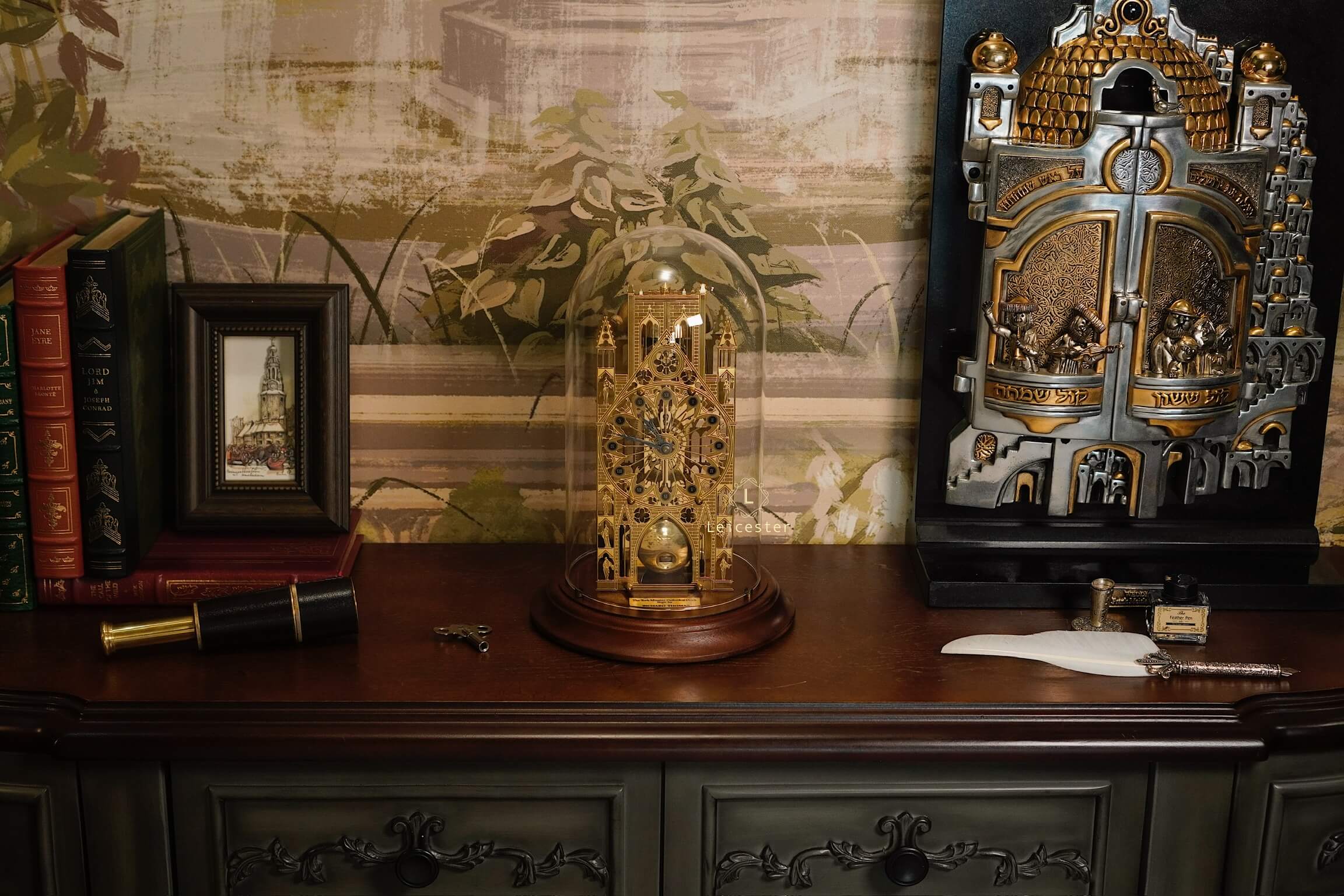 The York Minster Cathedral Clock là chiếc đồng hồ để bàn mang hình dáng của nhà thờ York Minster - một trong những nhà thờ lớn tráng lệ nhất thế giới được xây dựng cách đây hơn 500 năm. Đồng hồ được làm bằng đồng thau với bộ máy cơ của Hermle - thương hiệu đồng hồ lâu đời đến từ Đức. Bên trên đồng hồ là một chiếc chuông sẽ reo một lần vào mỗi giờ, kèm theo là chiếc chìa khoá được dùng để lên cót cho bộ máy.