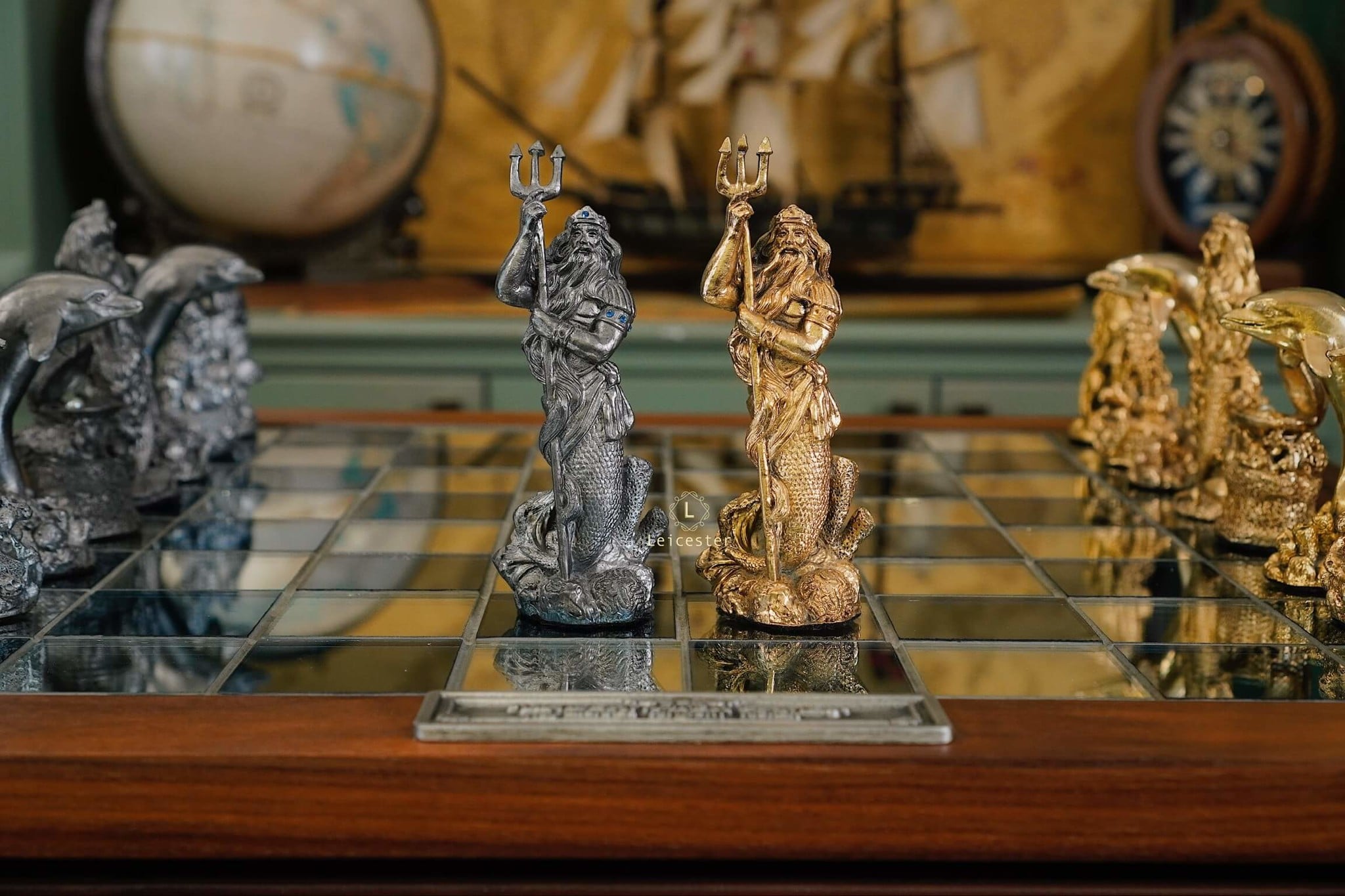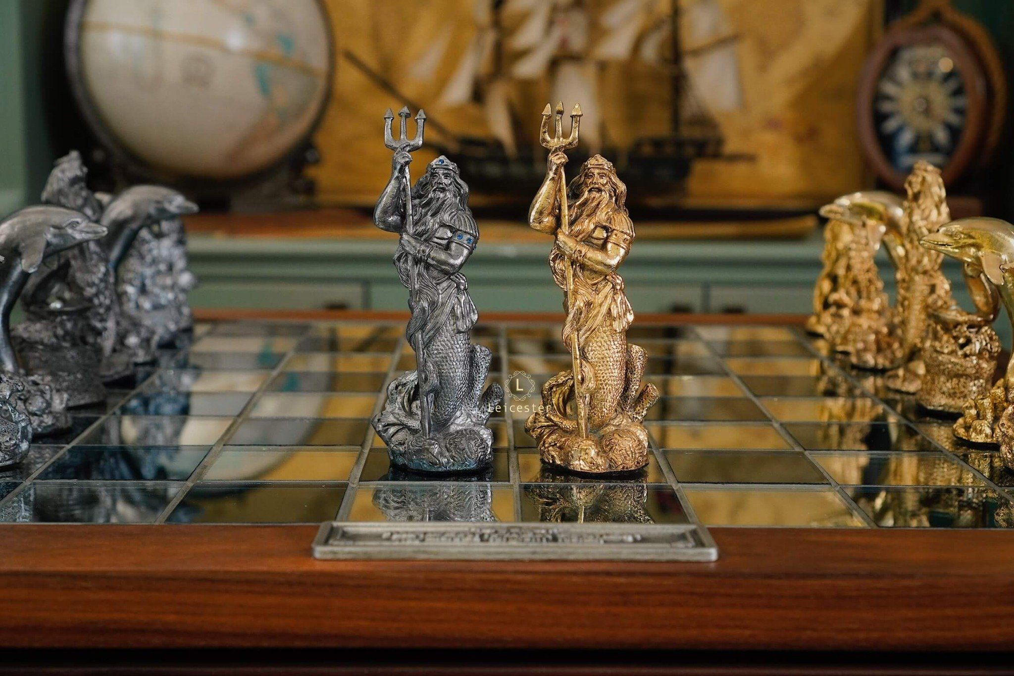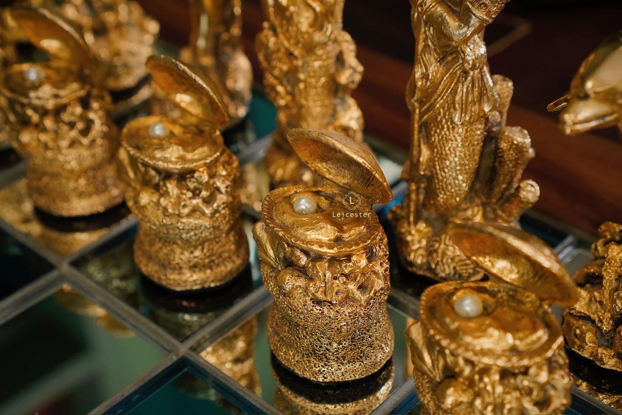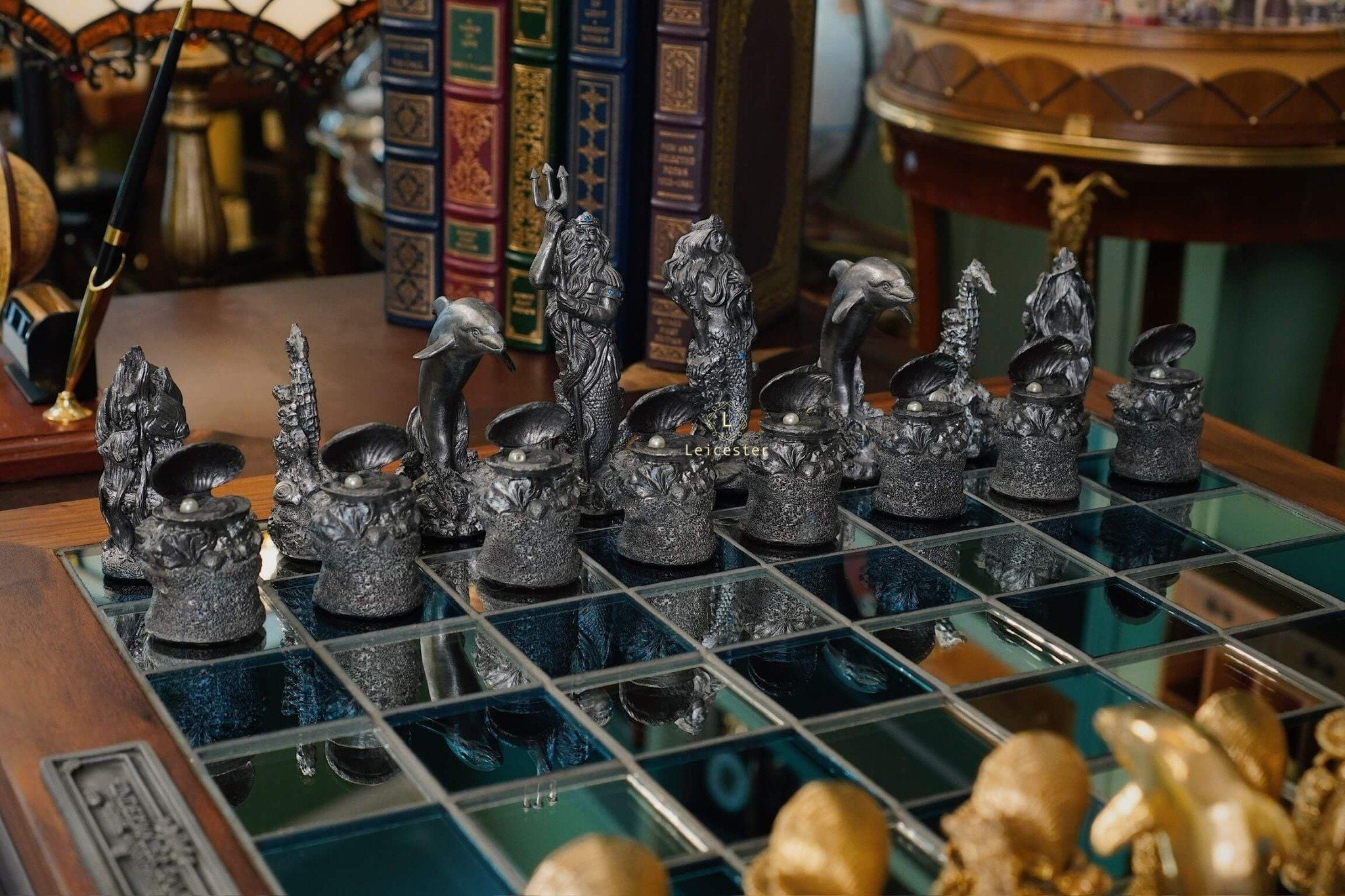 - Quân cờ: thiếc nguyên khối mạ vàng, đính đá, ngọc trai