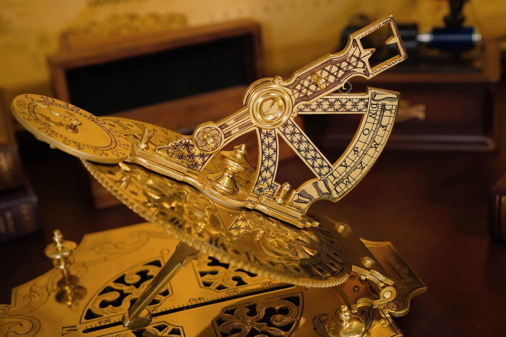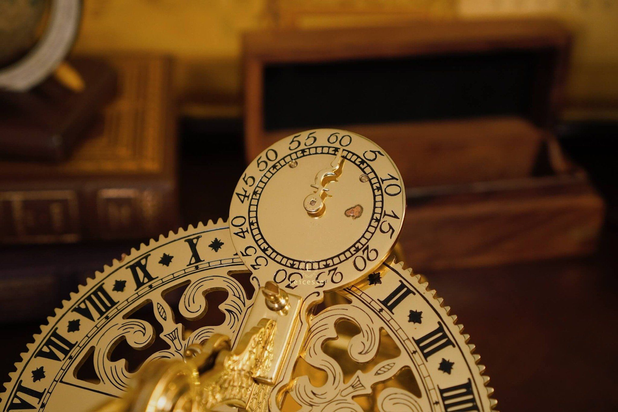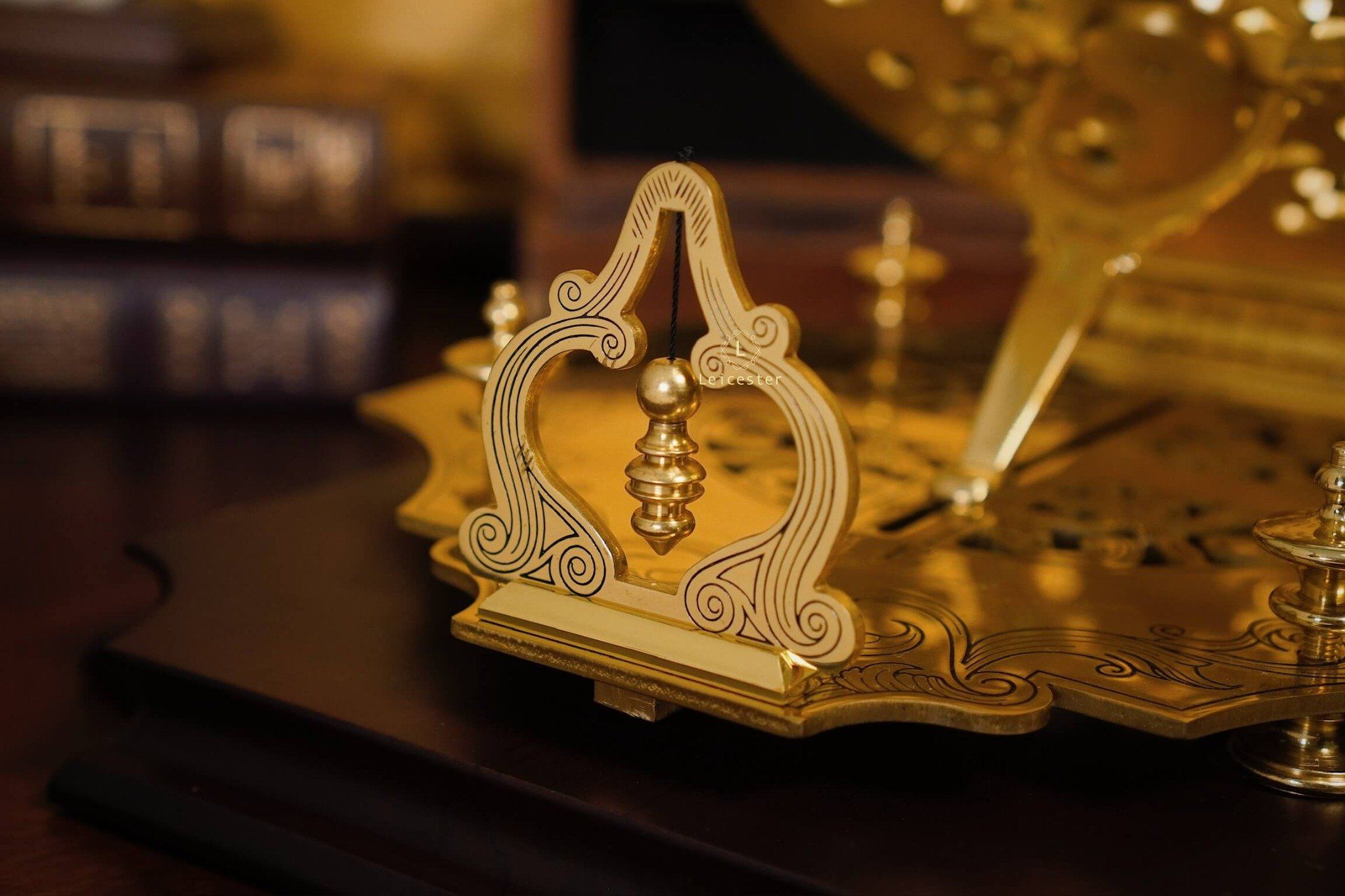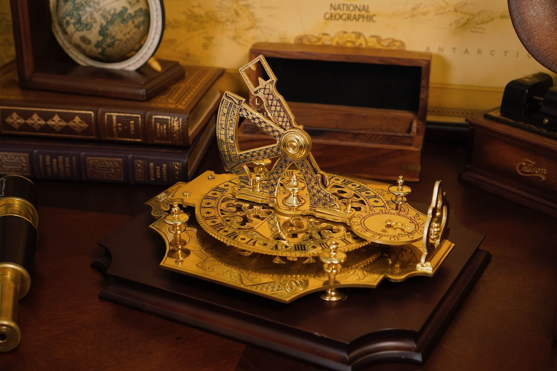 Với các chi tiết phức tạp và sự khéo léo chính xác, bản sao đồng hồ xích đạo này nắm bắt được bản chất nguyên bản lịch sử của nó. Tấm quay số được tạo ra một cách kỳ công, cho phép ánh sáng mặt trời đổ bóng và chỉ ra thời gian chính xác. Đồng hồ bao gồm một gnomon có bản lề và cụm ngắm và vít cân bằng để căn chỉnh chính xác cho phần đế.