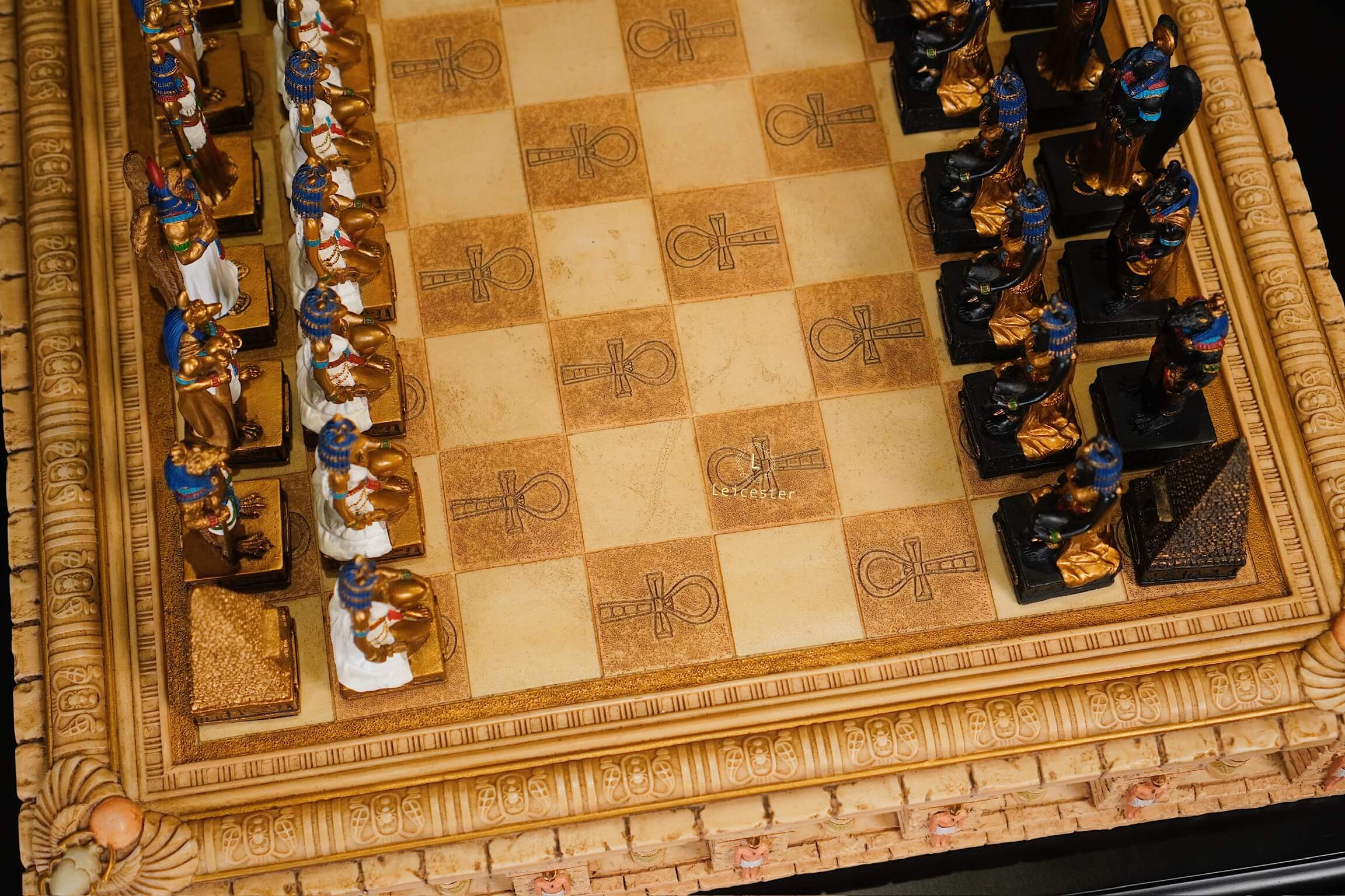 Veronese Design Egyptian Gods Chess Set là một tuyệt tác nghệ thuật điêu khắc kết hợp với chiến lược trí tuệ mang đậm dấu ấn văn minh Ai Cập cổ đại, tái hiện một cách sinh động các nhân vật thần thoại Ai Cập như Anubis, Horus, Isis, Osiris và các Pharaoh quyền uy với từng chi tiết được chạm khắc tỉ mỉ thông qua những quân cờ, theo đó là bàn cờ Ankh Battlefield Board được thiết kế như một chiến trường thần thánh giữa các thế lực Ai Cập cổ đại. Trên bề mặt bàn cờ có những biểu tượng Ankh – biểu tượng của sự sống vĩnh cửu. Phần viền bàn cờ được chạm nổi như những bức tường đá của đền thờ Ai Cập, tạo nên một không gian thiêng liêng và huyền bí cho từng ván đấu.
