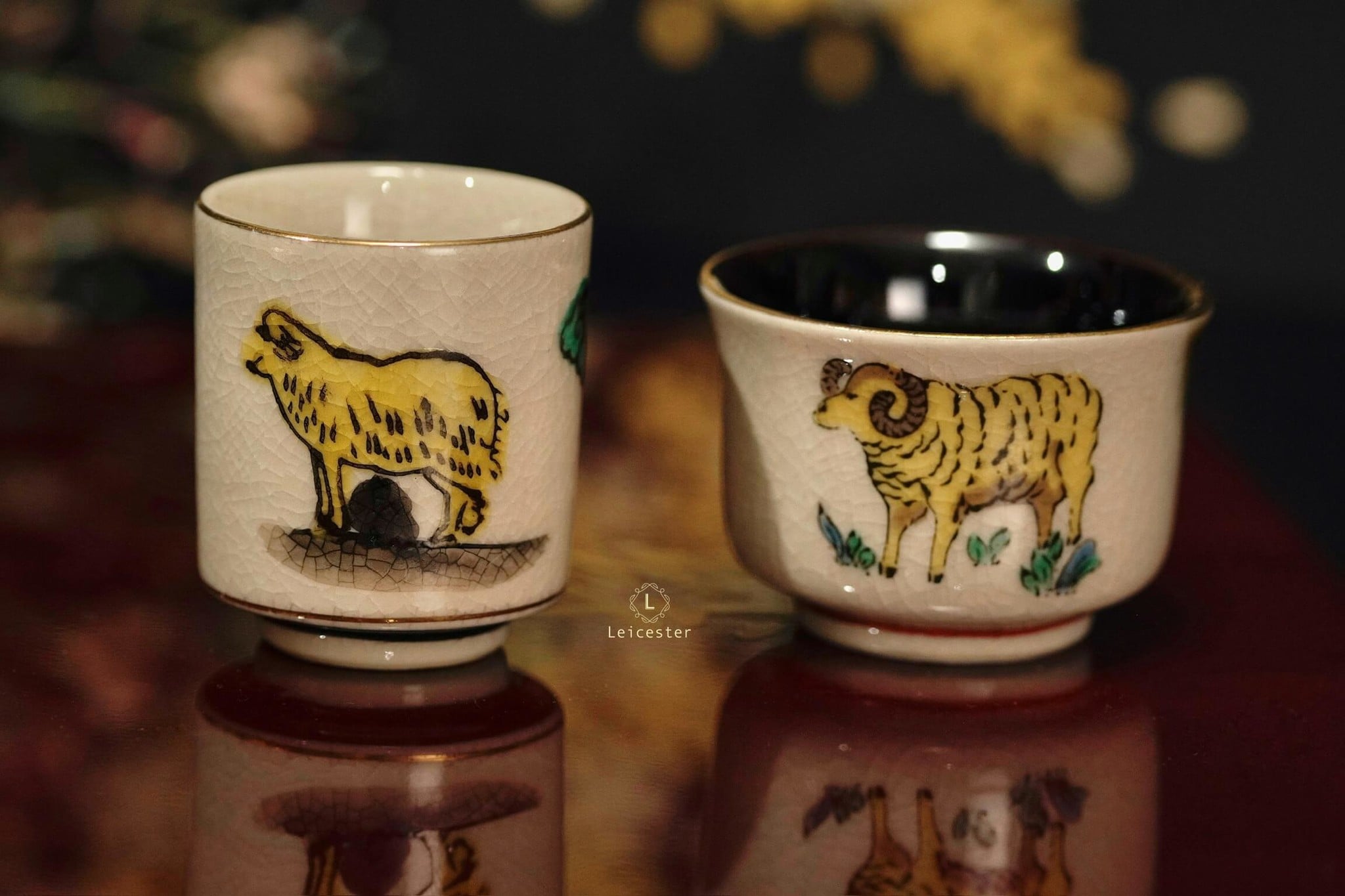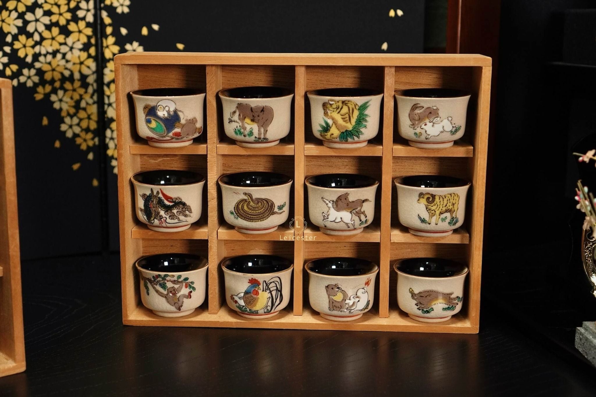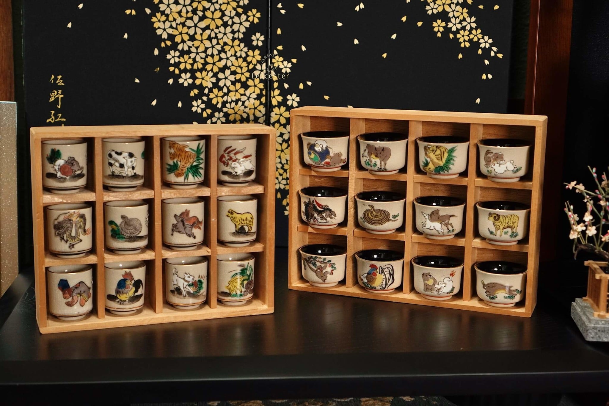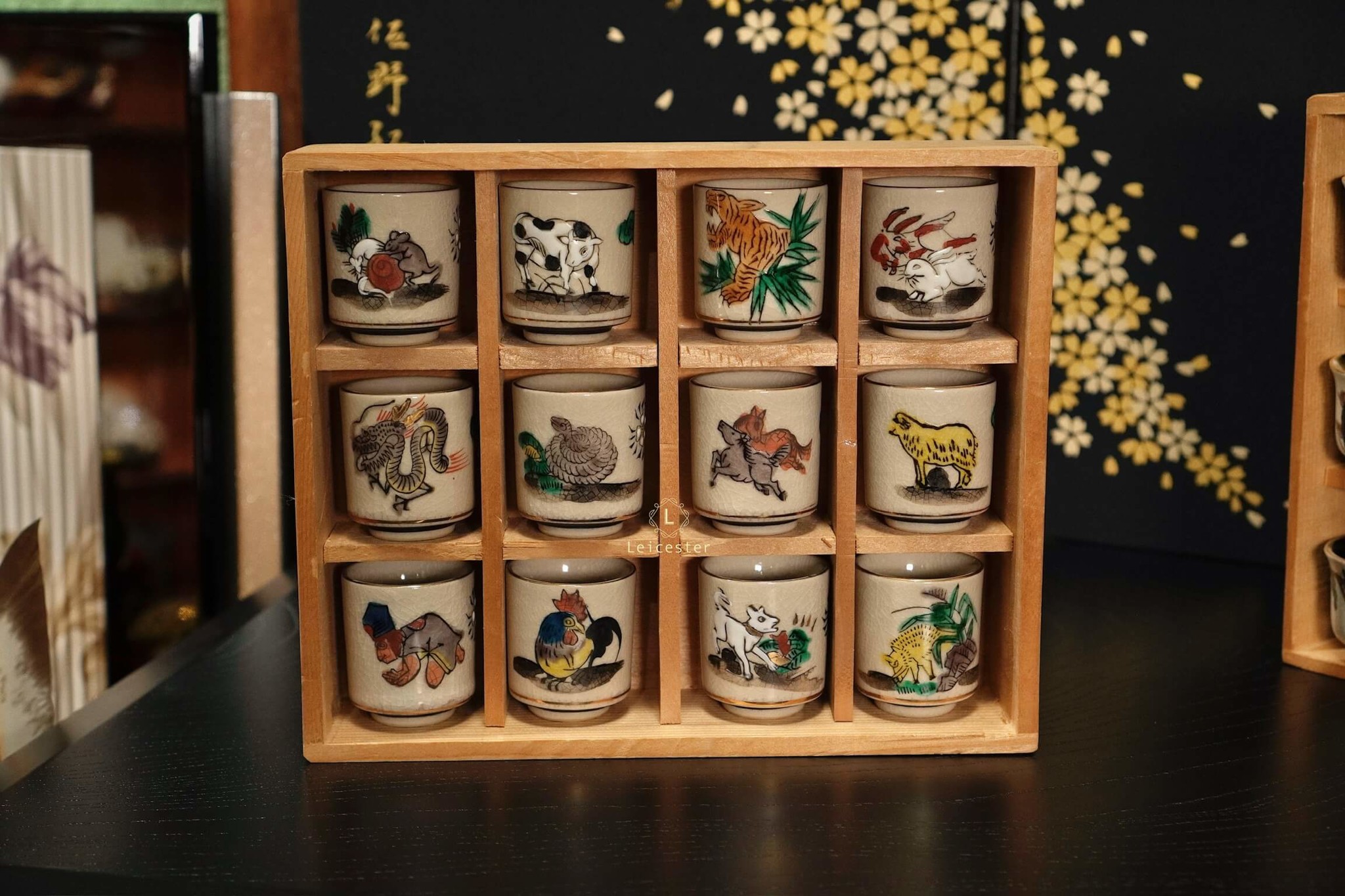 Bộ sưu tập bao gồm: 24 chiếc cốc sake với hoạ tiết các con giáp hoàng đạo, đi kèm hộp gỗ trưng bày bảo quản.